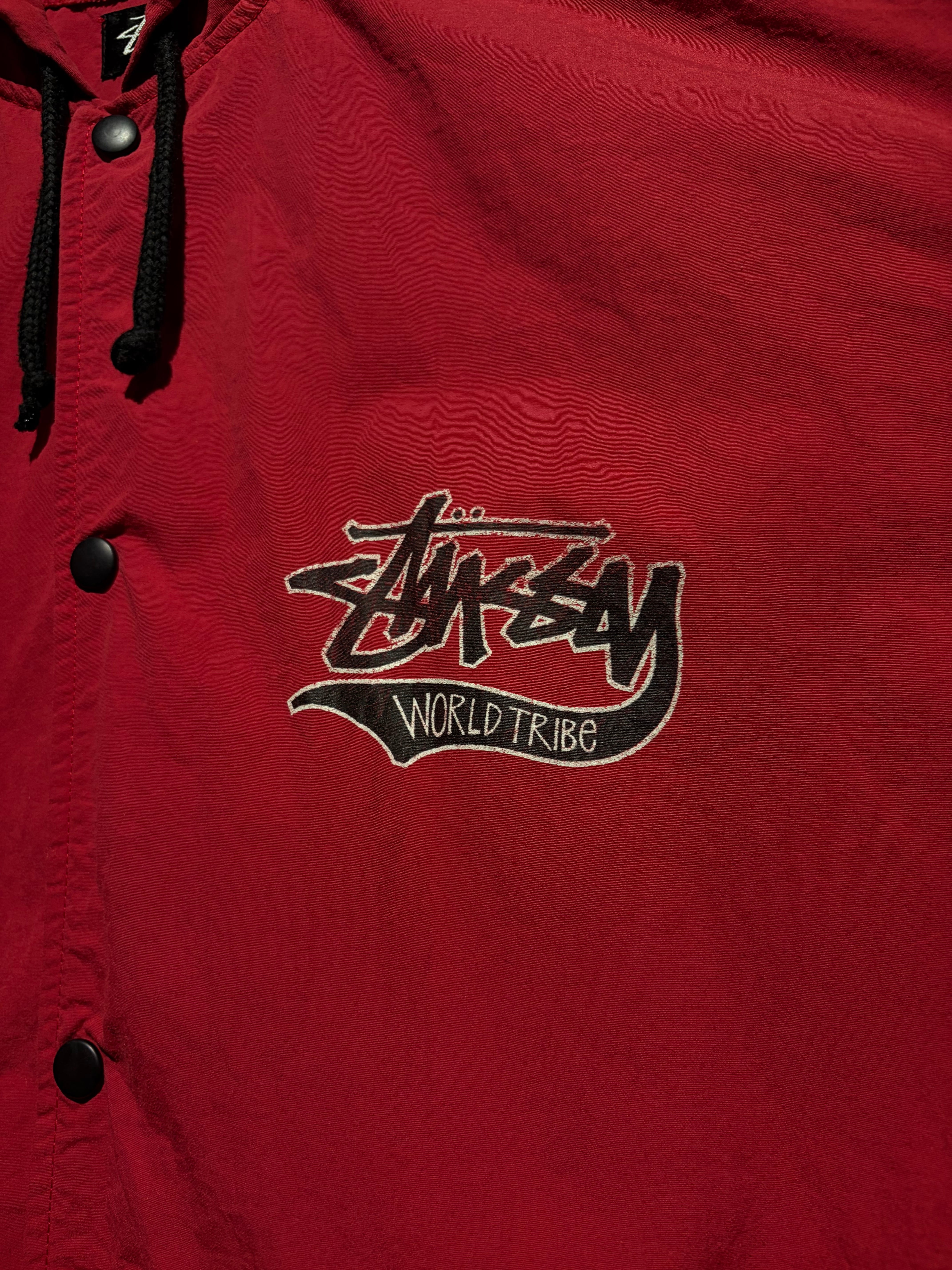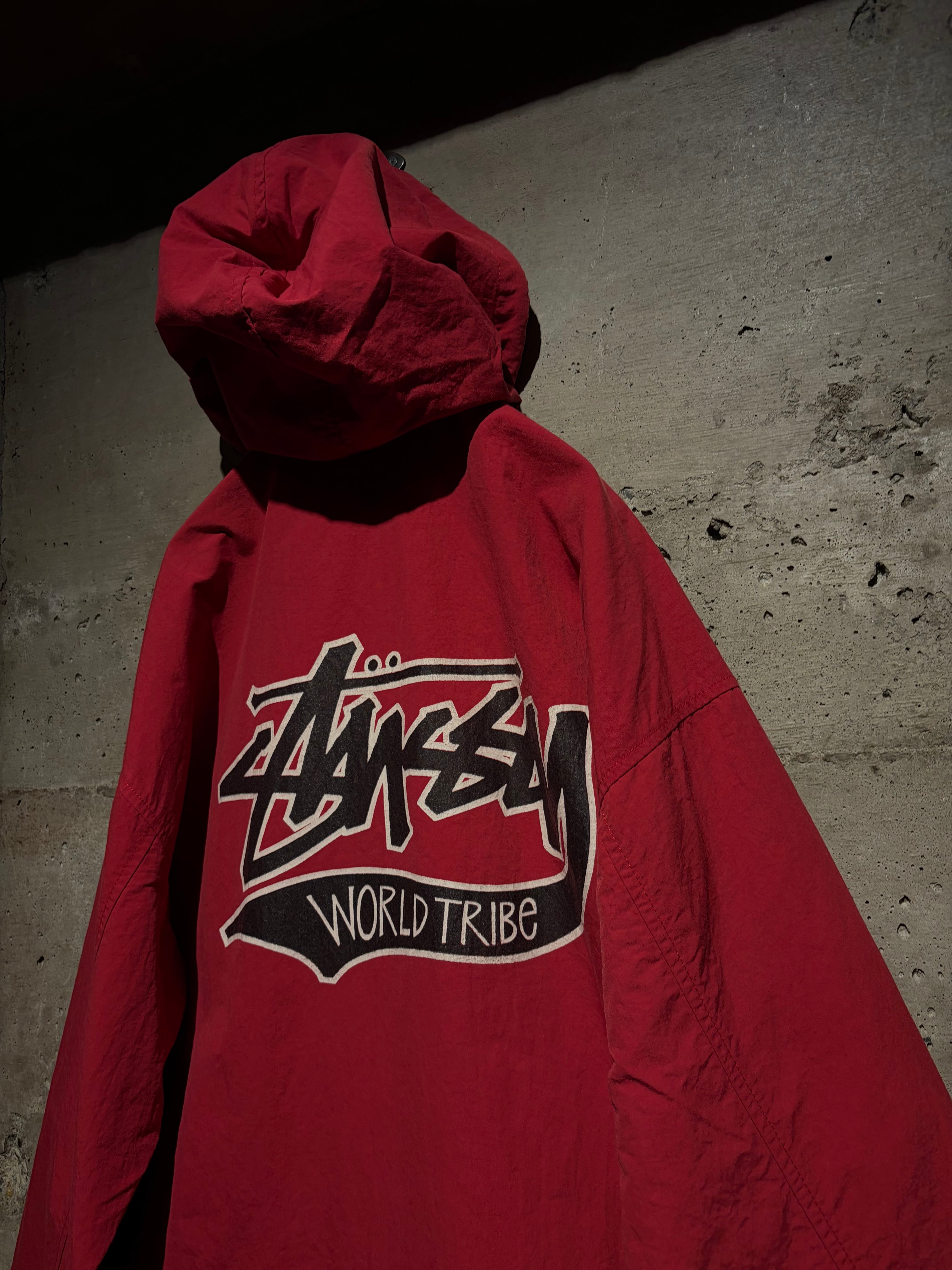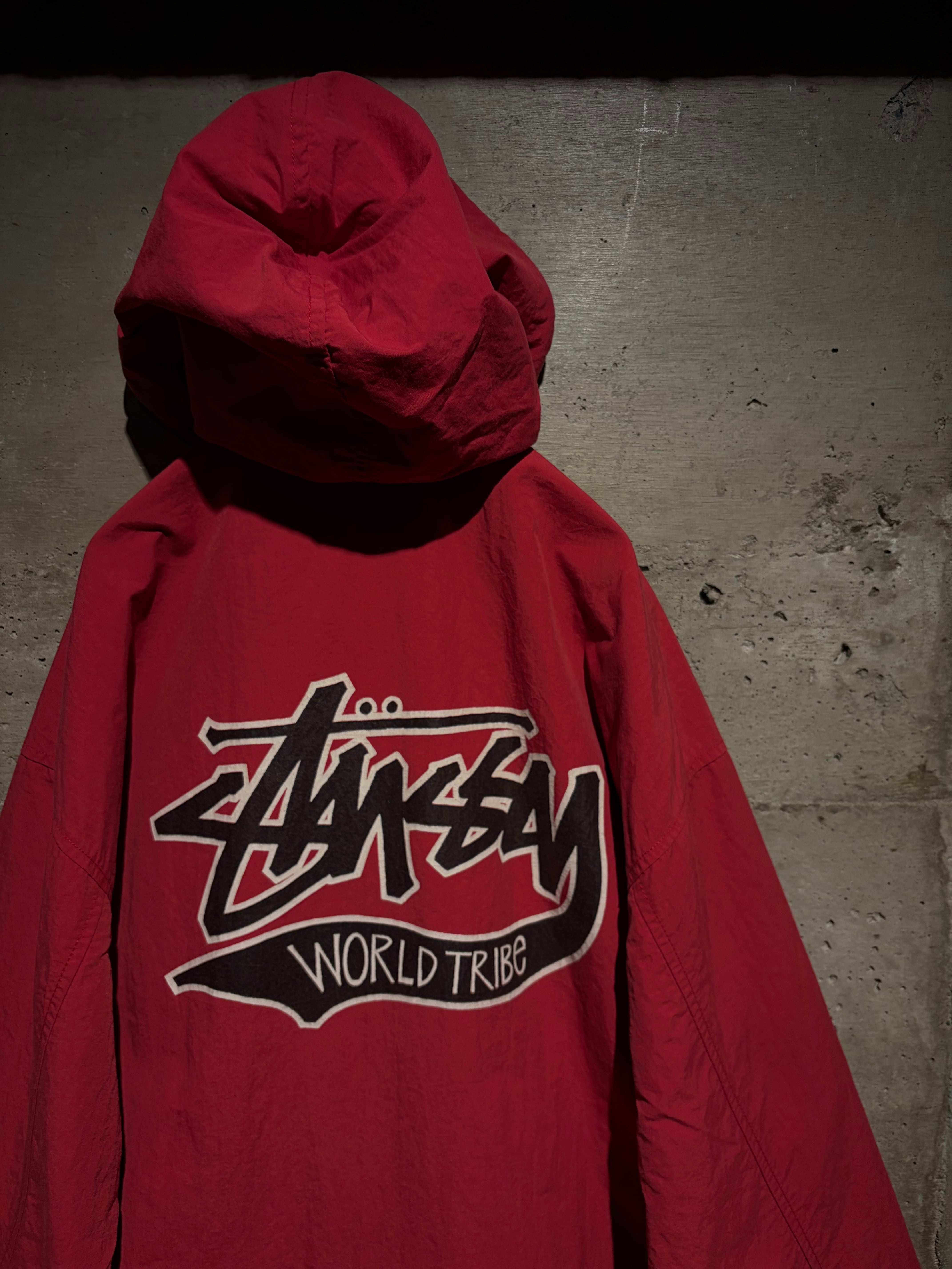 フロントにはStüssyのアイコニックなロゴと“World Tribe”のグラフィックを配置。