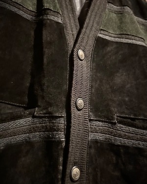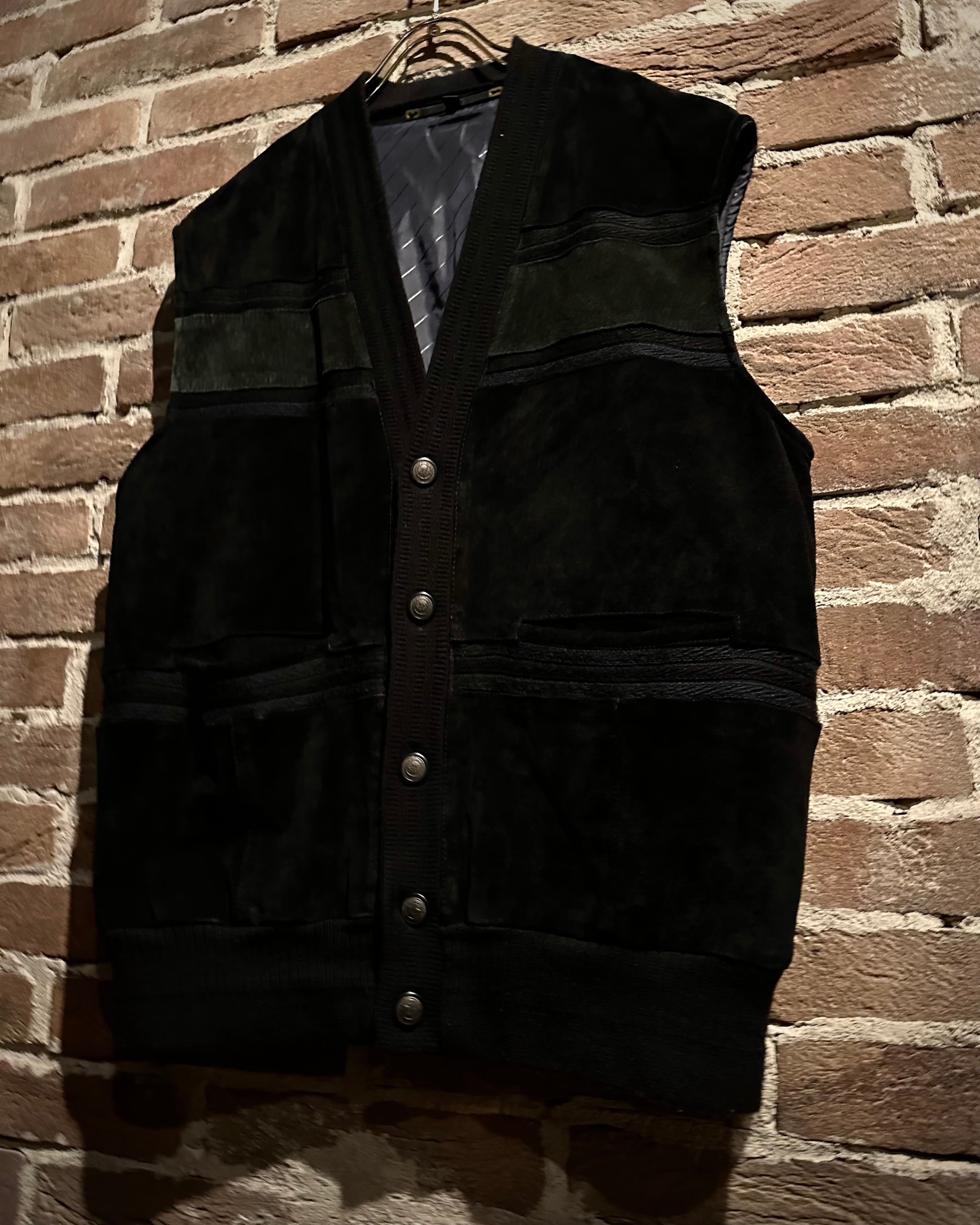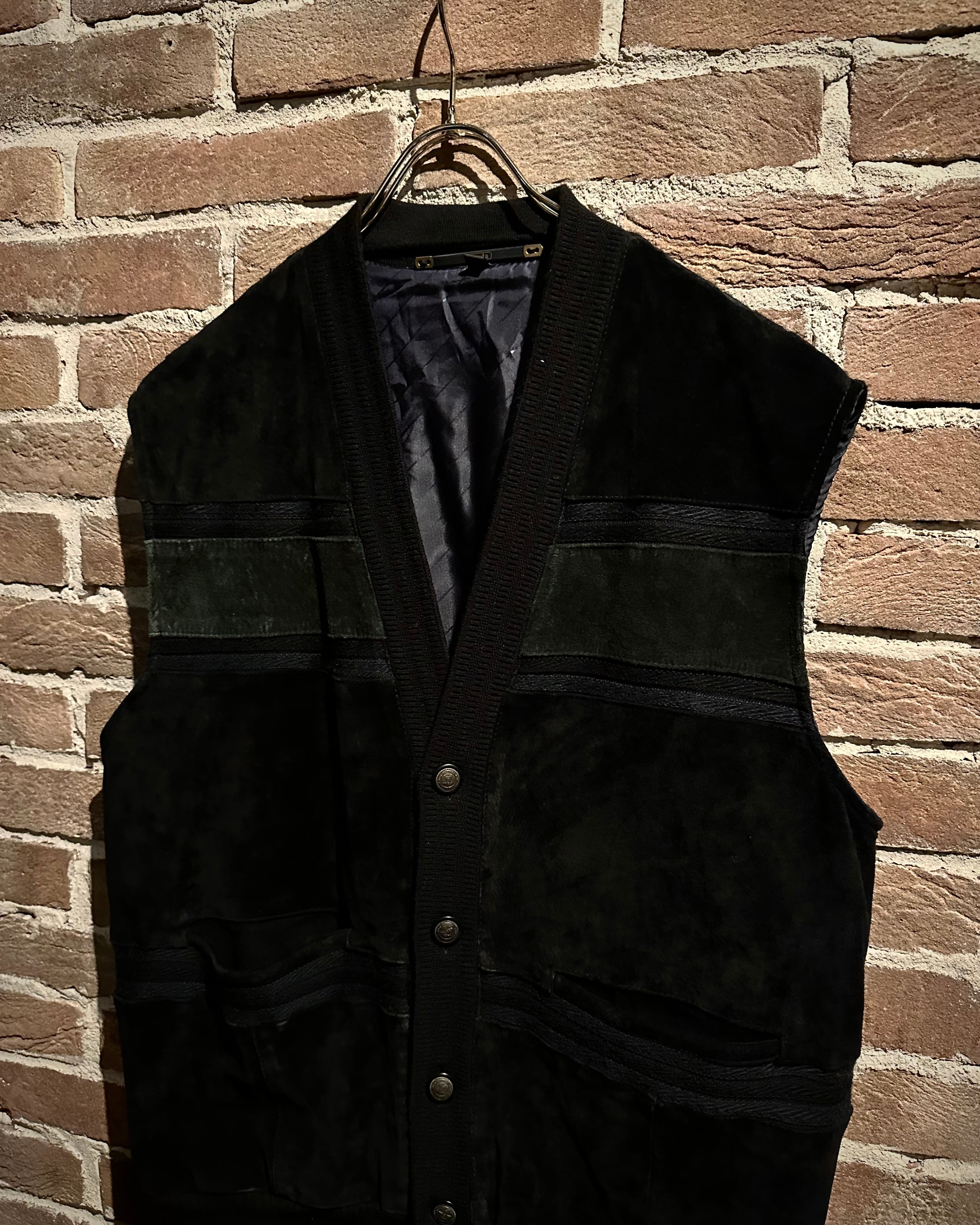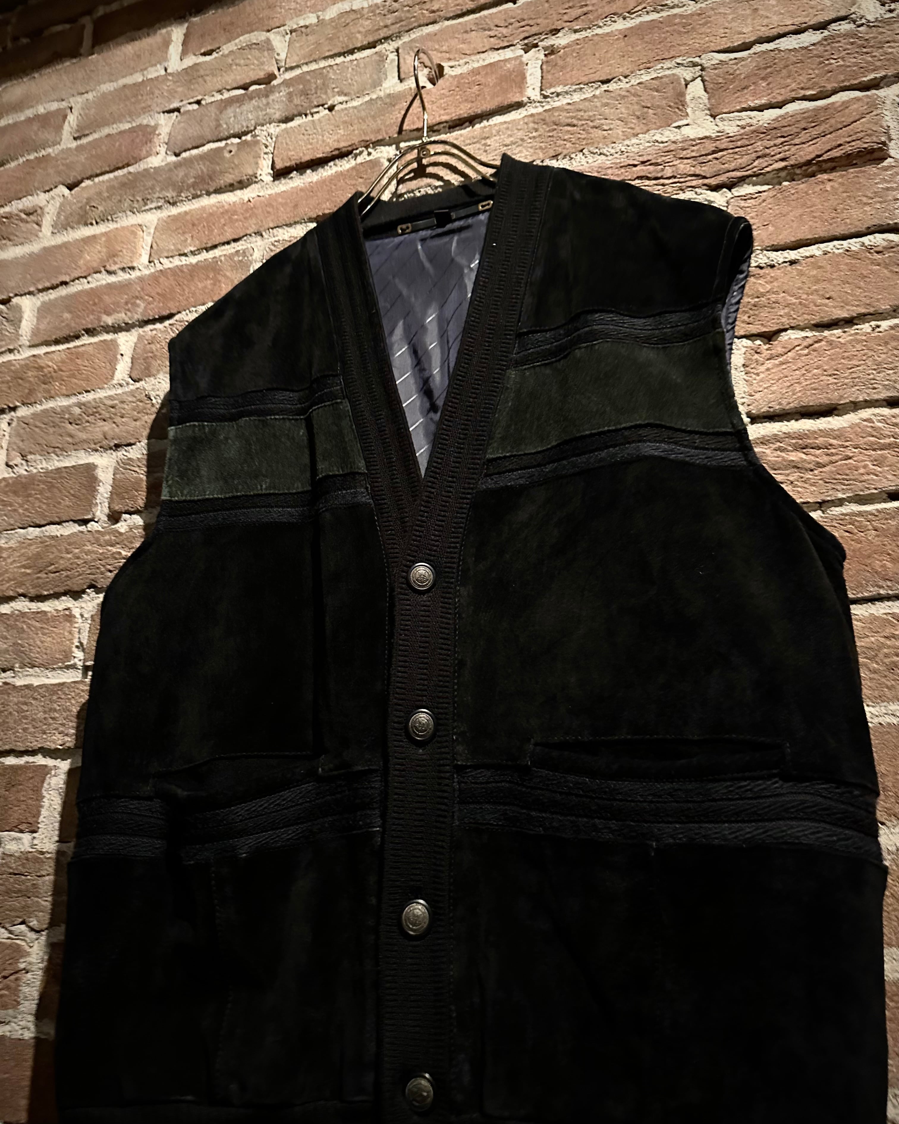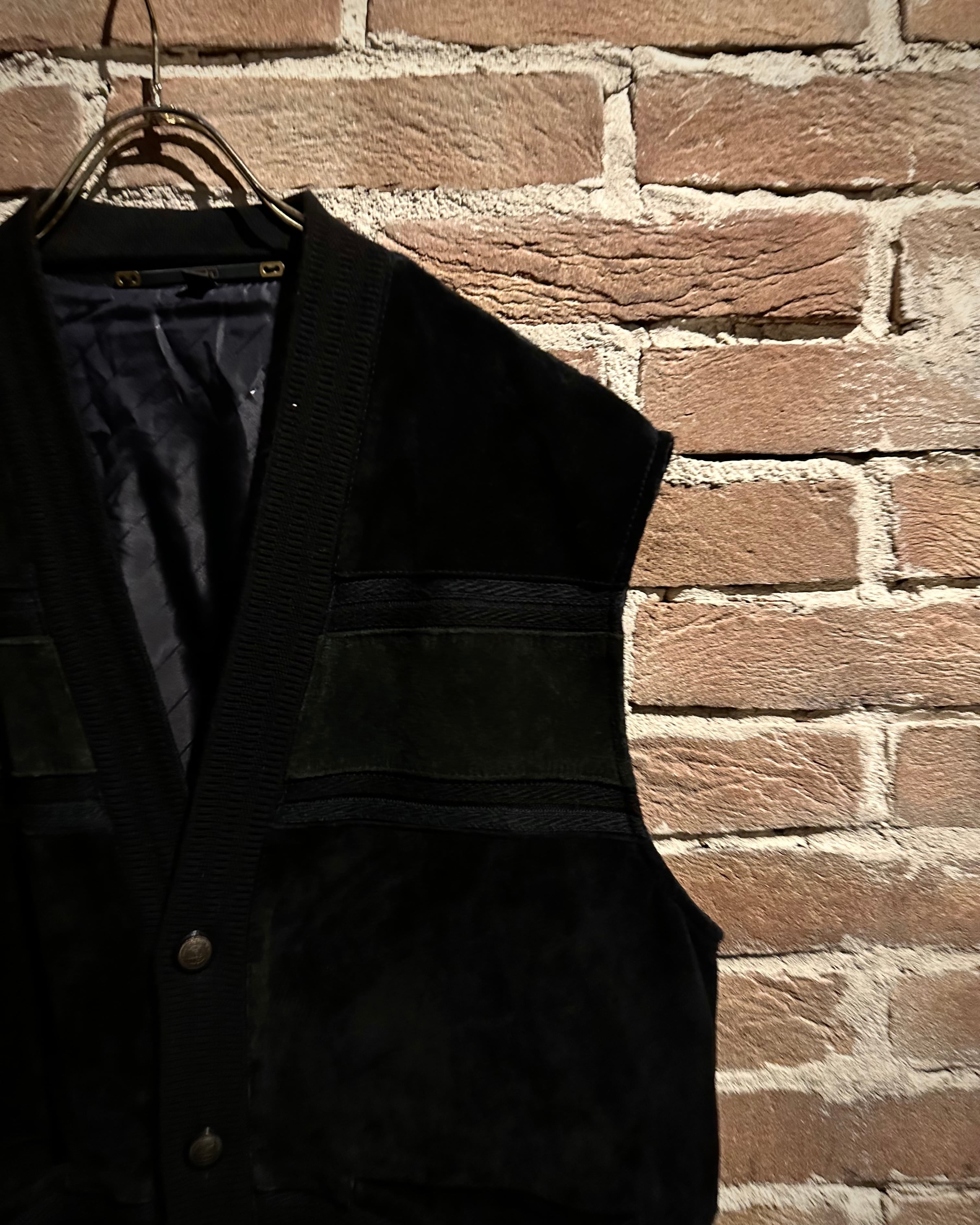 年間通して様々なレイヤードスタイルを楽しめ、店頭大好評頂いておりますベストアイテムより、スエードの切り替えの素材使いが光る80's〜90's ユーロヴィンテージの逸品をご紹介いたします。