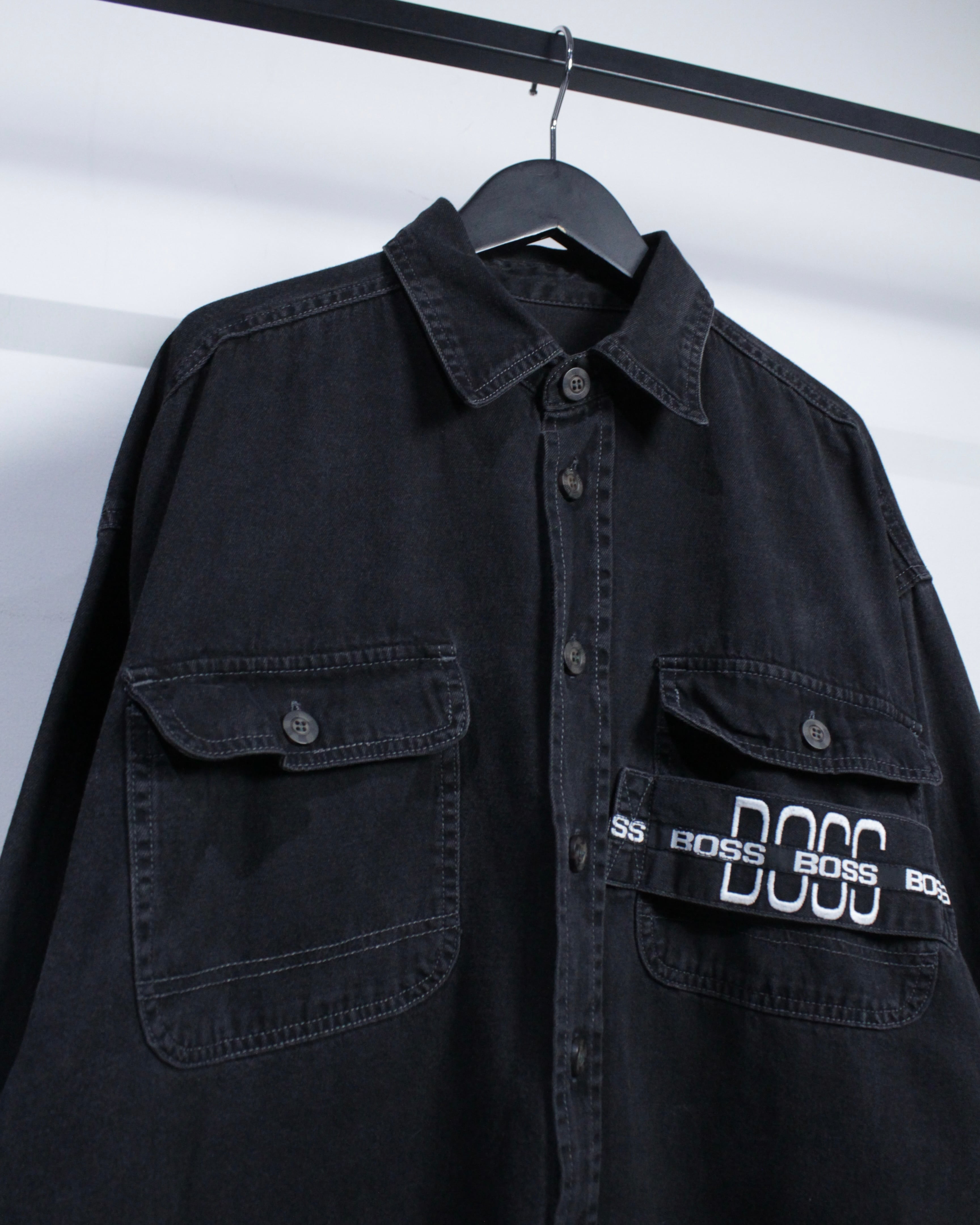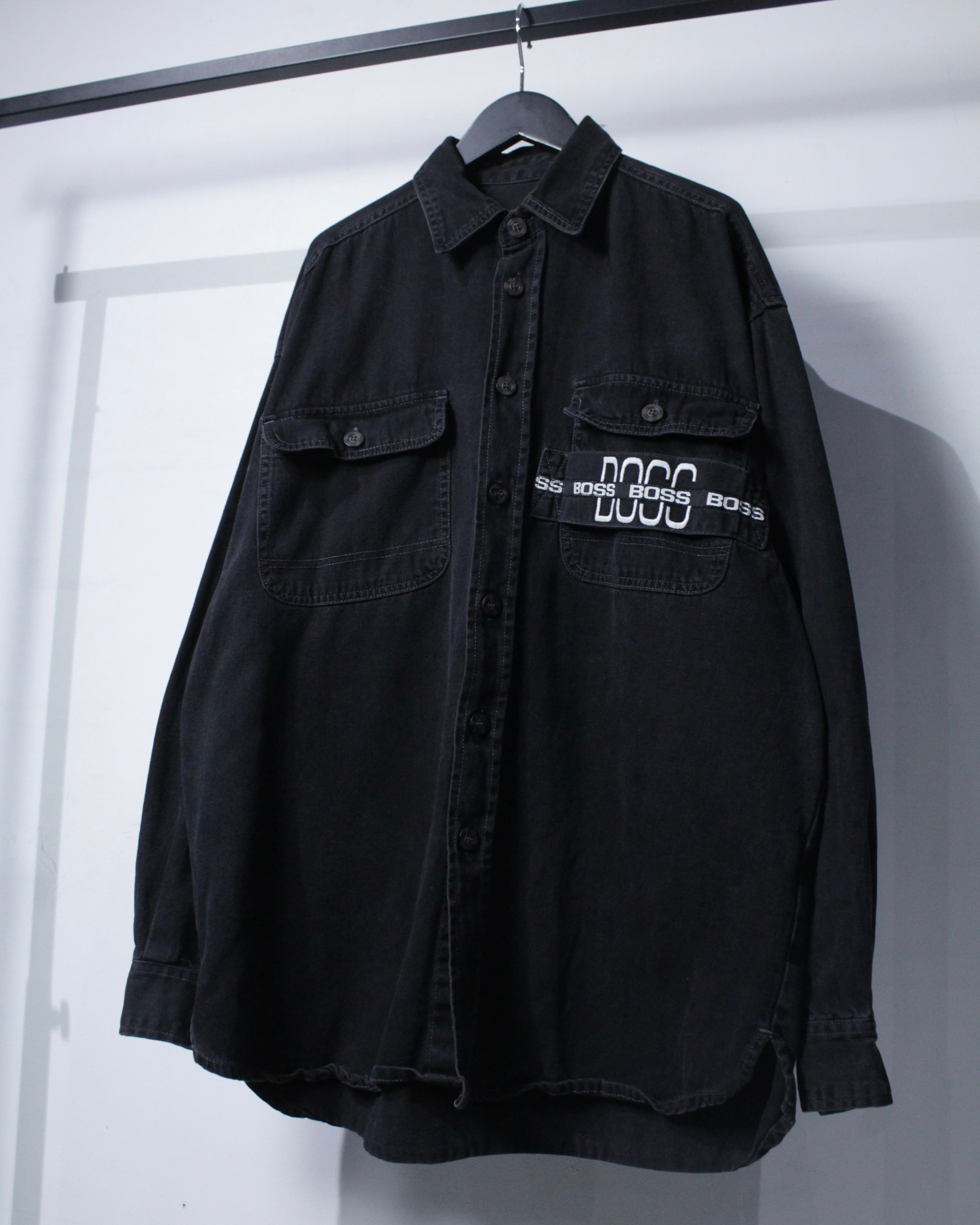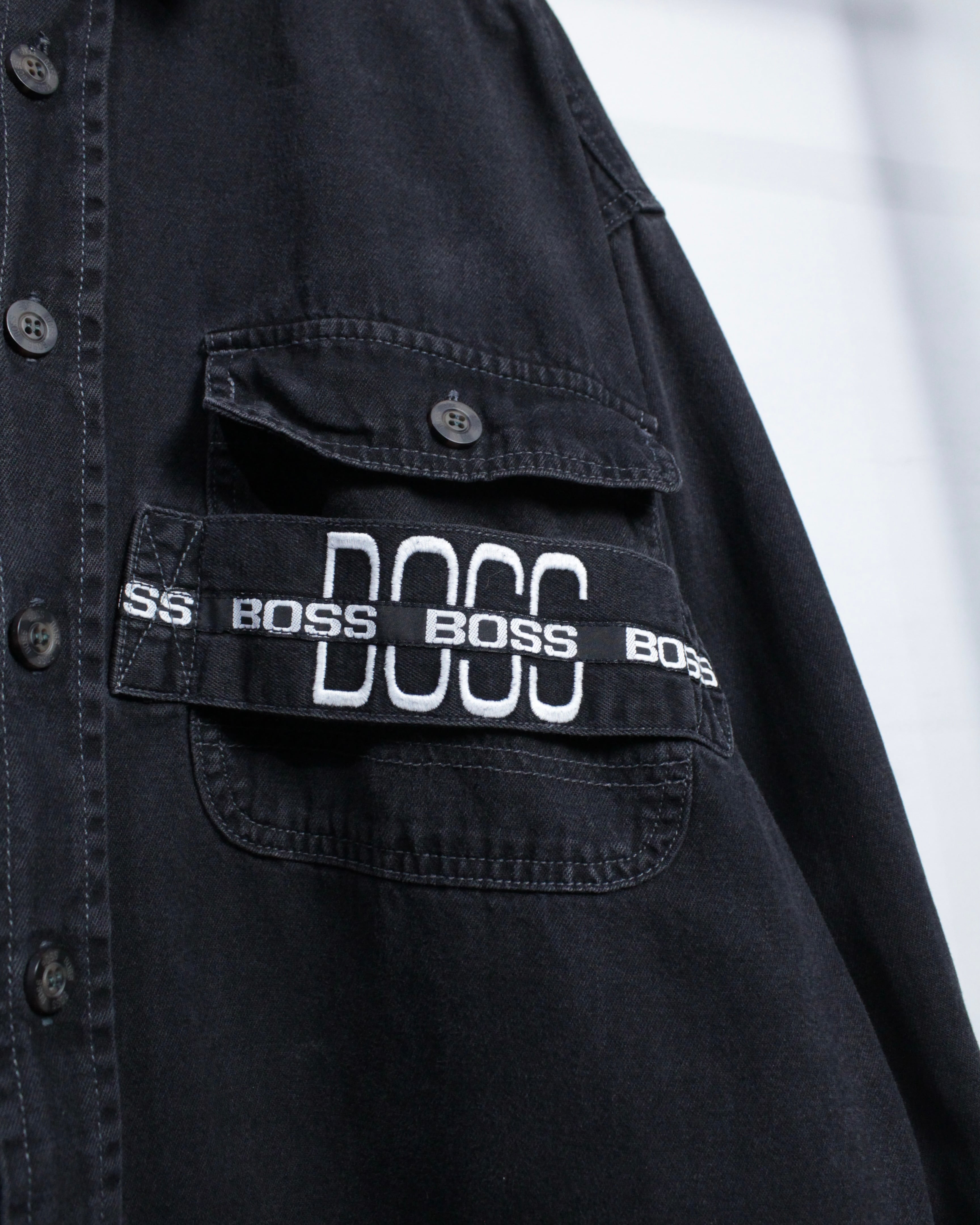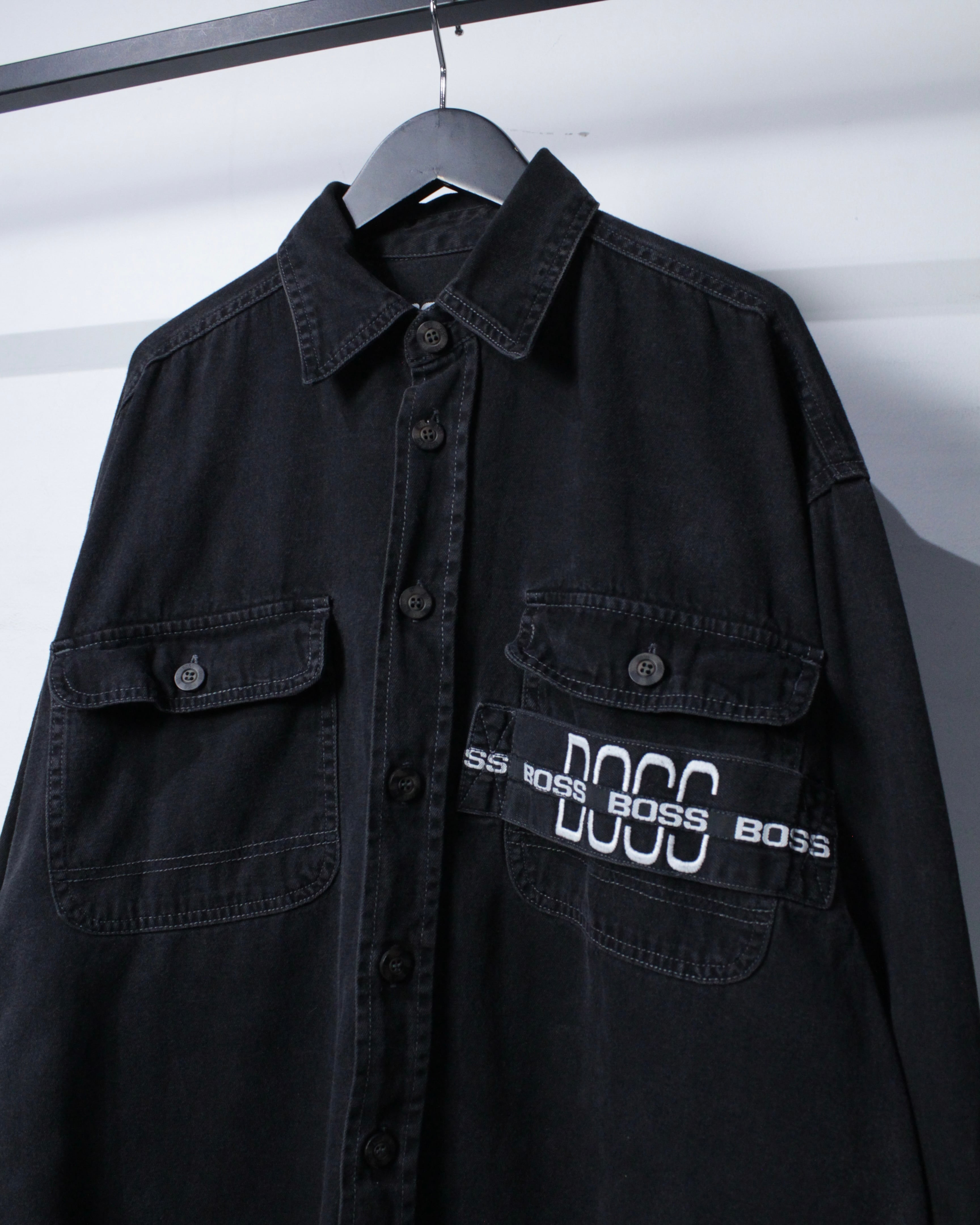 90年代のストリートシーンで絶大な人気を誇ったブランド“BOSS”より、フェードの効いたブラックデニムを使用したデニムシャツジャケット。
