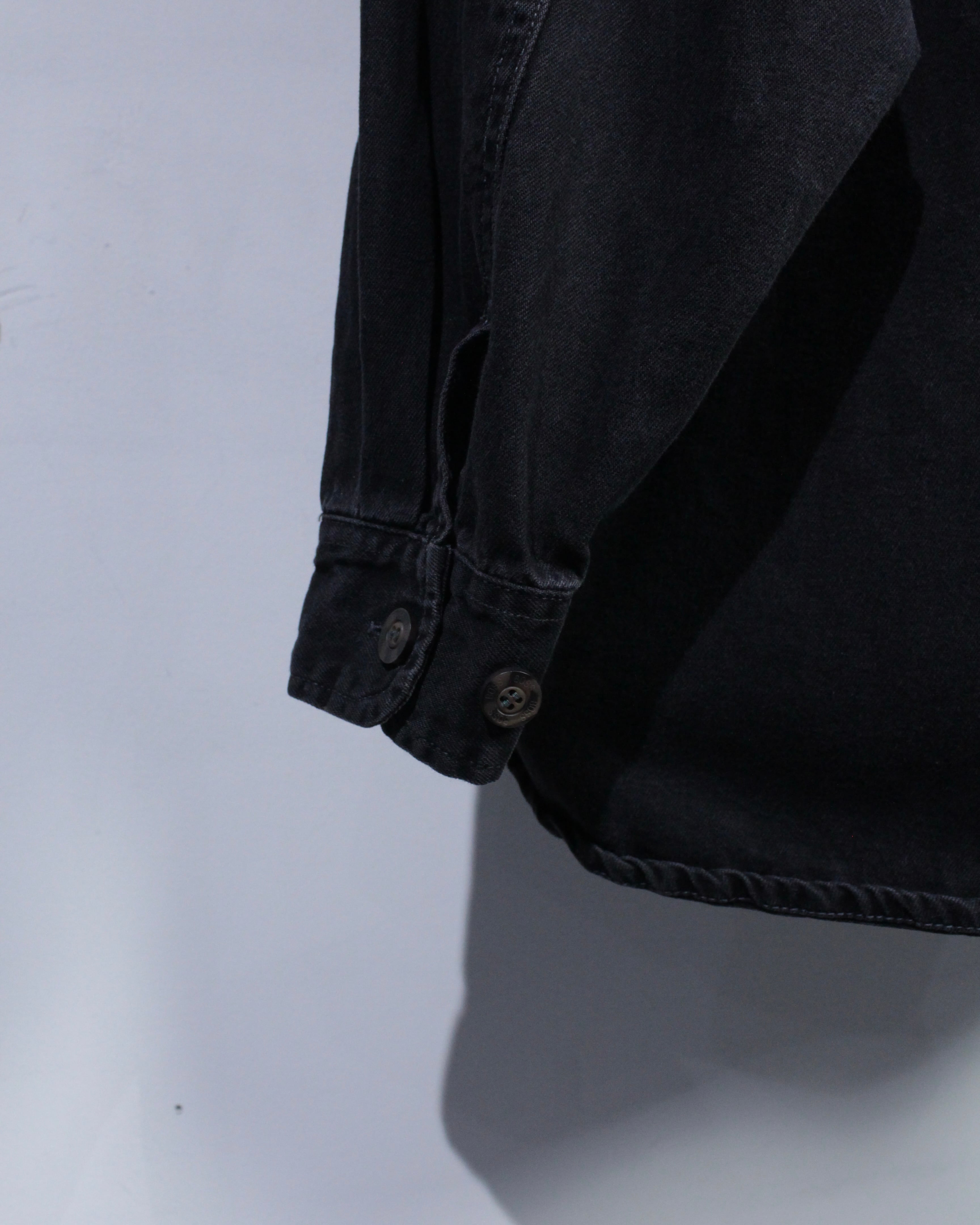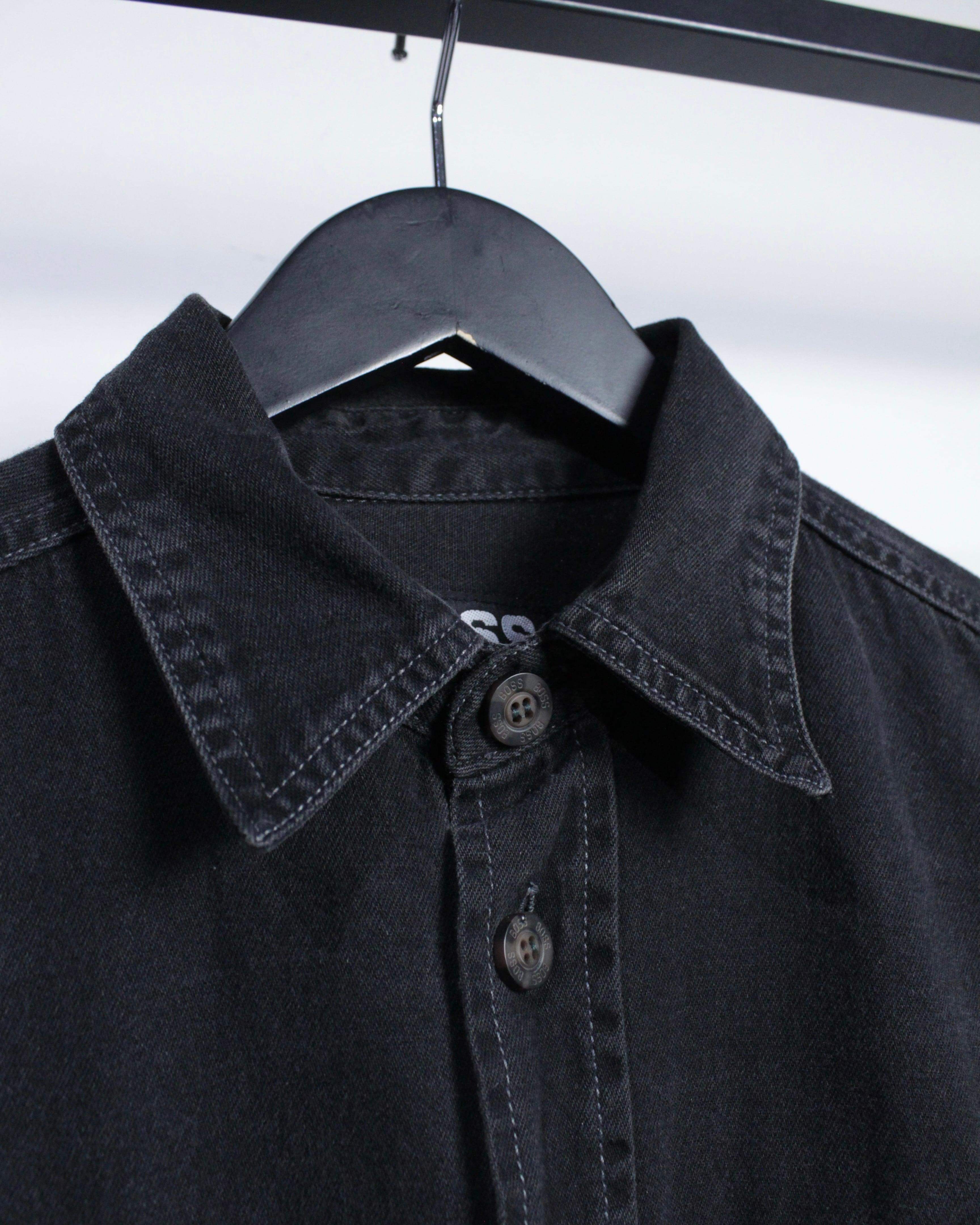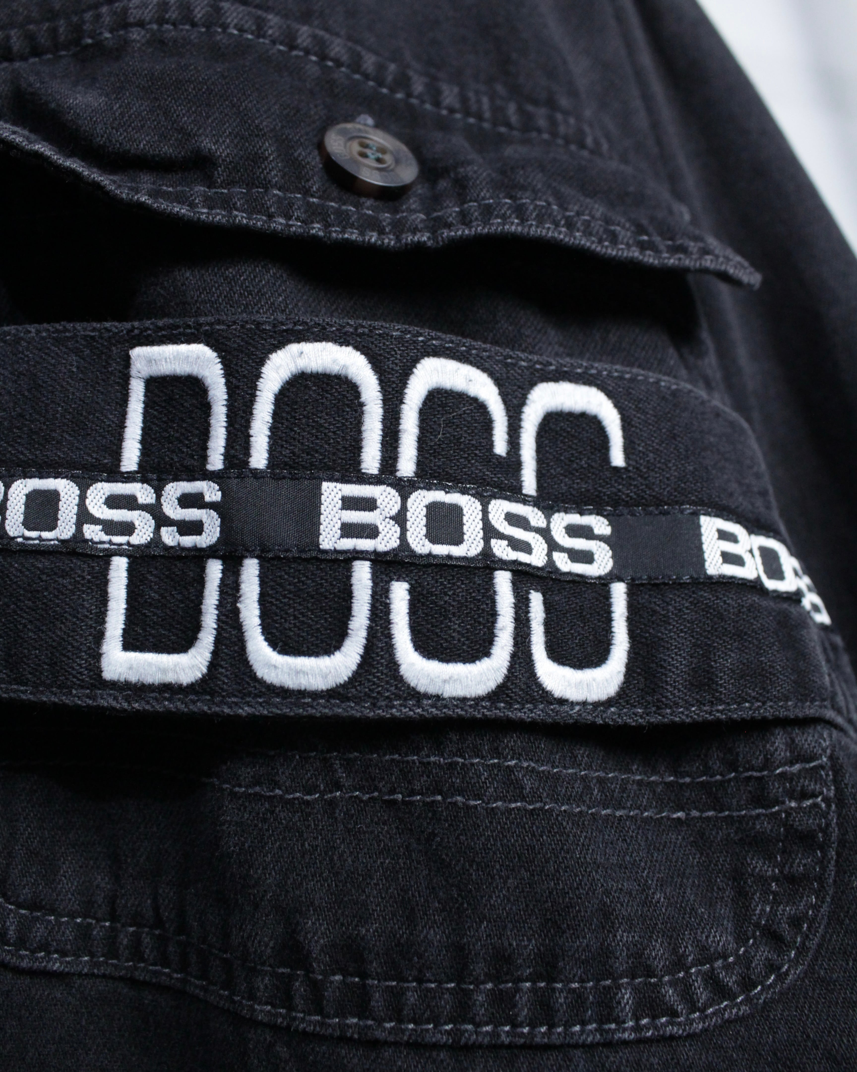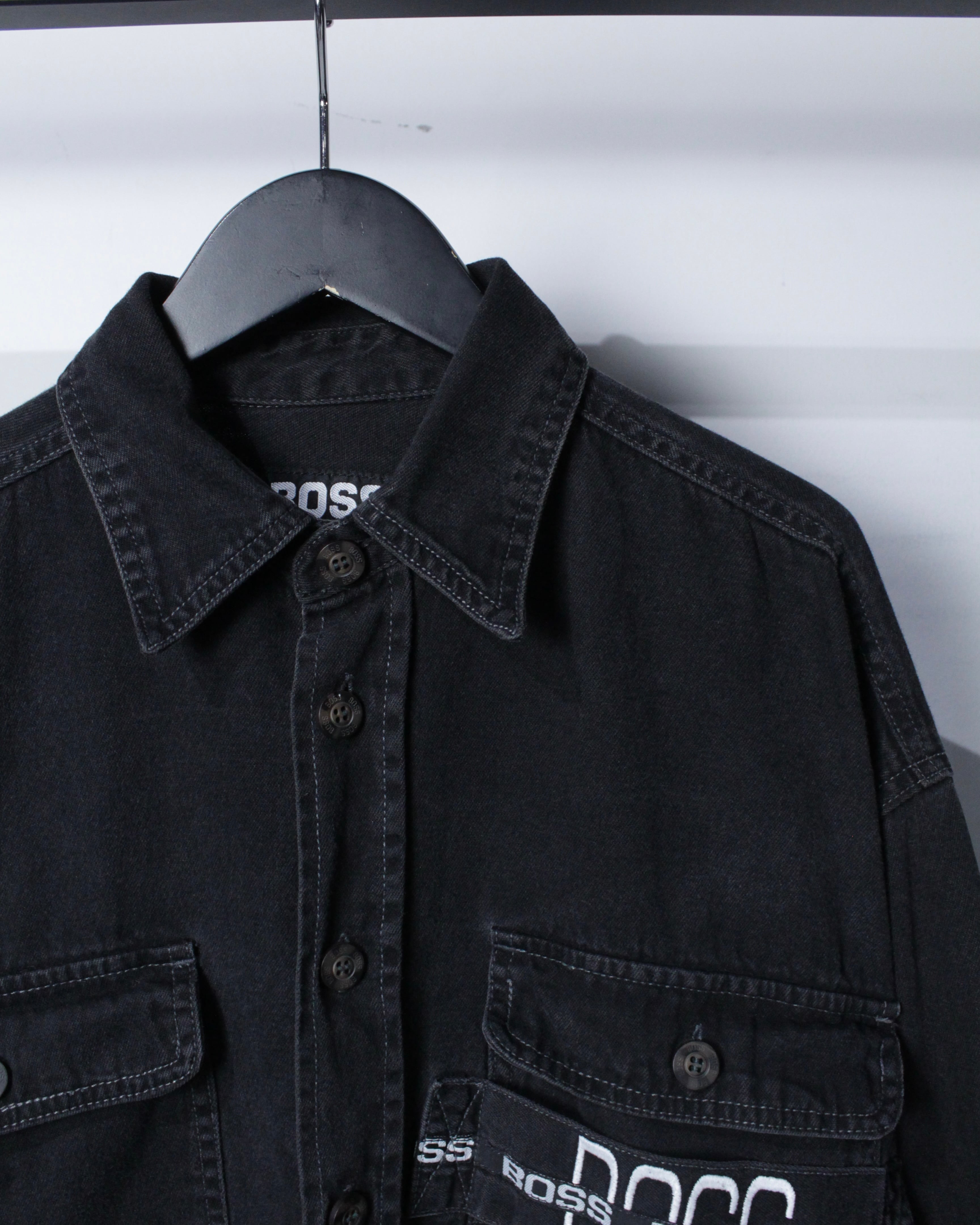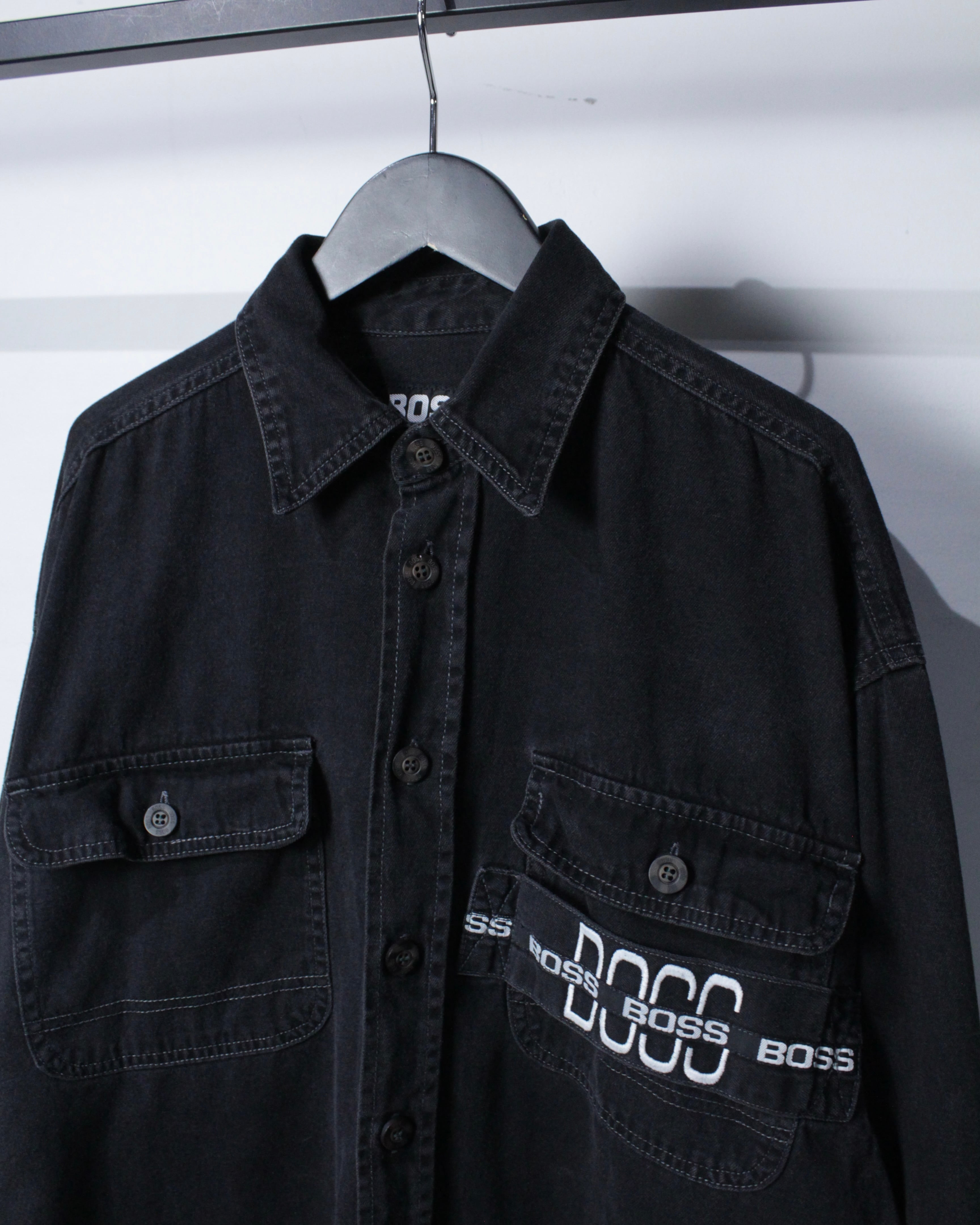90年代のストリートシーンで絶大な人気を誇ったブランド“BOSS”より、フェードの効いたブラックデニムを使用したデニムシャツジャケット。