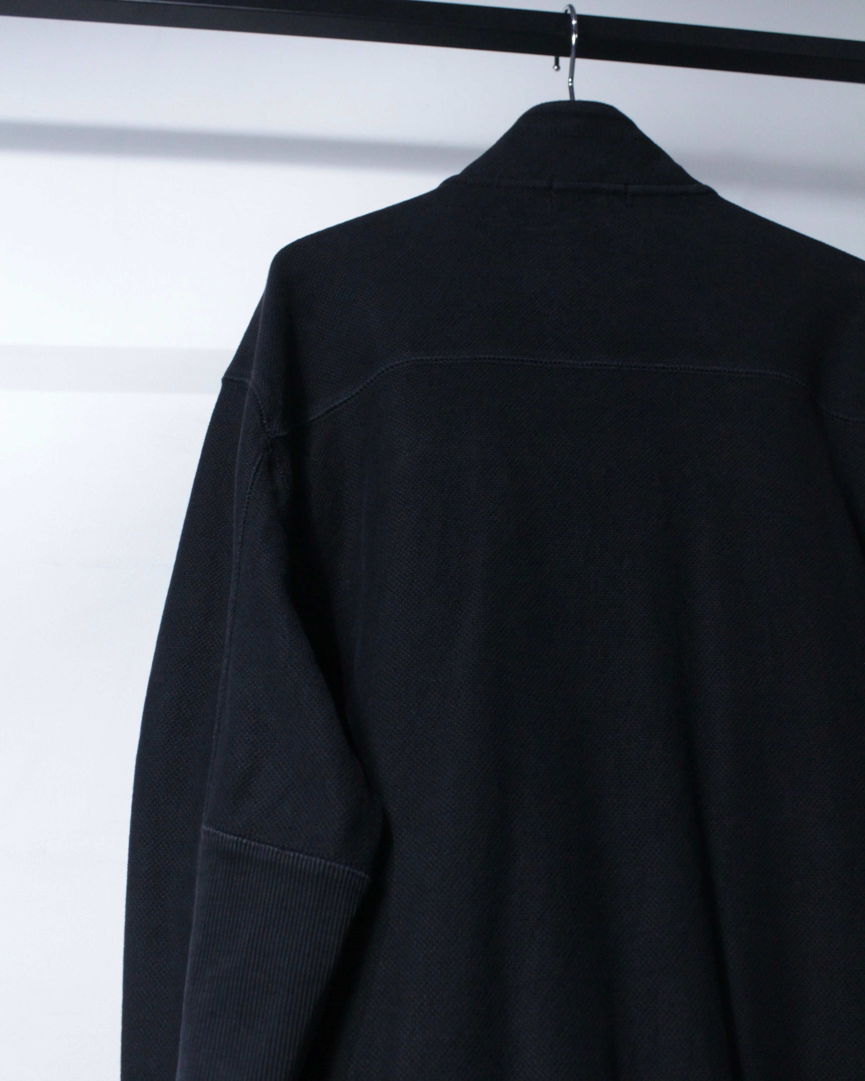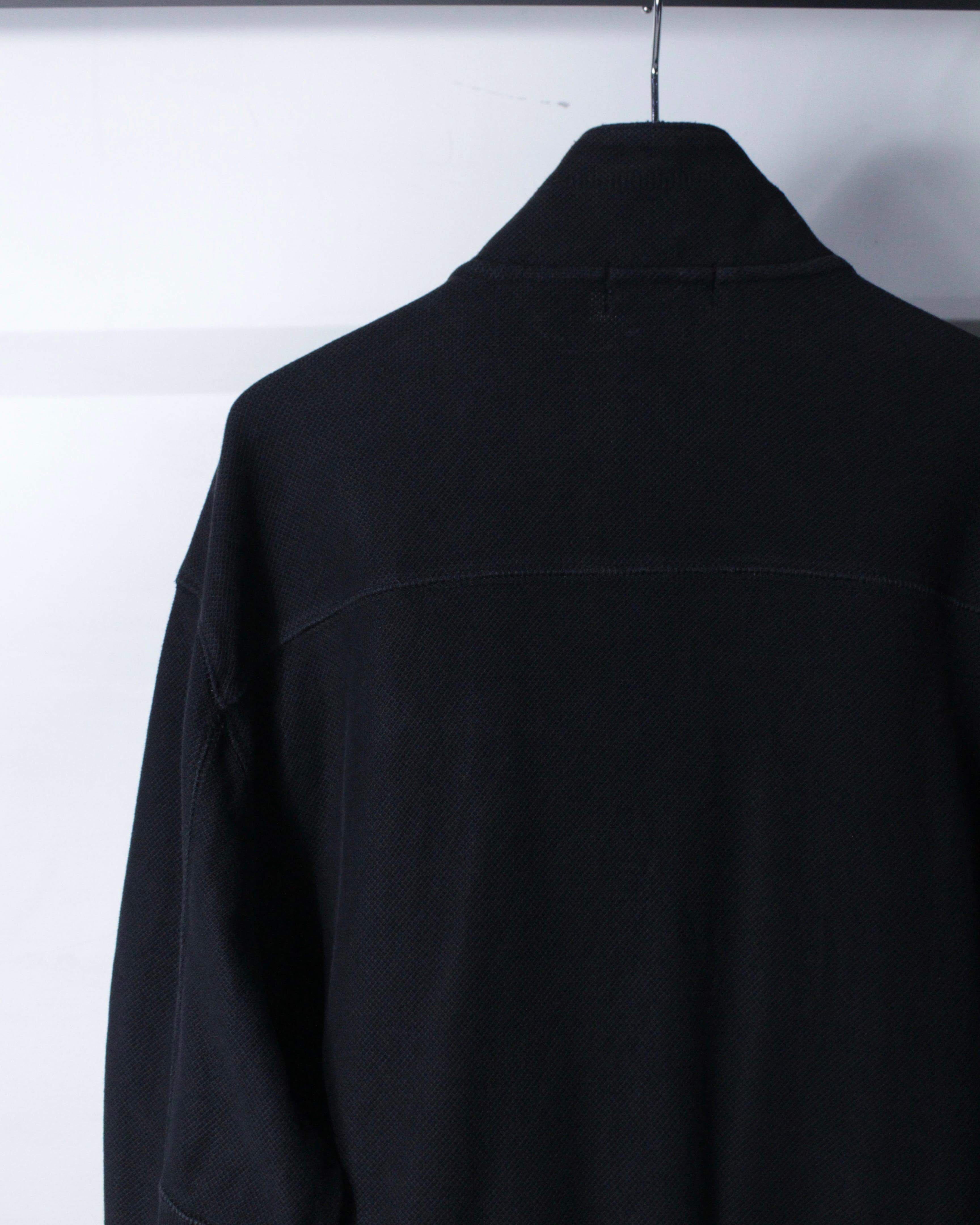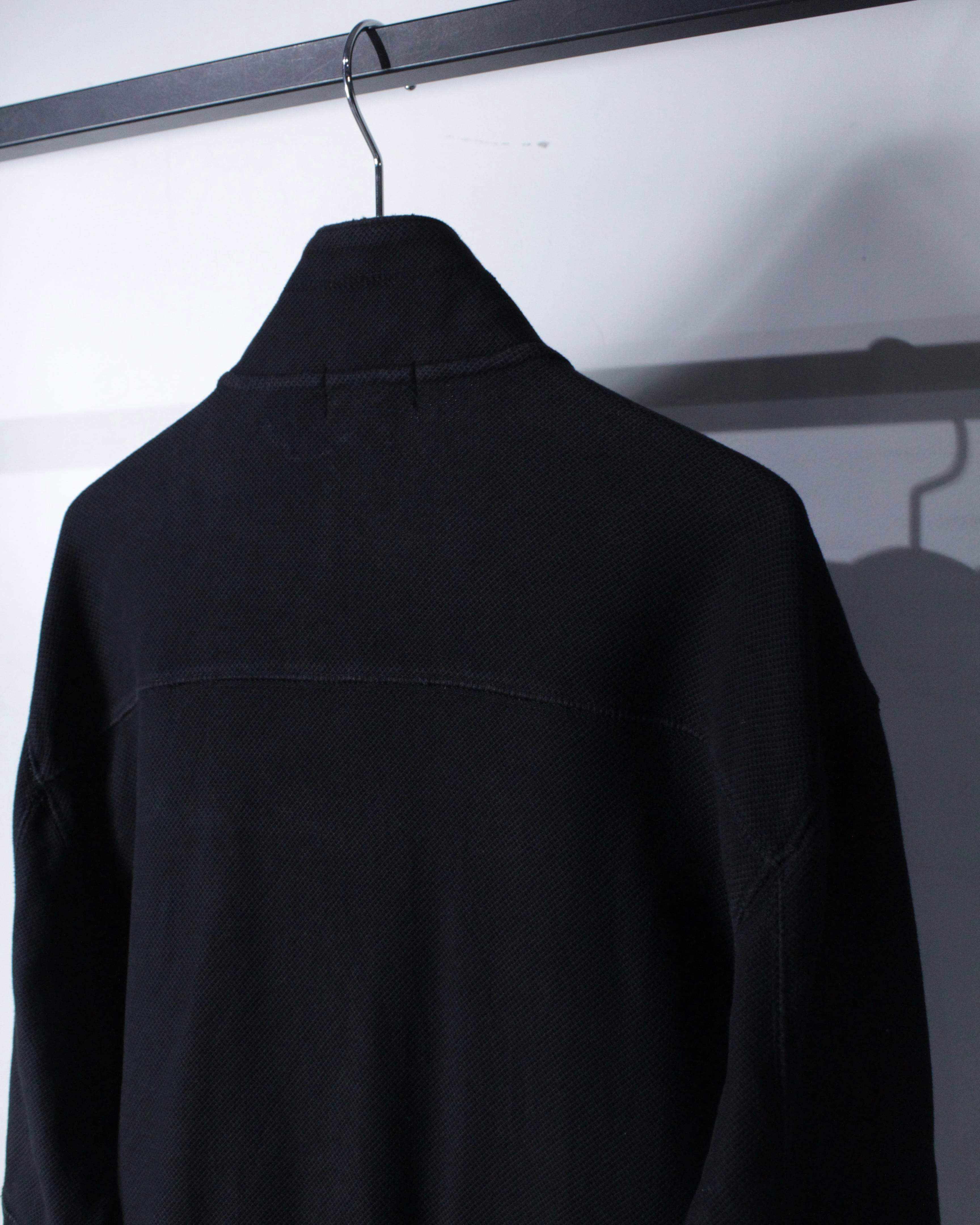 シルエットは 程よくゆとりを持たせたルーズなサイズ感。通気性に優れたコットン鹿の子素材ならではの軽やかな着用感で、長時間の着用でもストレスなく着用可能。ジップアップ仕様のため羽織りとしても扱いやすく、シーズンを問わず活躍してくれます。