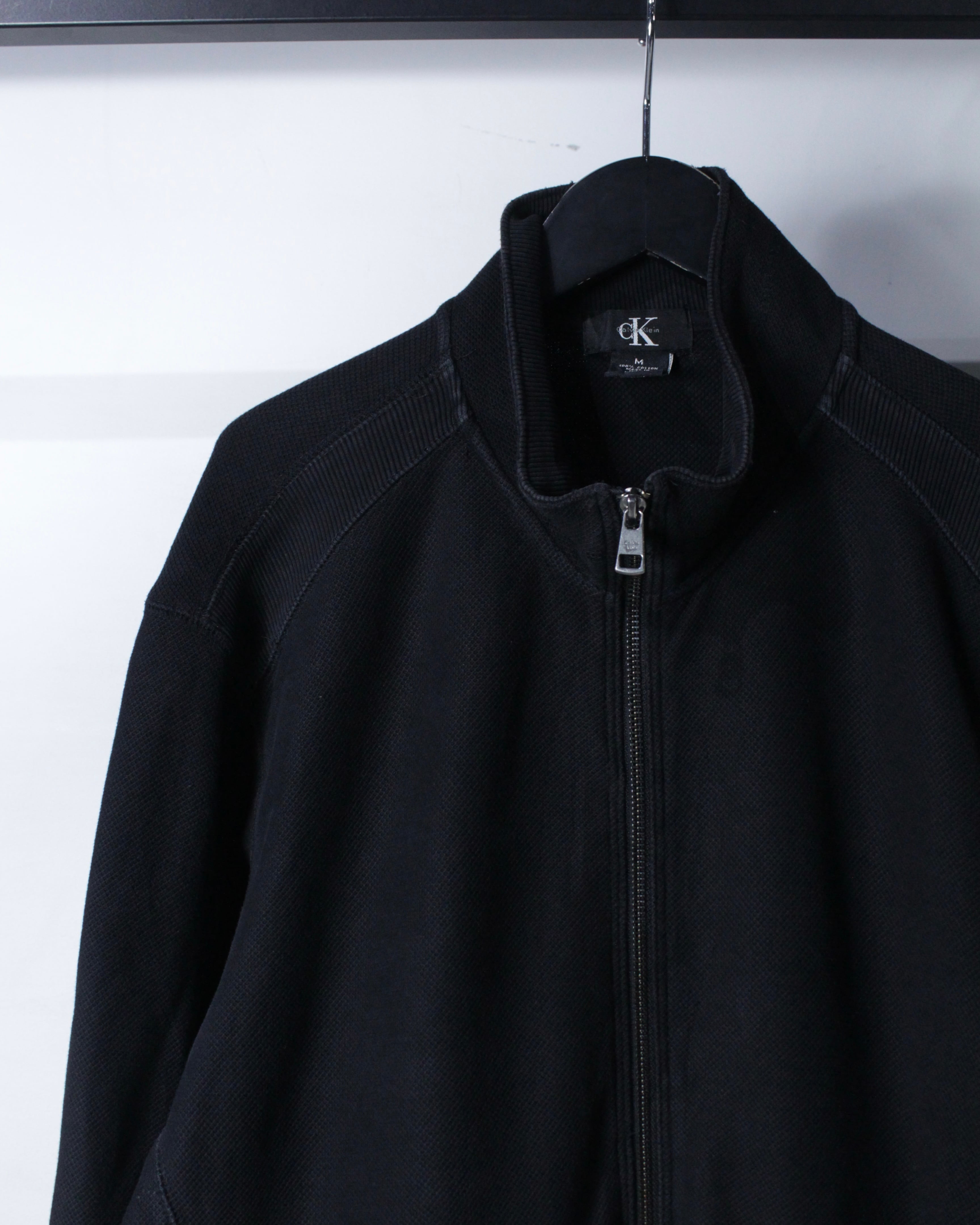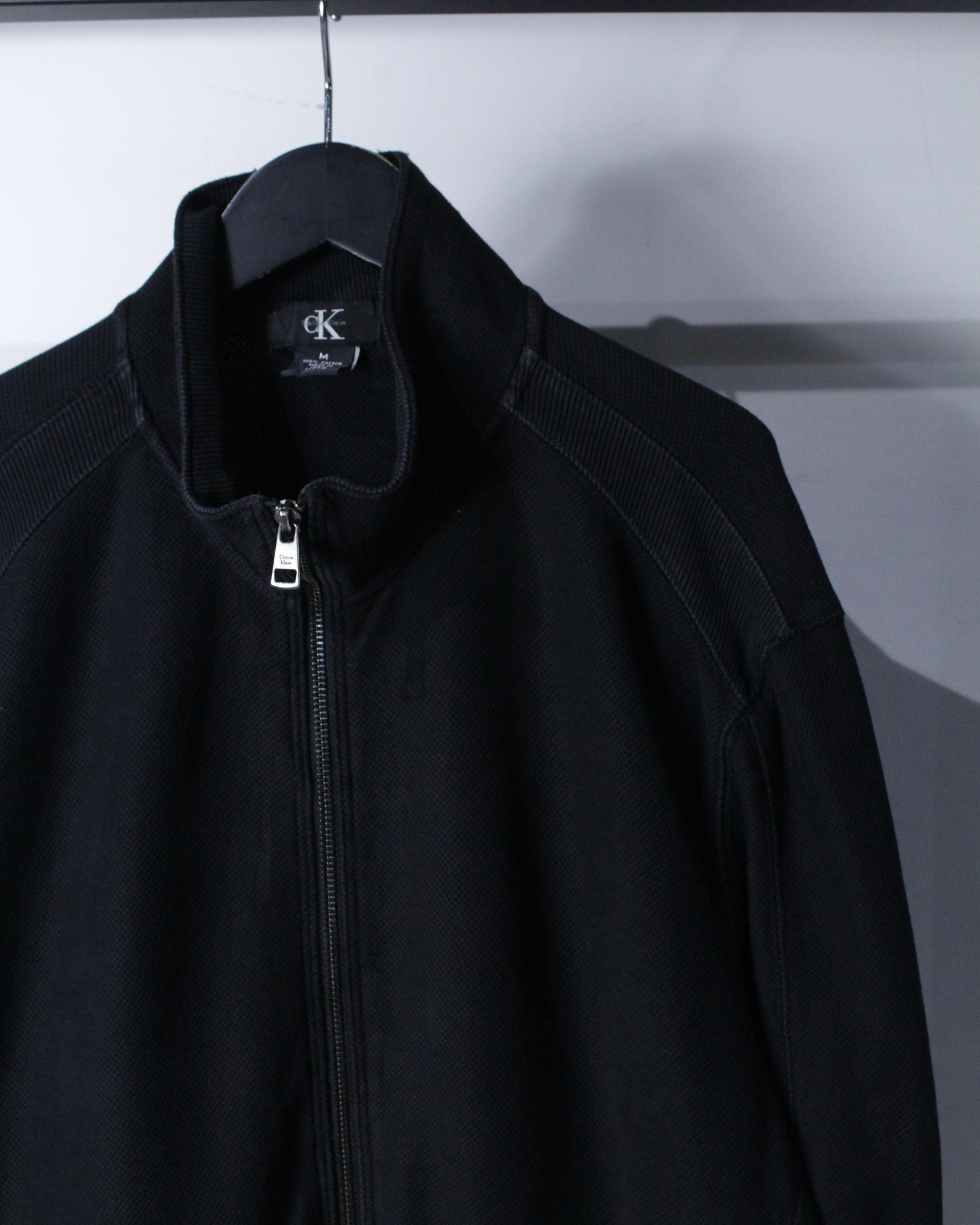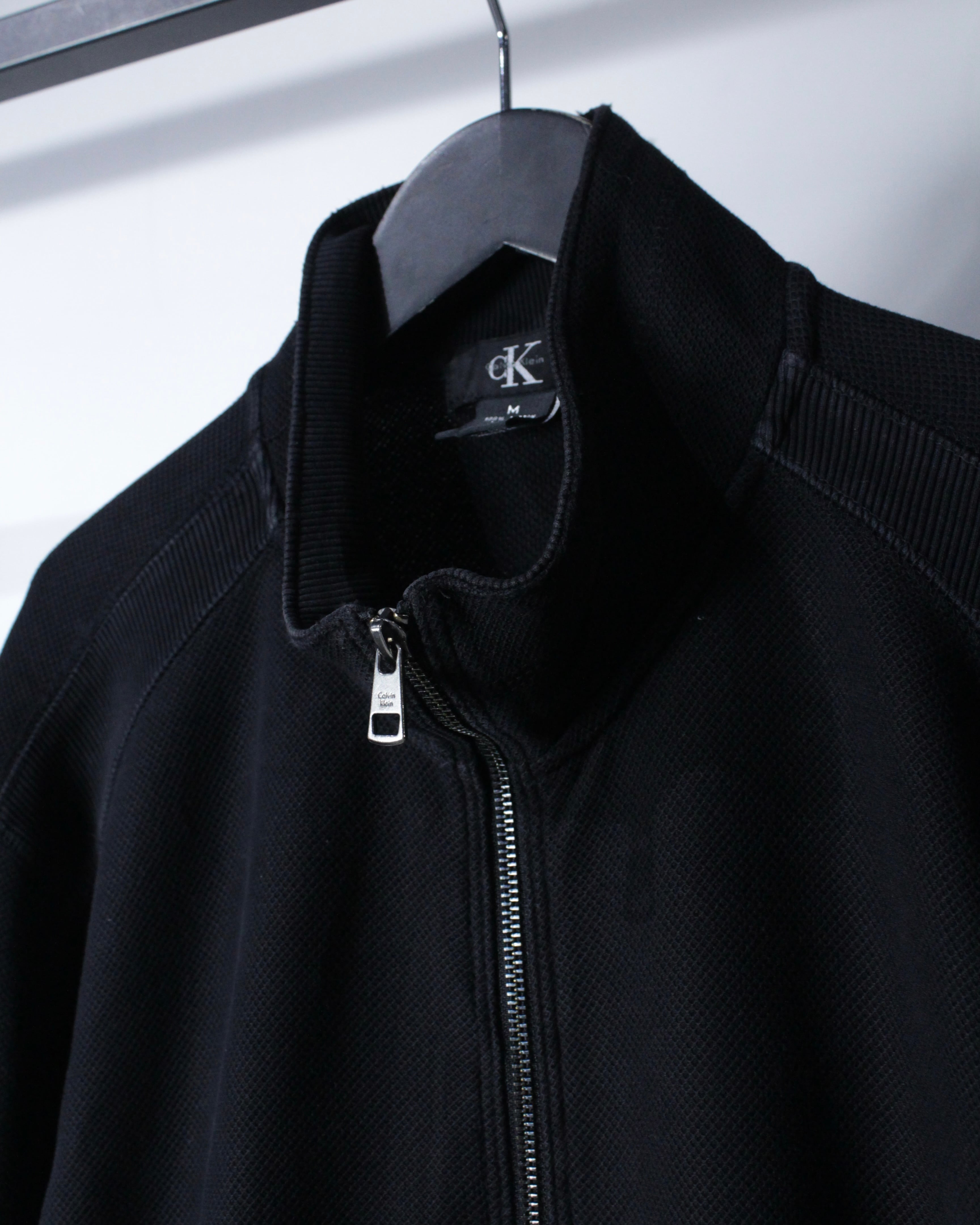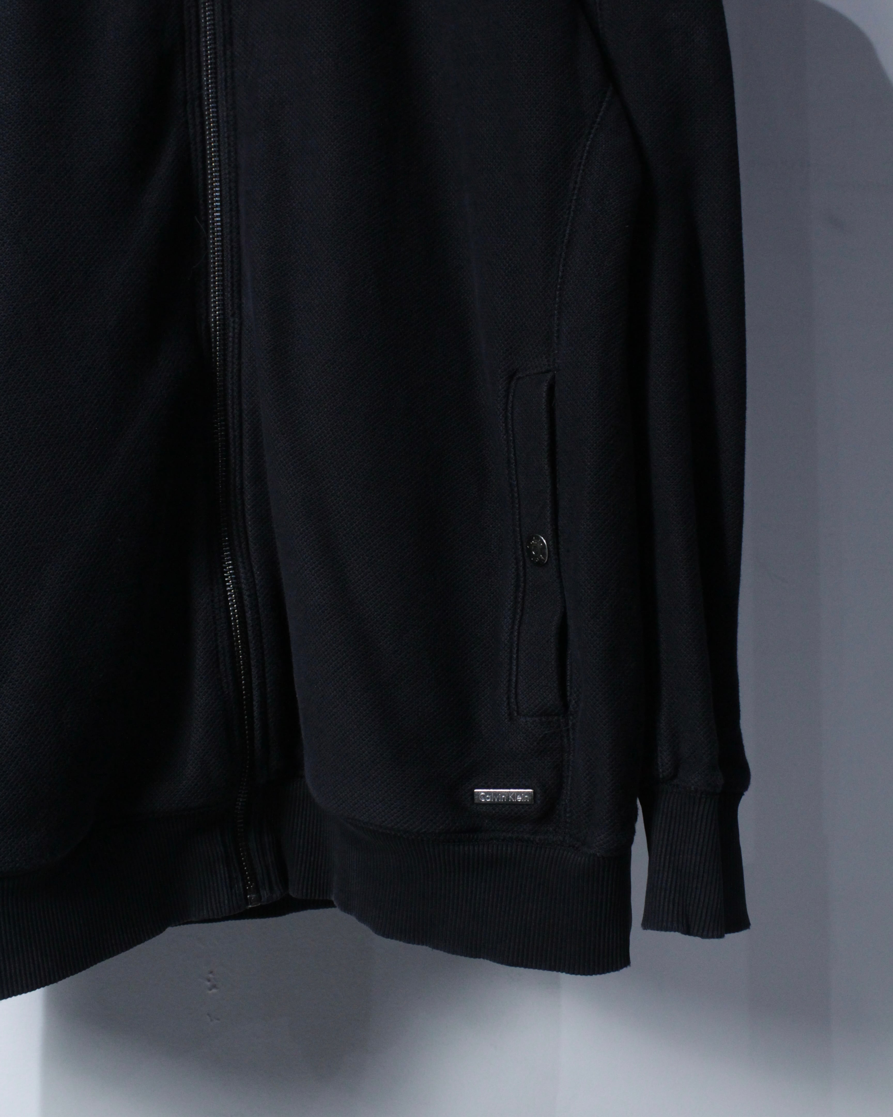 アメリカを代表するブランド Calvin Klein より、コットン100%の鹿の子生地をボディに使用した、ミニマルな美学を感じさせるジップアップジャケット。
