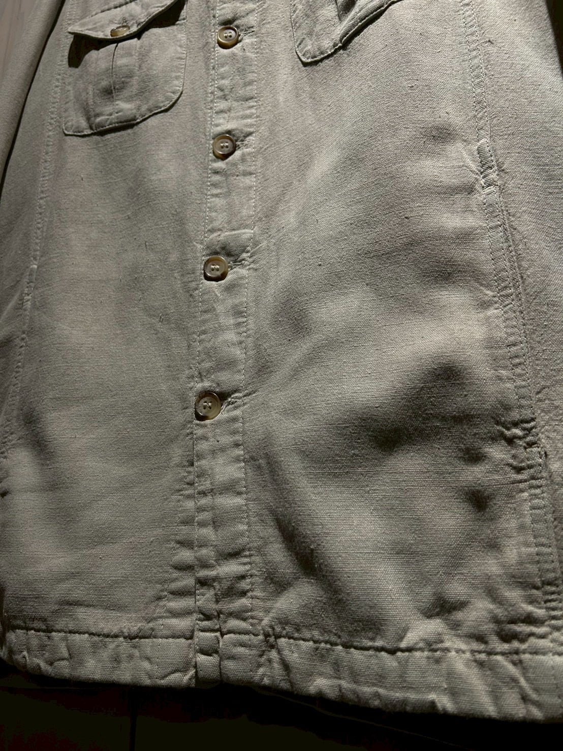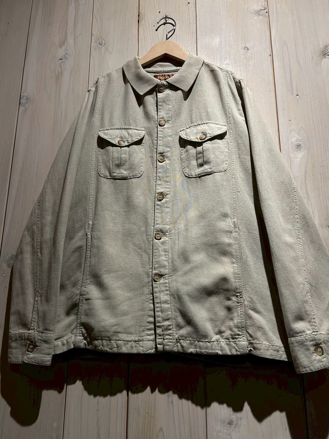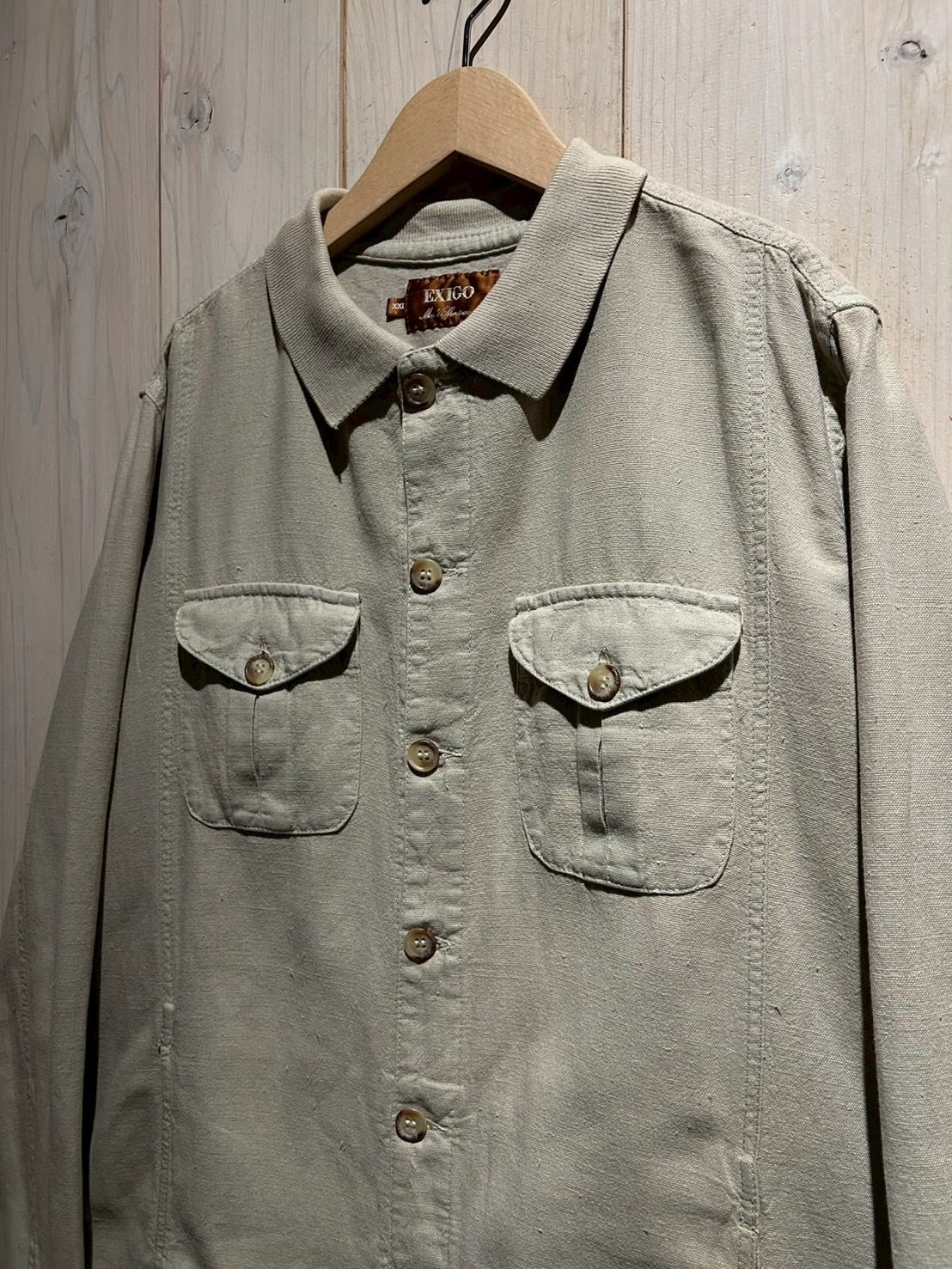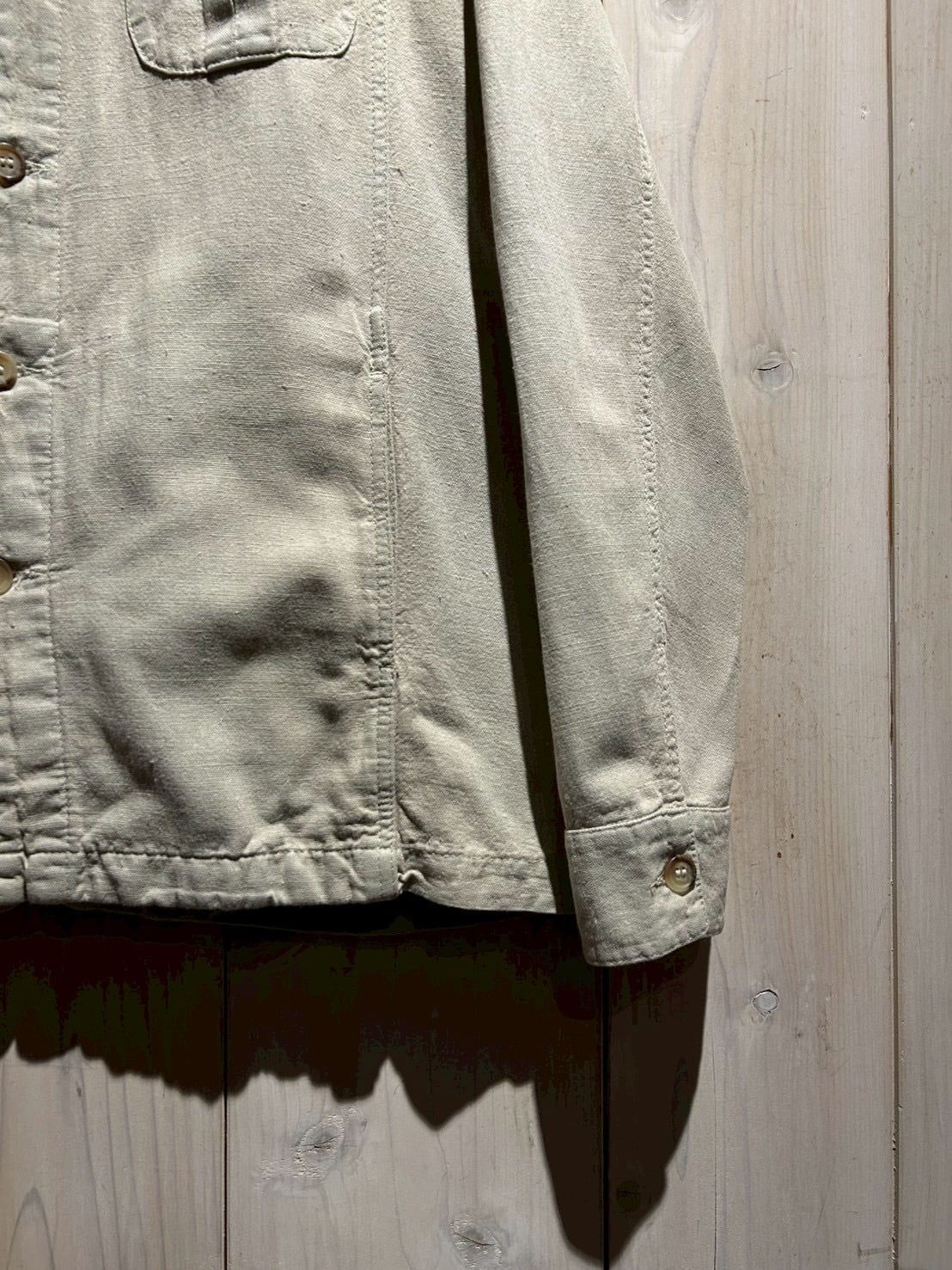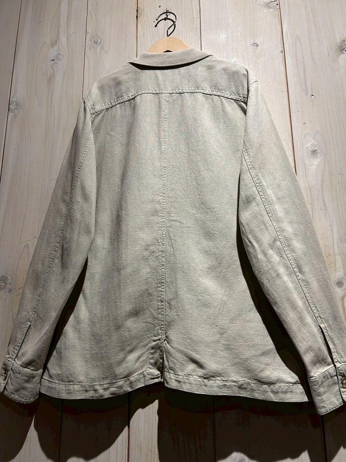 ナチュラルな素材感とミニマルなデザインが魅力の、ユーロヴィンテージのシャツジャケット。