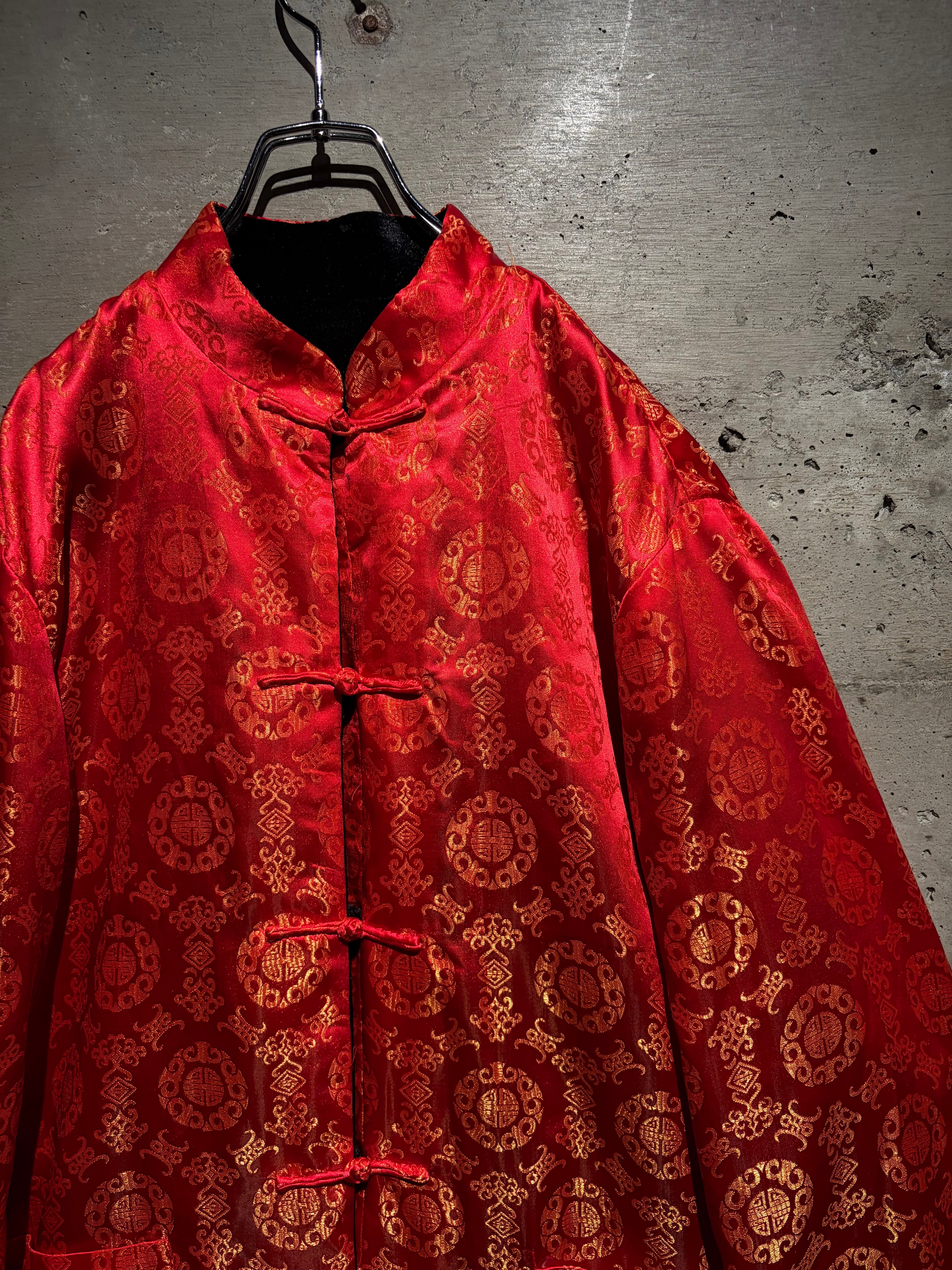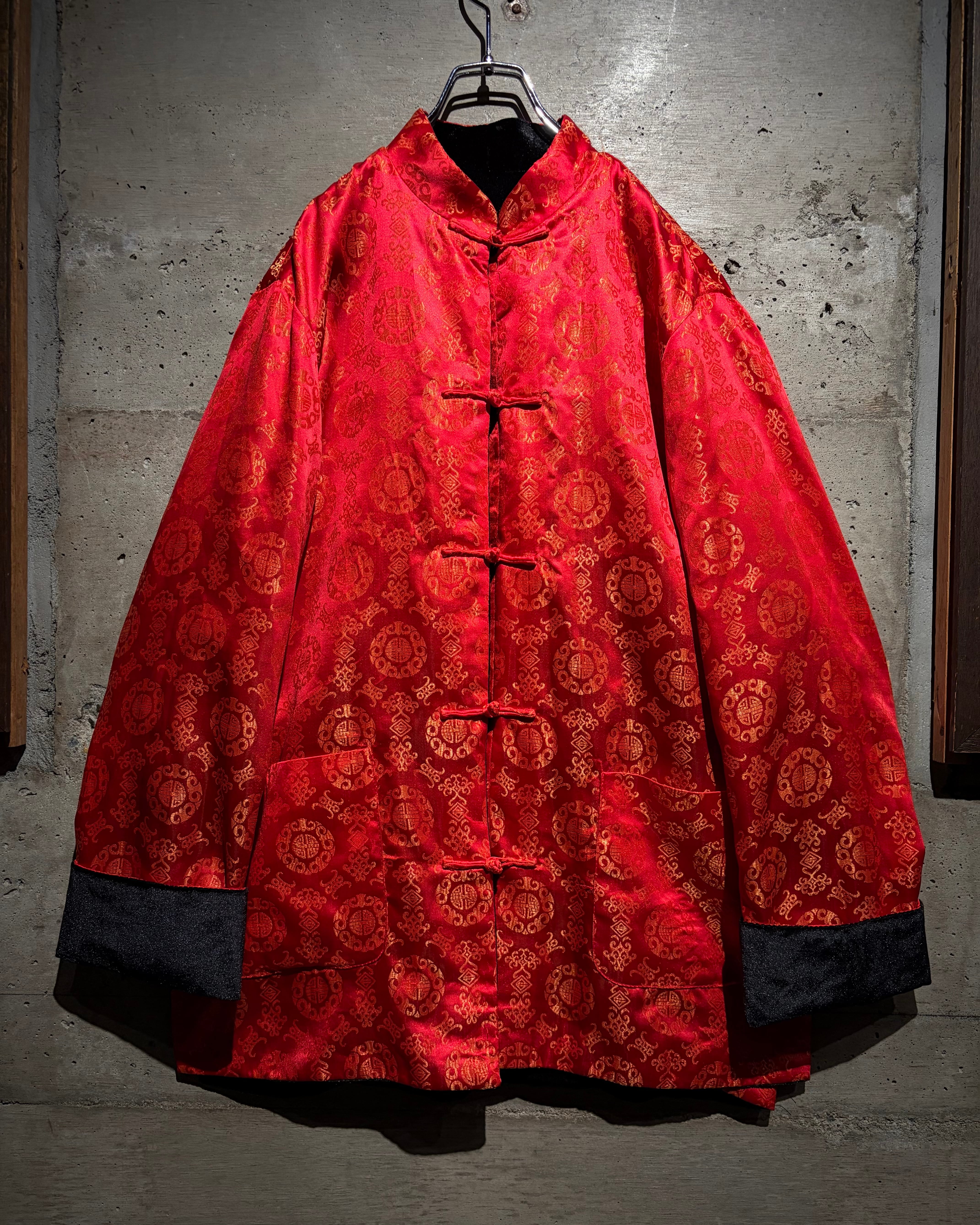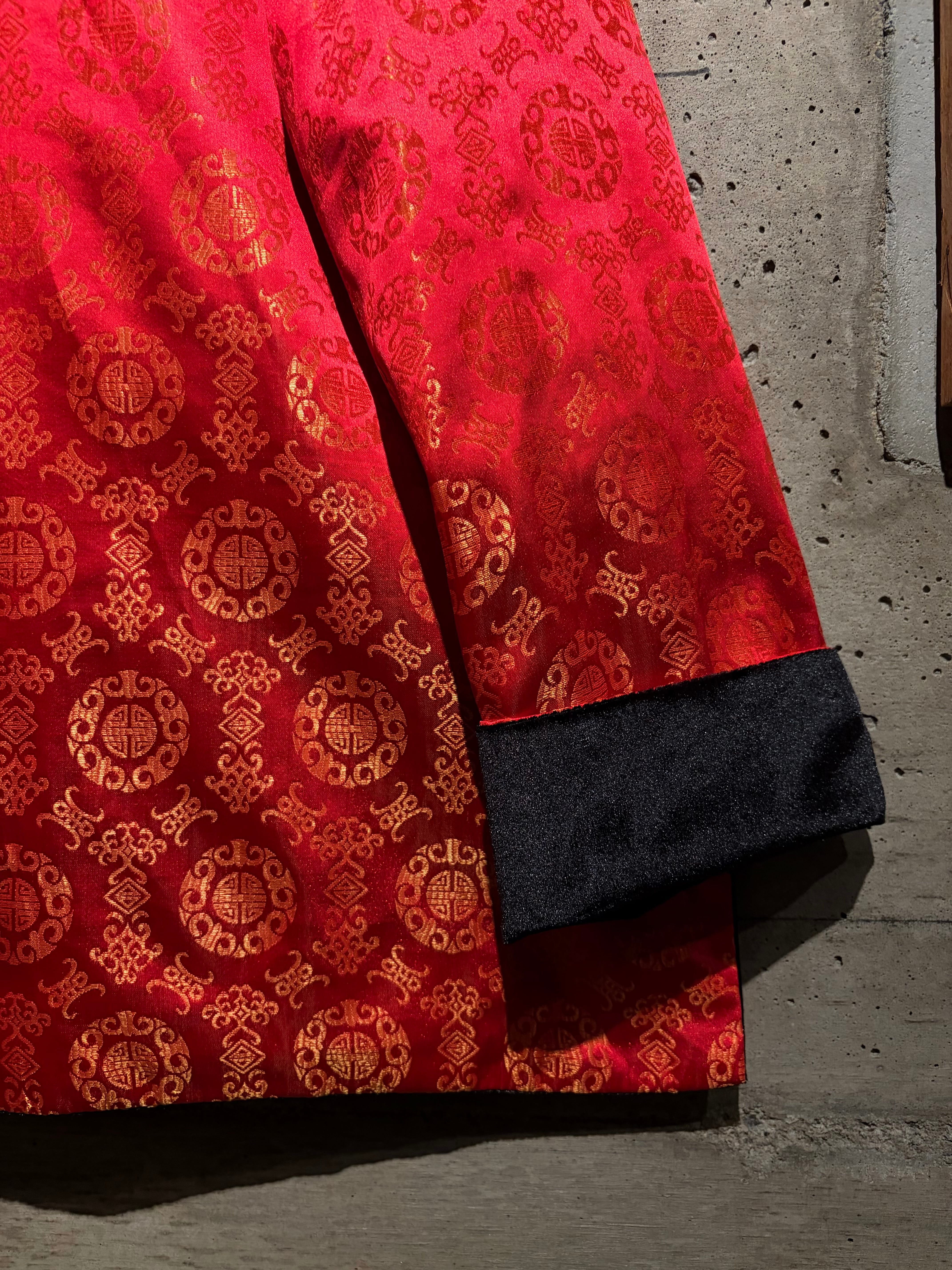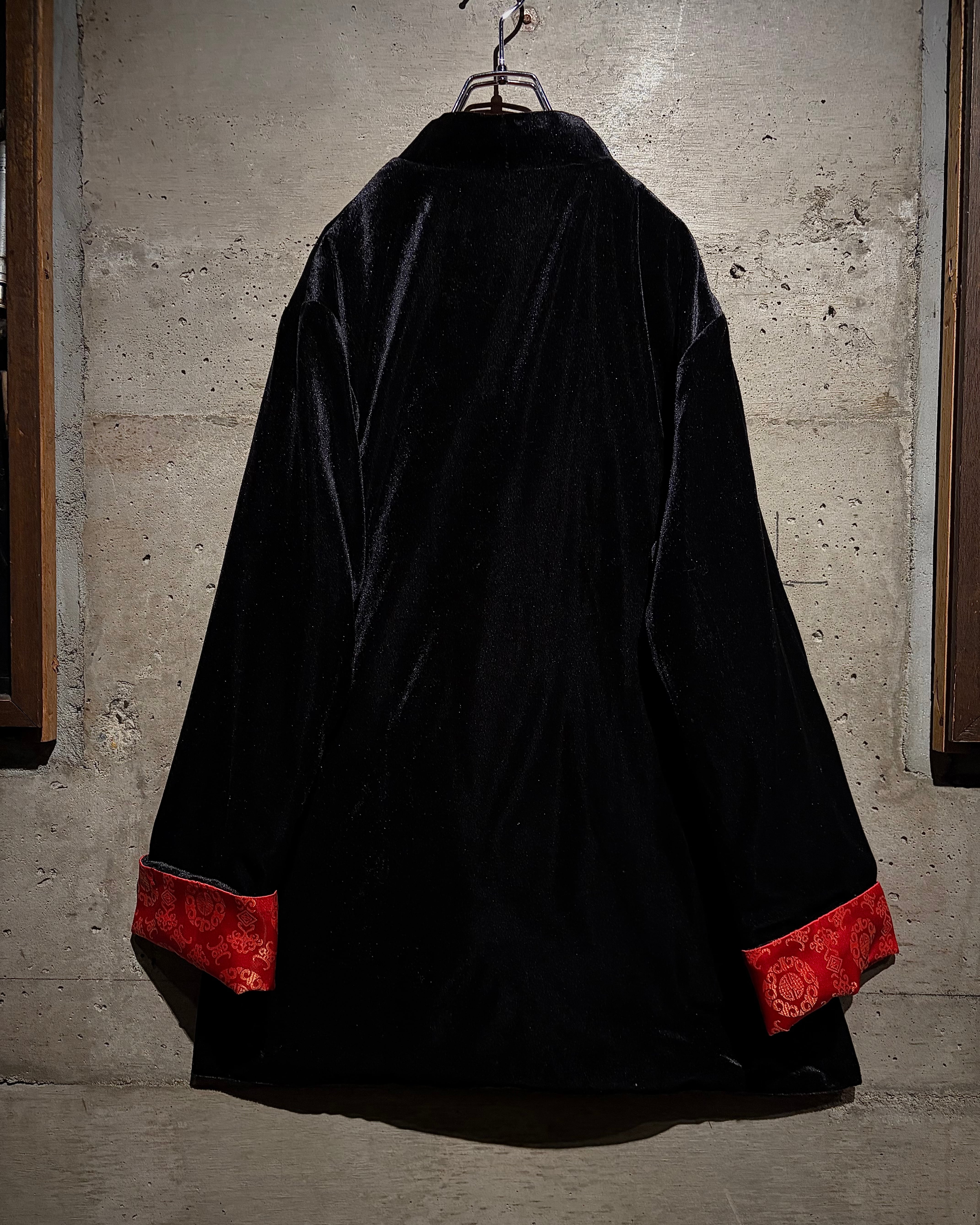 リバーシブルはチャイナシャツ自体でも珍しい仕様ですが、ベロア面を備えたリバーシブルは特に稀少。シンプルなブラックと華やかなレッド、全く異なる表情を1着で楽しめます。
