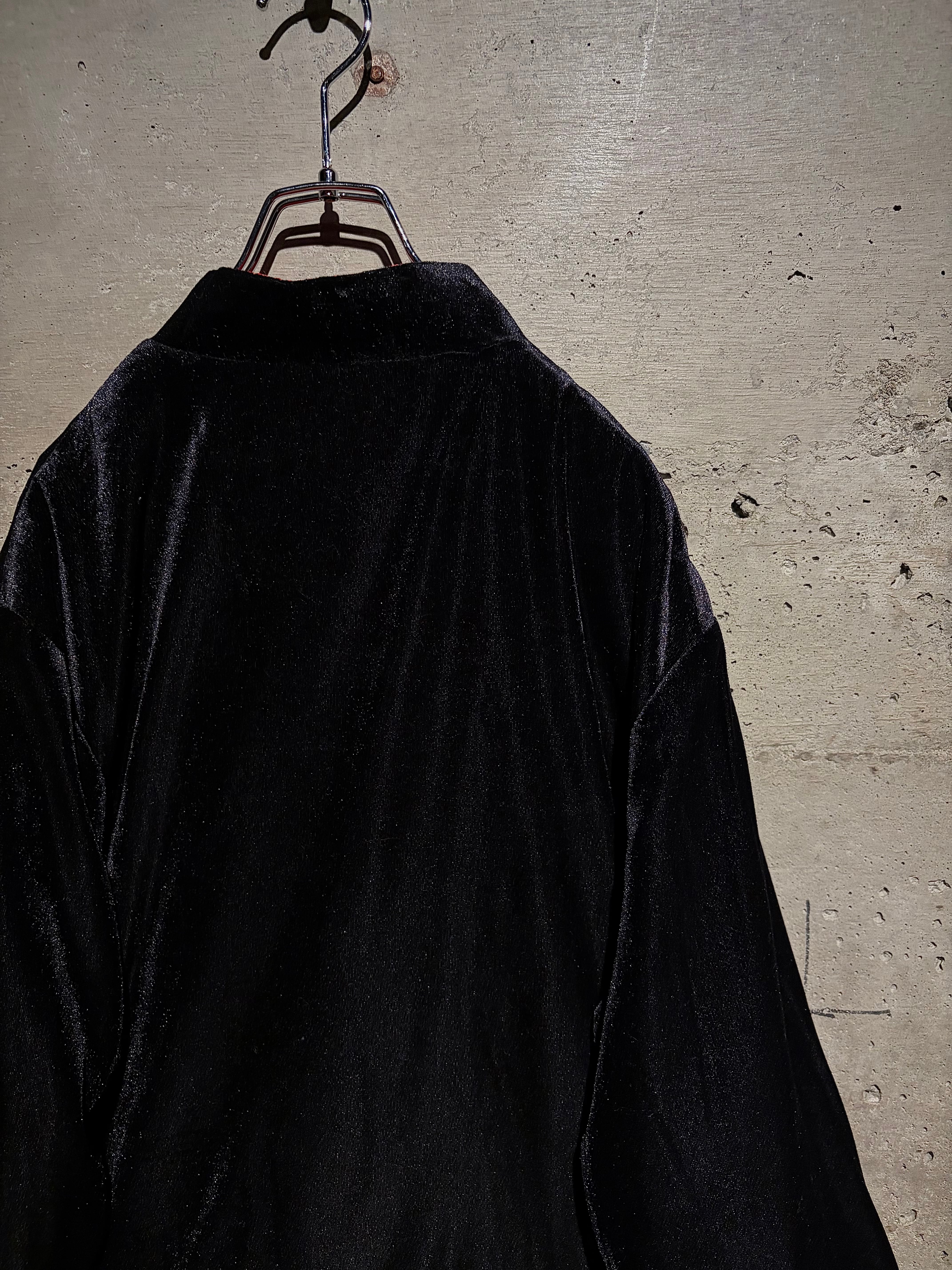 光沢のあるベロアとオリエンタルな紋様生地を掛け合わせた、存在感抜群のリバーシブルのチャイナシャツ。