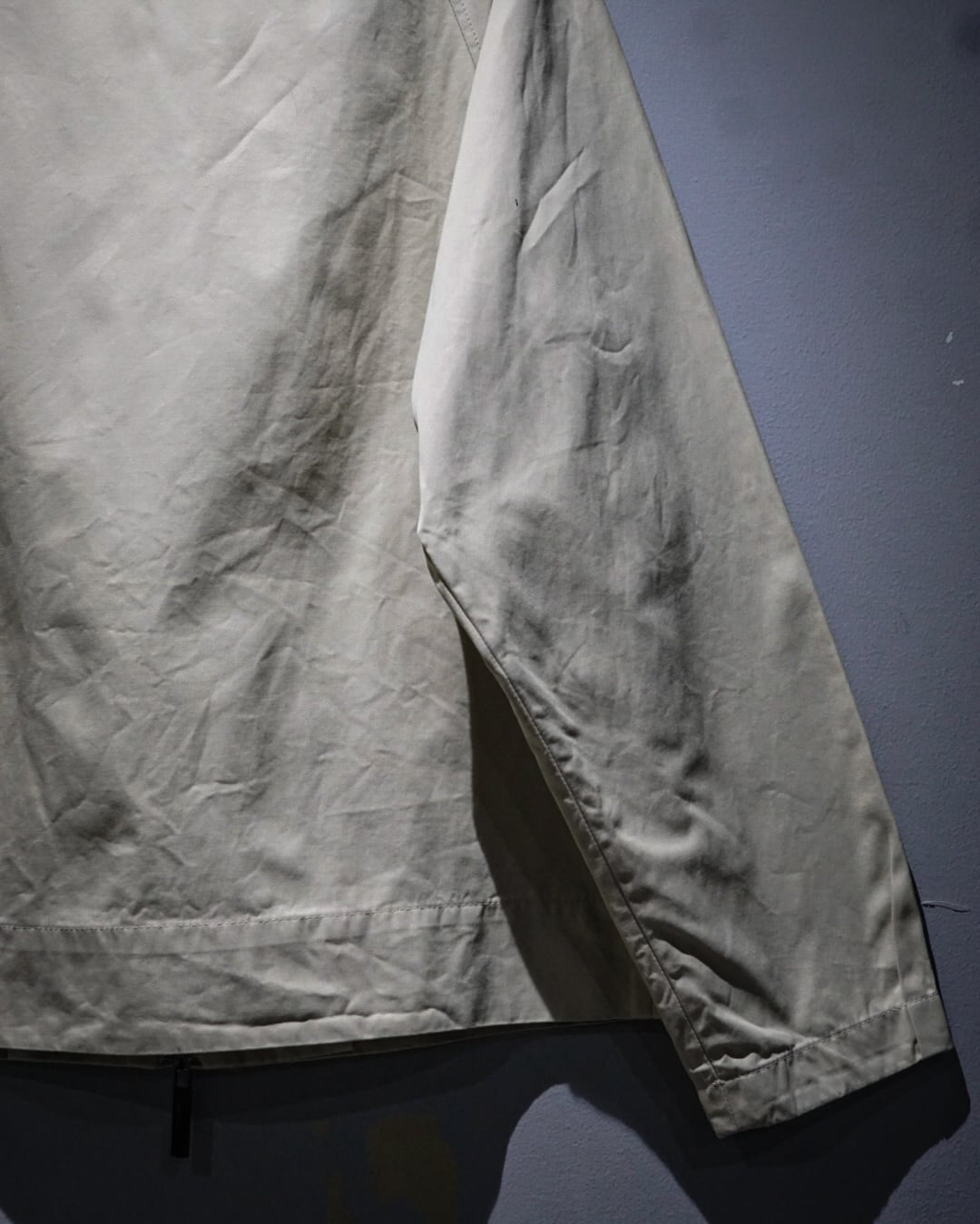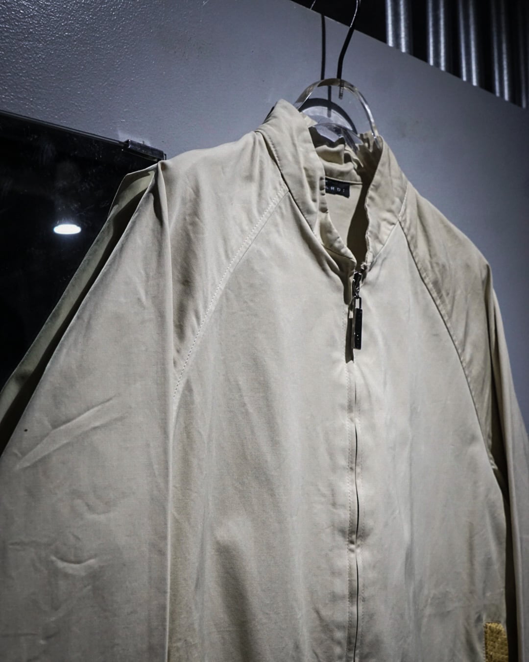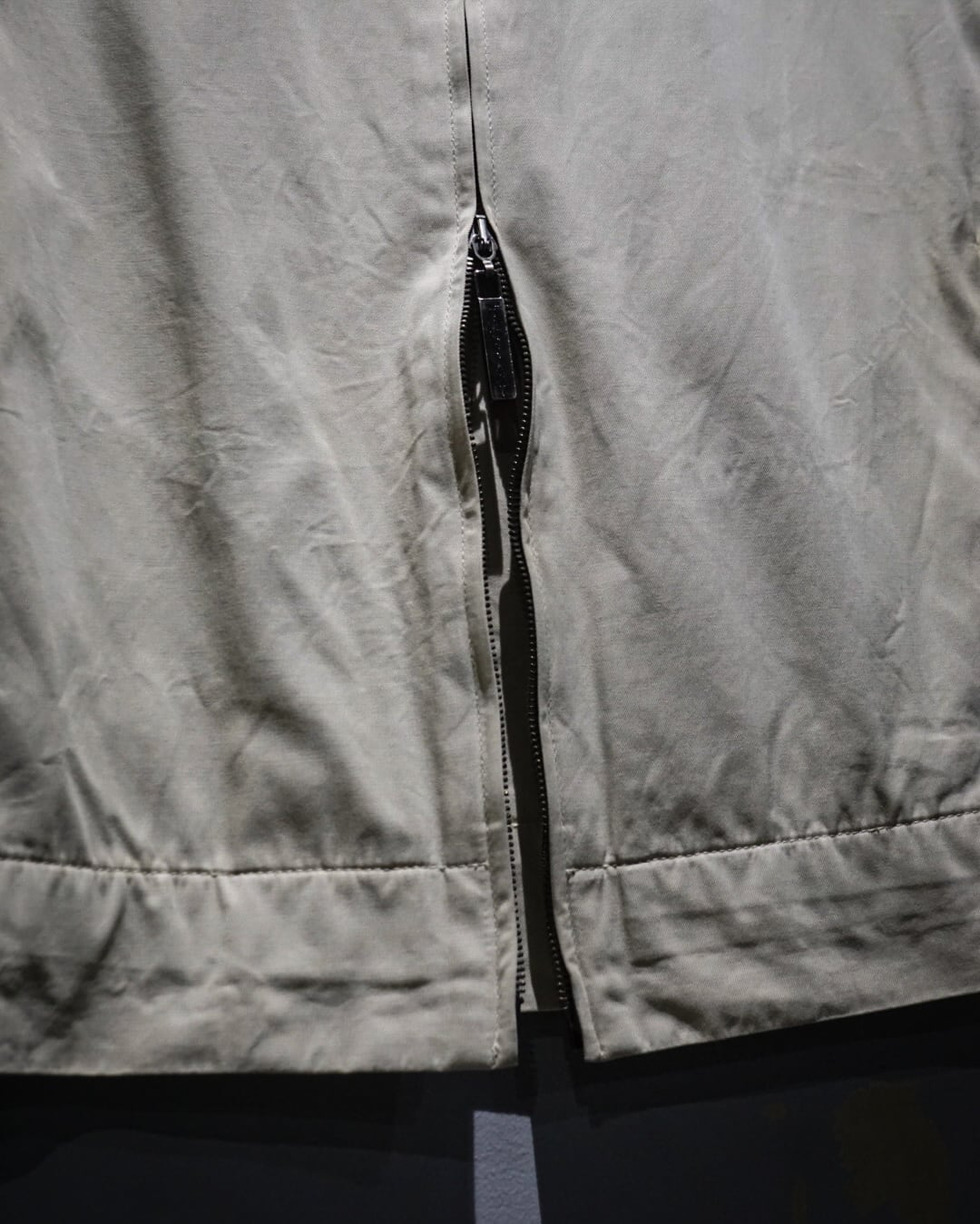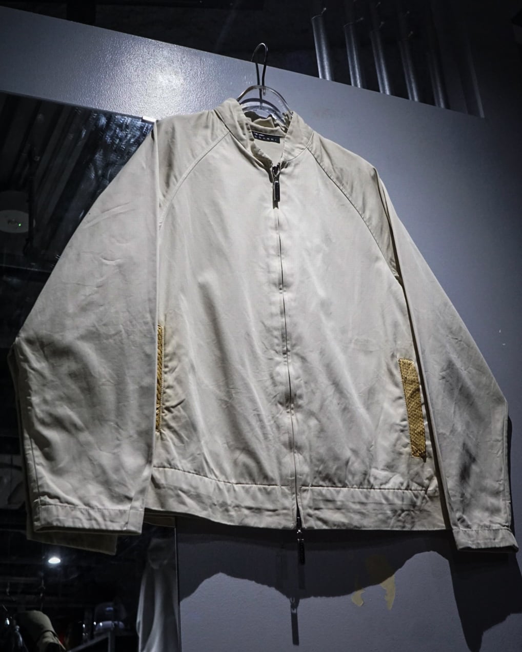 フロントはダブルジップ、立ち襟仕様のミニマルなディテールで仕上げることで、Trussardiらしい洗練された印象に。ラグランスリーブの柔らかなラインも相まって、肩周りの収まりが良く上品なシルエットを演出します。