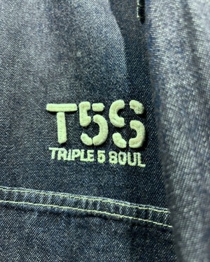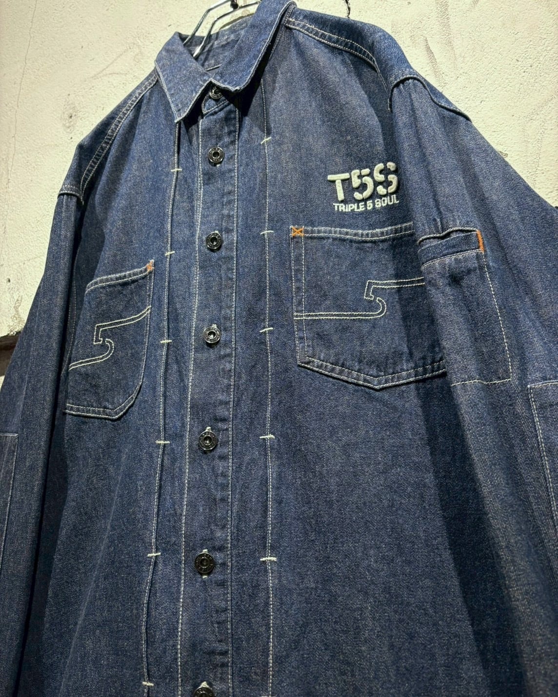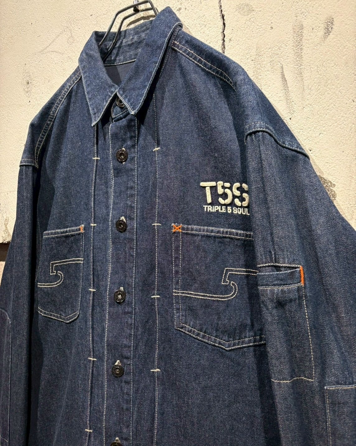 当時数々のラップアーティストが着用し、ストリートシーンを中心に絶大な支持を集めた、90年代のHIPHOPカルチャーを語る上で欠かせないブランド“TRIPLE FIVE SOUL”のスペシャルなデニムシャツジャケットをご紹介いたします。