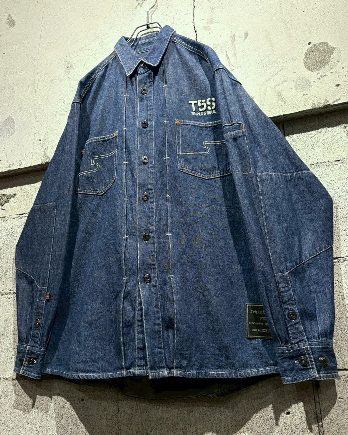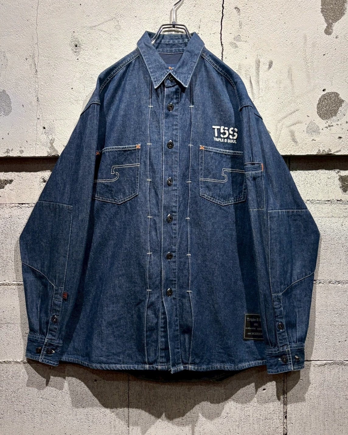 HIPHOPカルチャーとストリートファッションの歴史を背景に持つ“TRIPLE FIVE SOUL”ならではの存在感を放つデニムシャツジャケットの逸品です。