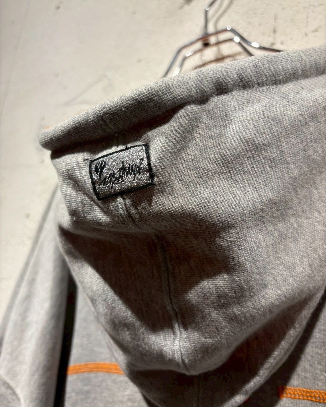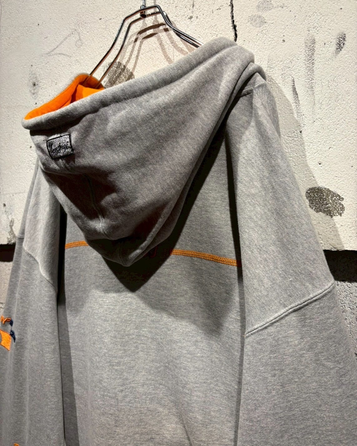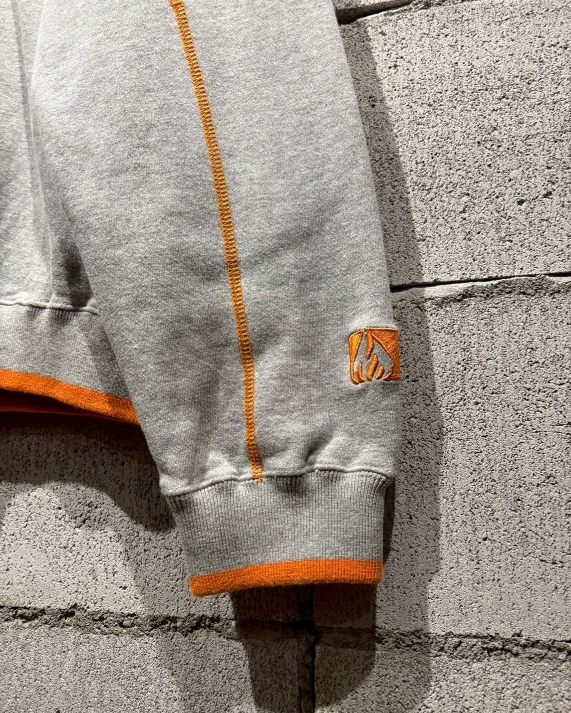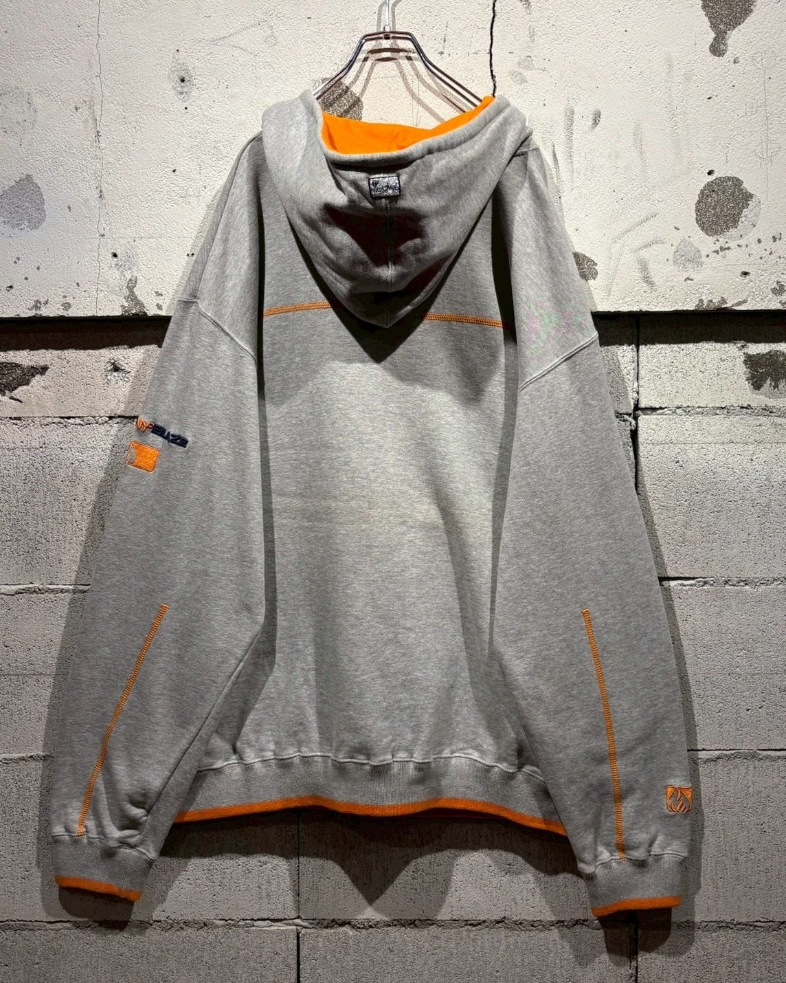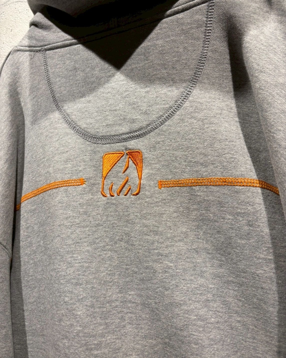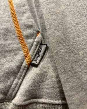 グレーのボディに対してオレンジのステッチやリブのライン、フード裏のオレンジカラーを効かせたカラーリングも魅力。