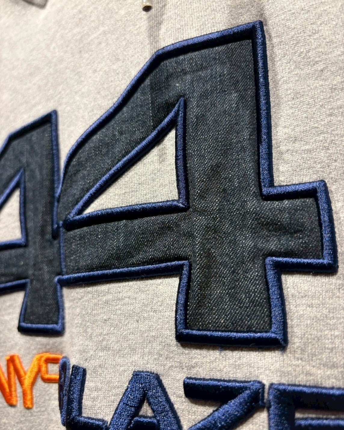 フロントには大胆に “44”のグラフィックを配置。枠組みのみ刺繍で表現し、その内側にはデニム素材を落とし込むという立体的なデザインが◎アイコニックなフレイムロゴもしっかりと載せられており、現代のストリートでも抜群に映えてくれるかと。