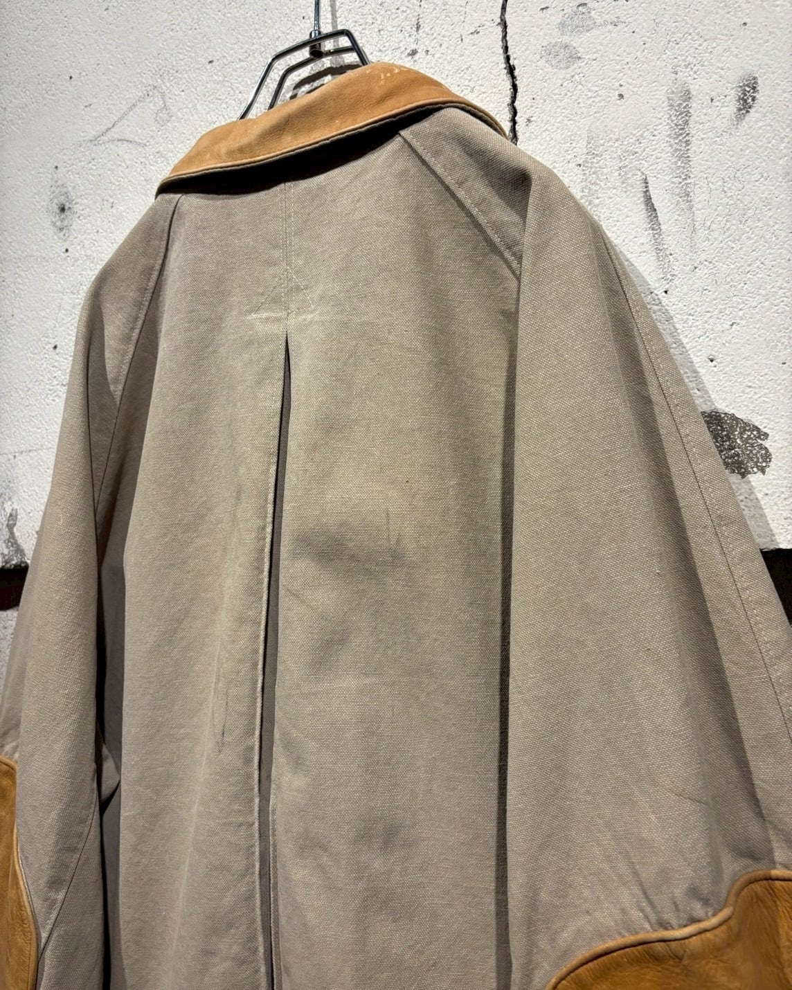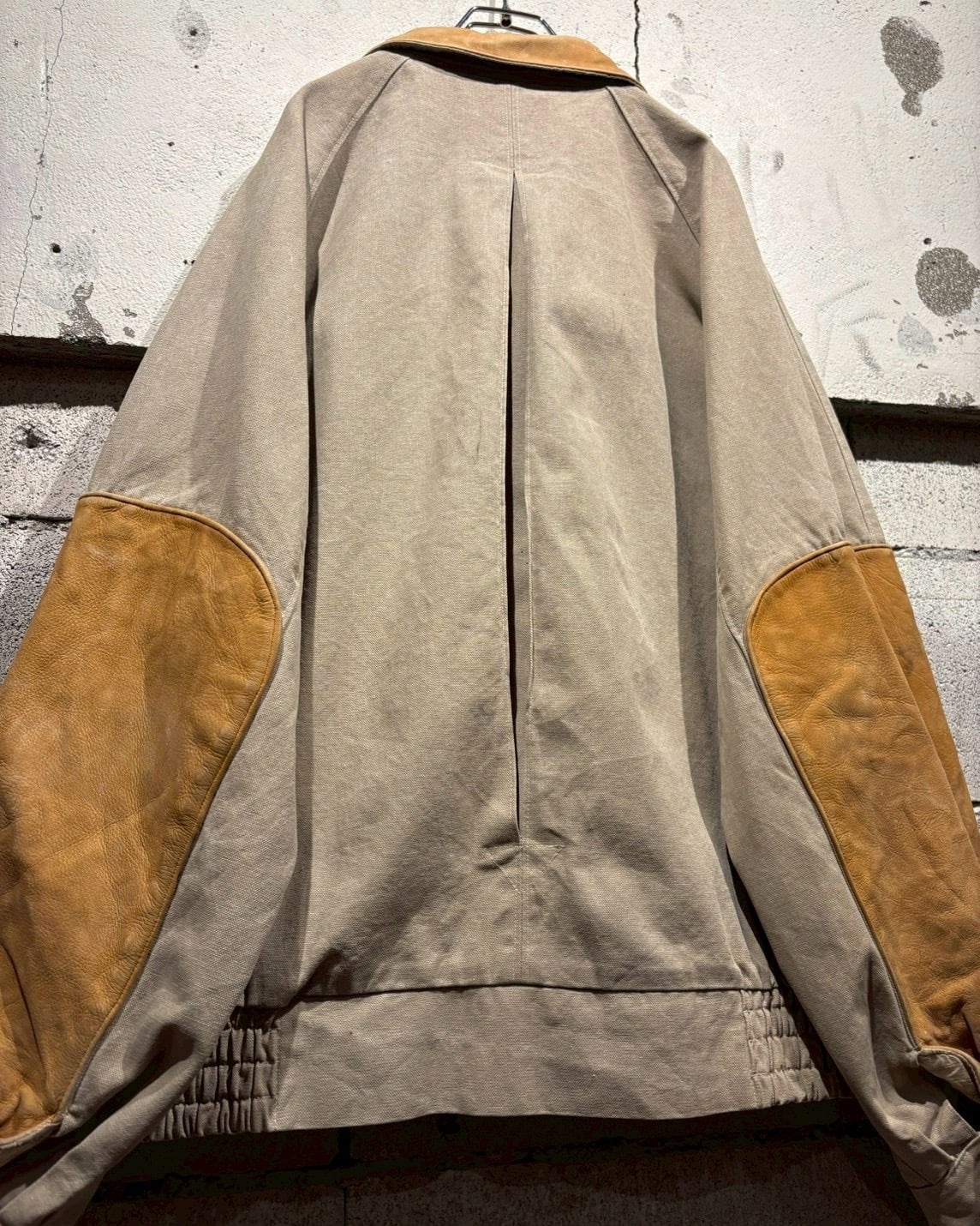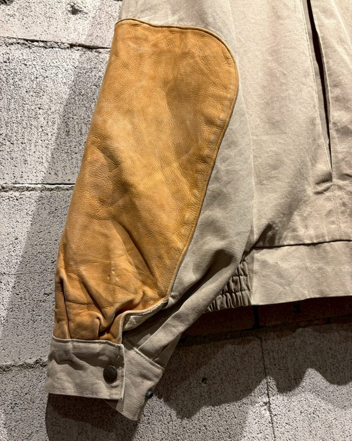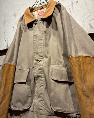 ボディには肉厚で耐久性の高いダック地を使用し、襟と袖部分にはレザーの切り替えを施したダックジャケット。