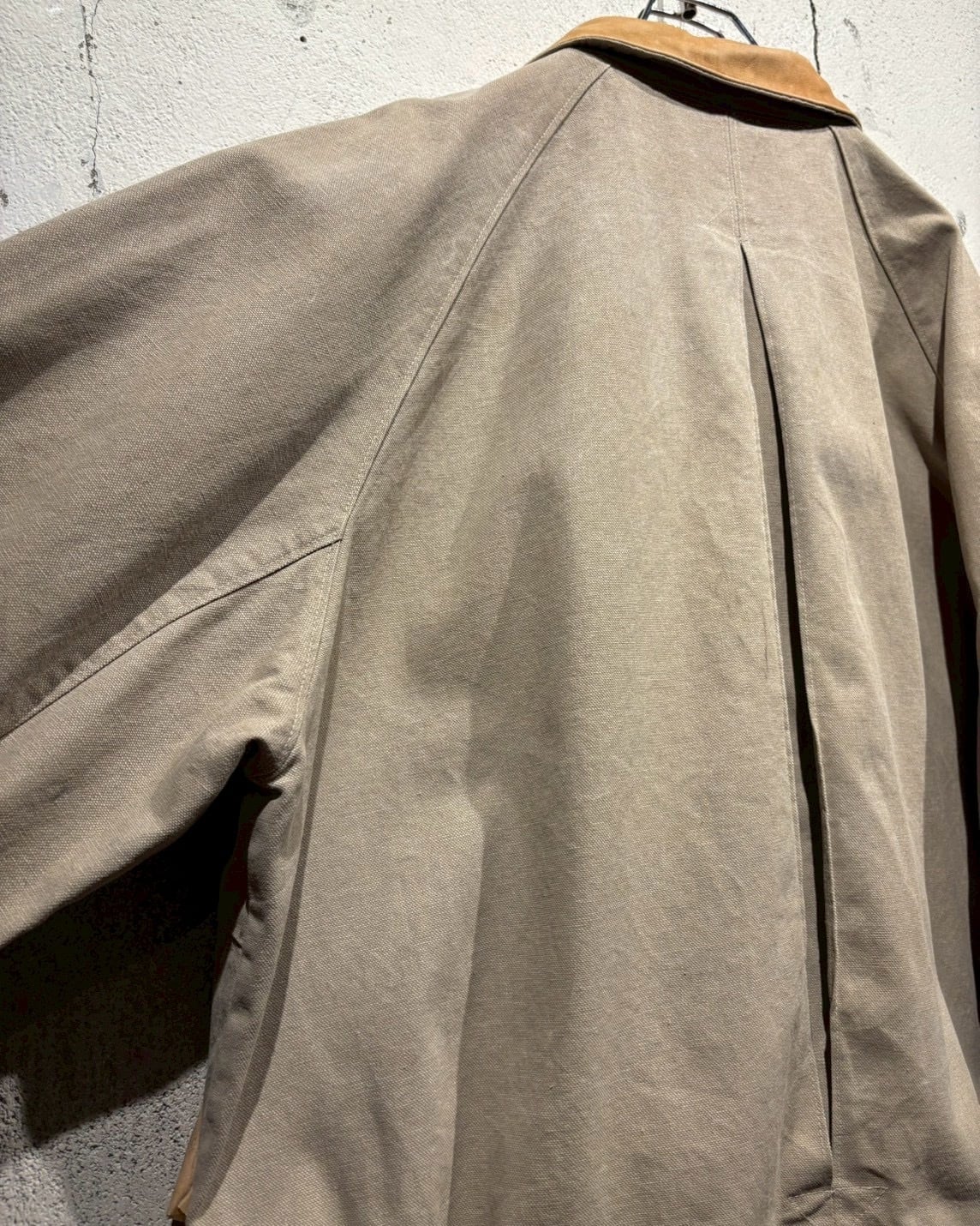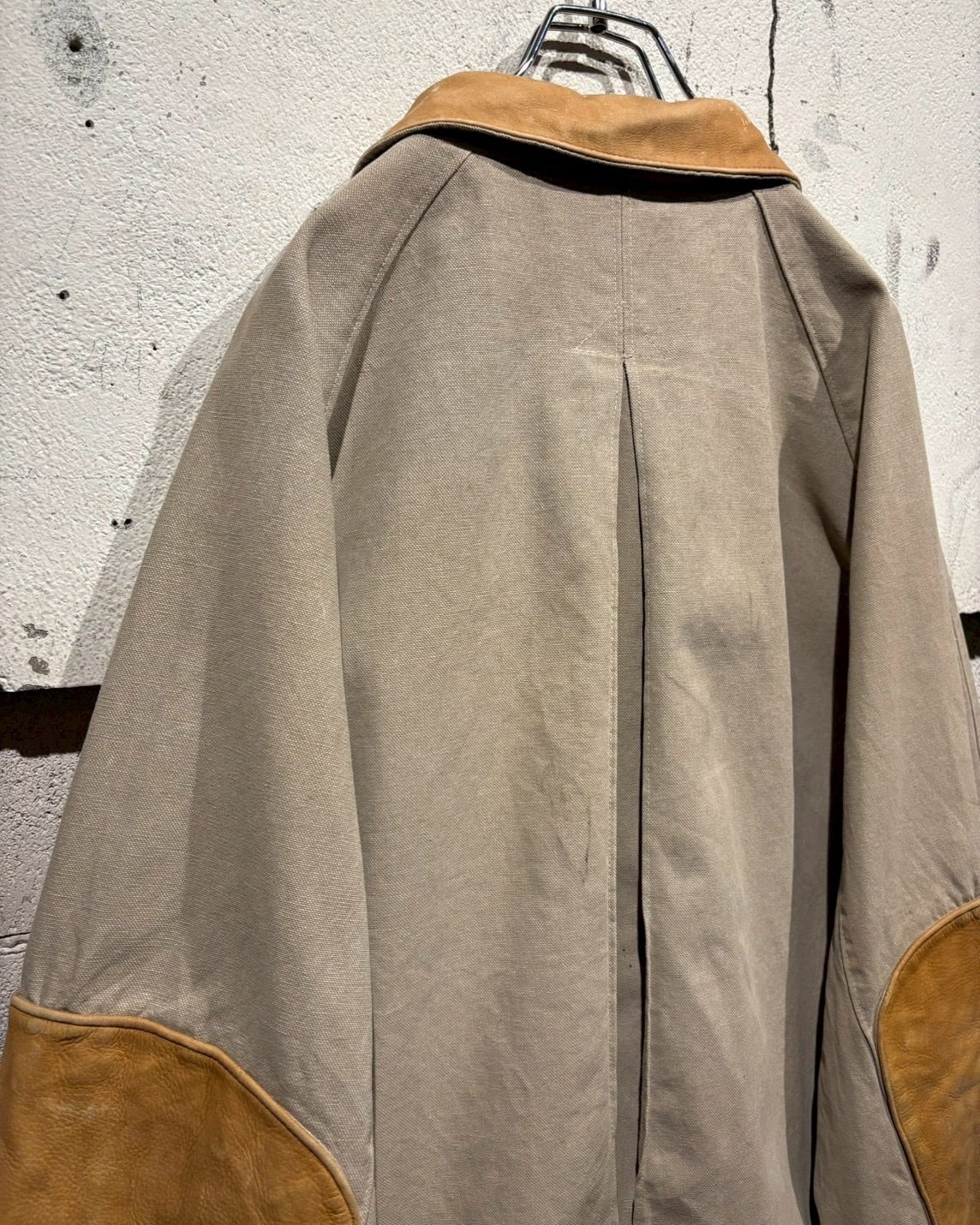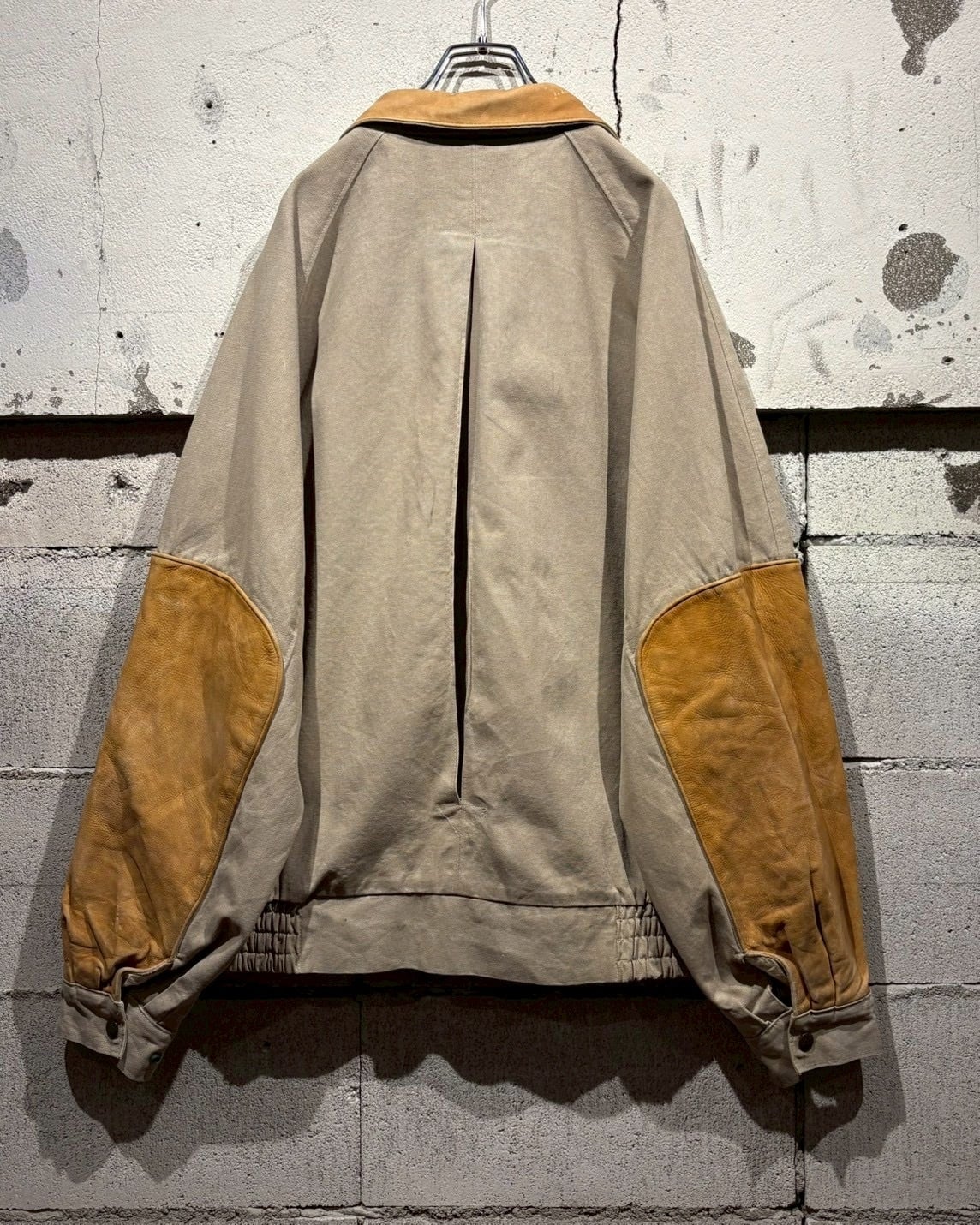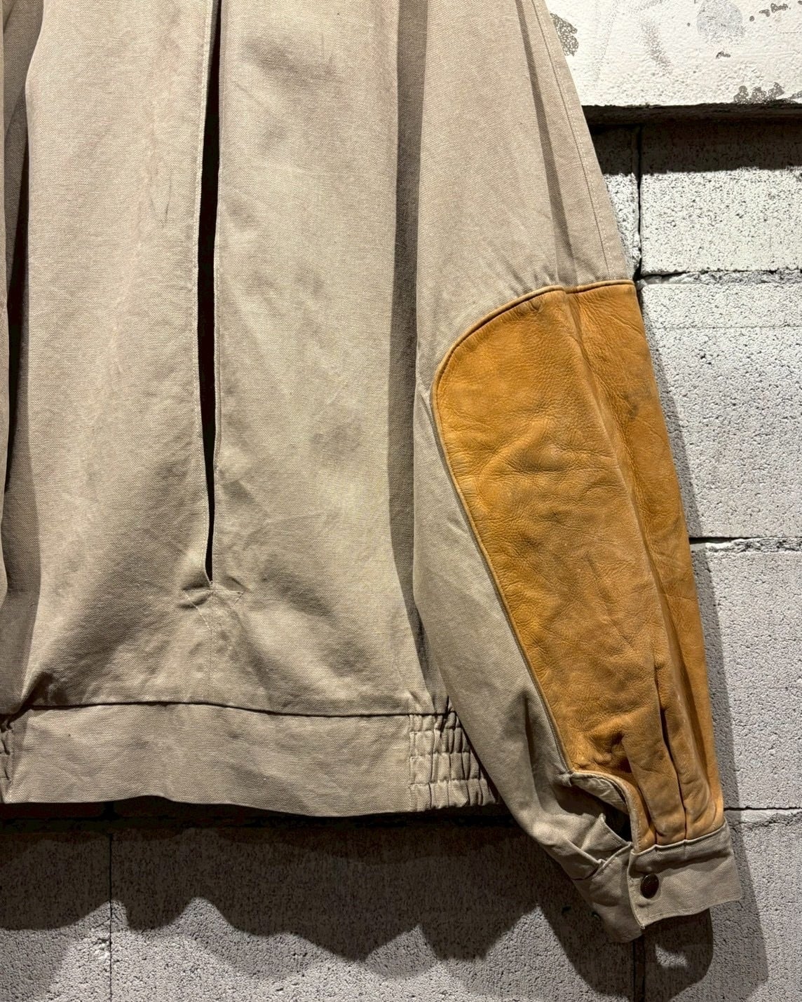 ボディには肉厚で耐久性の高いダック地を使用し、襟と袖部分にはレザーの切り替えを施したダックジャケット。