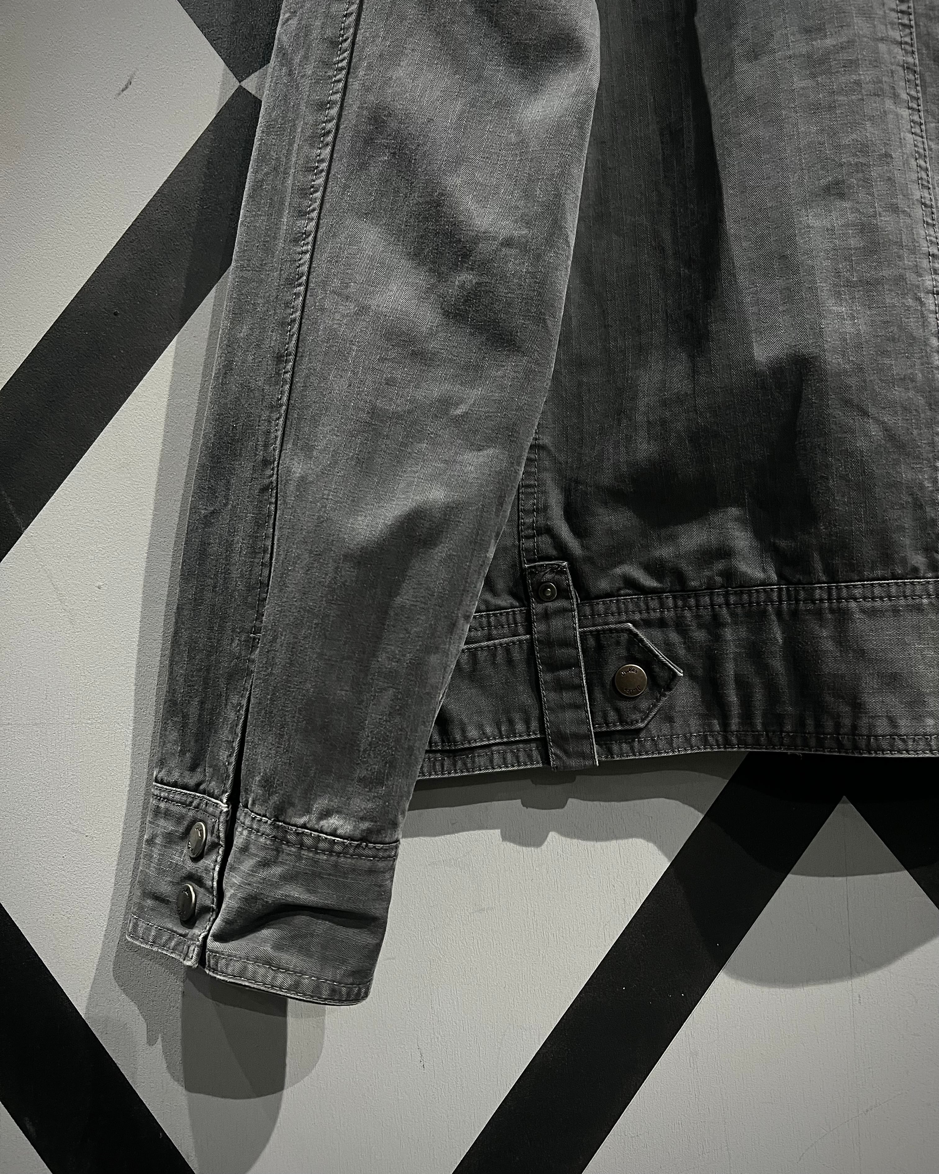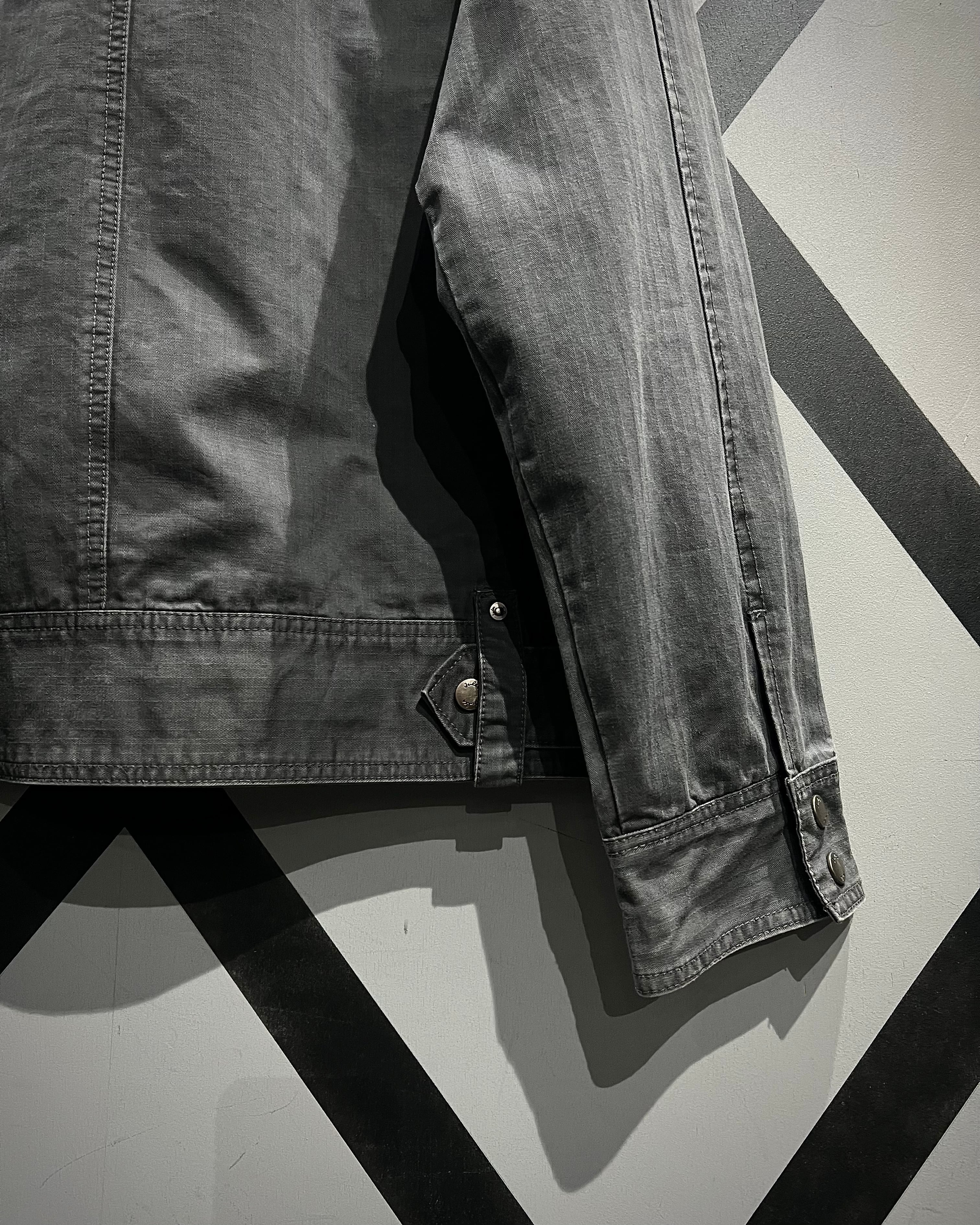 生地には細かな綾目が浮かぶヘリンボーンツイルを採用。程よくフェードしたグレーカラーが生み出す奥行きある表情と、無骨さの中に浮かぶ上品な陰影も◎