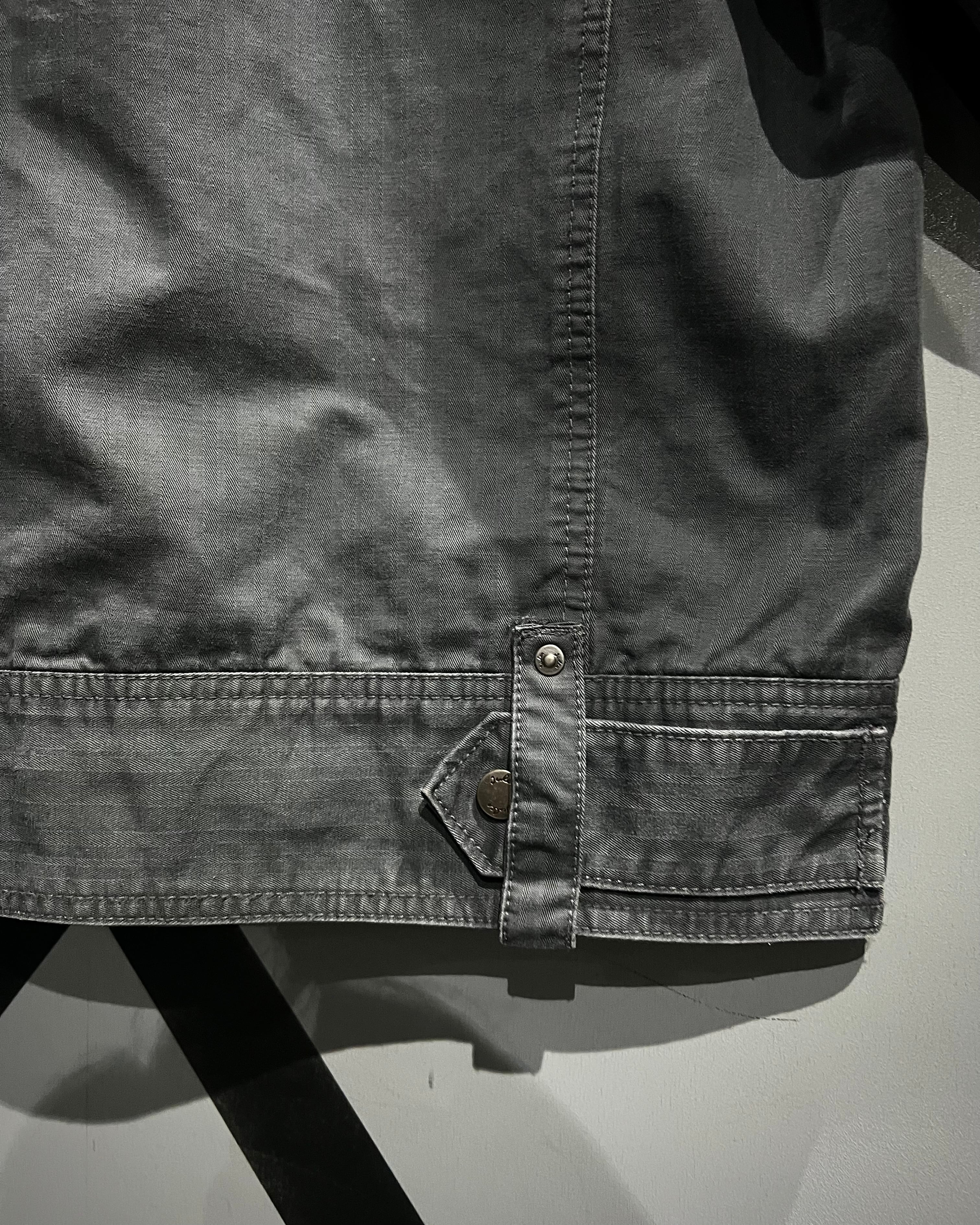 シルエットは程よくコンパクトにまとまったバランスで、すっきりとしたラインを描くショート丈。ミリタリーやワークの無骨さを残しつつモードなスタイリングにも自然と溶け込みます。