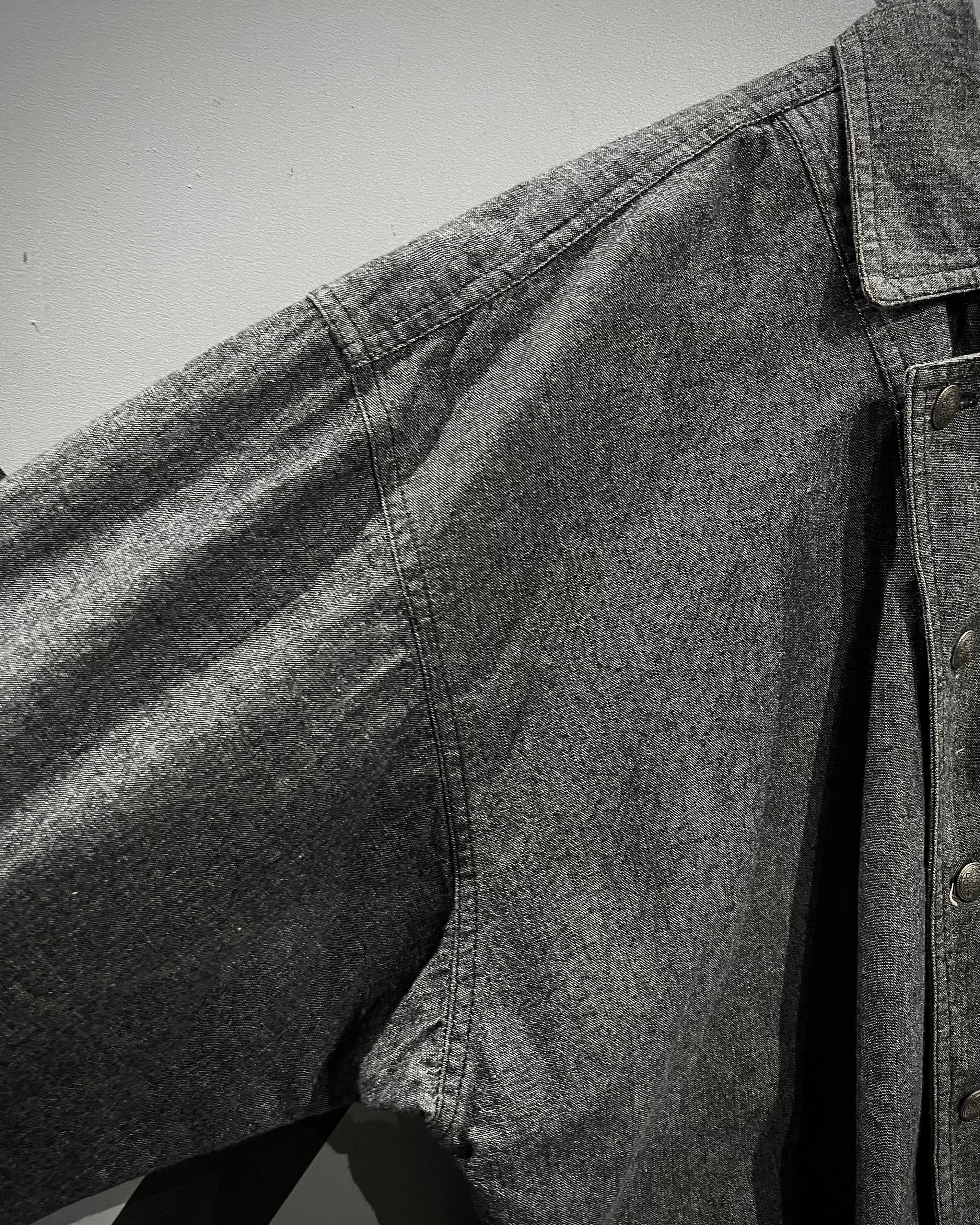 素材の表情と独特なフロントデザインが目を惹く、ユーロヴィンテージのシャンブレーシャツ。