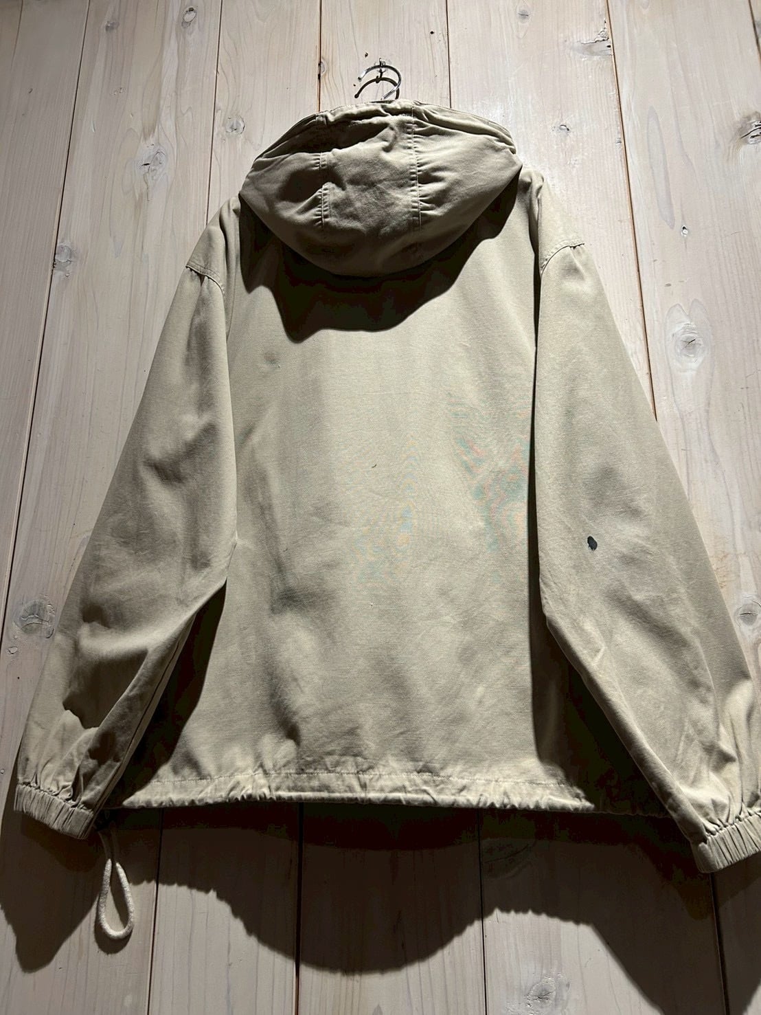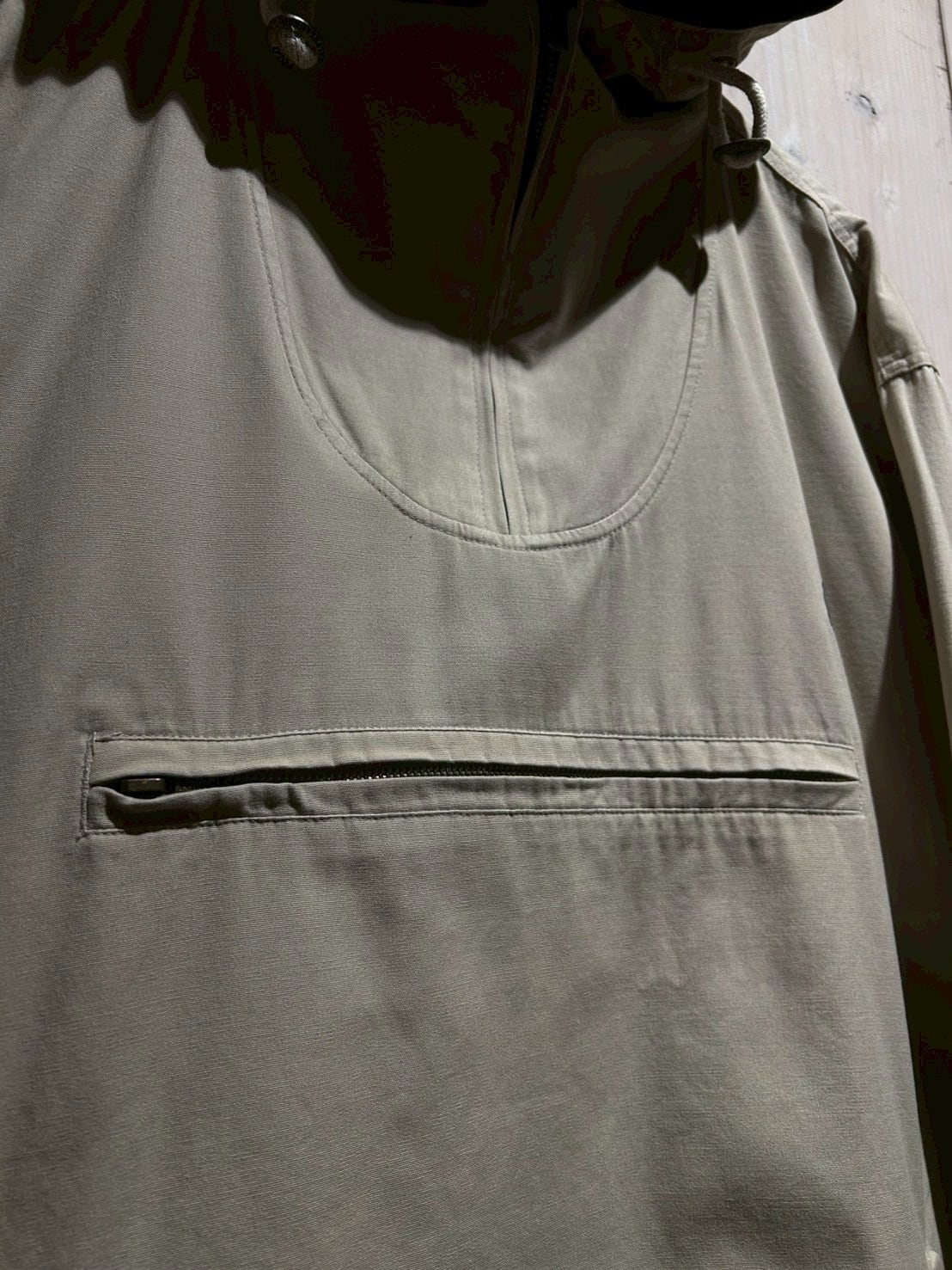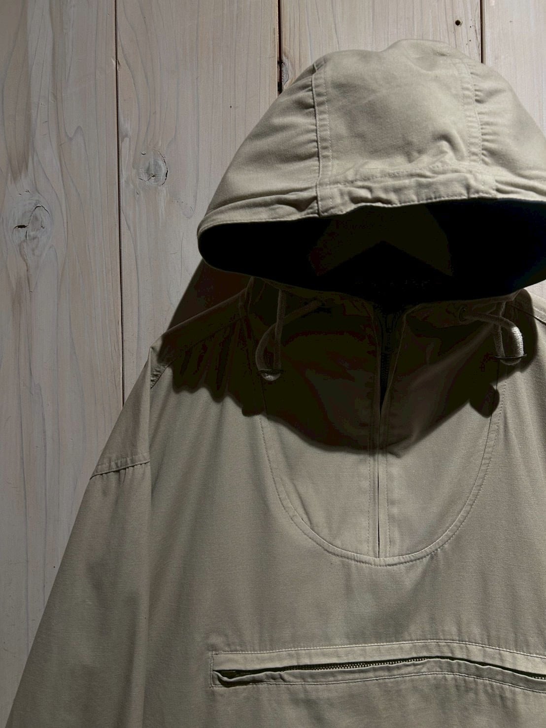 フロントにはアノラック特有のハーフジップ構造に加え、ジップ付きのカンガルーポケットを配置。胸元にはブランドを象徴するポニーロゴ刺繍がさりげなく施され、ミニマルなデザインの中で確かな存在感を放っています。