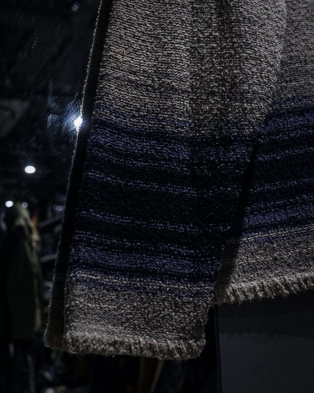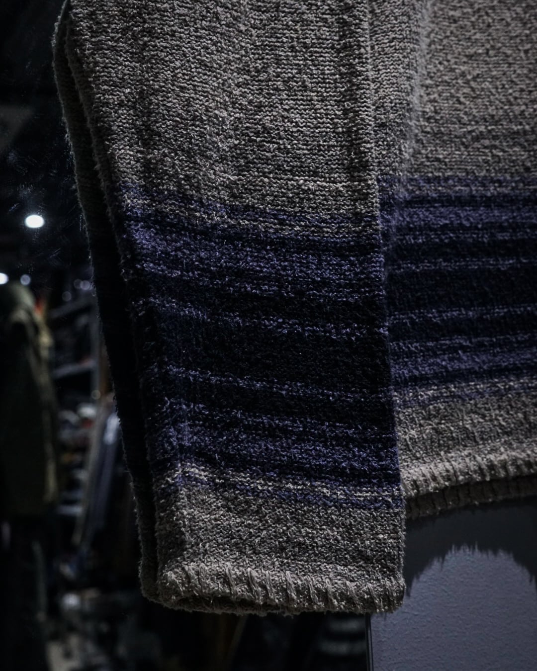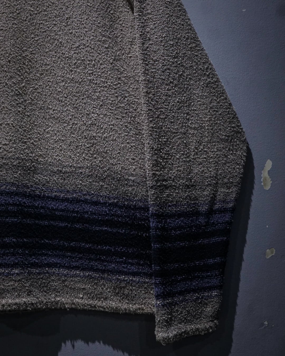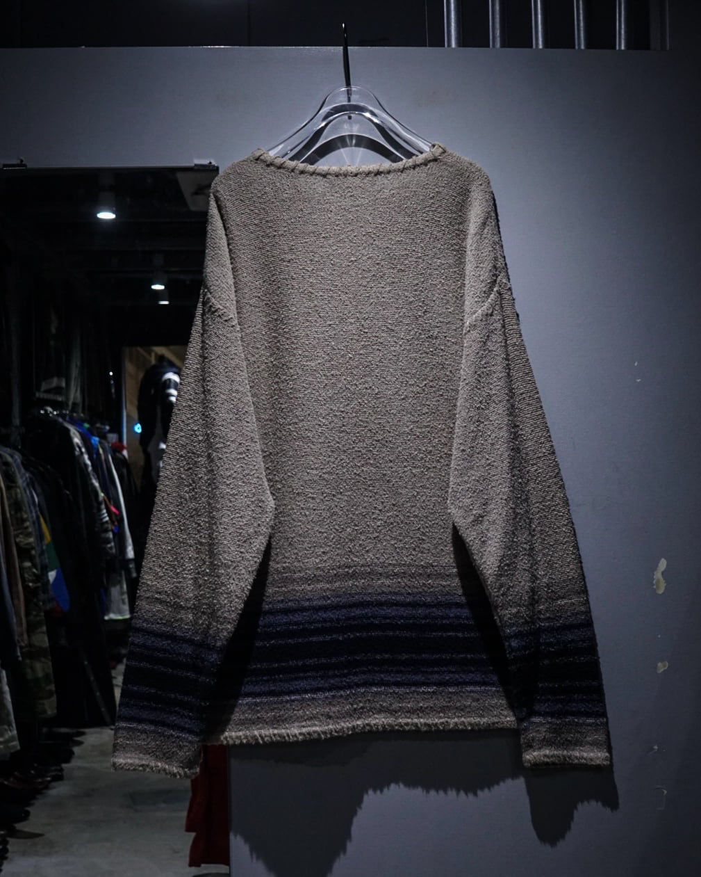 ベージュカラーをベースにグラデーションの効いたネイビーのボーダーが爽やかな印象を演出。程よいカジュアル感と品の良さを兼ね備えた仕上がりとなっています。ヘンリーネックの抜け感も◎