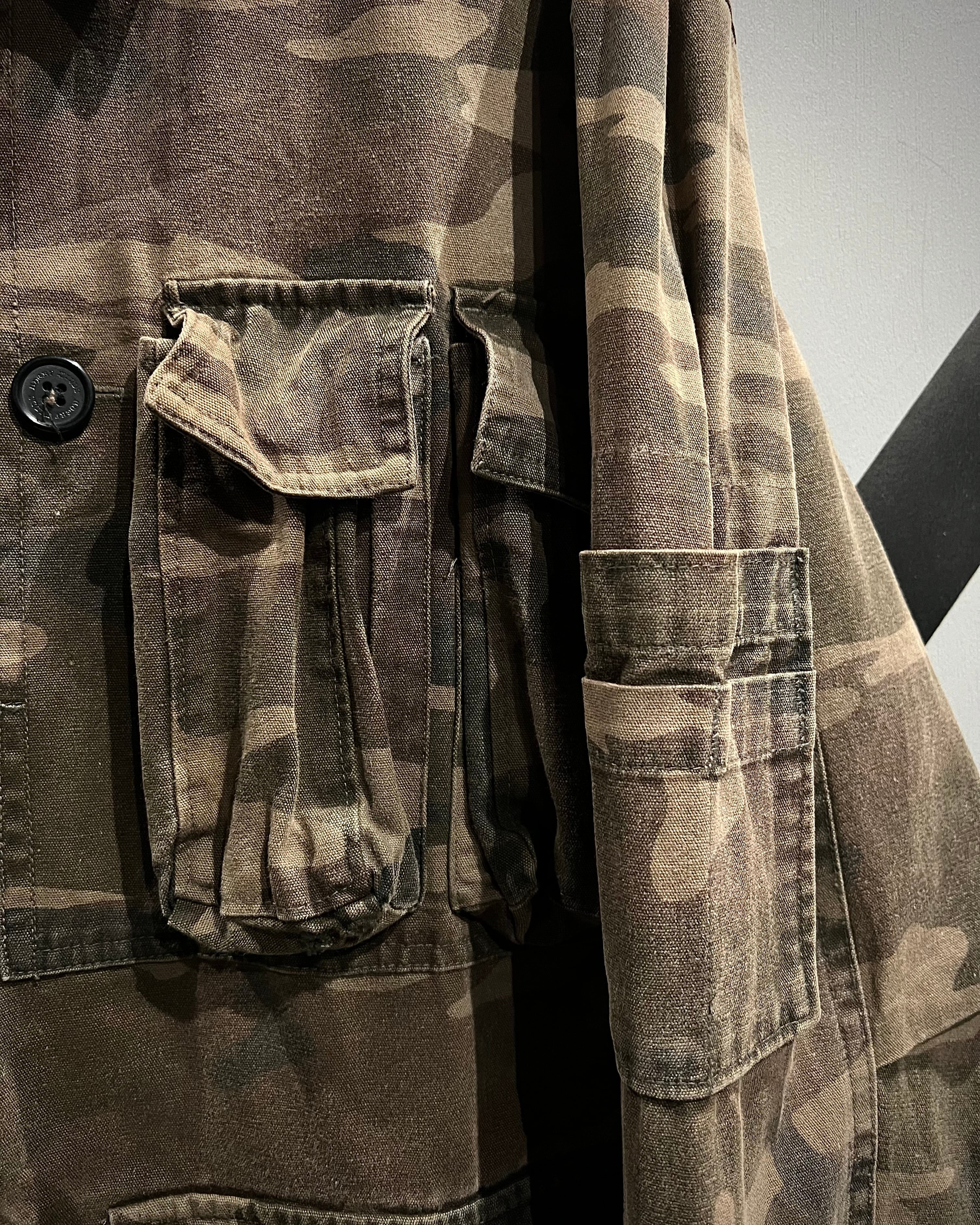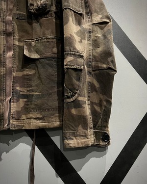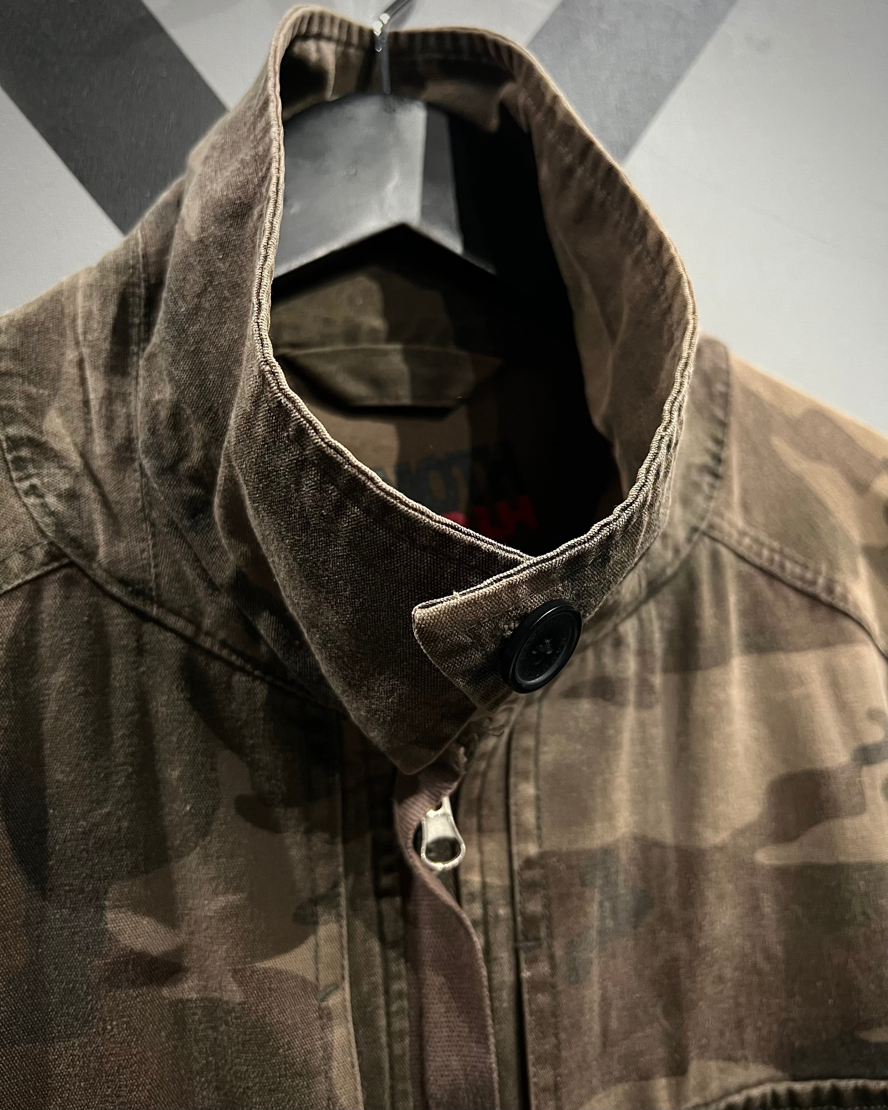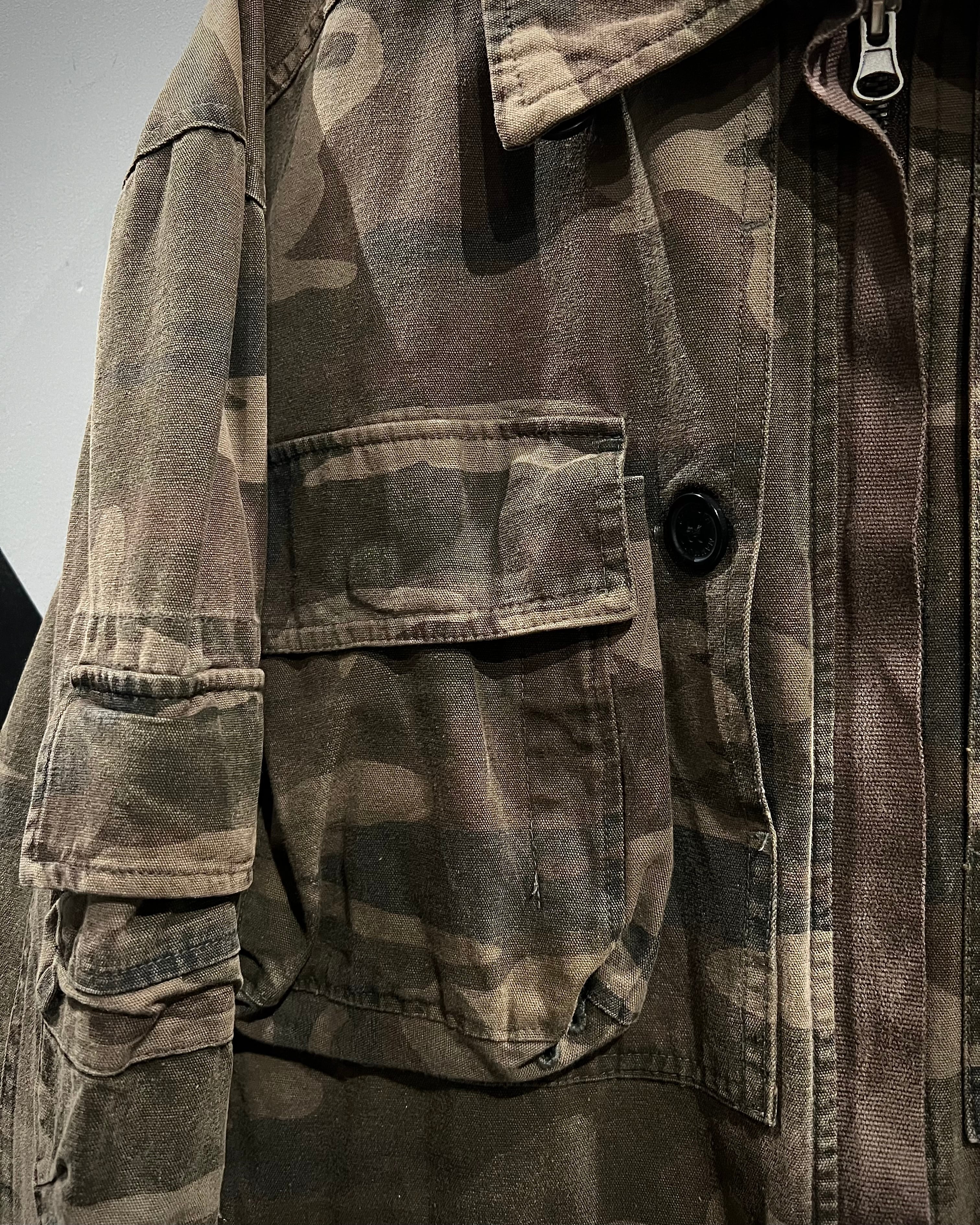 タフなダック地にウッドランドカモを落とし込んだ、ミリタリーライクな佇まいが魅力のジャケット。