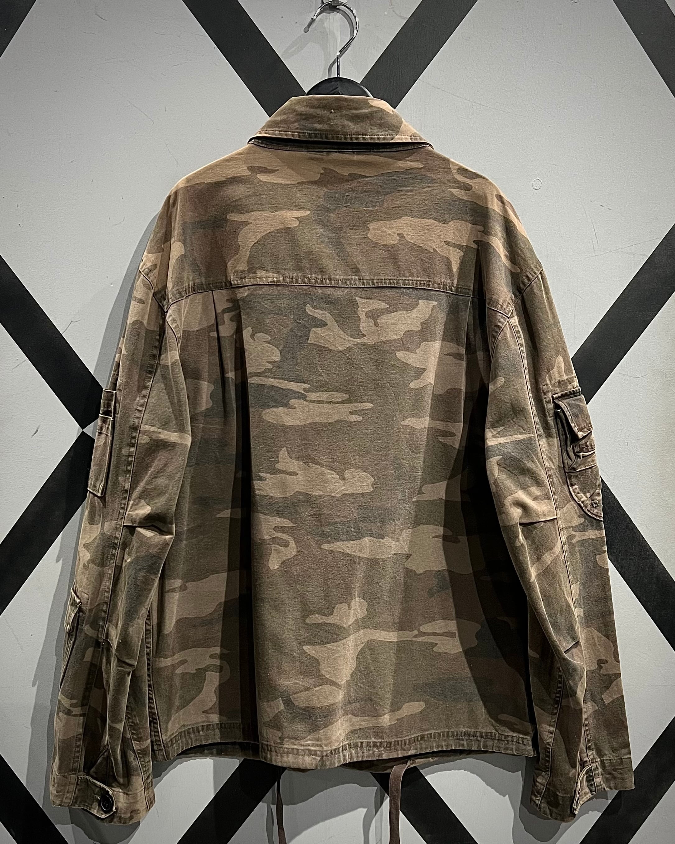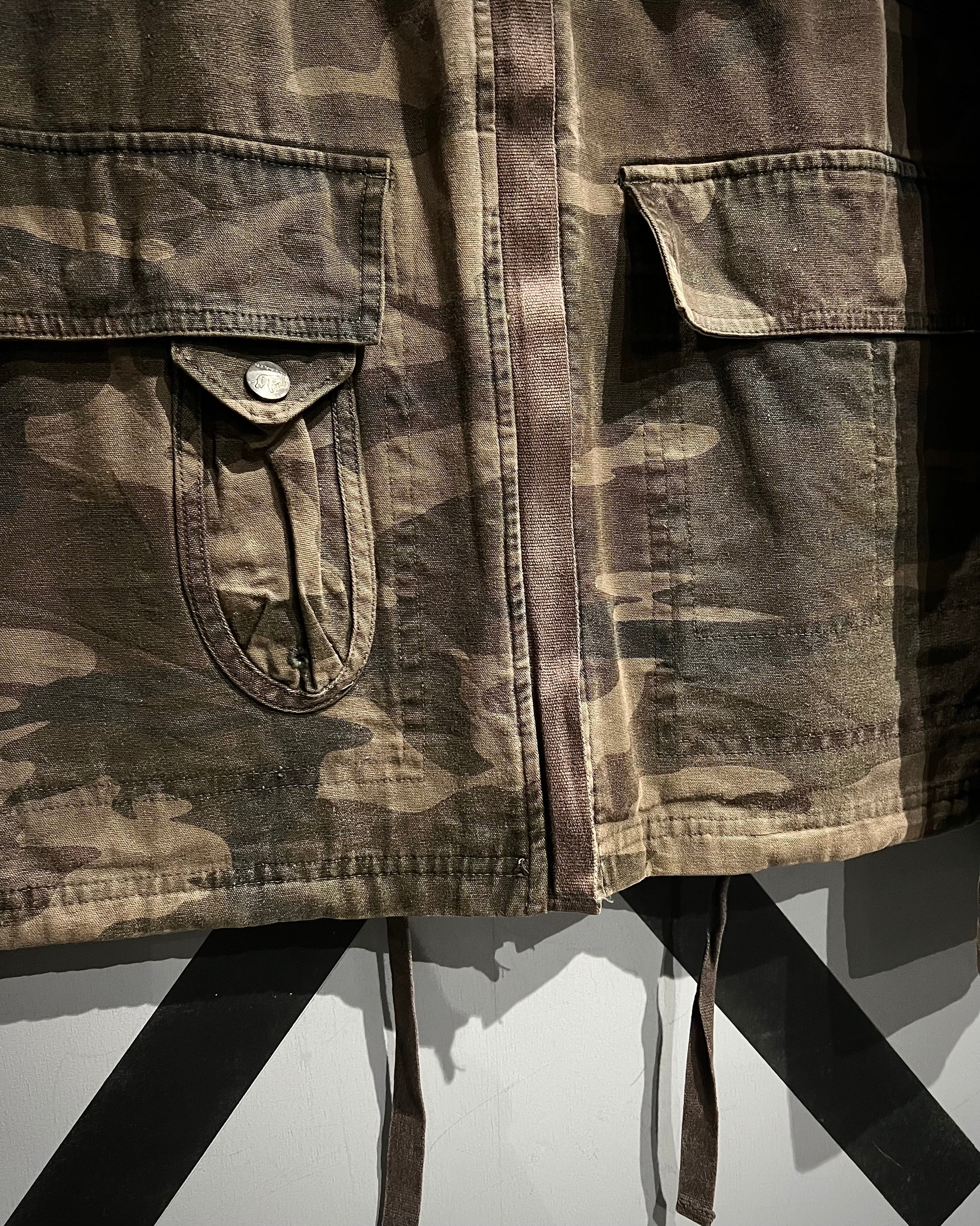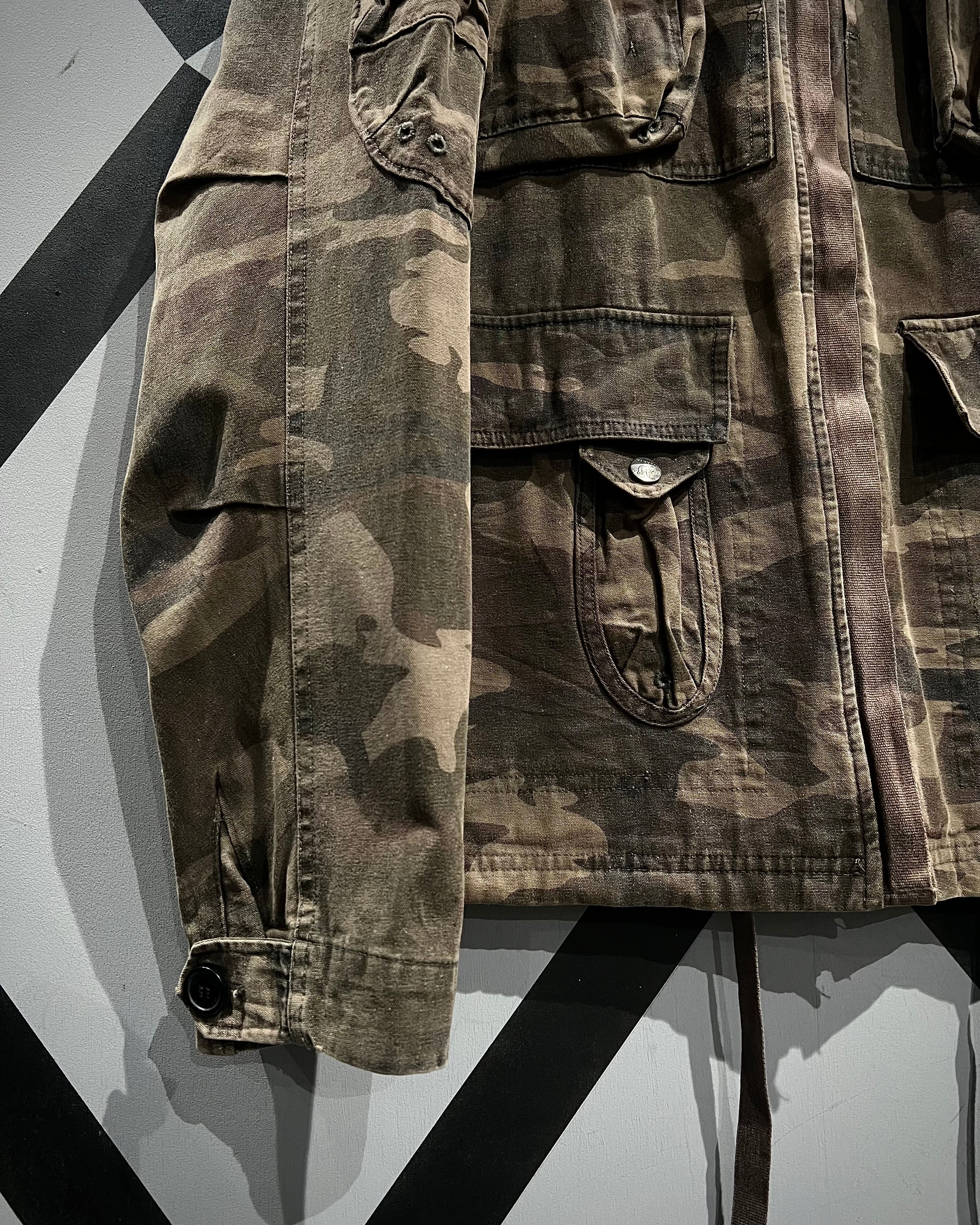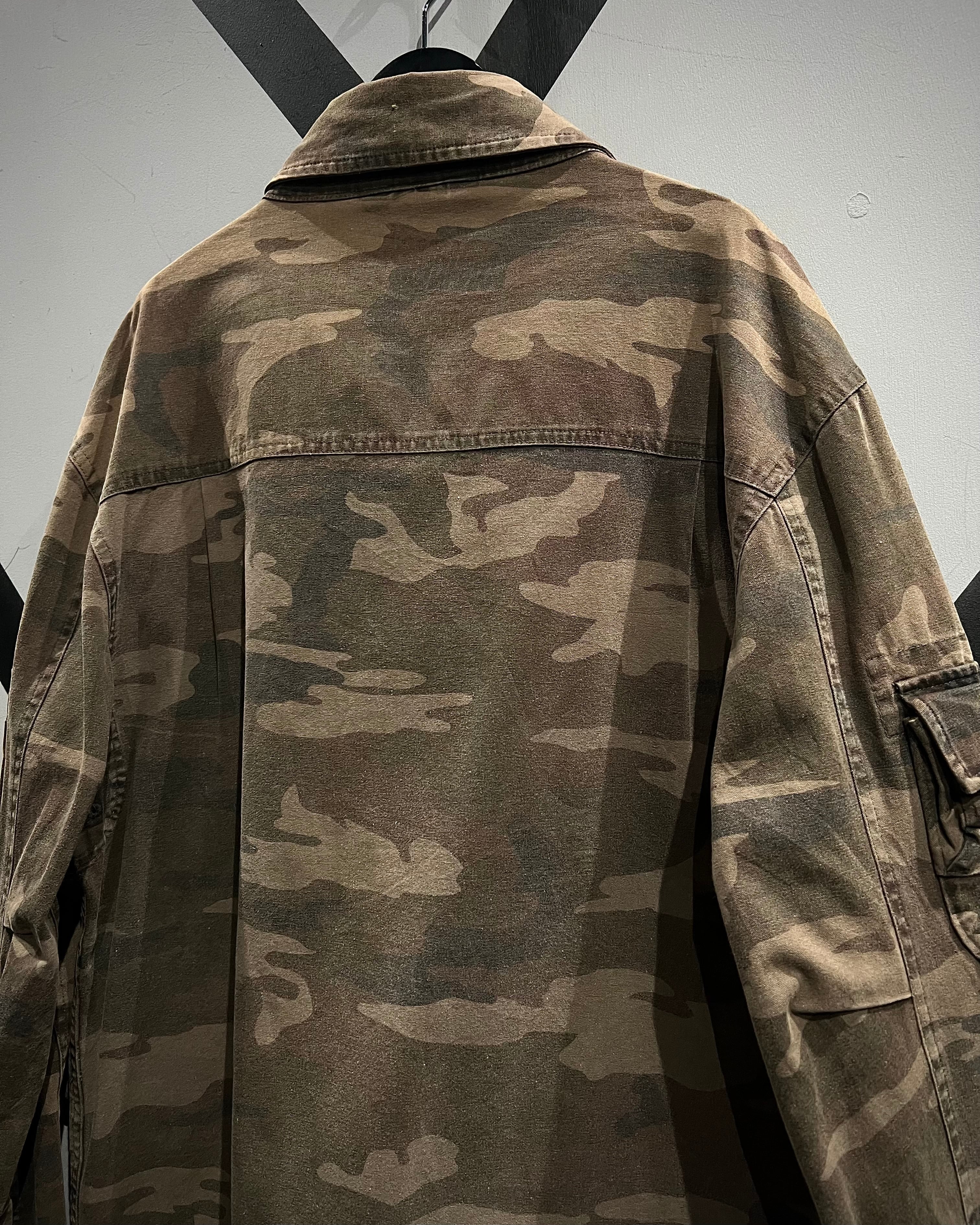 タフなダック地にウッドランドカモを落とし込んだ、ミリタリーライクな佇まいが魅力のジャケット。
