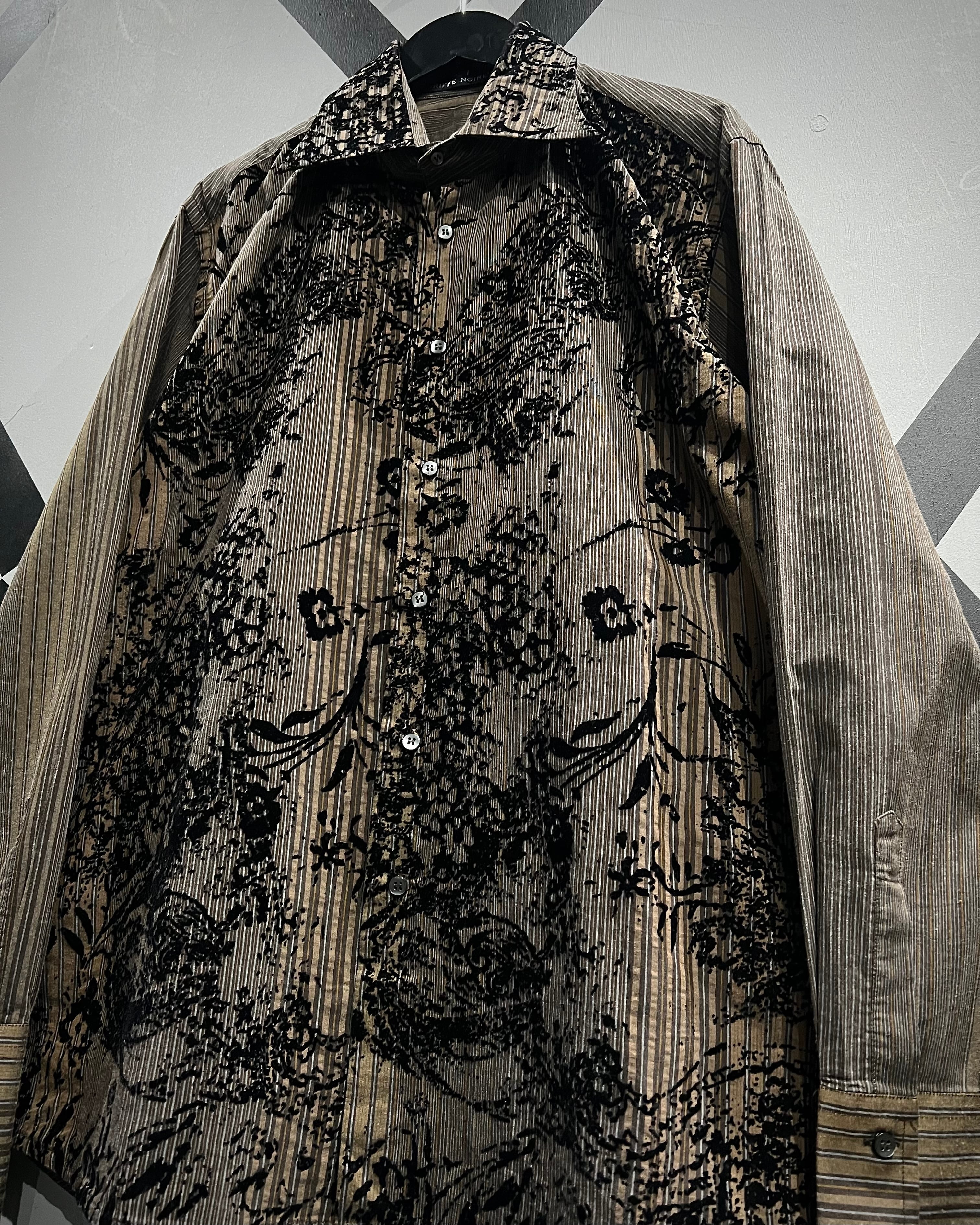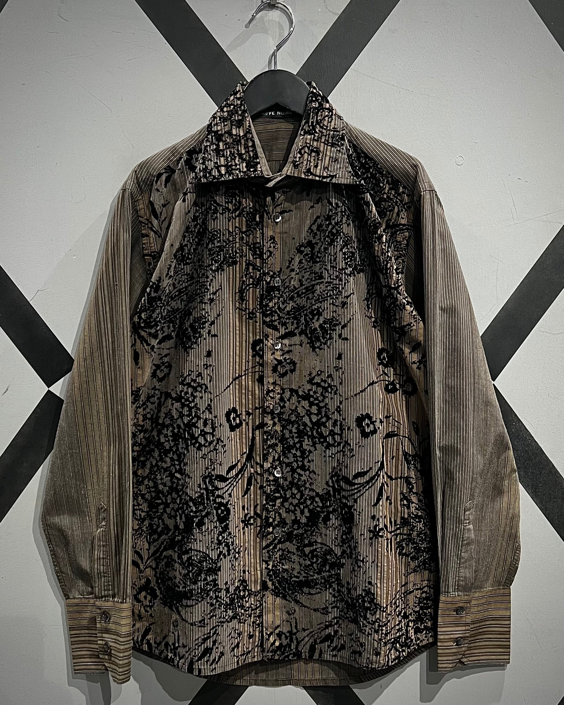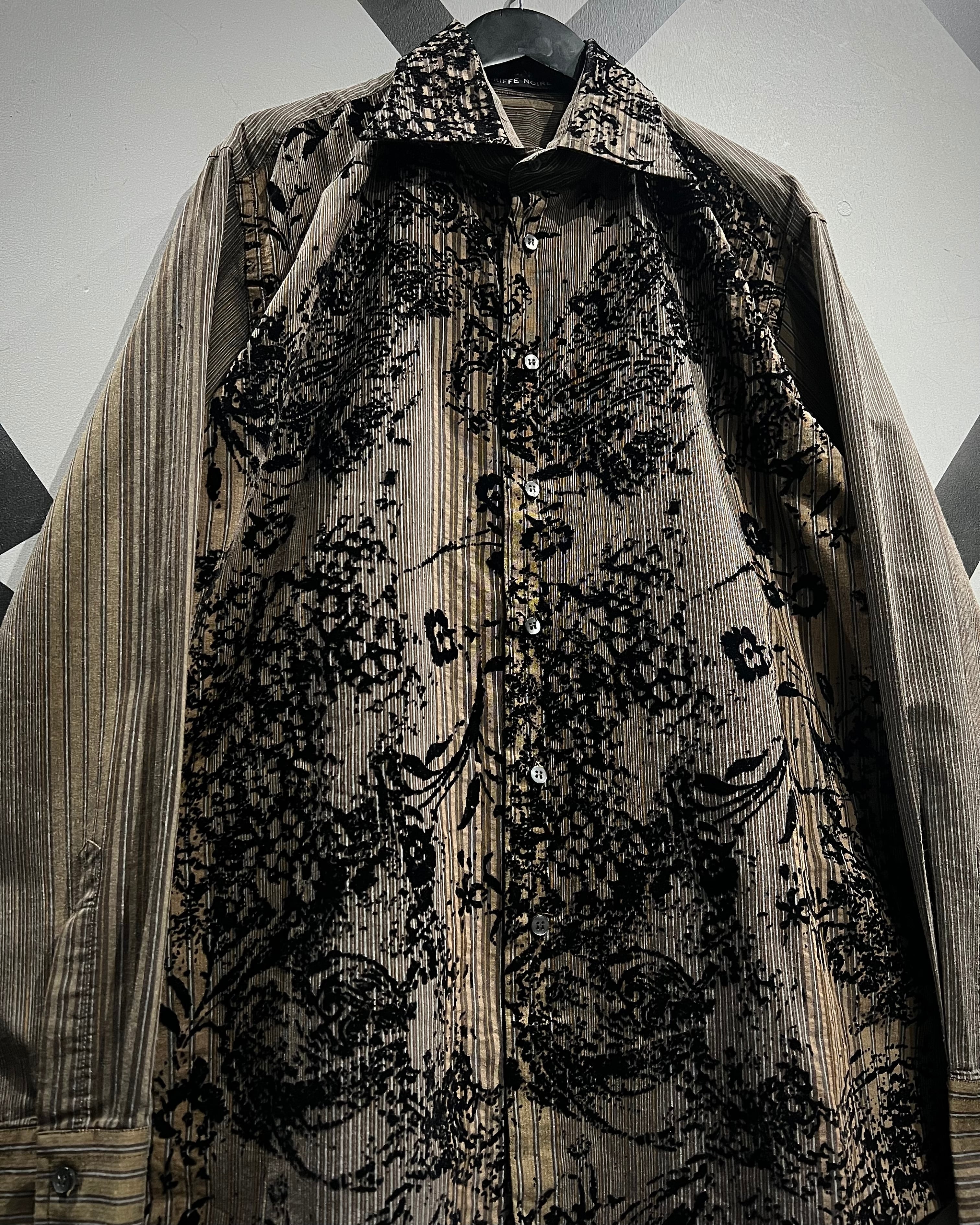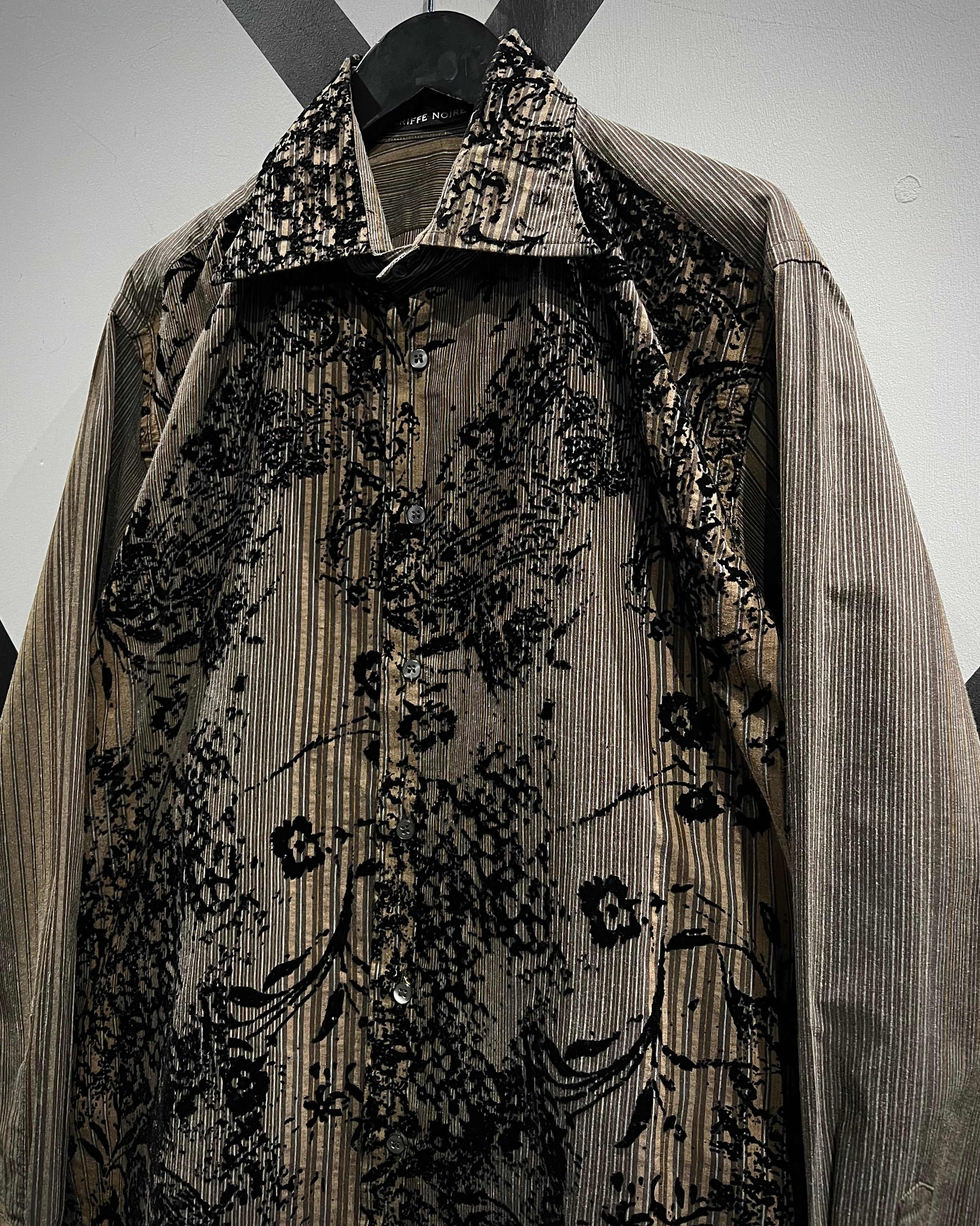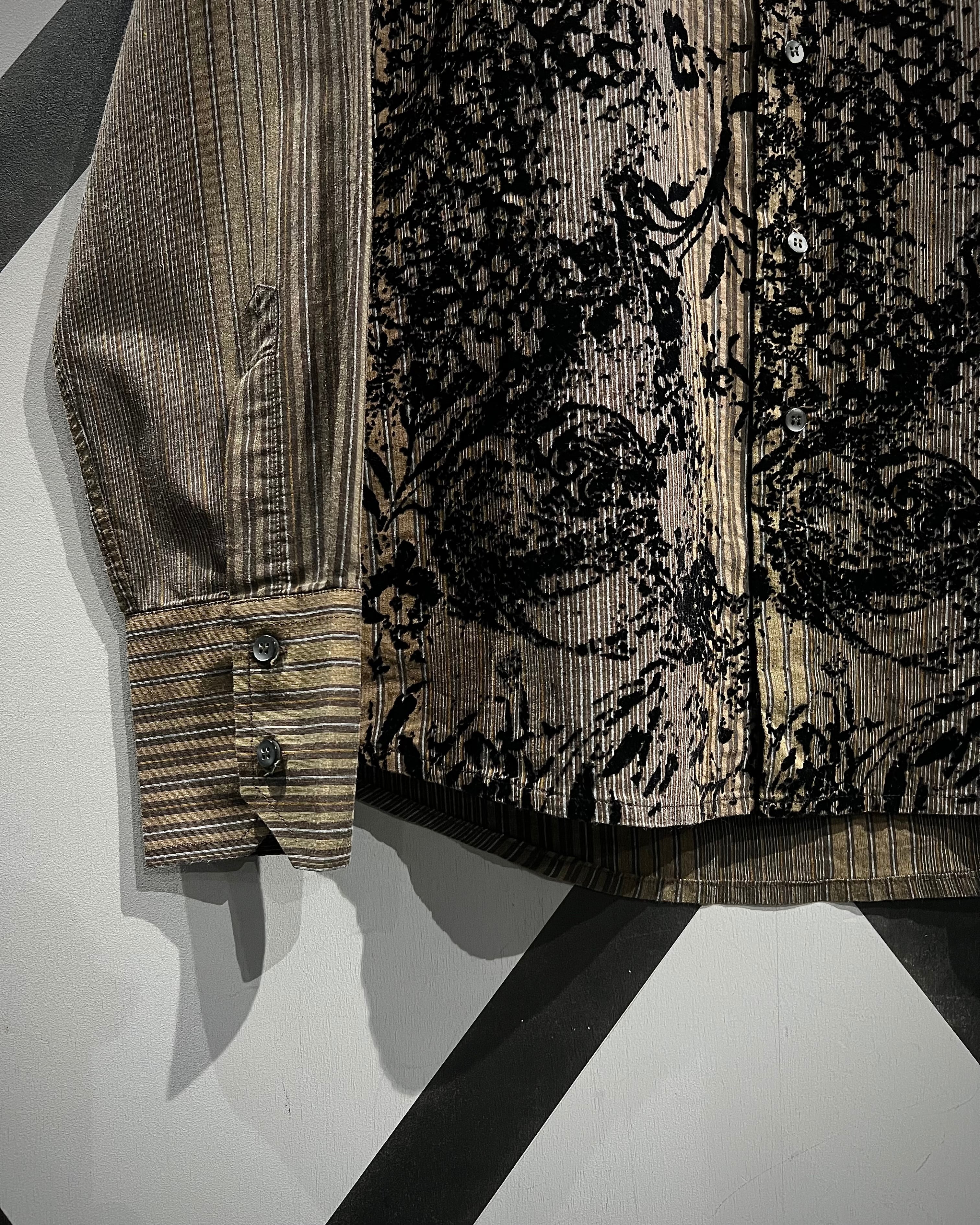 ストライプの端正さとフロッキープリントの装飾性が合わさった、長袖シャツの逸品です。