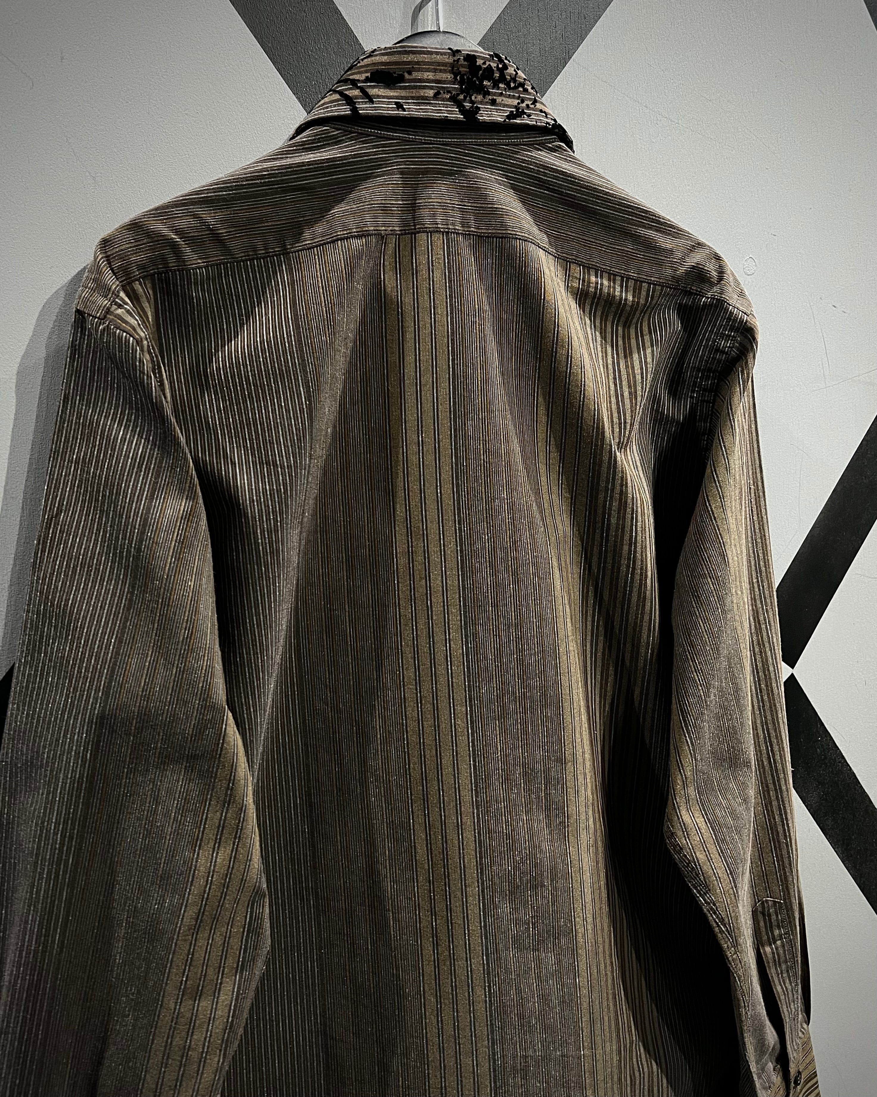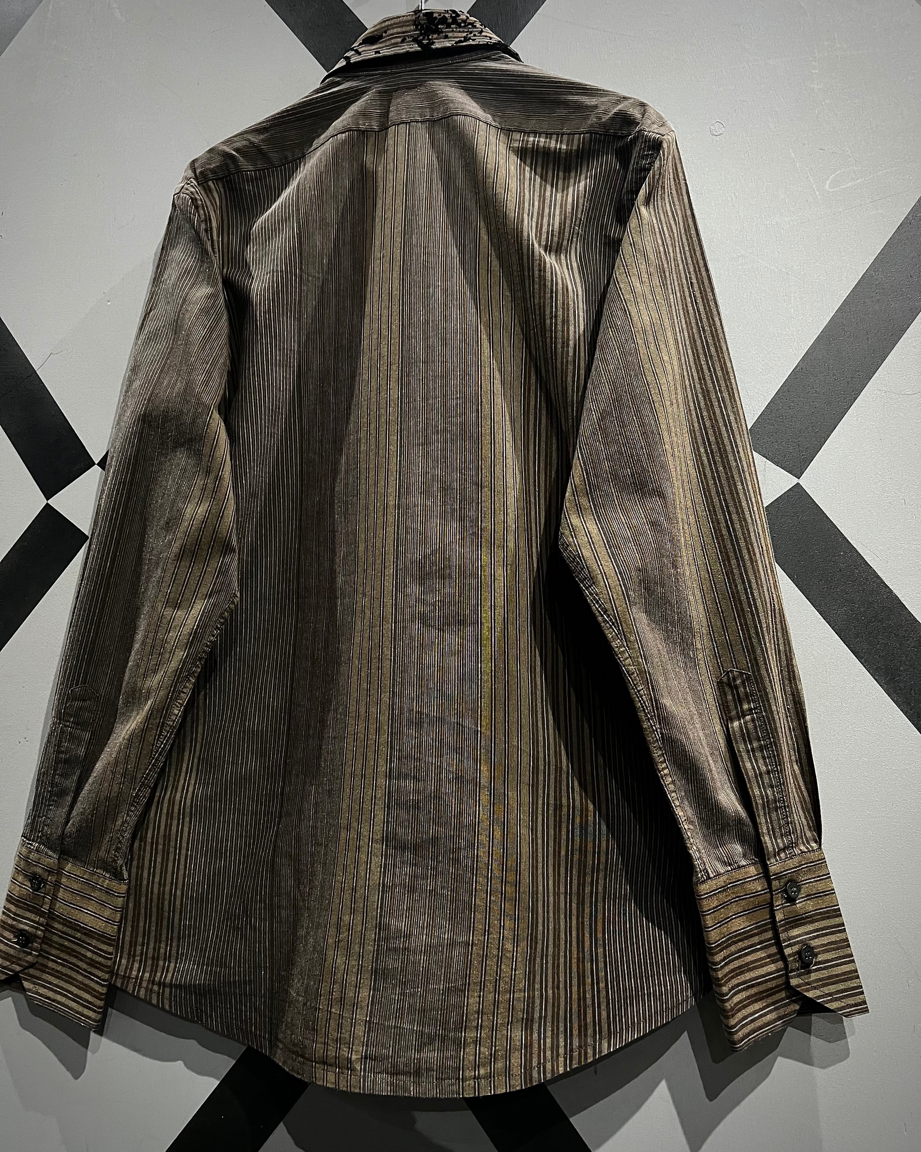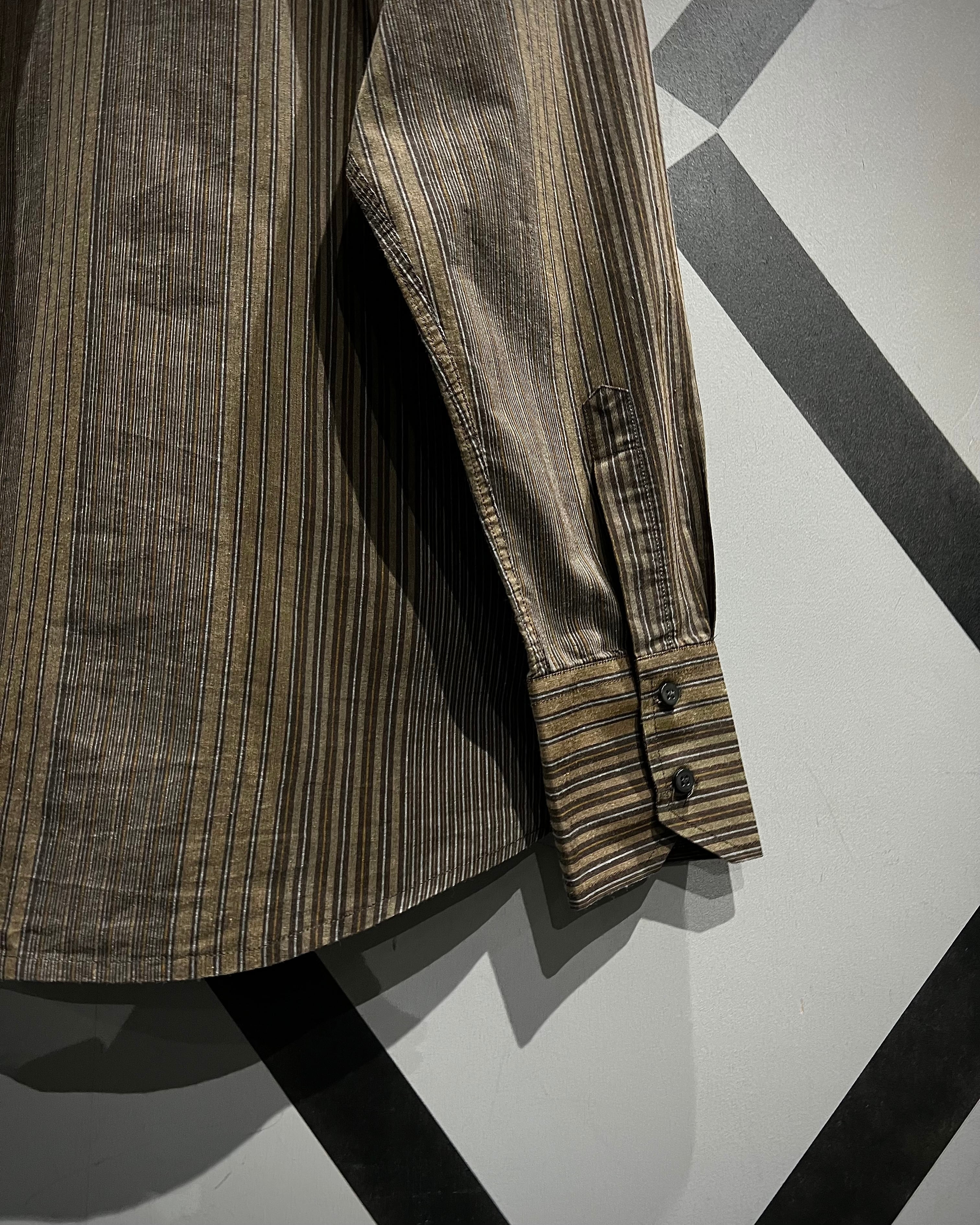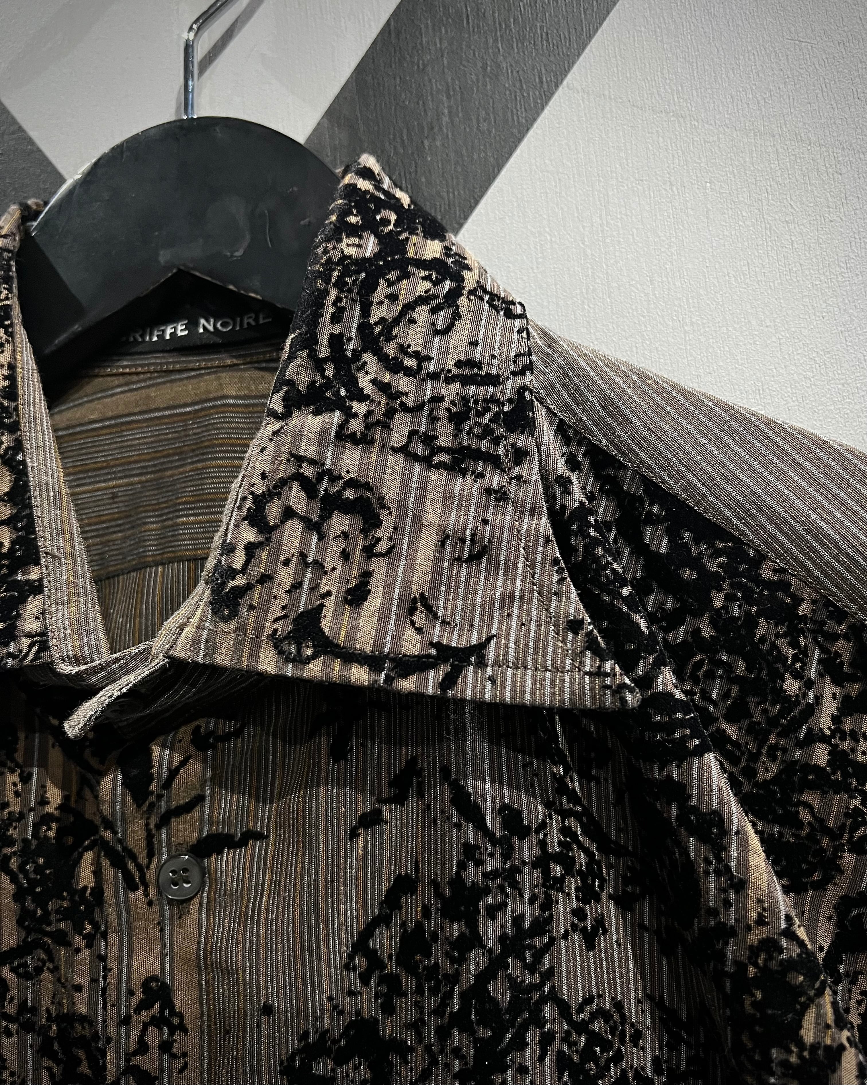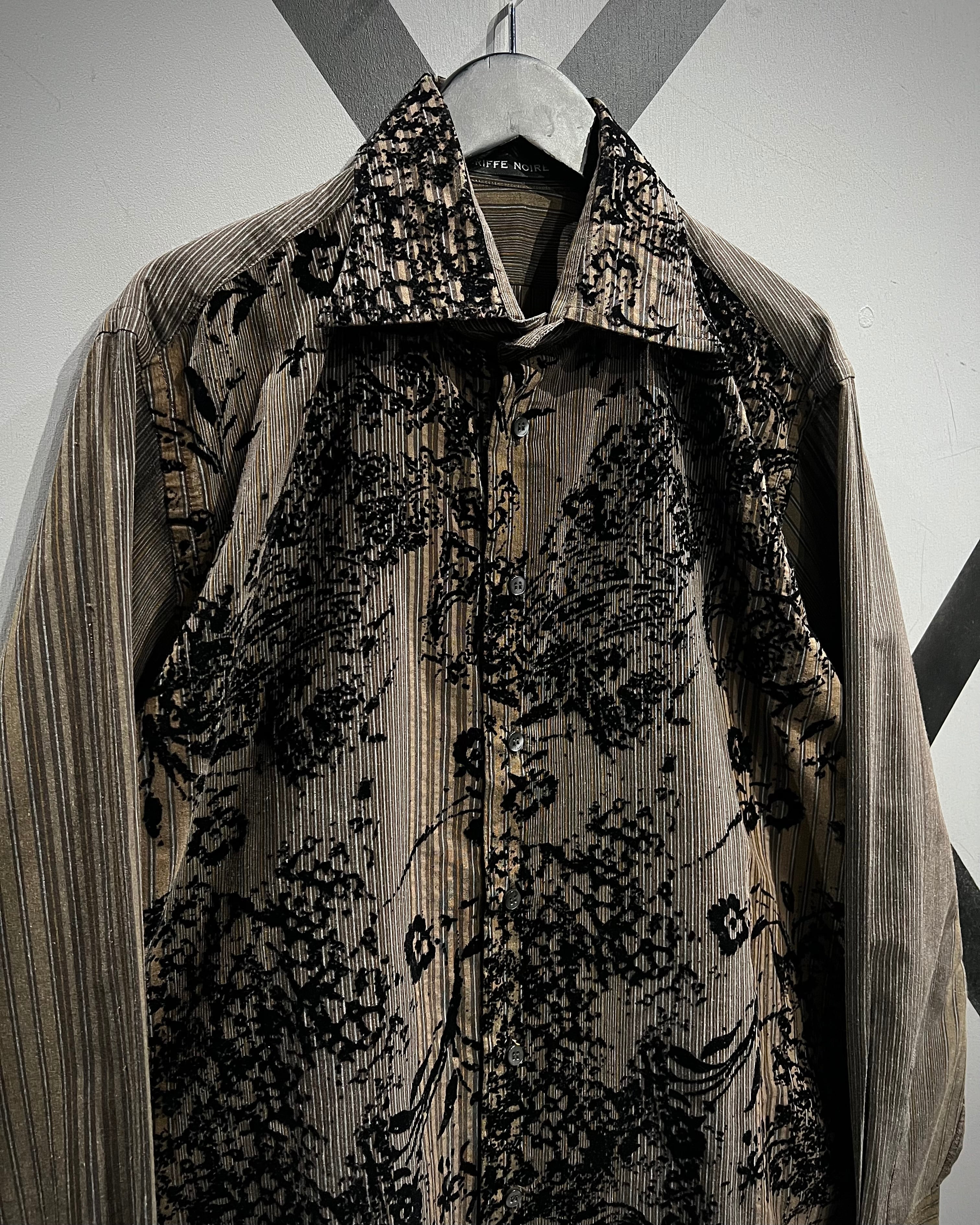 ストライプの端正さとフロッキープリントの装飾性が合わさった、長袖シャツの逸品です。