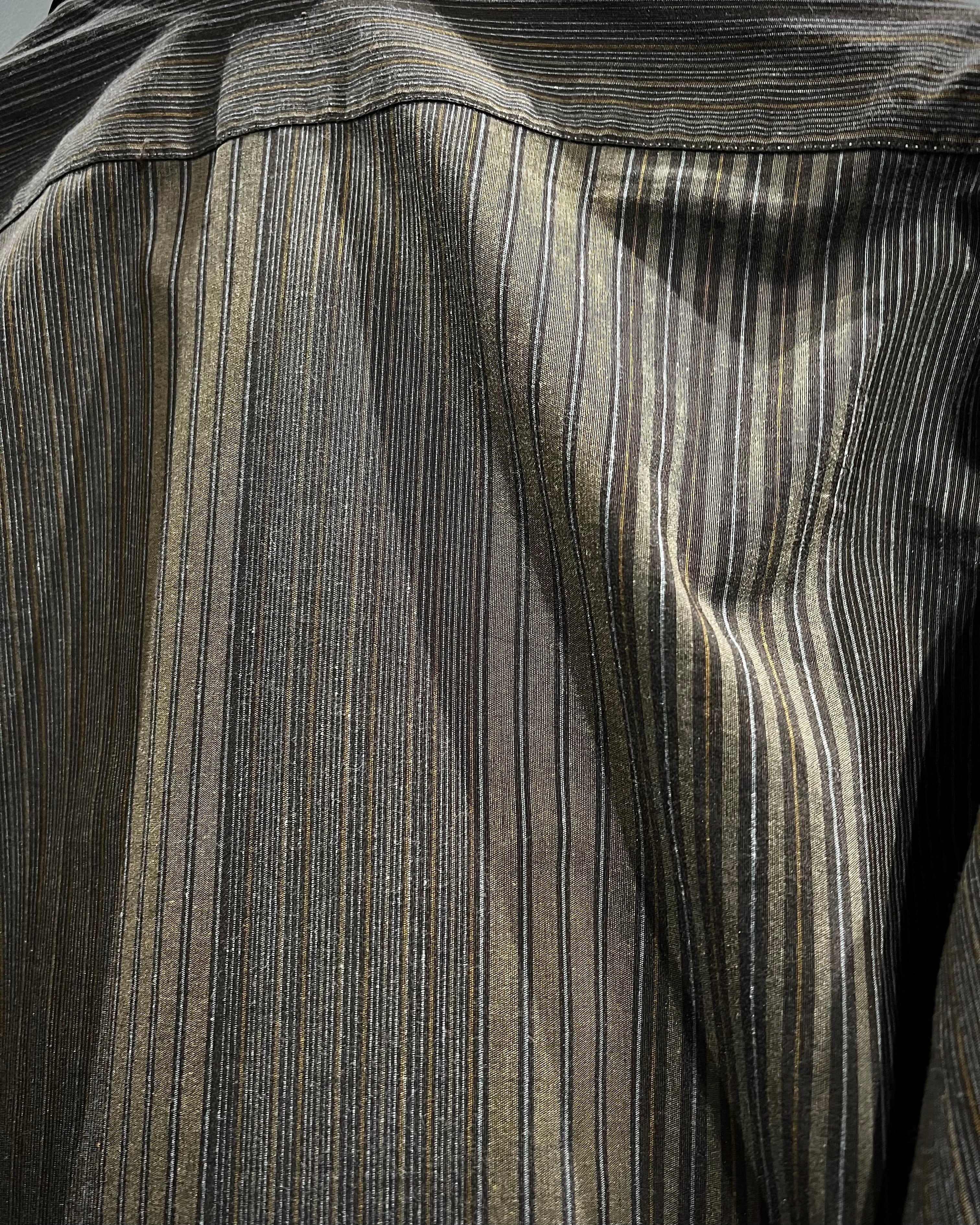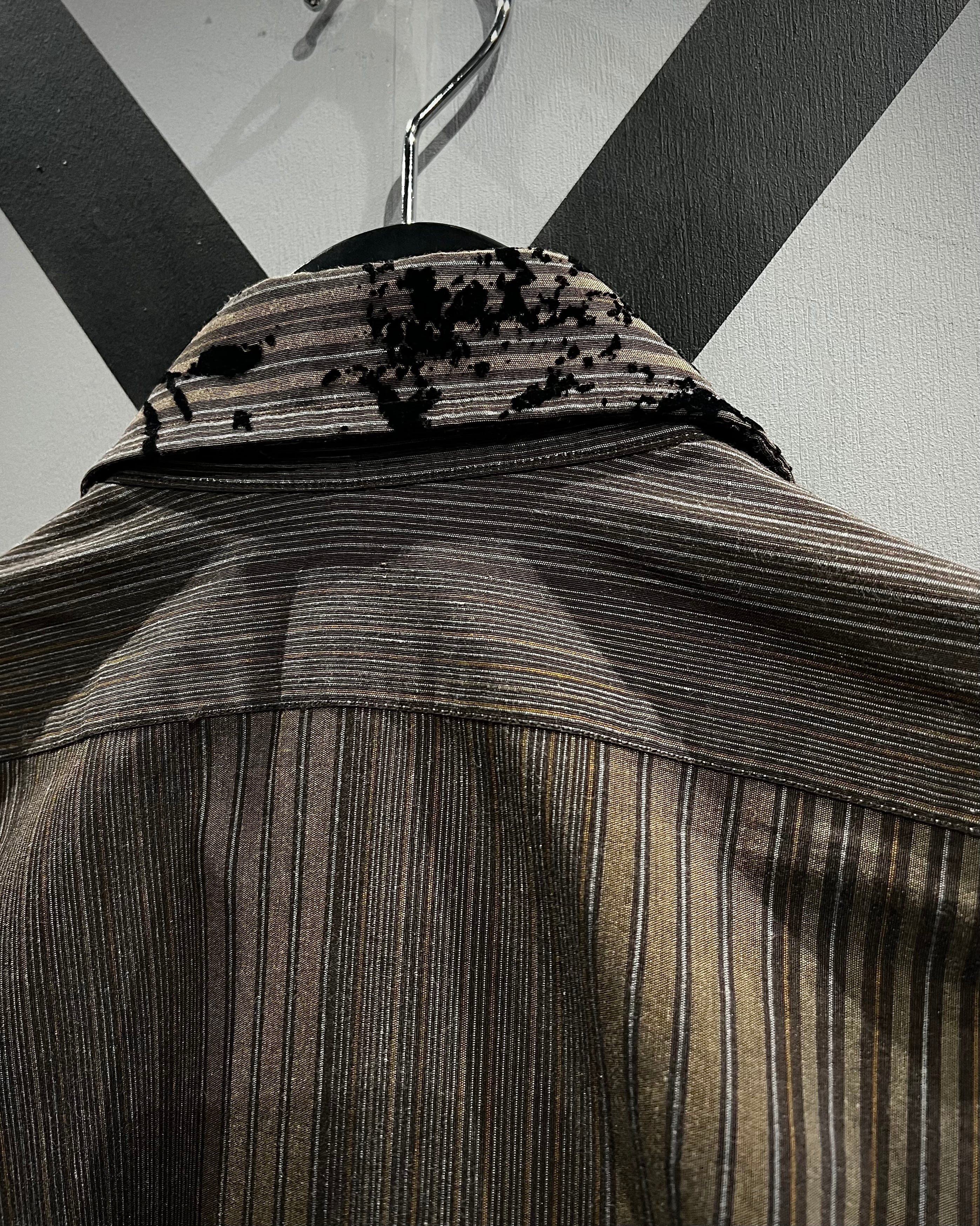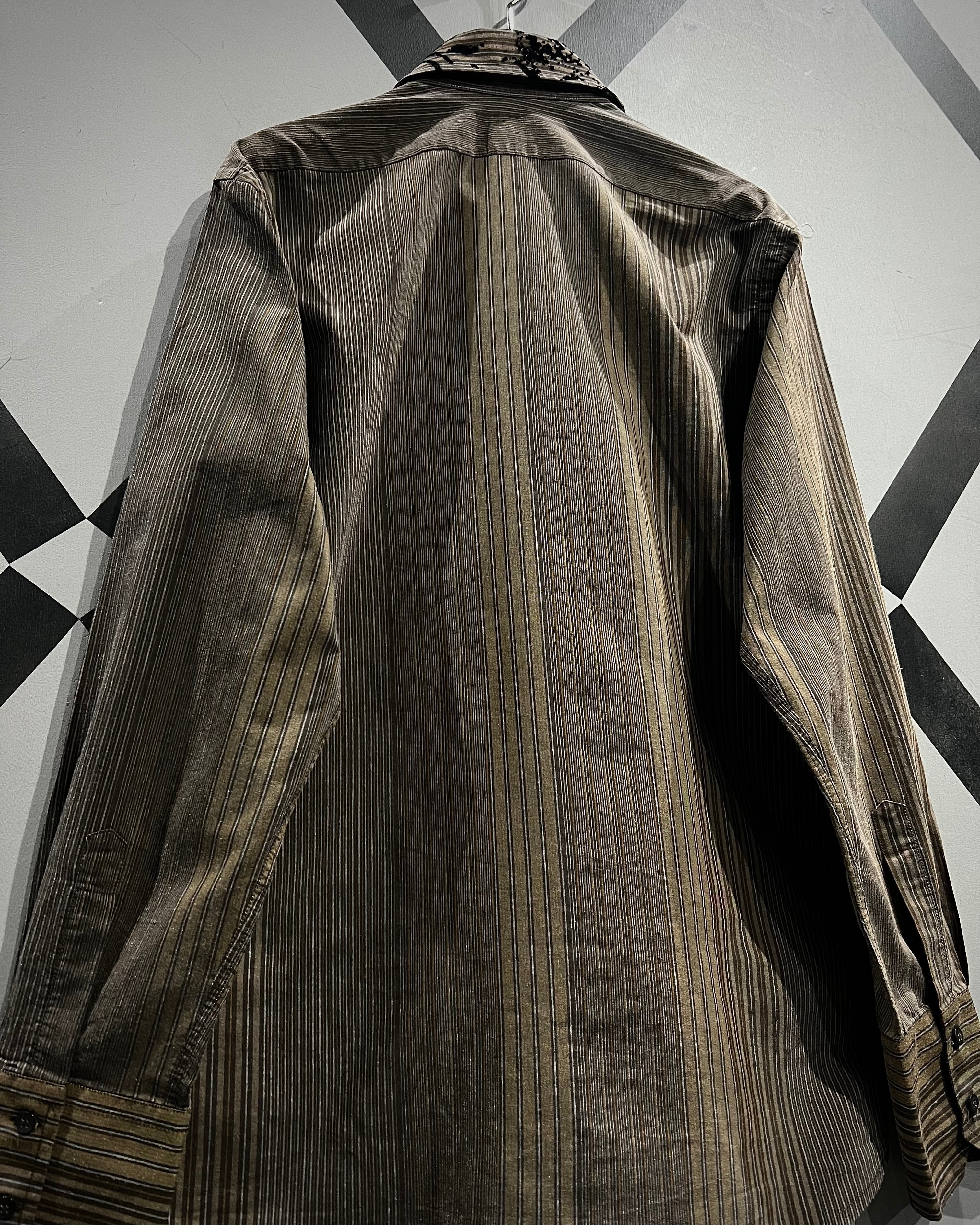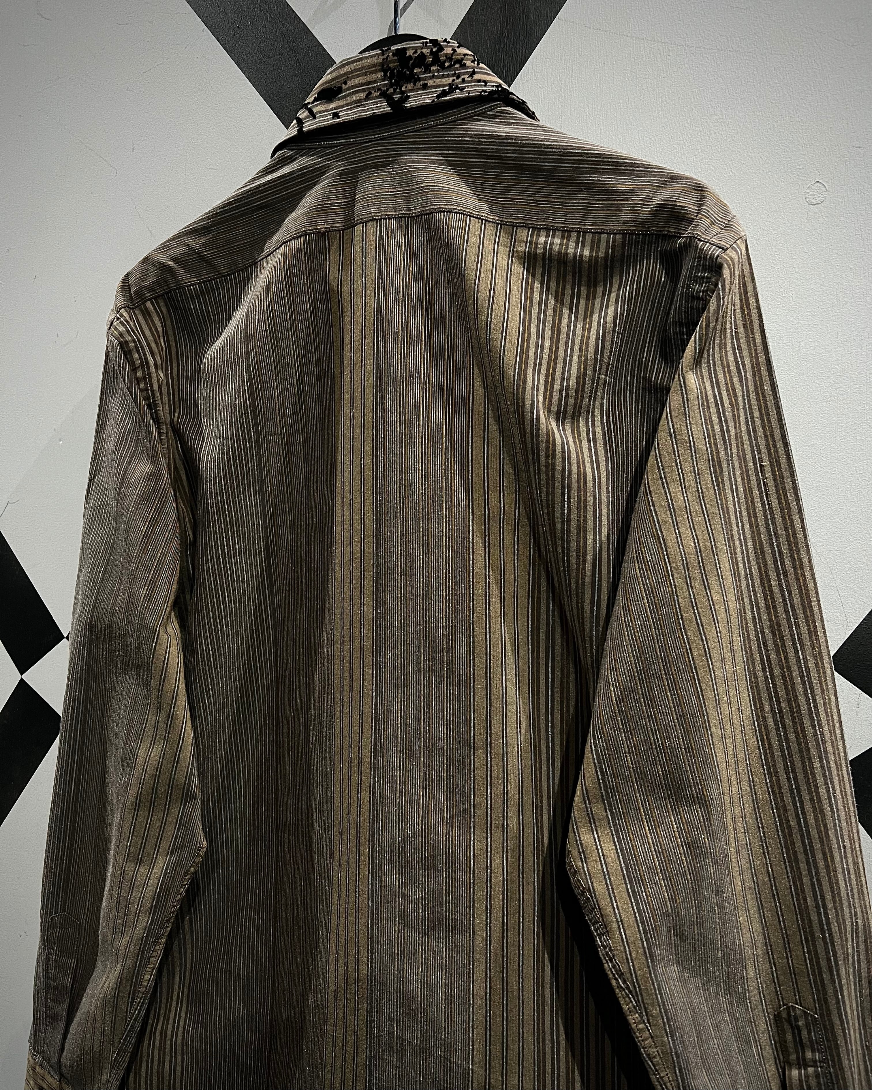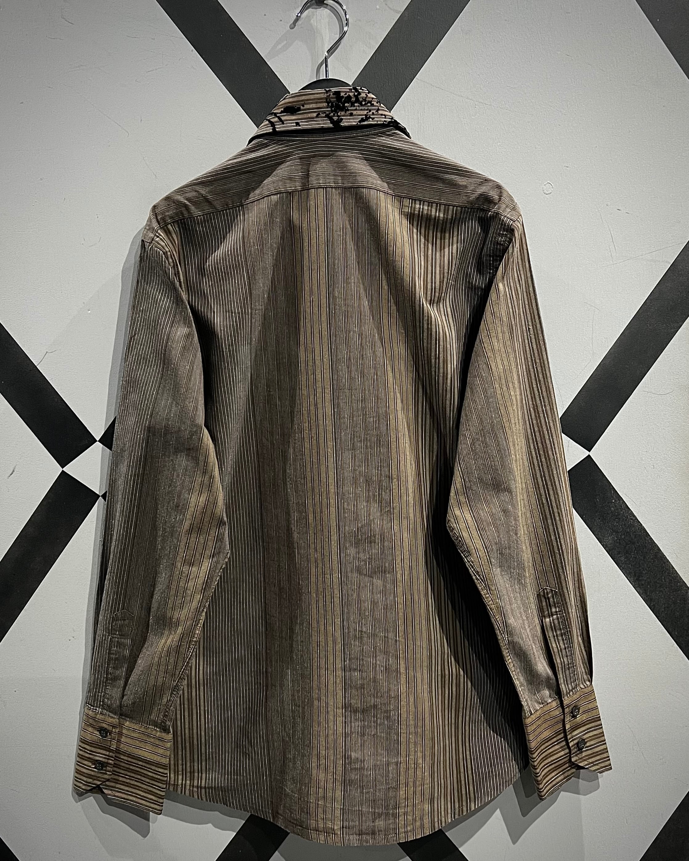 ストライプの端正さとフロッキープリントの装飾性が合わさった、長袖シャツの逸品です。