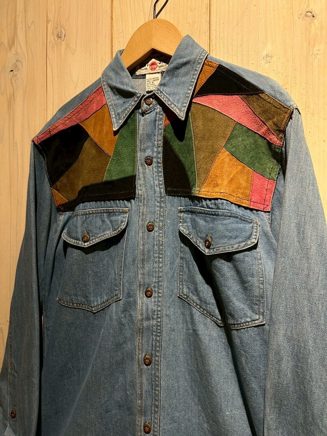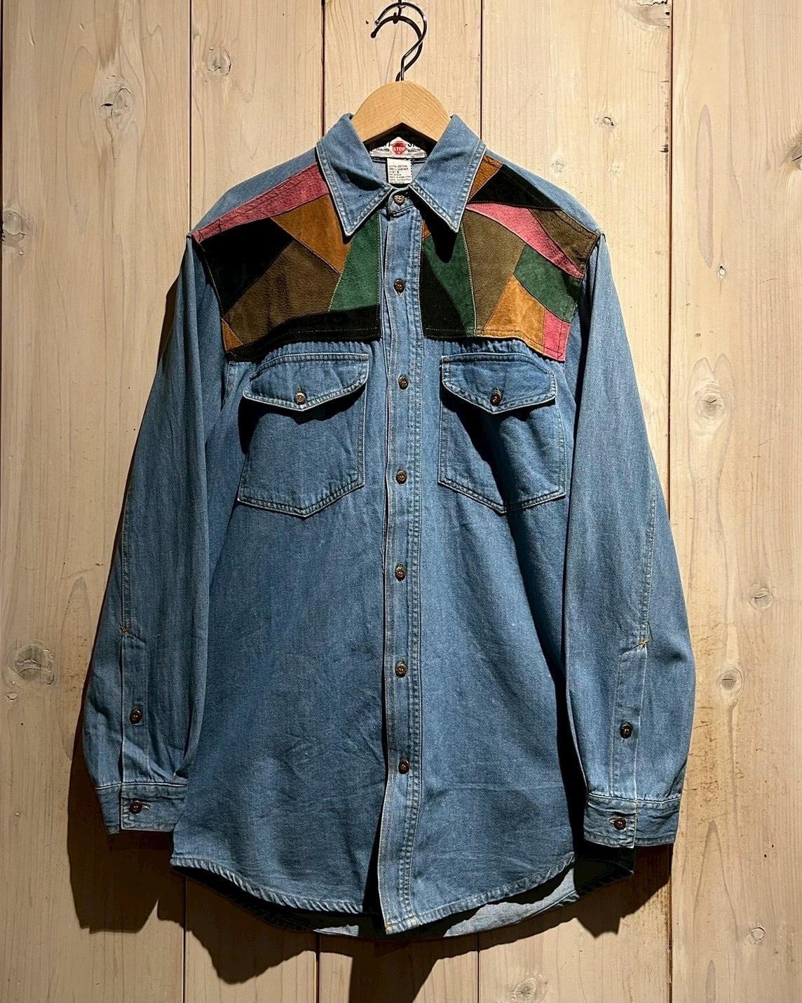 クラシックなデニムシャツをベースに、幾何学的なスエード切り替えで個性を加えた存在感のあるデニムシャツです。