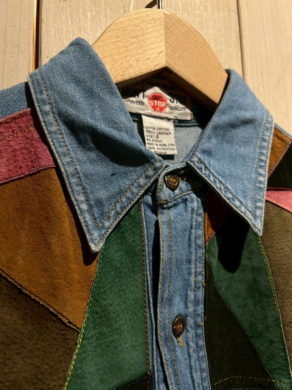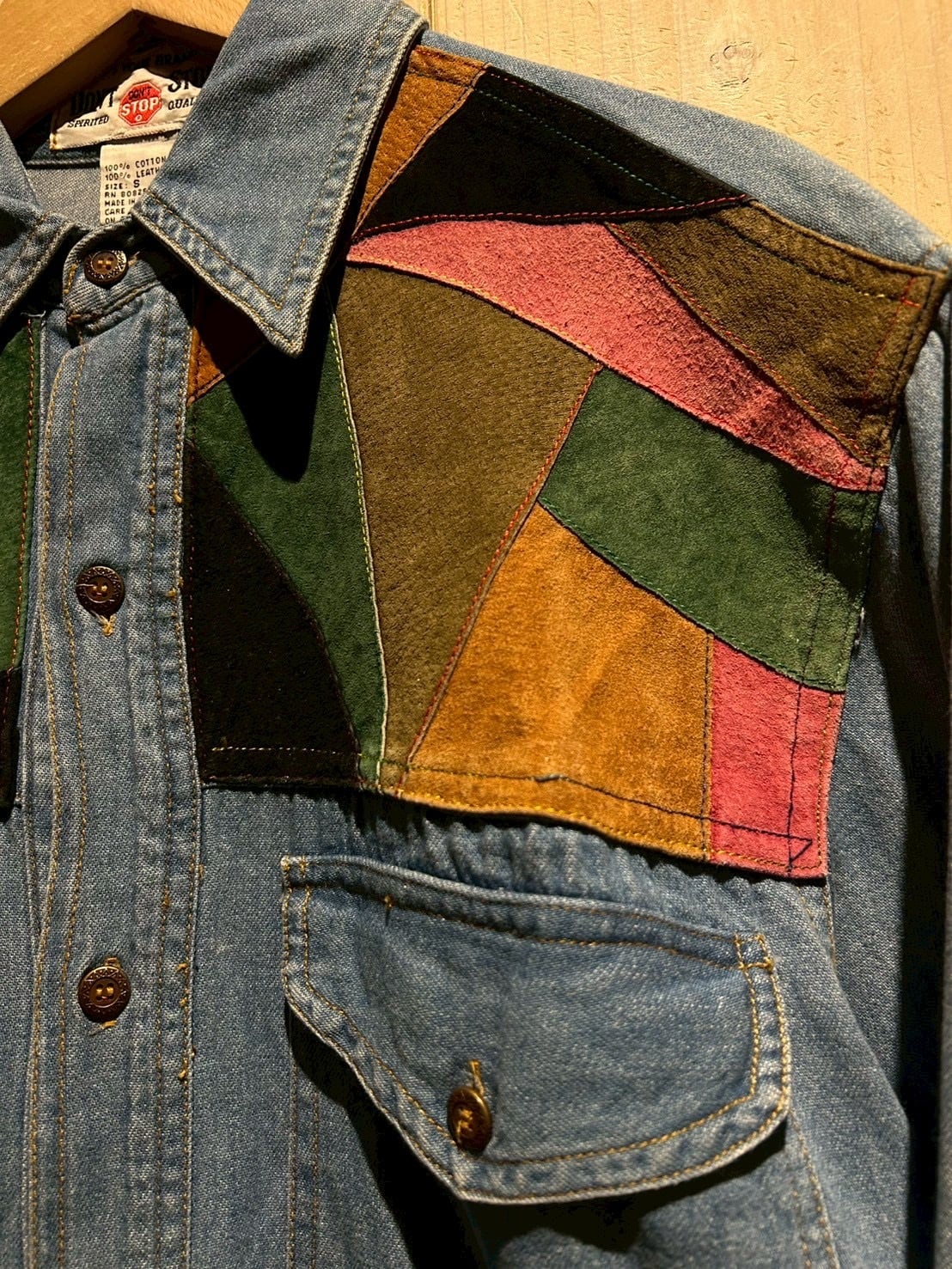 ボディに程よく色落ちしたライトインディゴのデニムを採用し、ヨーク部分へカラフルなスエードを大胆に切り替えたデザインが目を惹く1着。