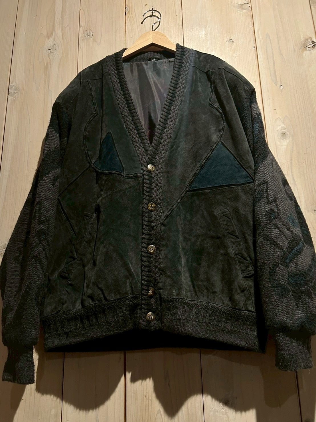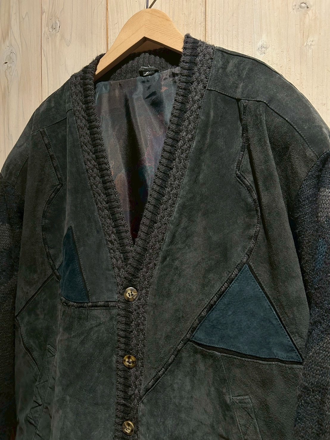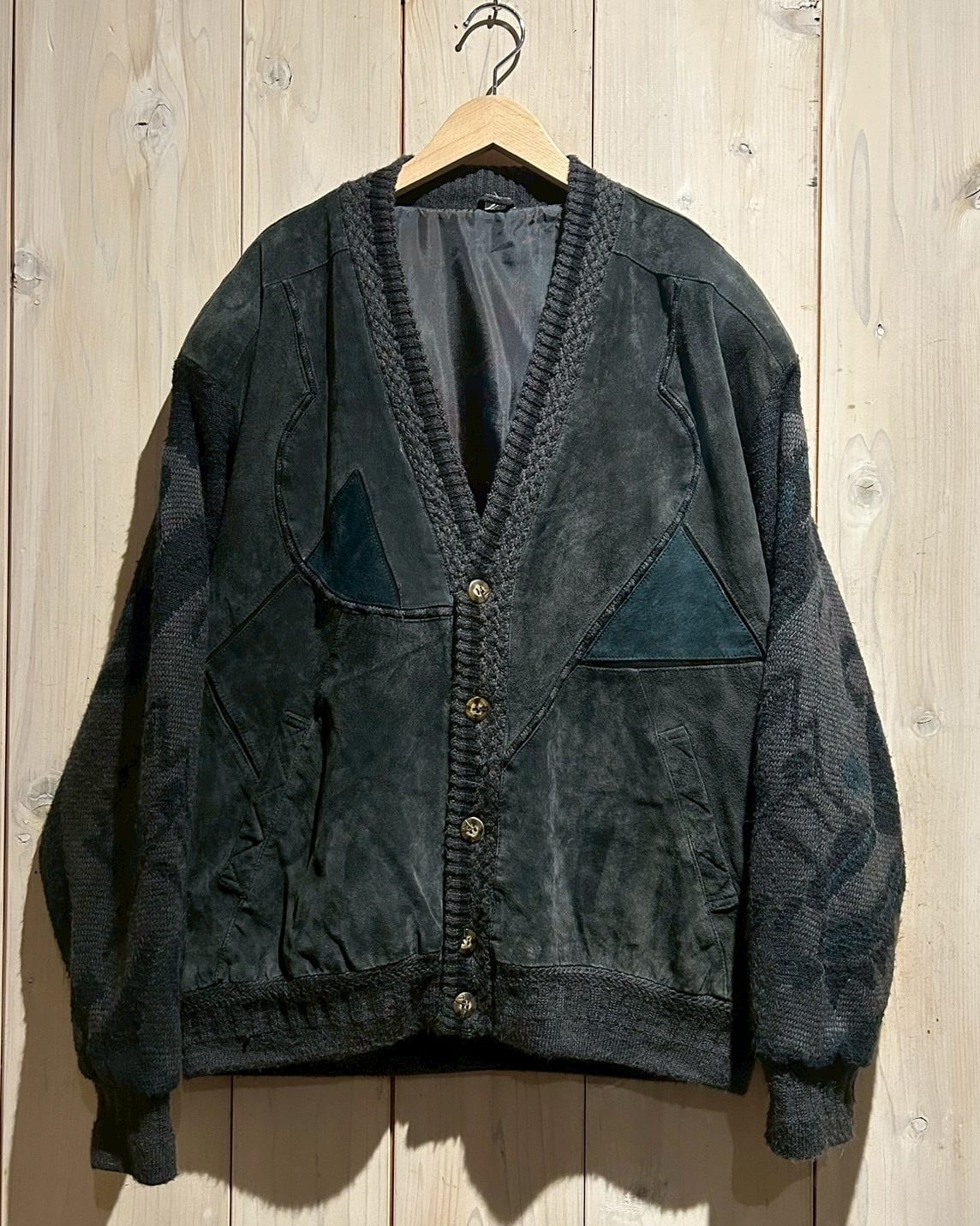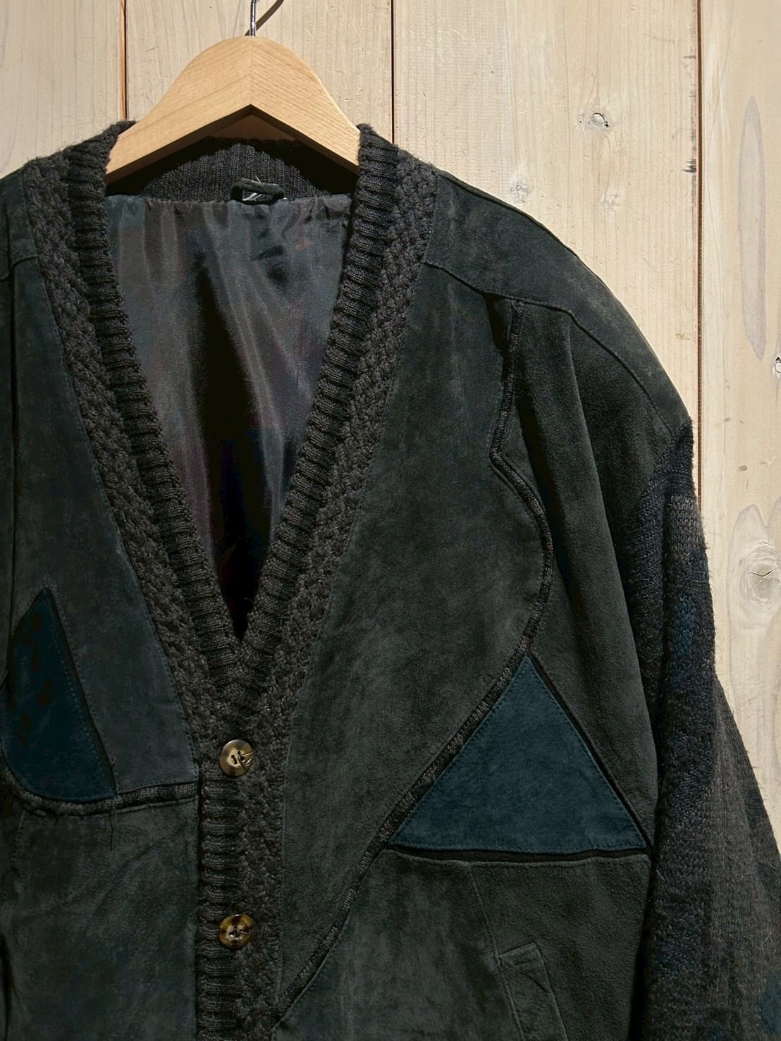 柔らかなニットの表情に、重厚なスエードレザーを掛け合わせたユーロヴィンテージのカーディガンジャケット。