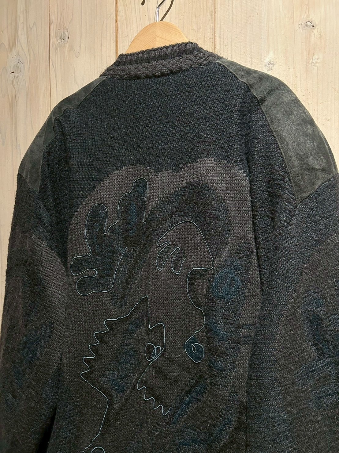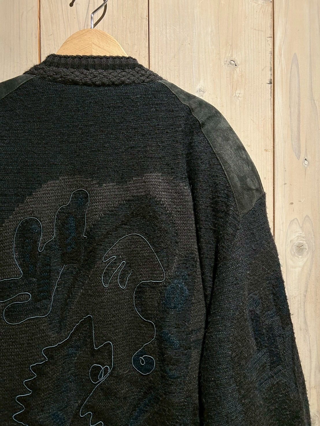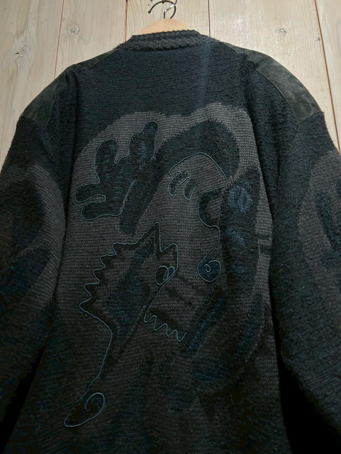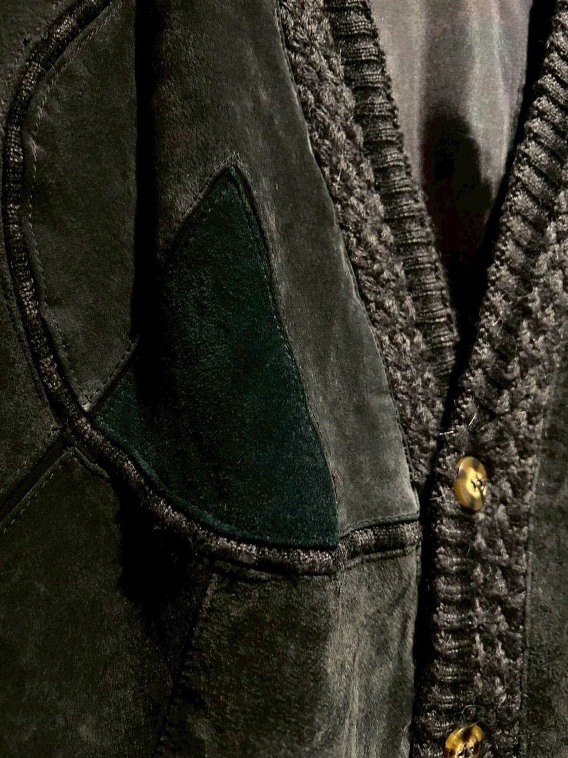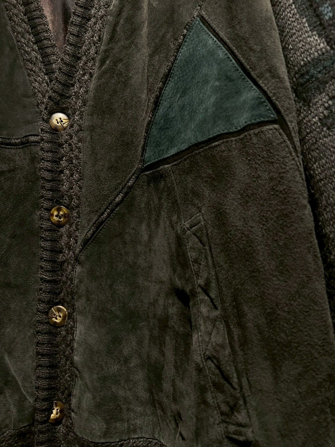柔らかなニットの表情に、重厚なスエードレザーを掛け合わせたユーロヴィンテージのカーディガンジャケット。