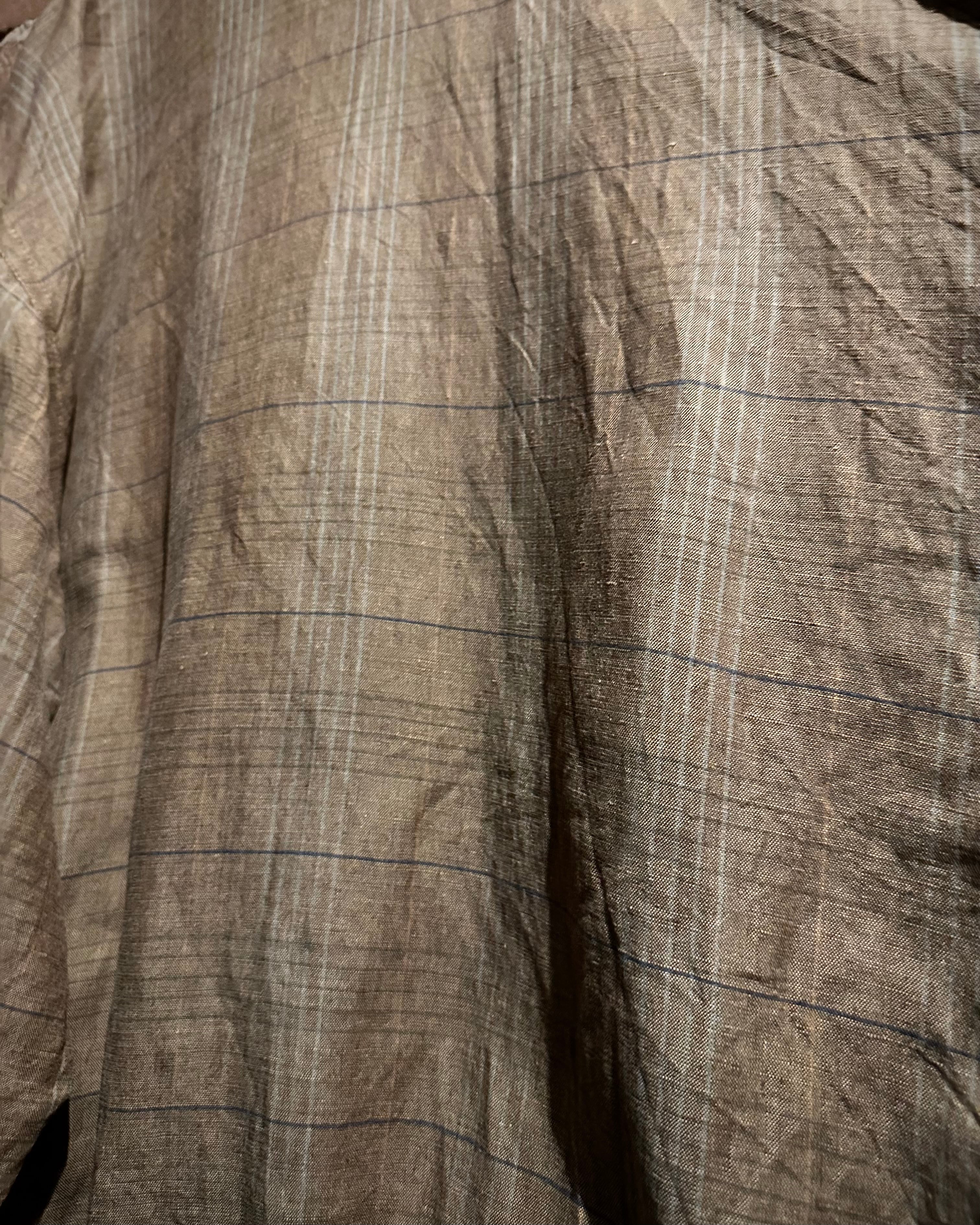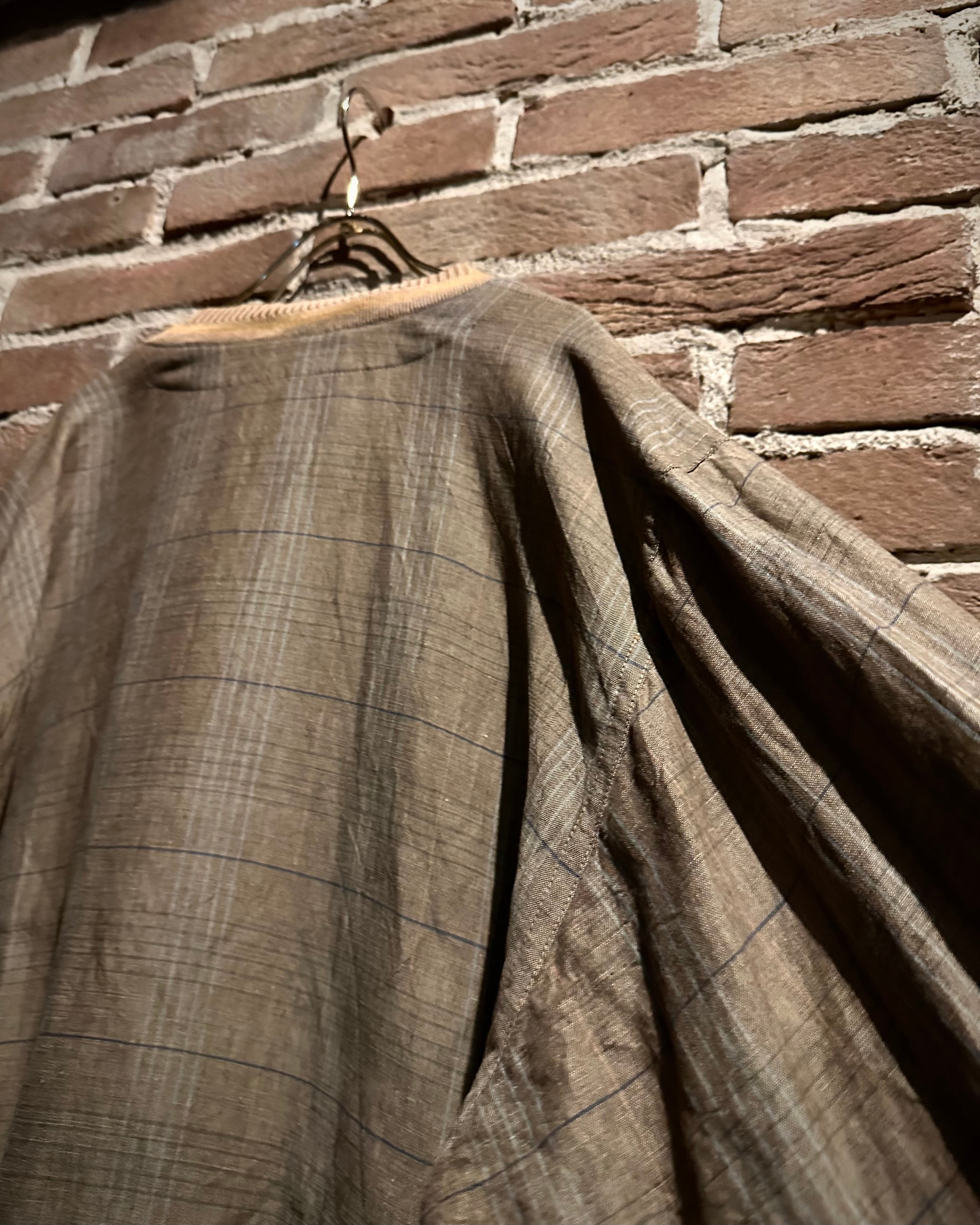 素材にはリネン×ビスコースの混紡生地を採用し、リネン特有のナチュラルな風合いに、ビスコースのしなやかさと落ち感が加わった1着。