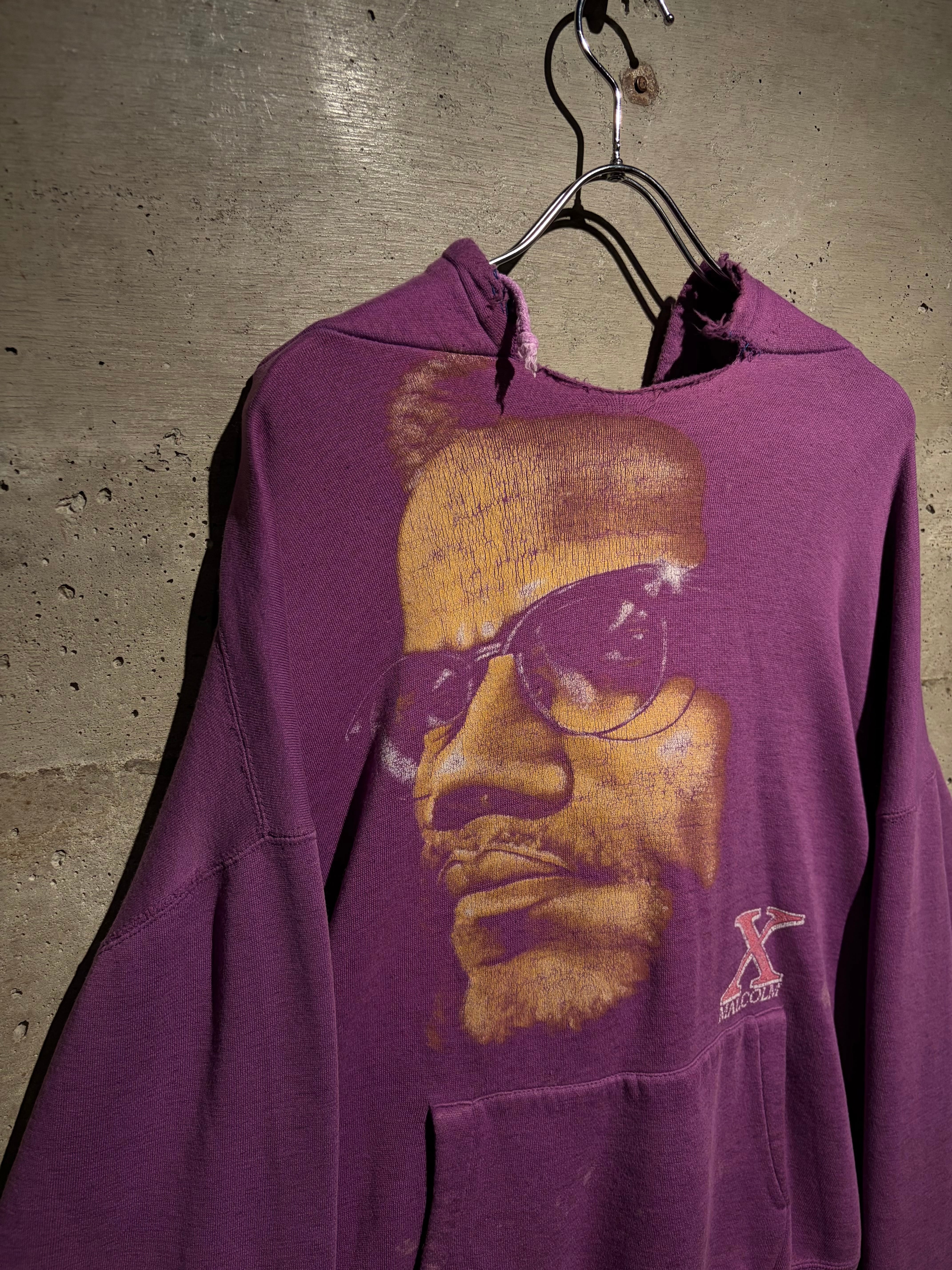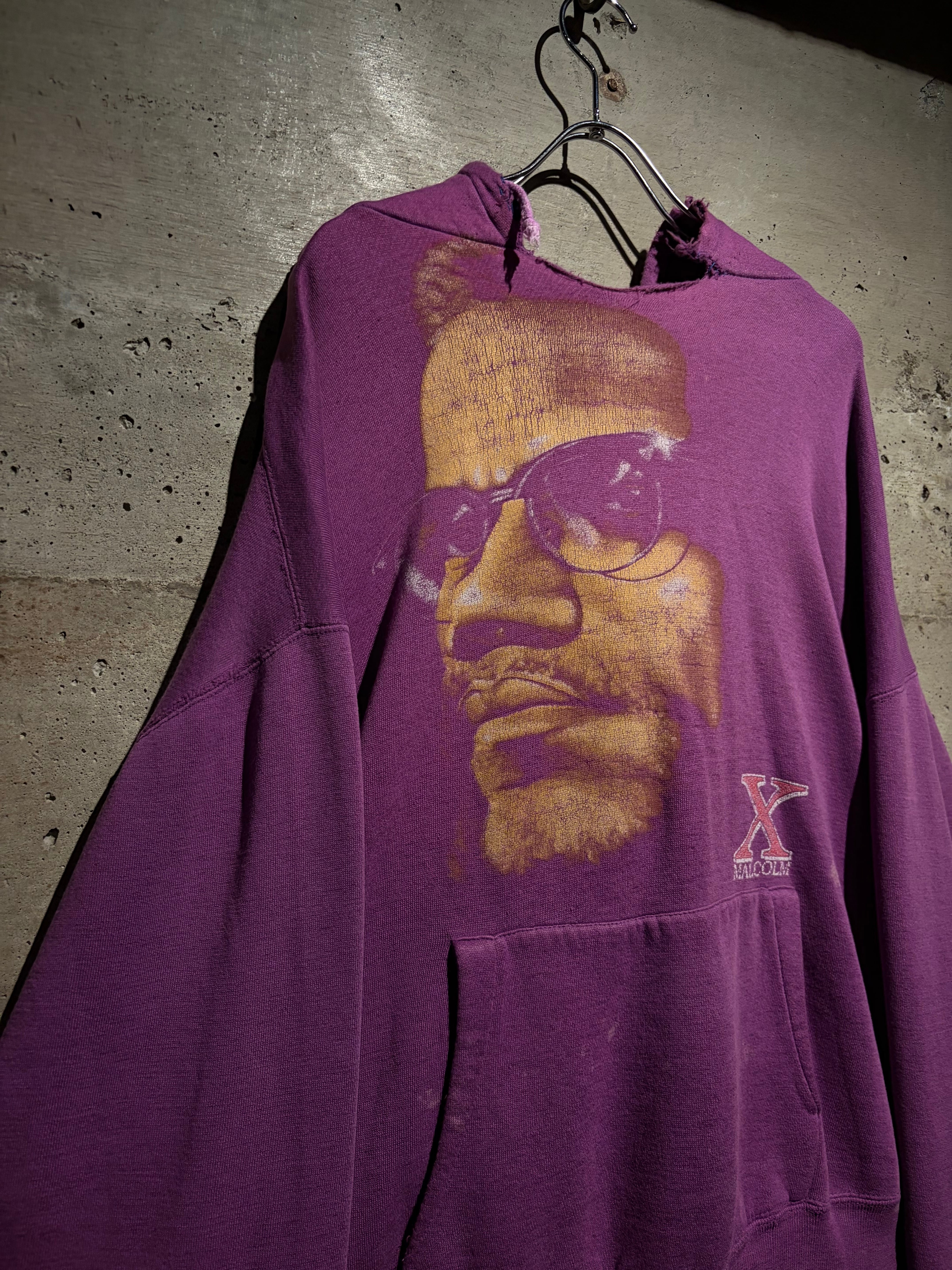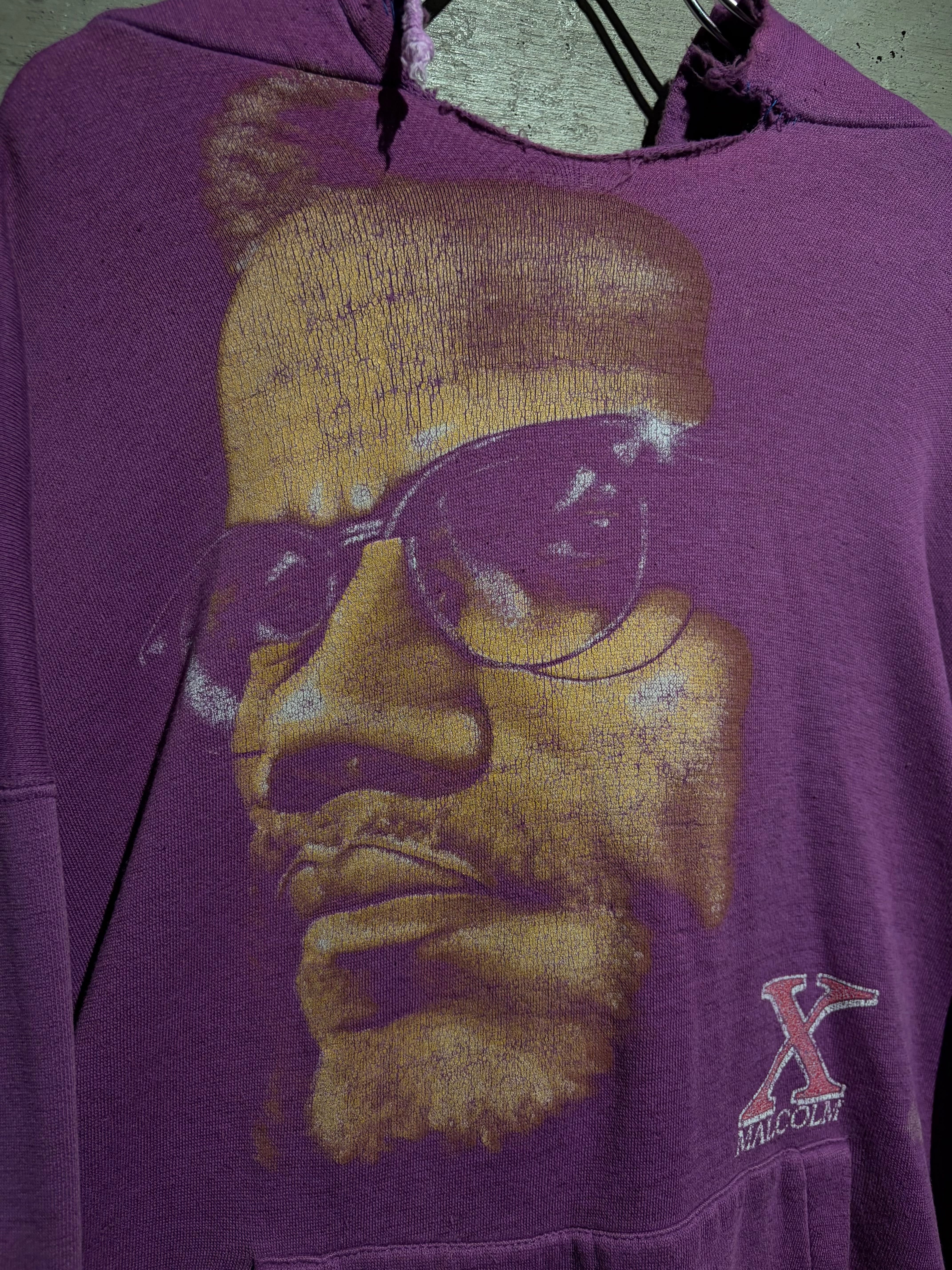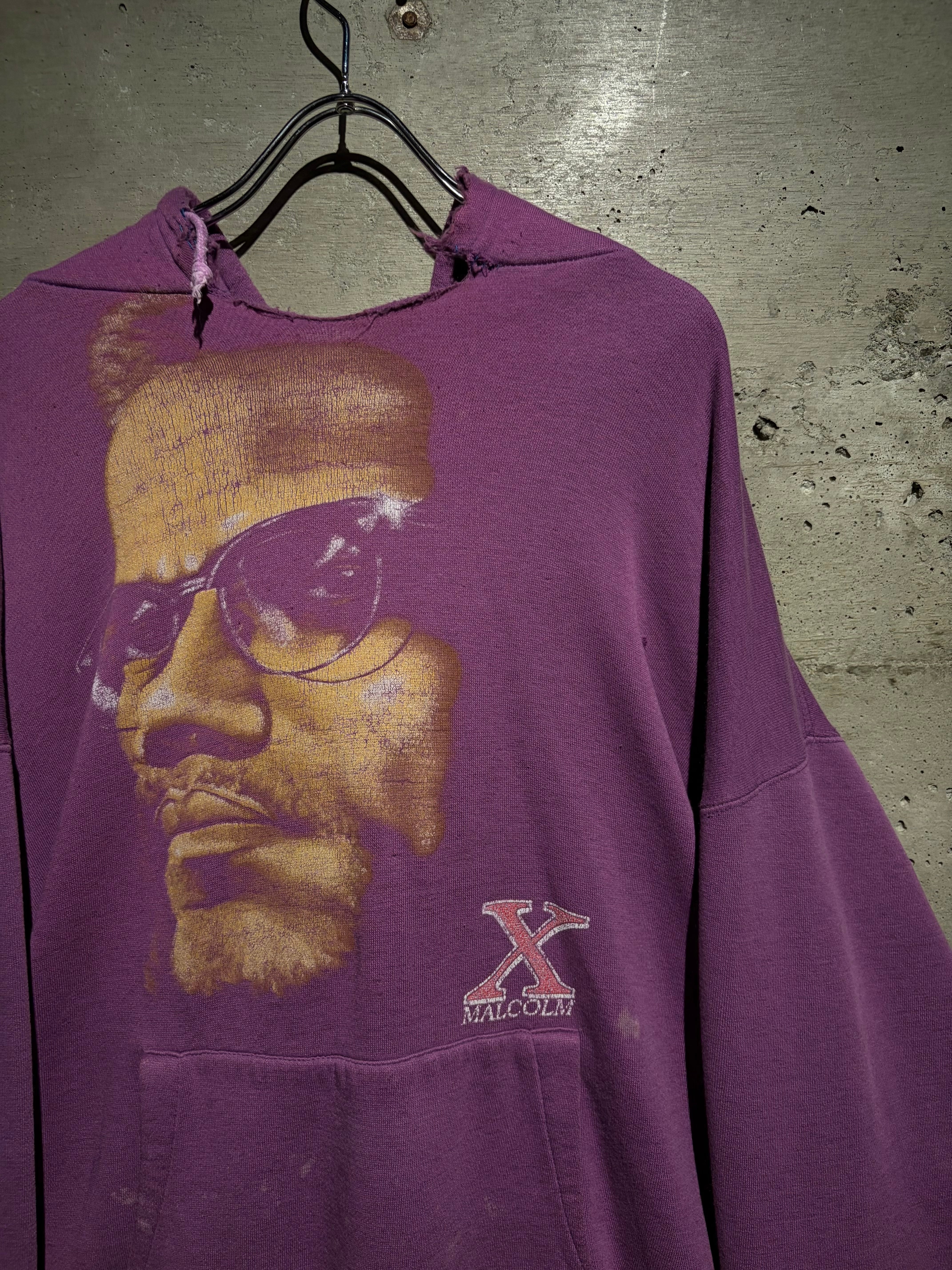 ブラックカルチャー、そしてアメリカ史においても象徴的存在として知られる“マルコムX”のポートレートを大胆に落とし込んだ、90'sのプルオーバーフーディ。
