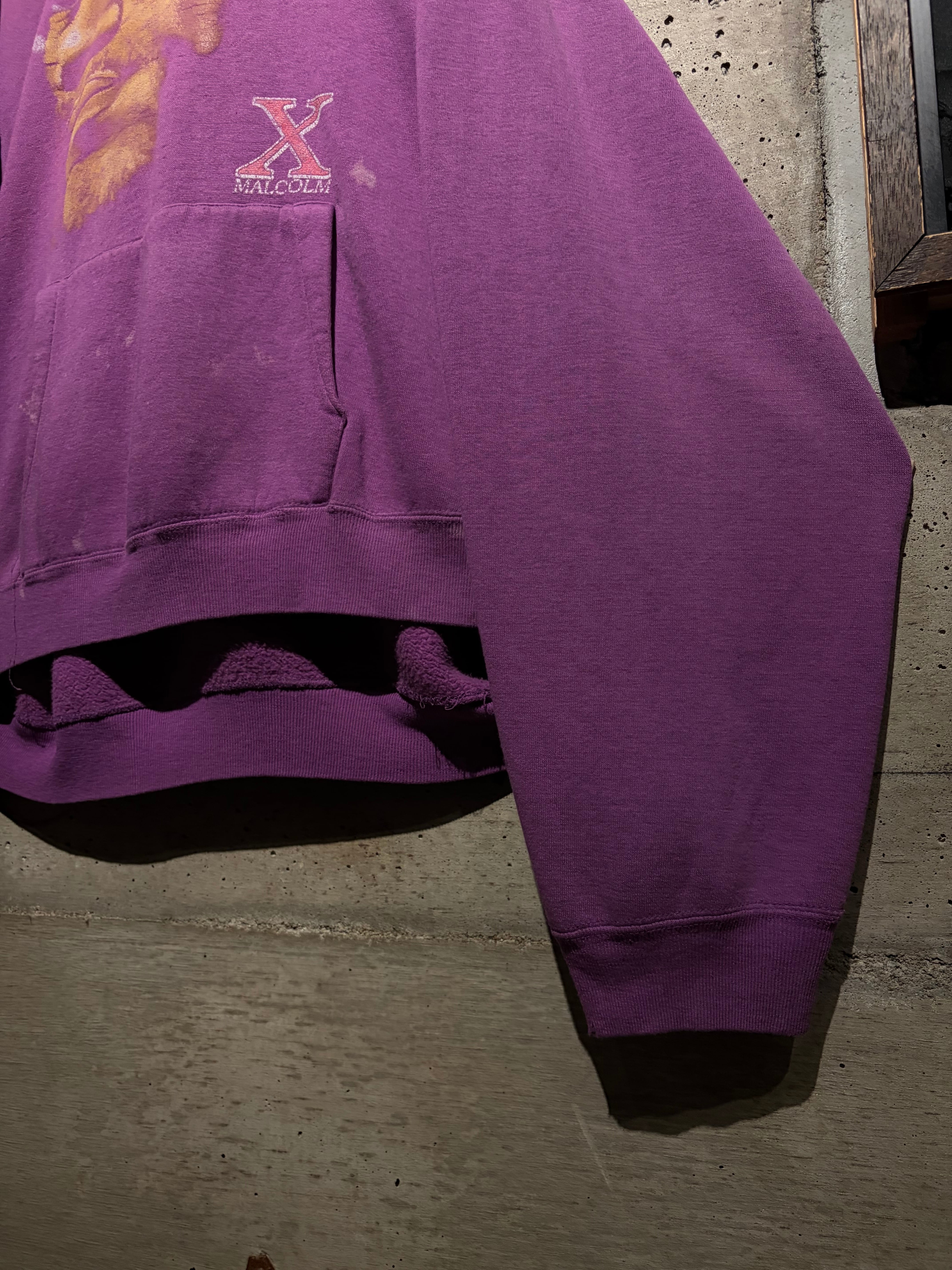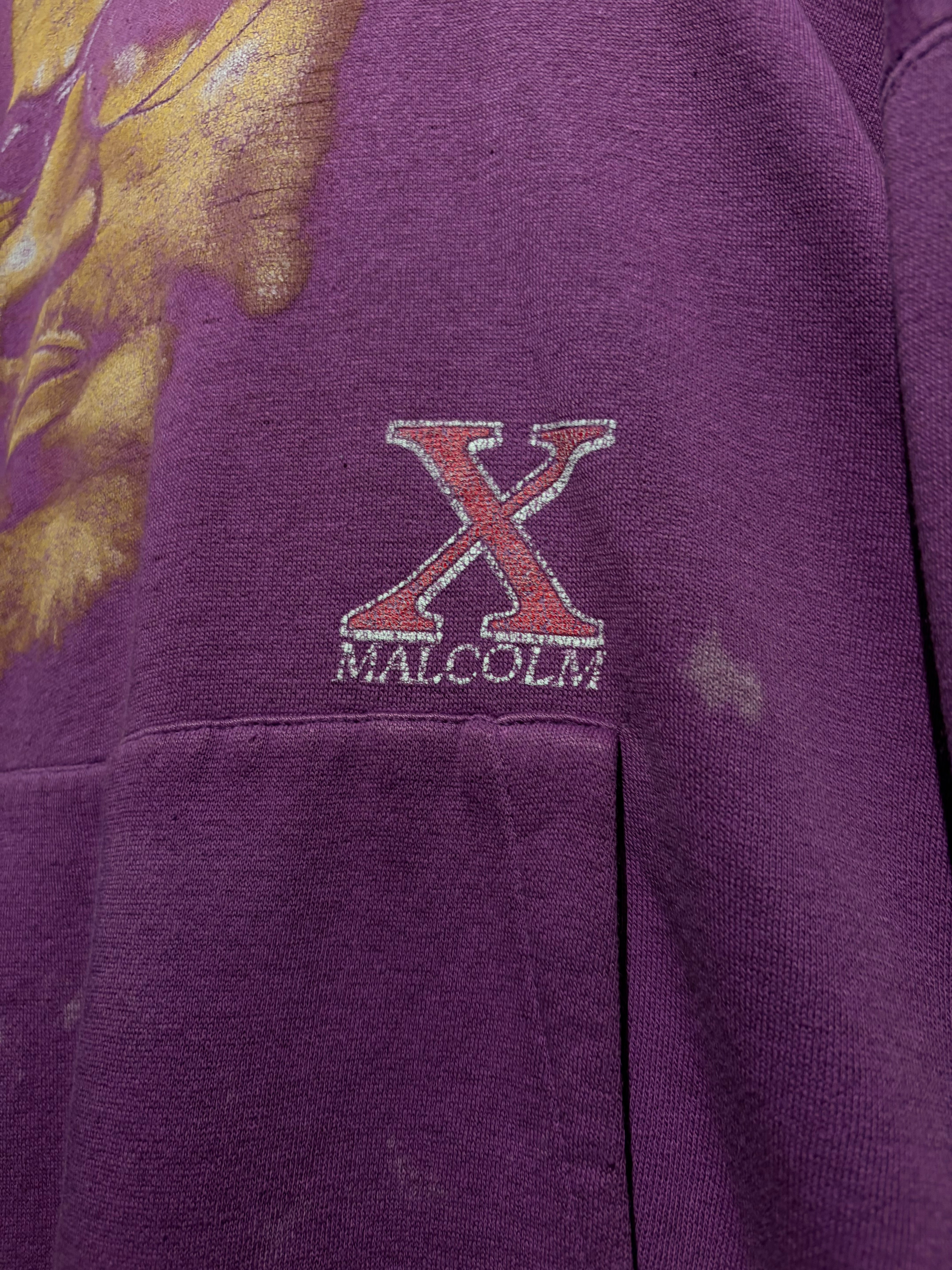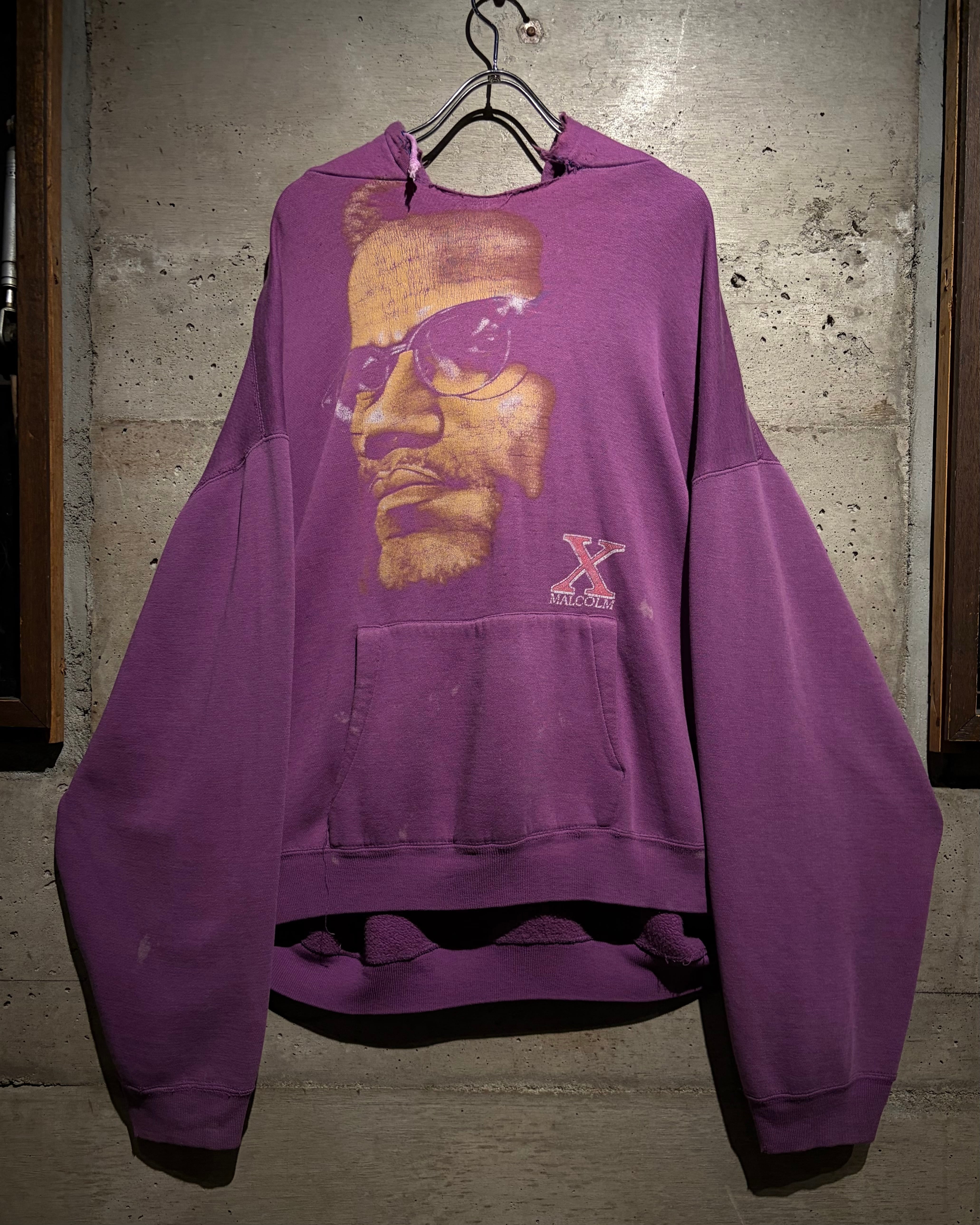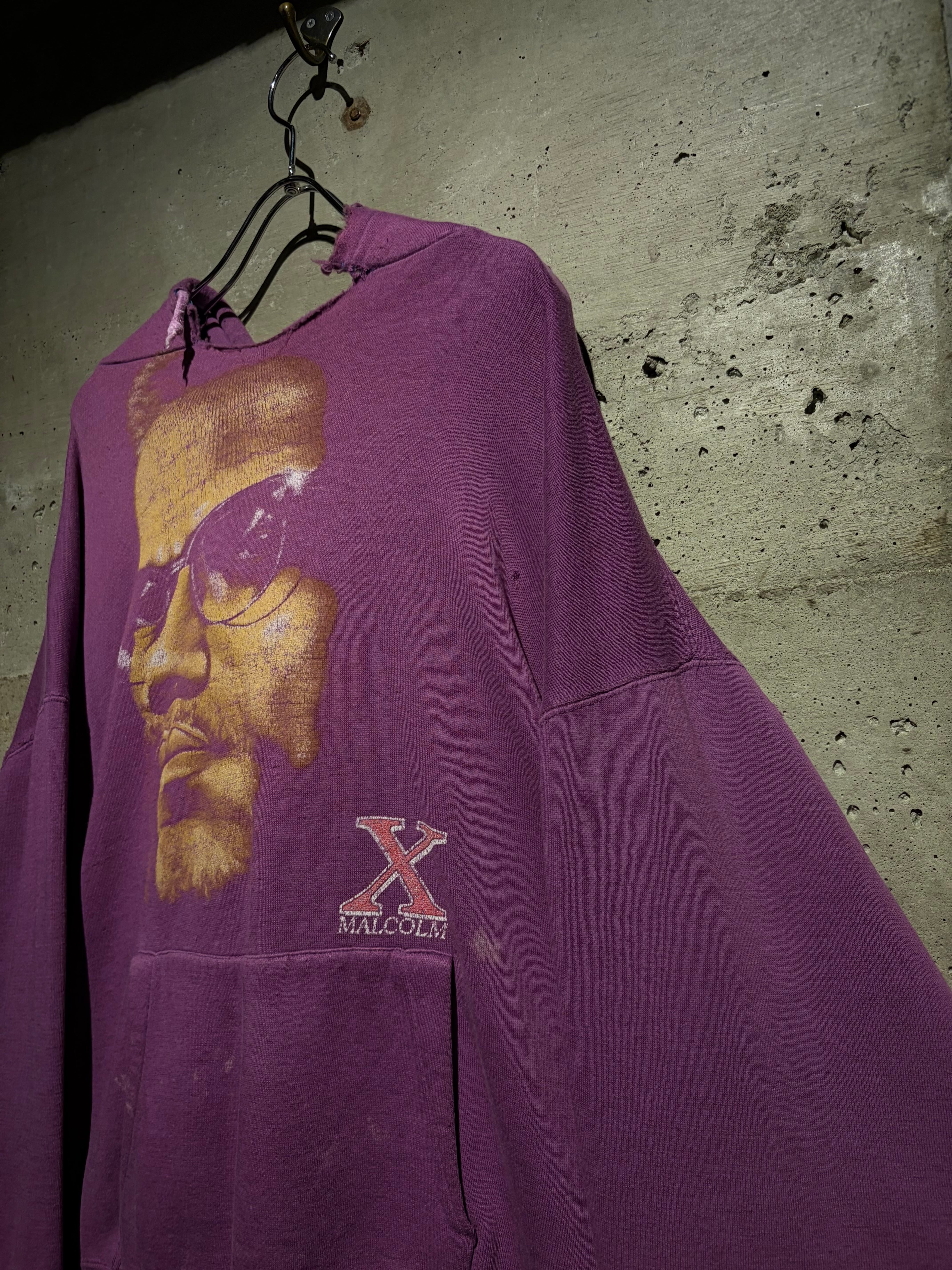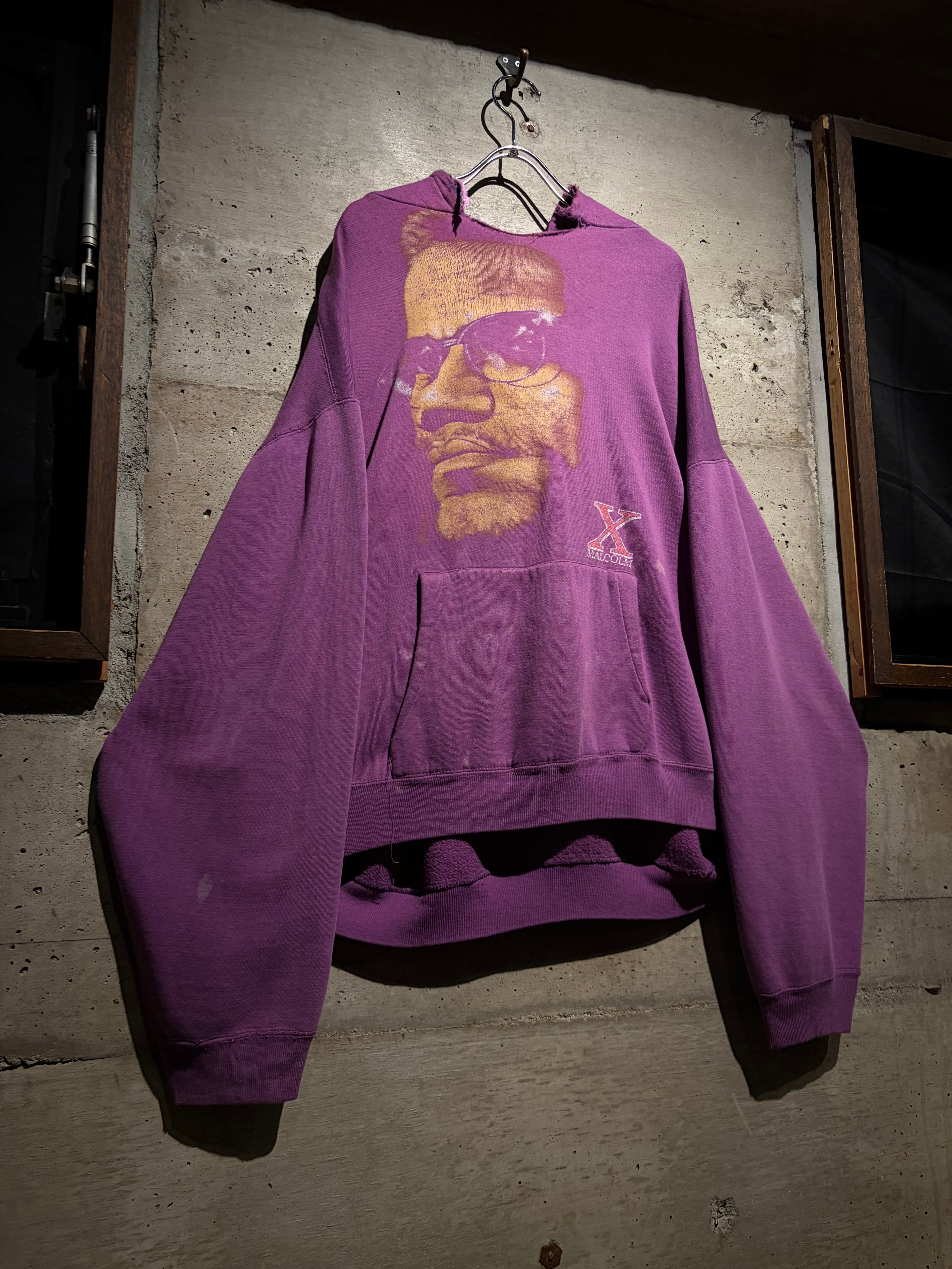ブラックカルチャー、そしてアメリカ史においても象徴的存在として知られる“マルコムX”のポートレートを大胆に落とし込んだ、90'sのプルオーバーフーディ。