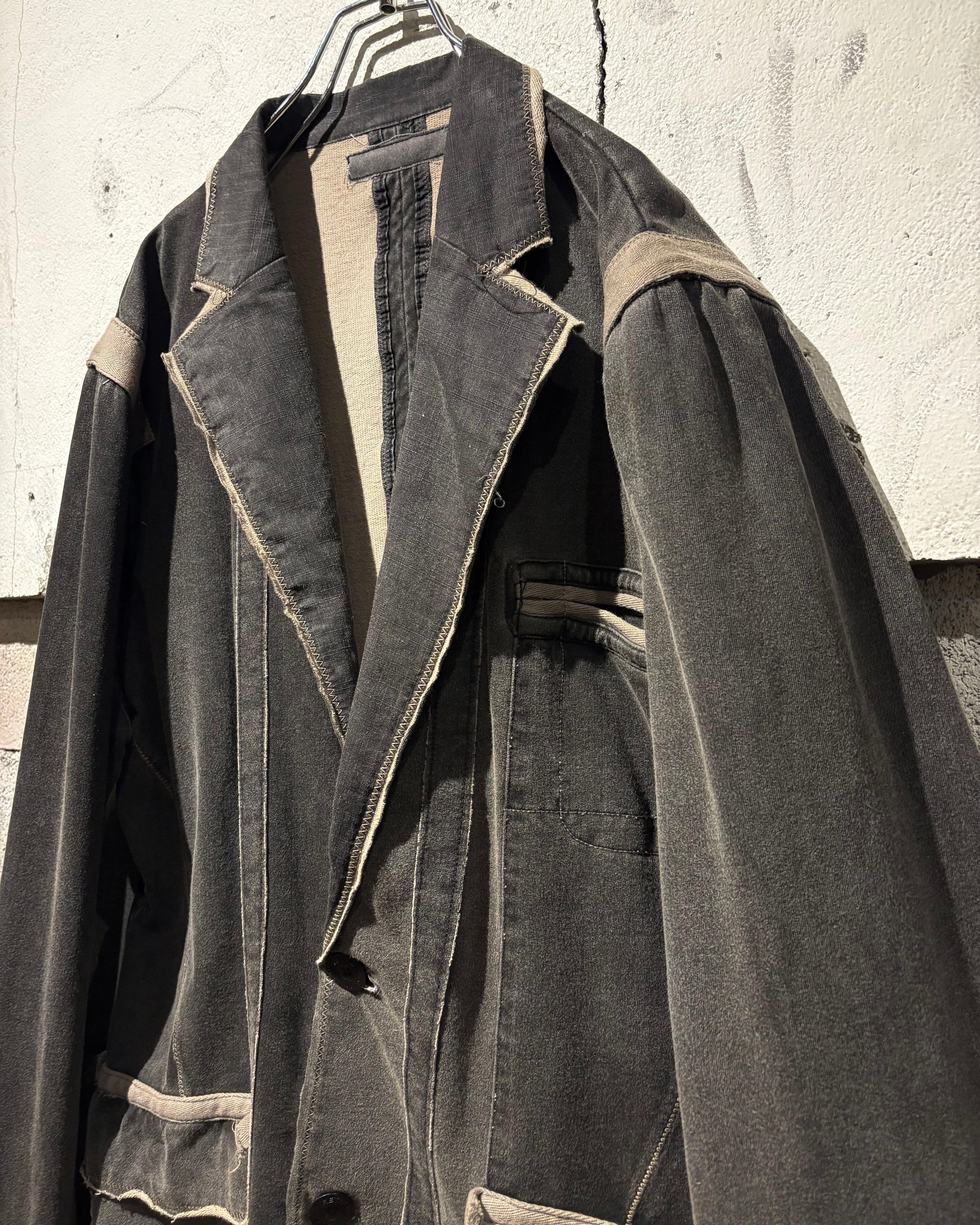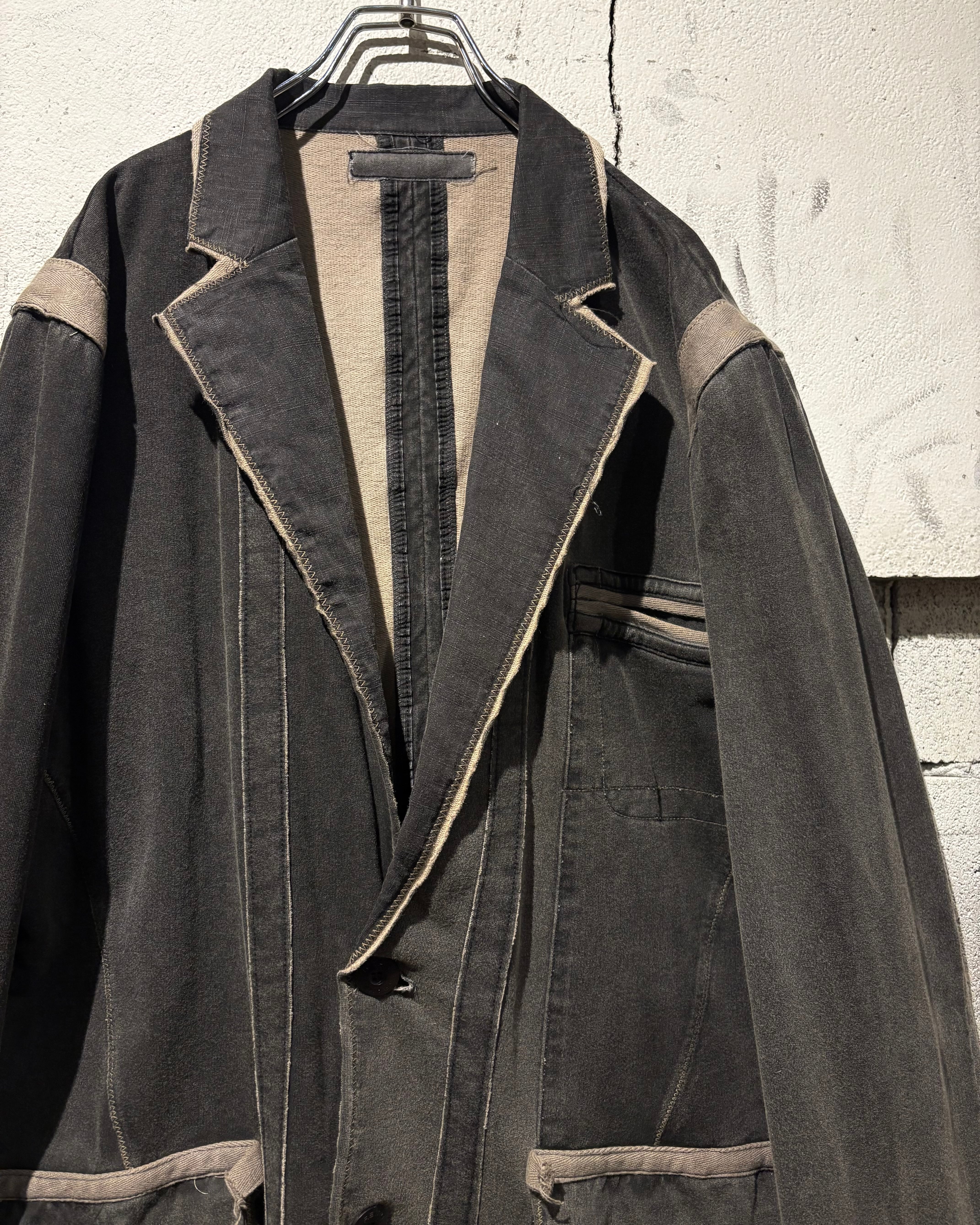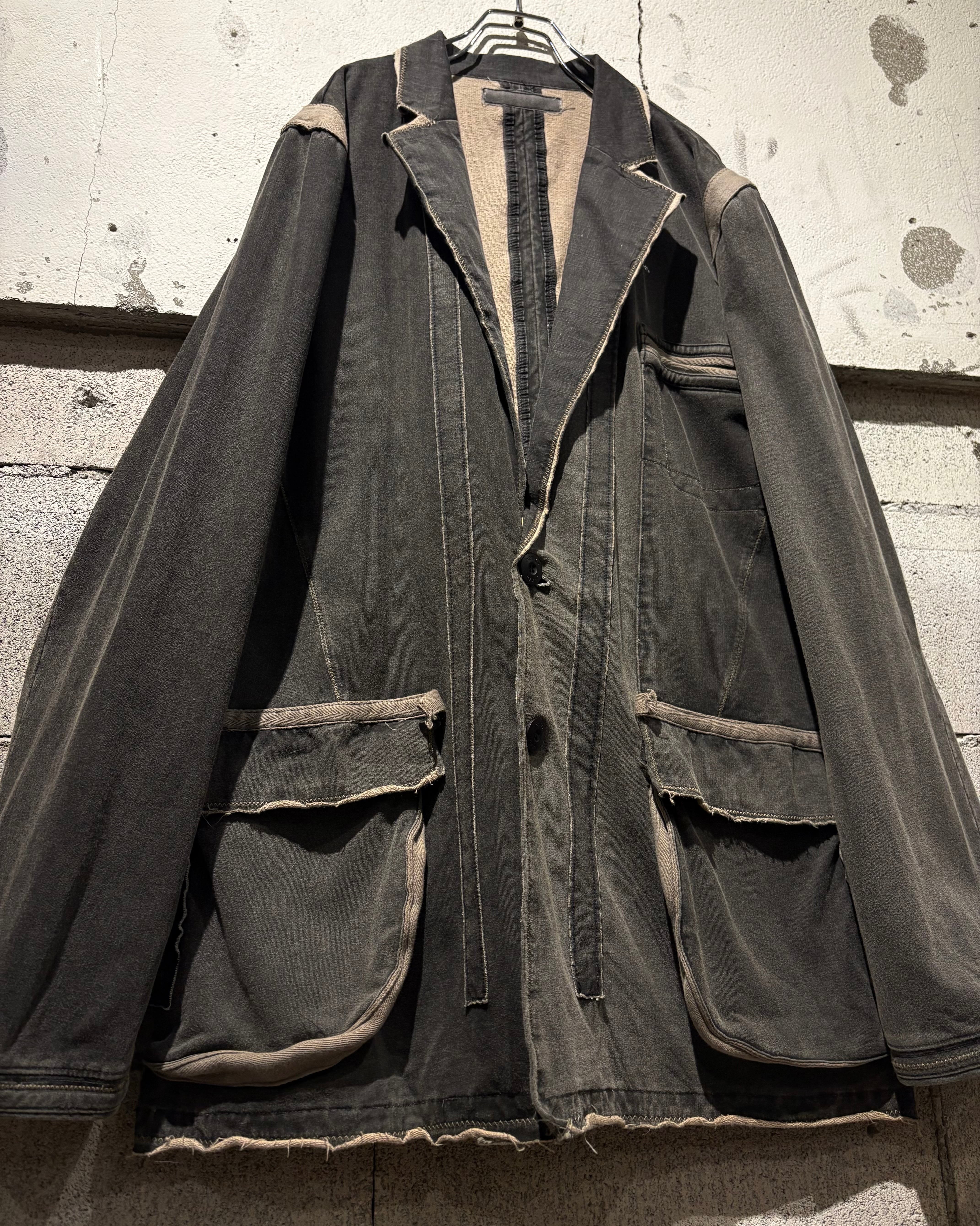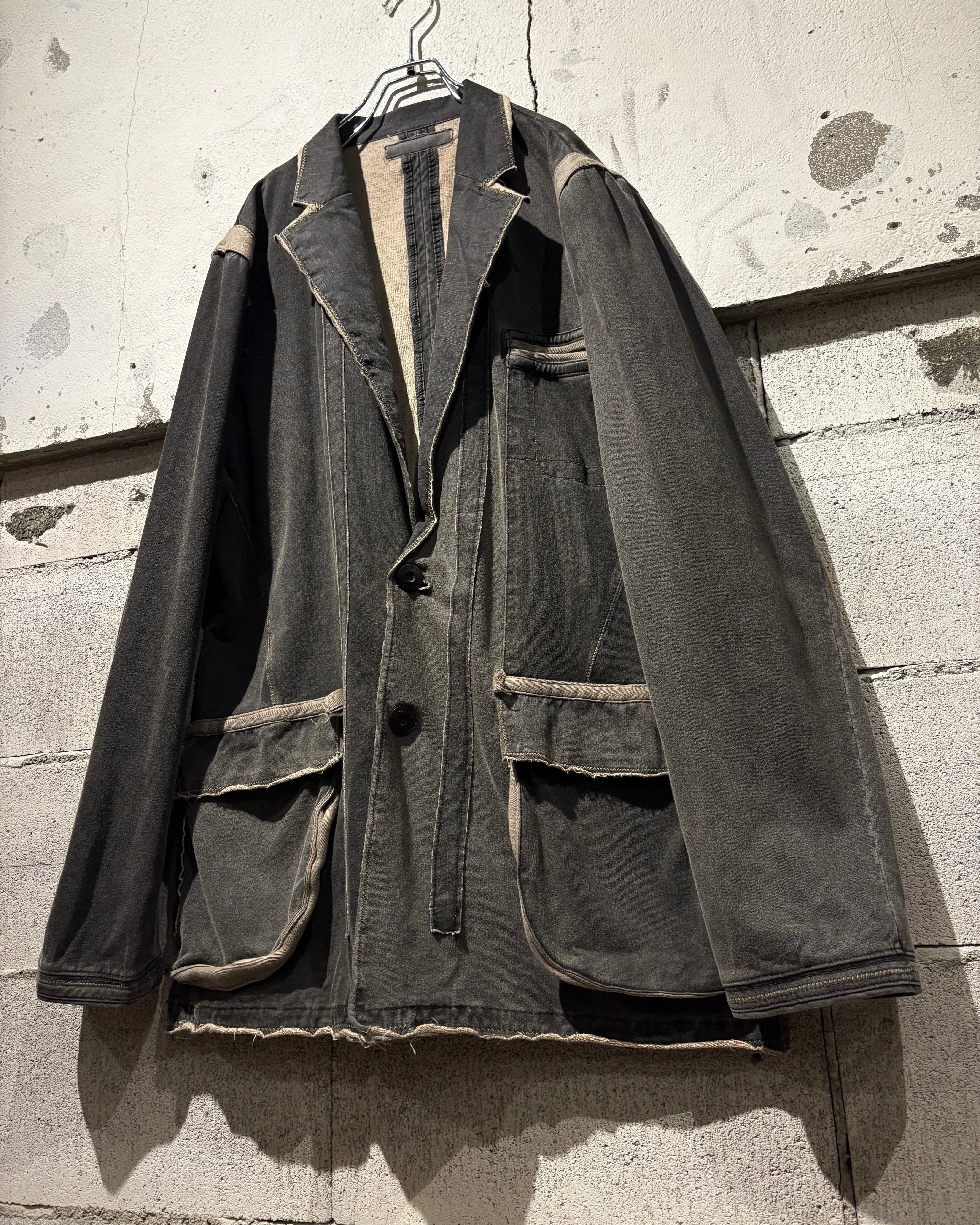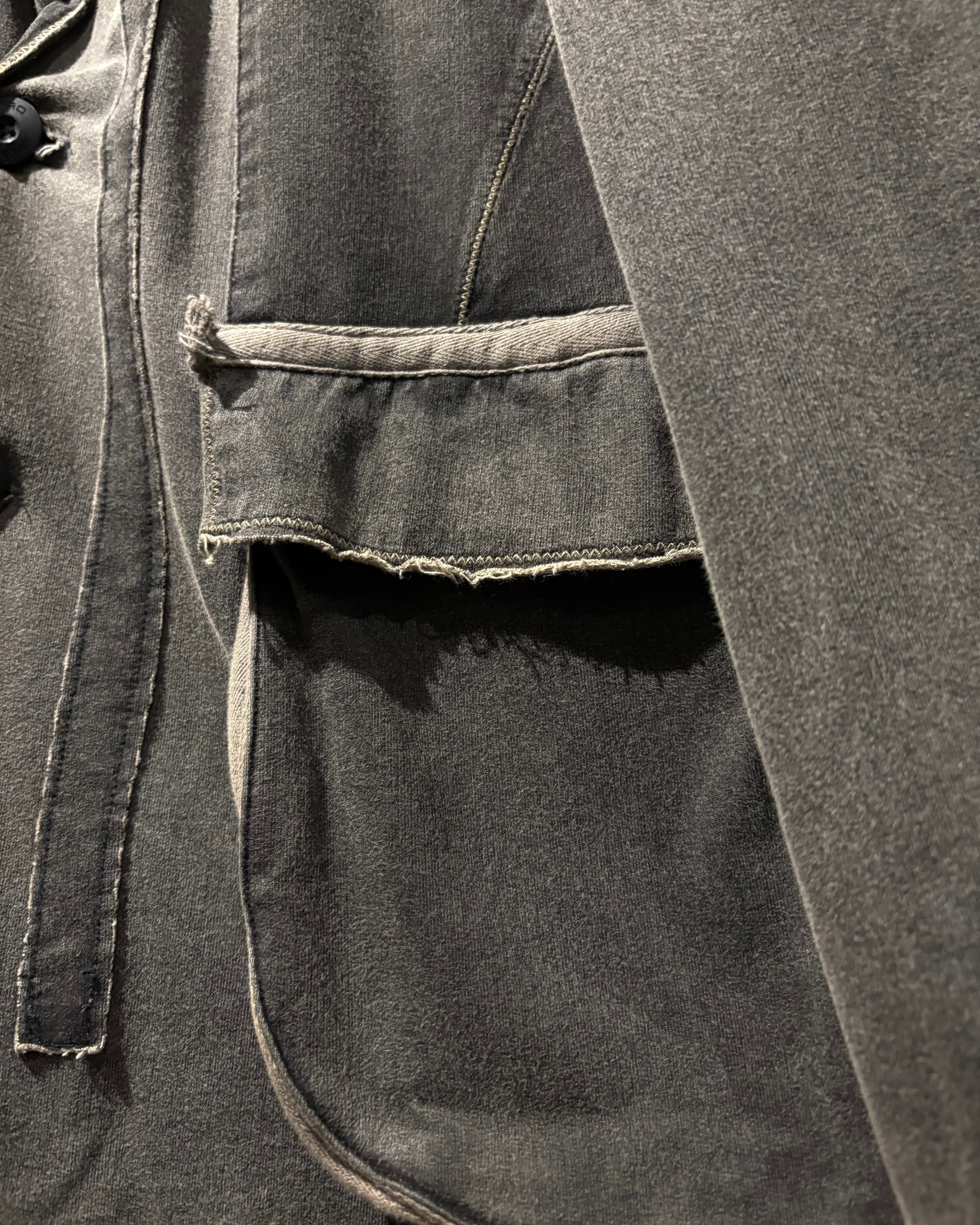 クラシックなテーラードをベースにしながらも、独自の加工や切り替えによってモードな表情へと昇華されたデザイン性の高いテーラードジャケット。