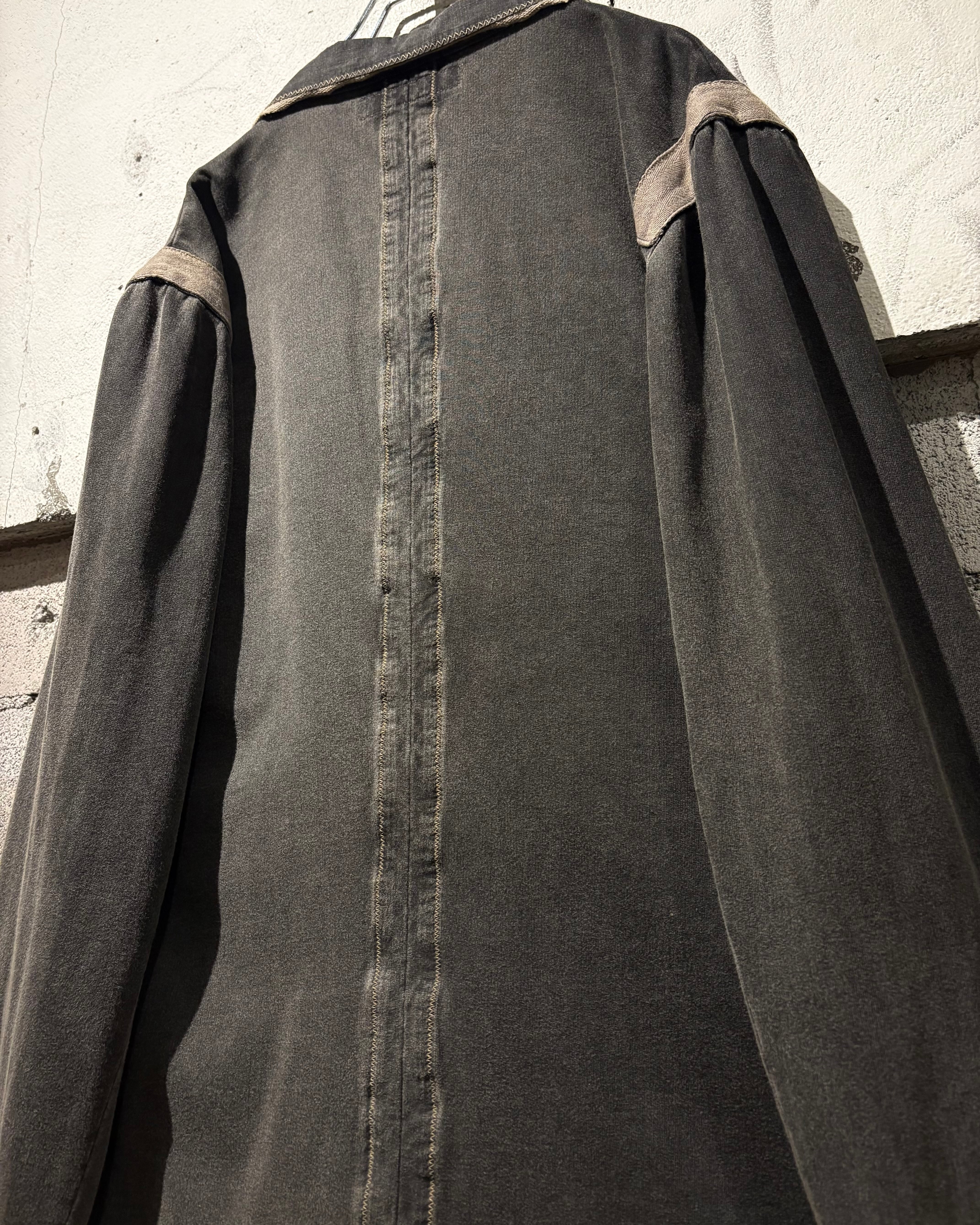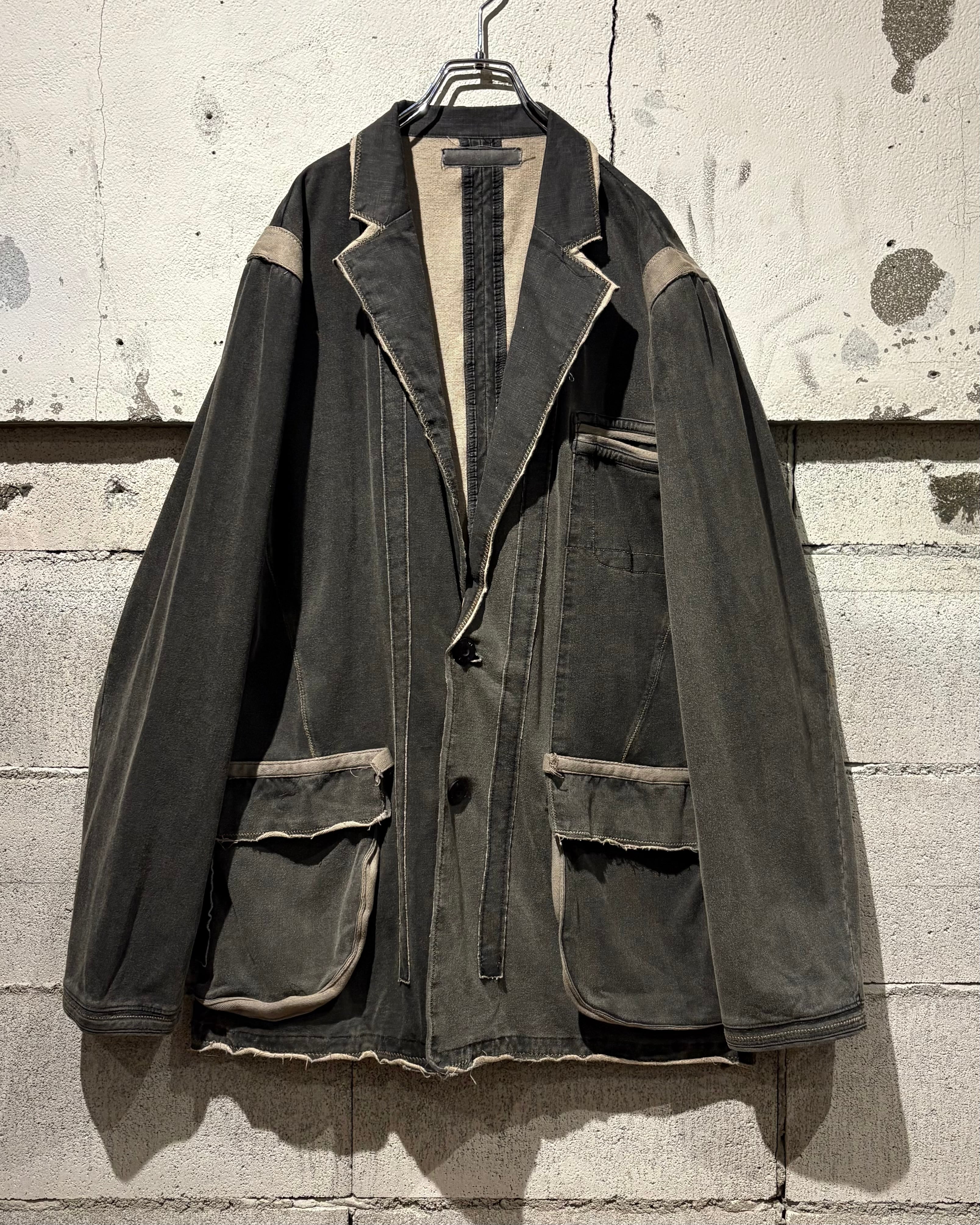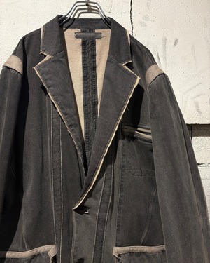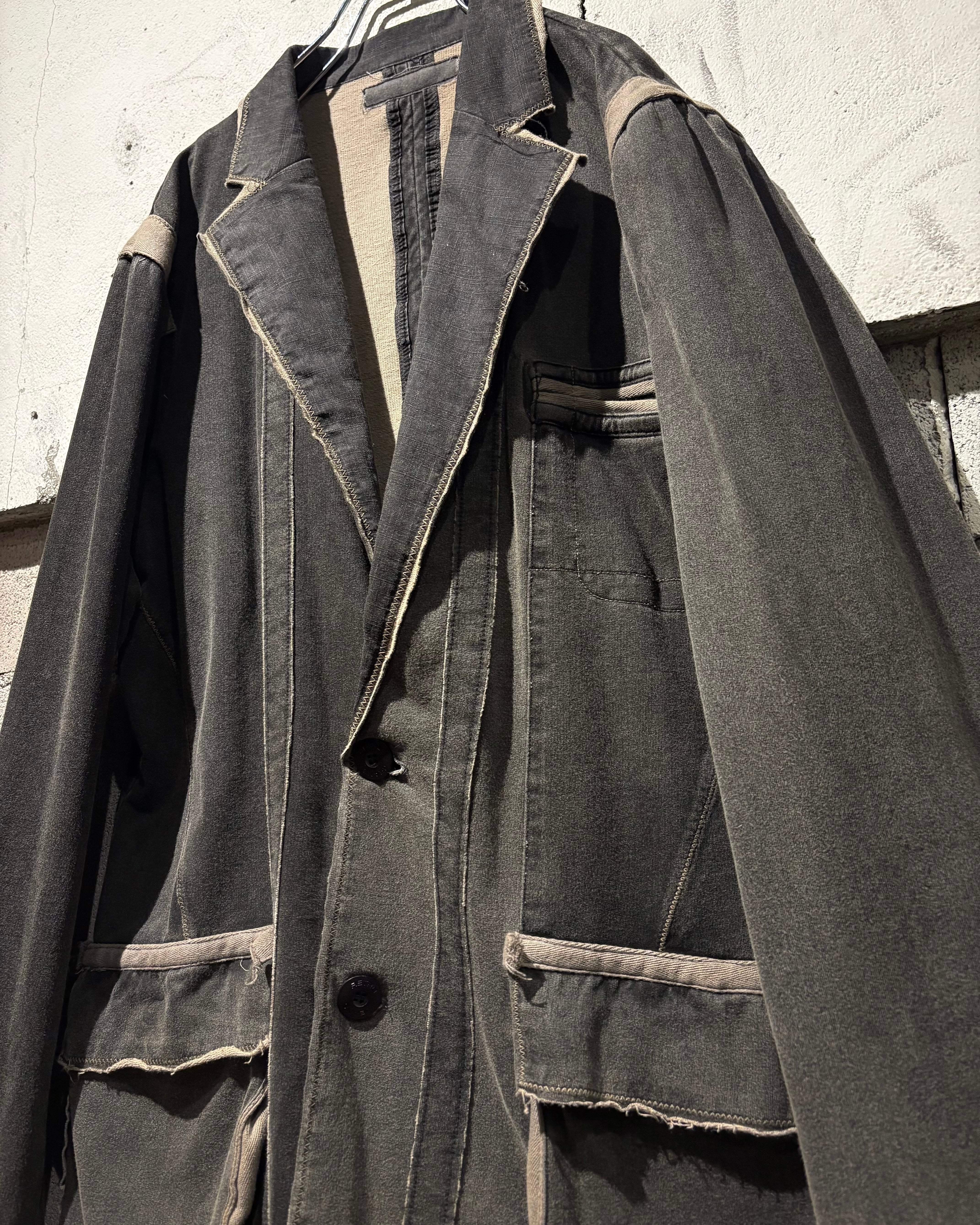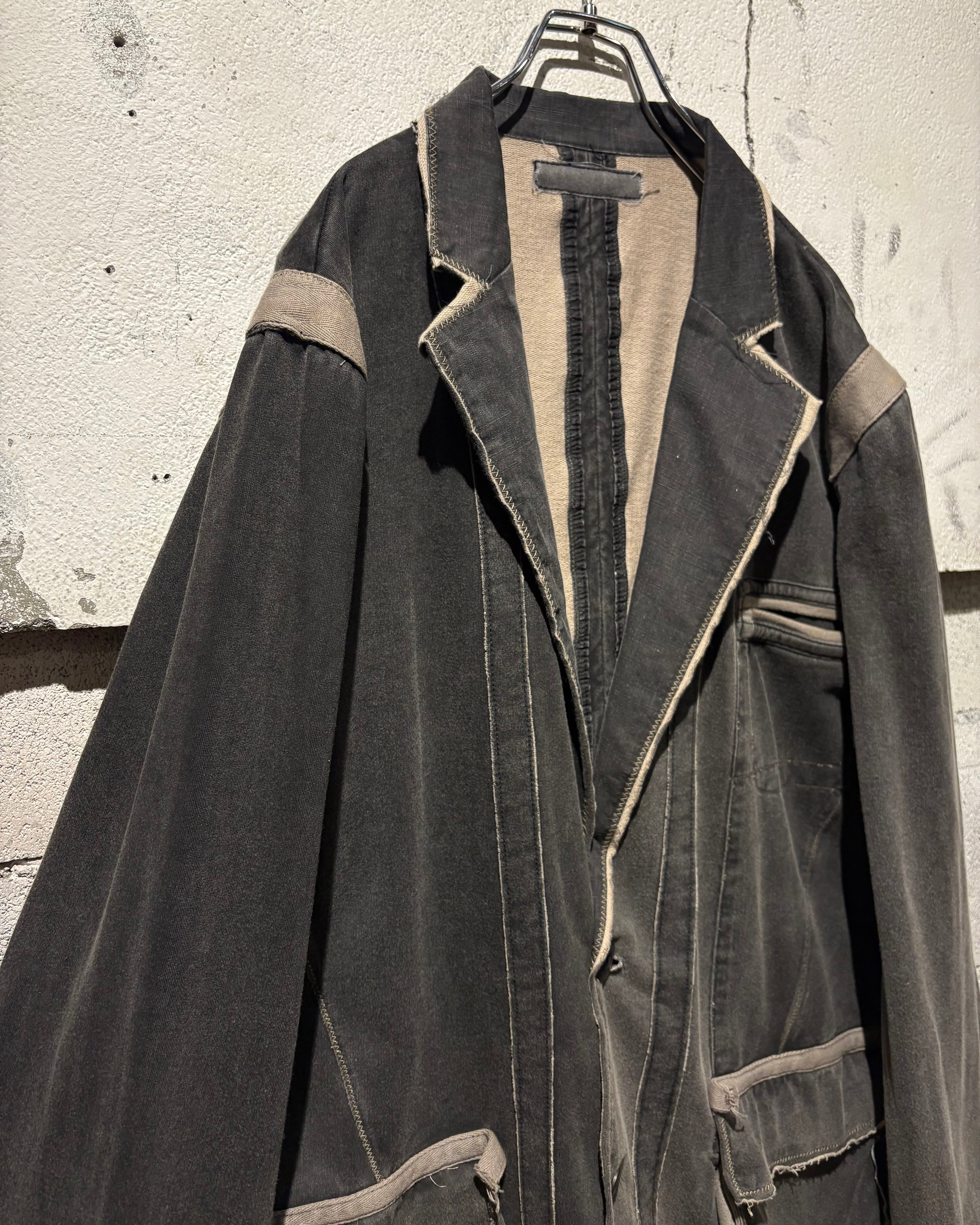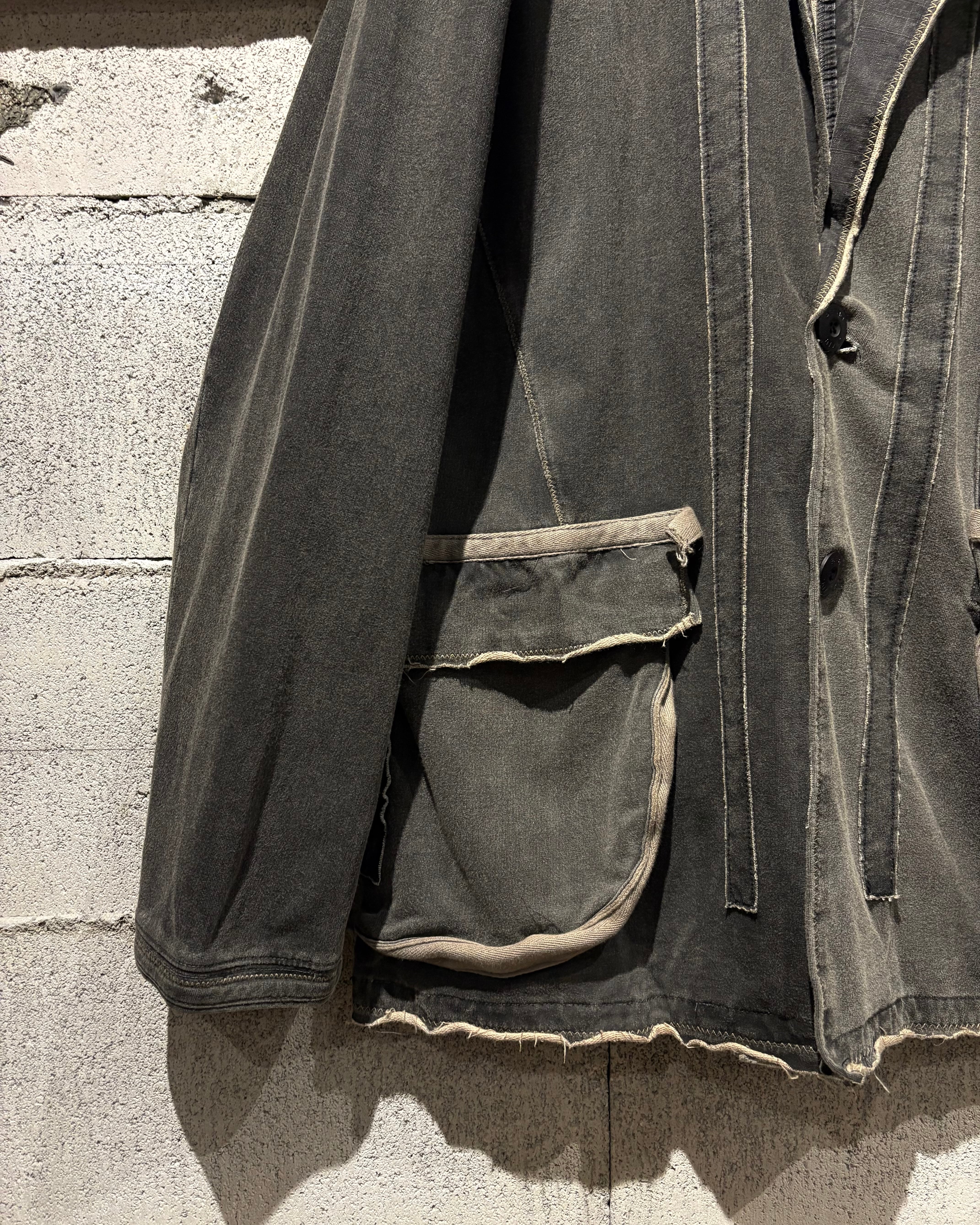 クラシックなテーラードをベースにしながらも、独自の加工や切り替えによってモードな表情へと昇華されたデザイン性の高いテーラードジャケット。