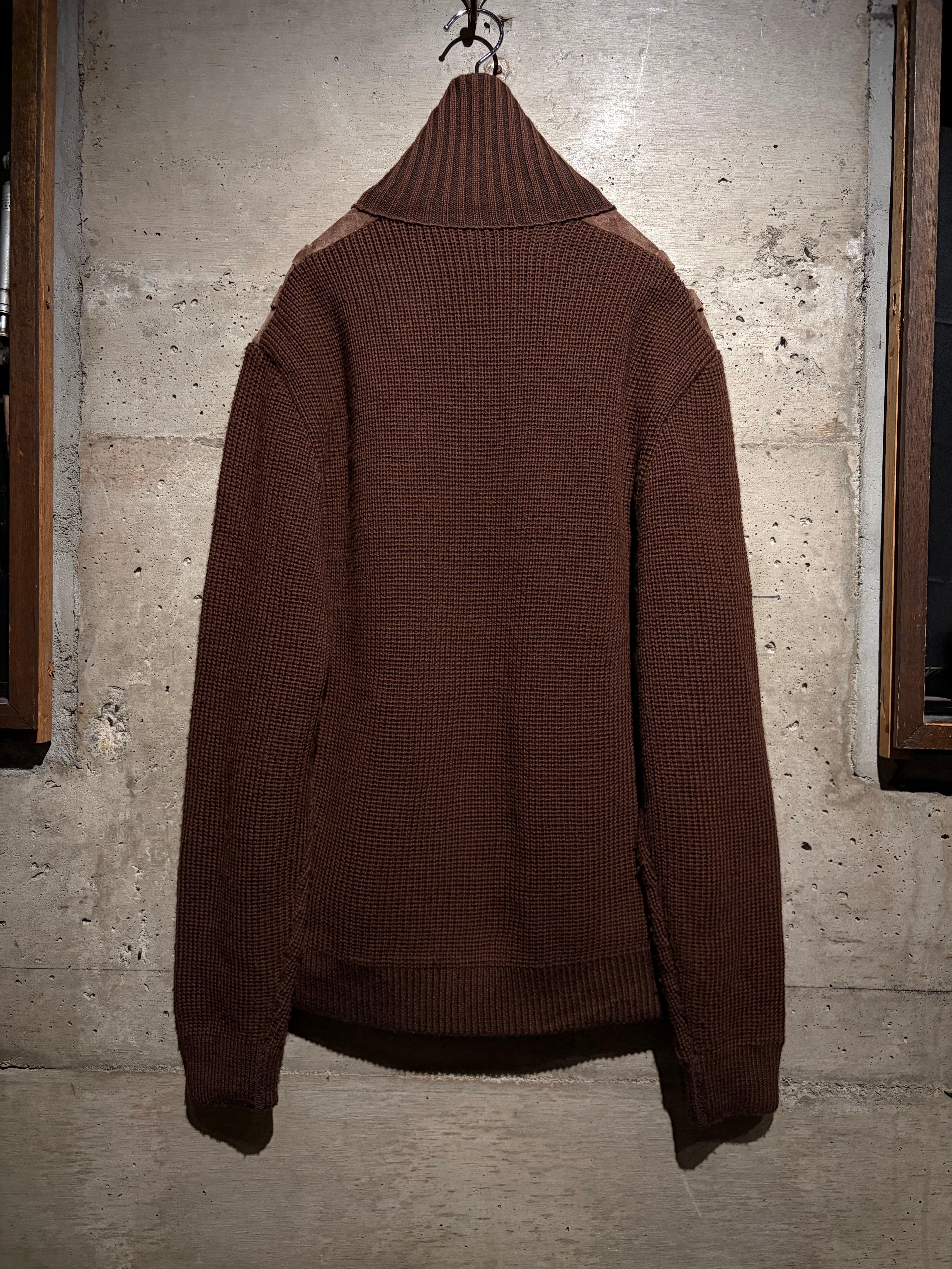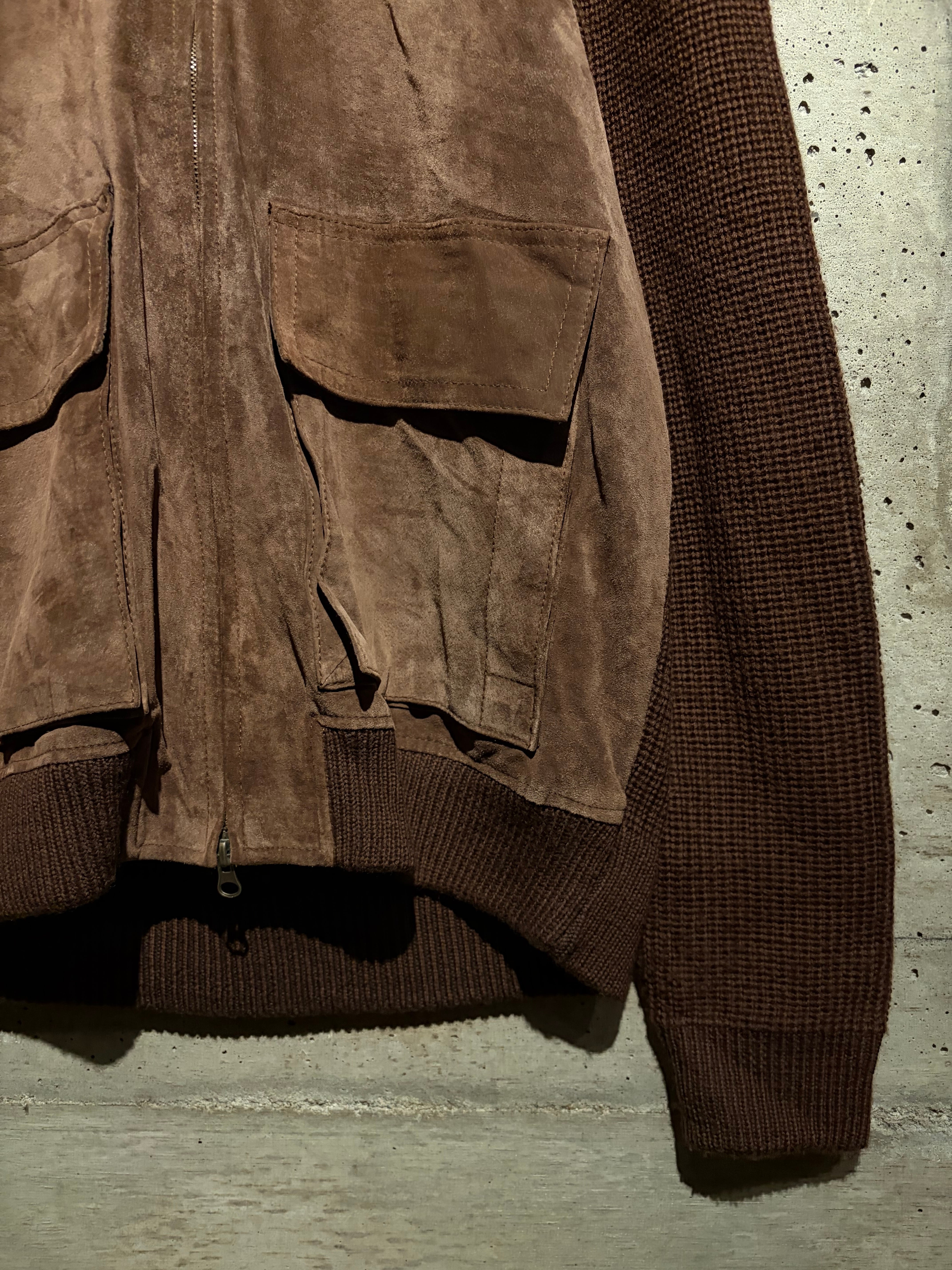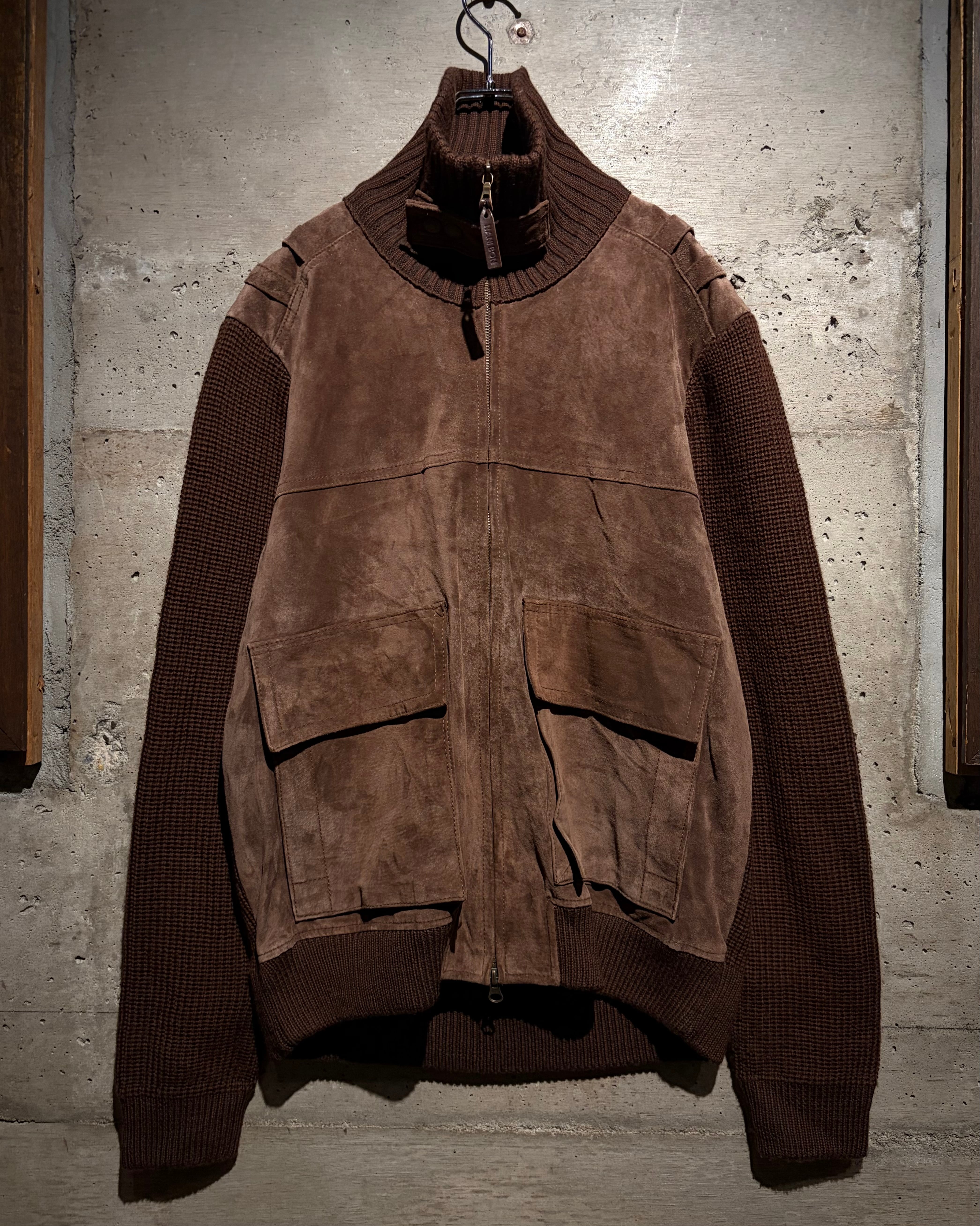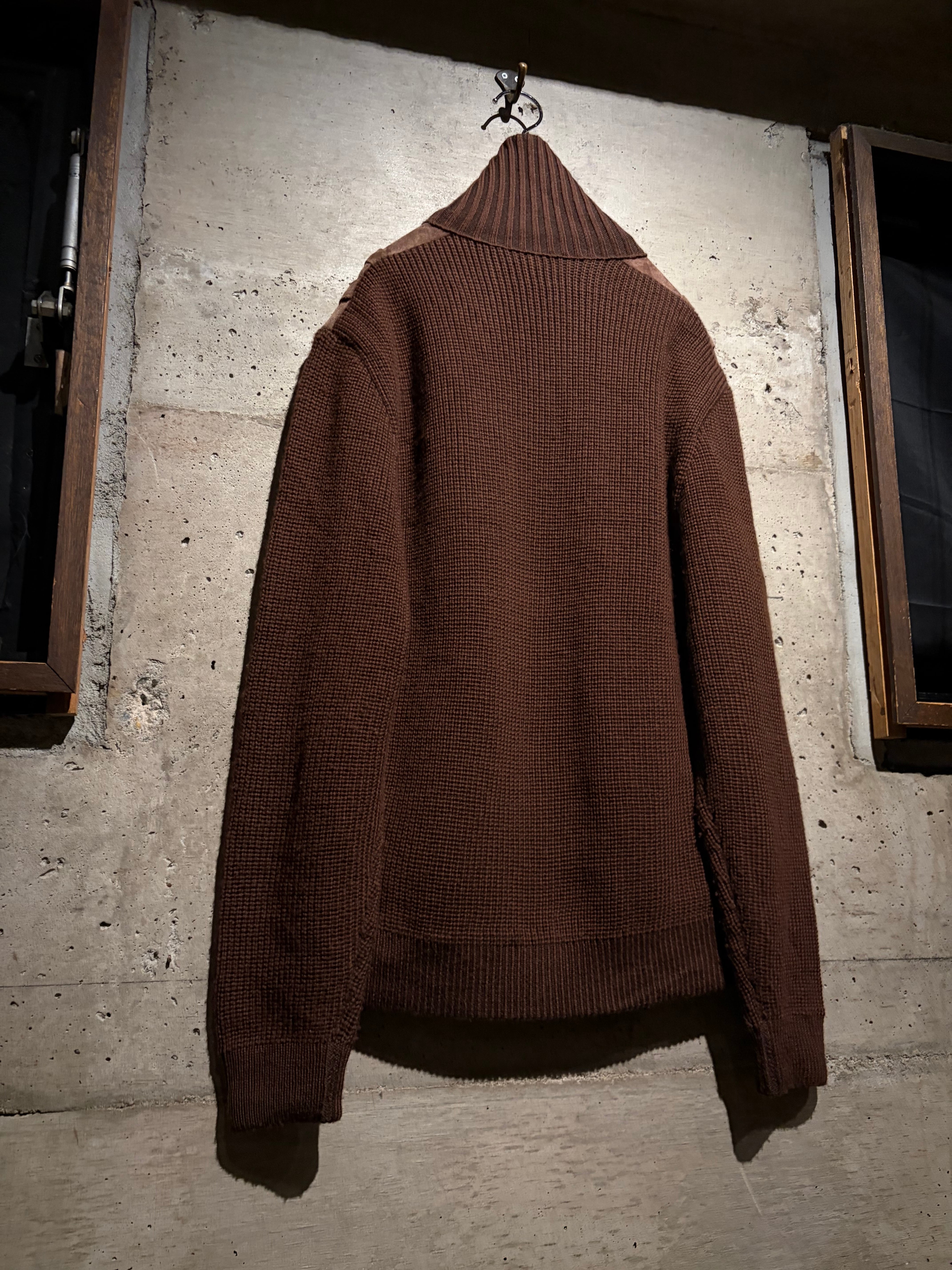 肉感のあるニットをボディのベースに、フロントをしっとりとした起毛感を持つスエードレザーで大胆に切り替えた1着。
