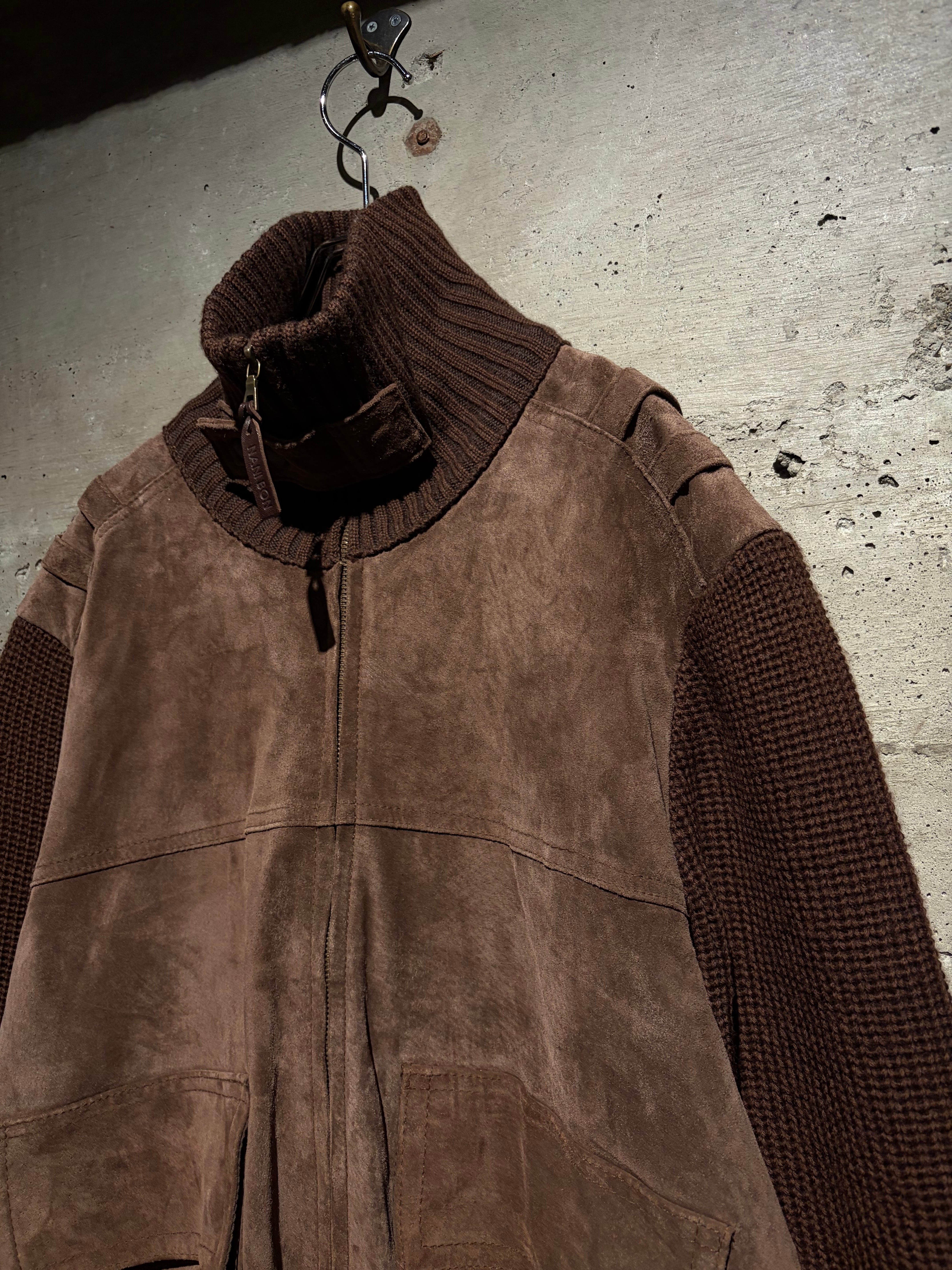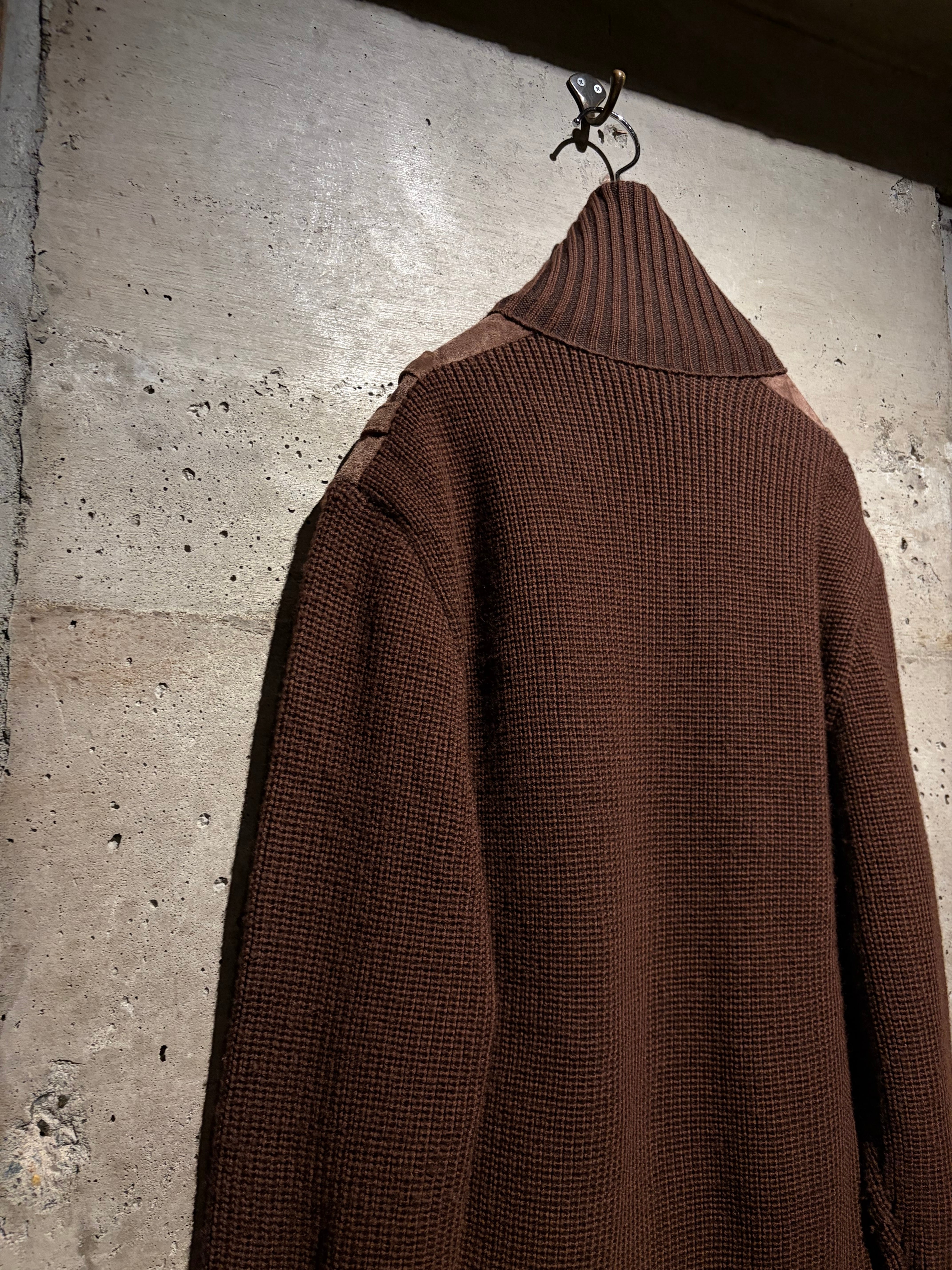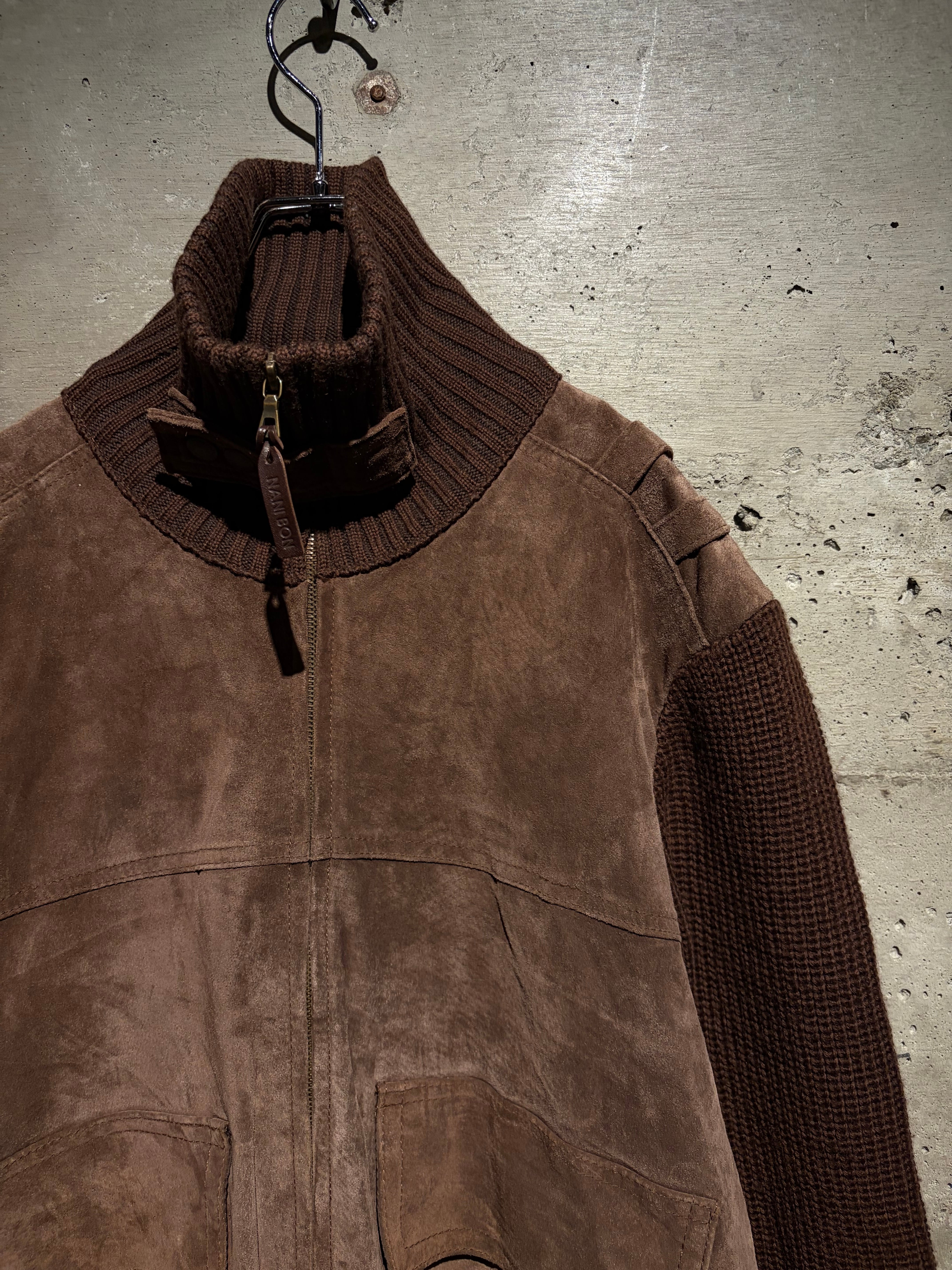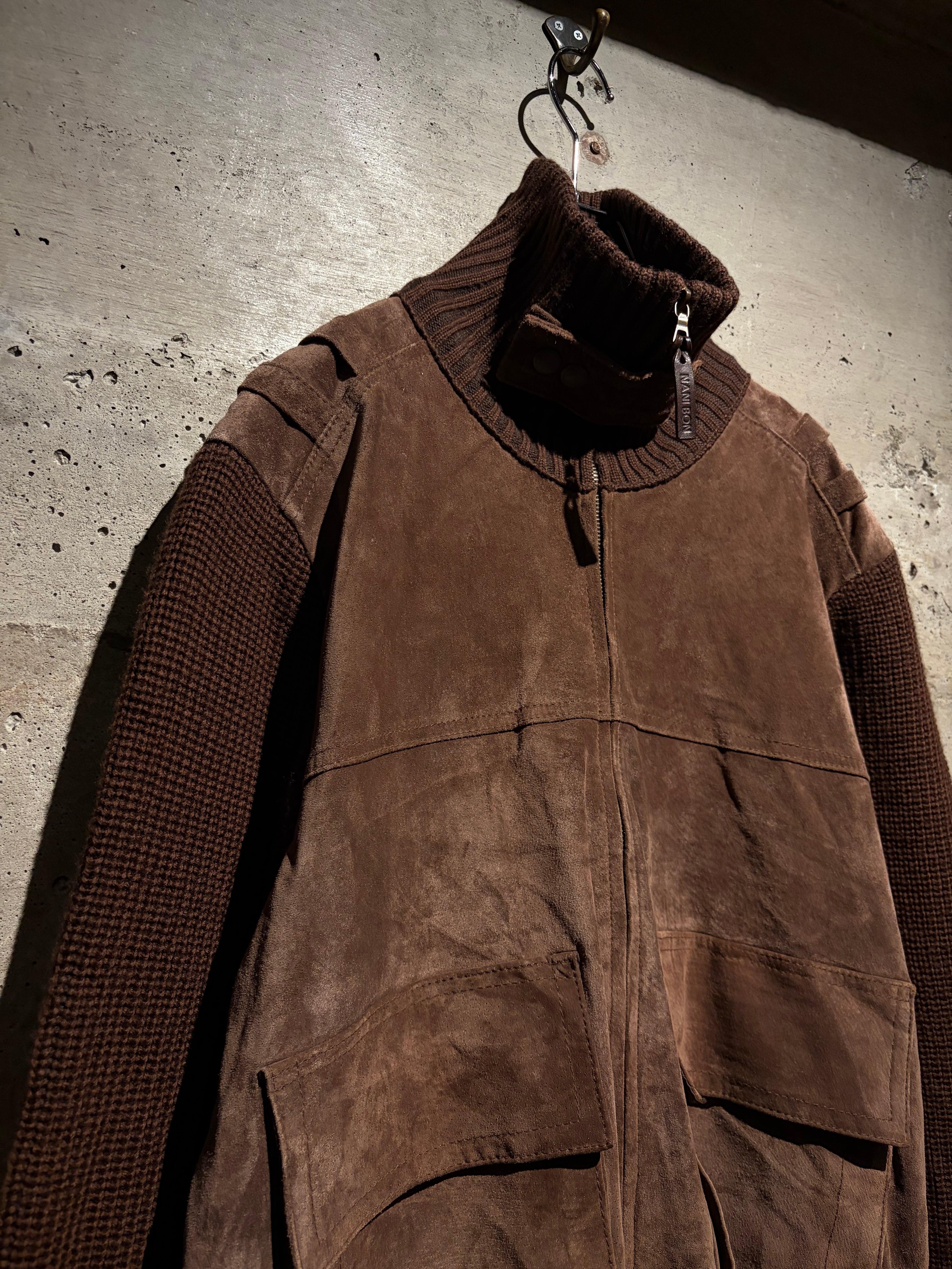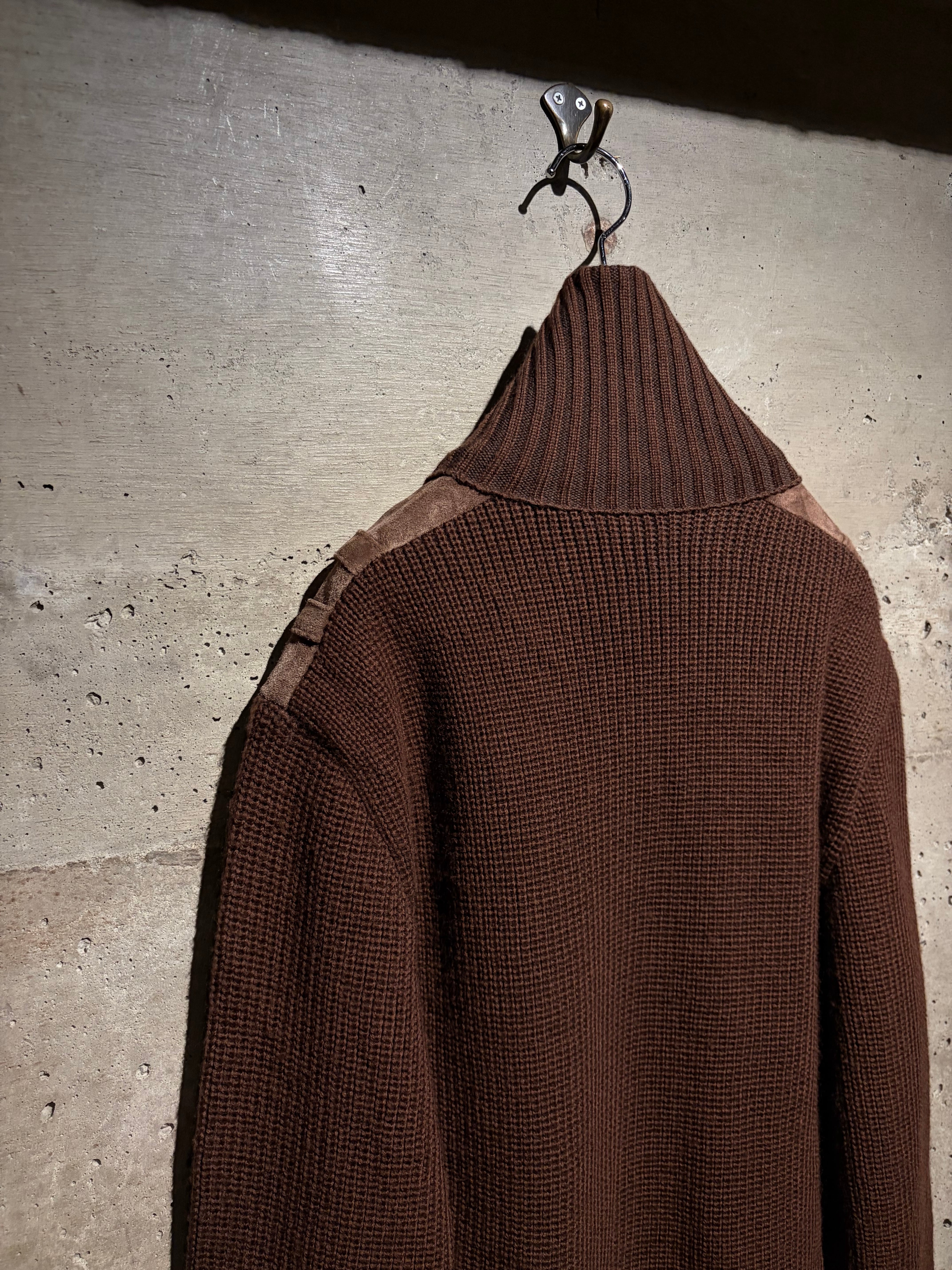 肉感のあるニットをボディのベースに、フロントをしっとりとした起毛感を持つスエードレザーで大胆に切り替えた1着。