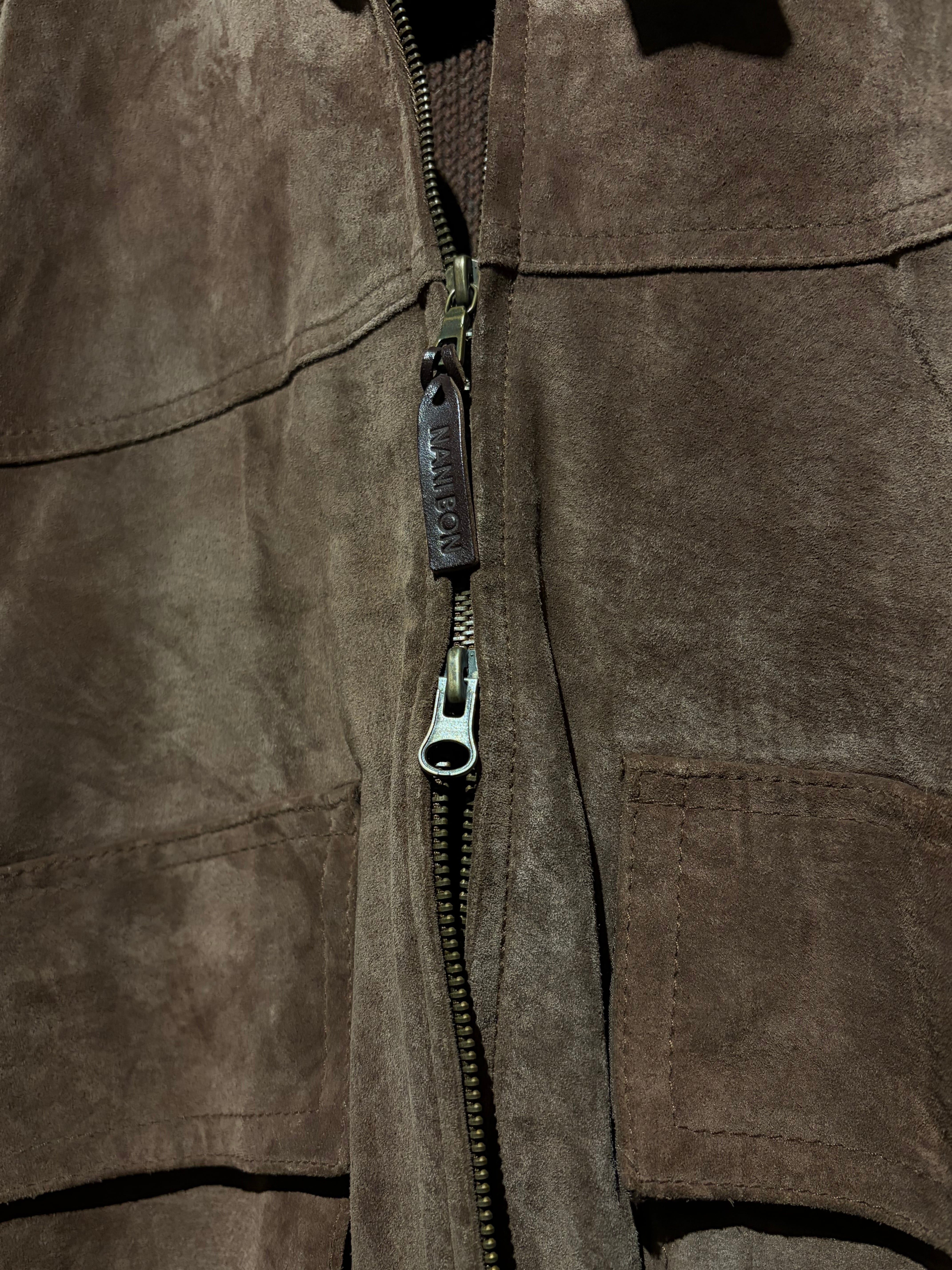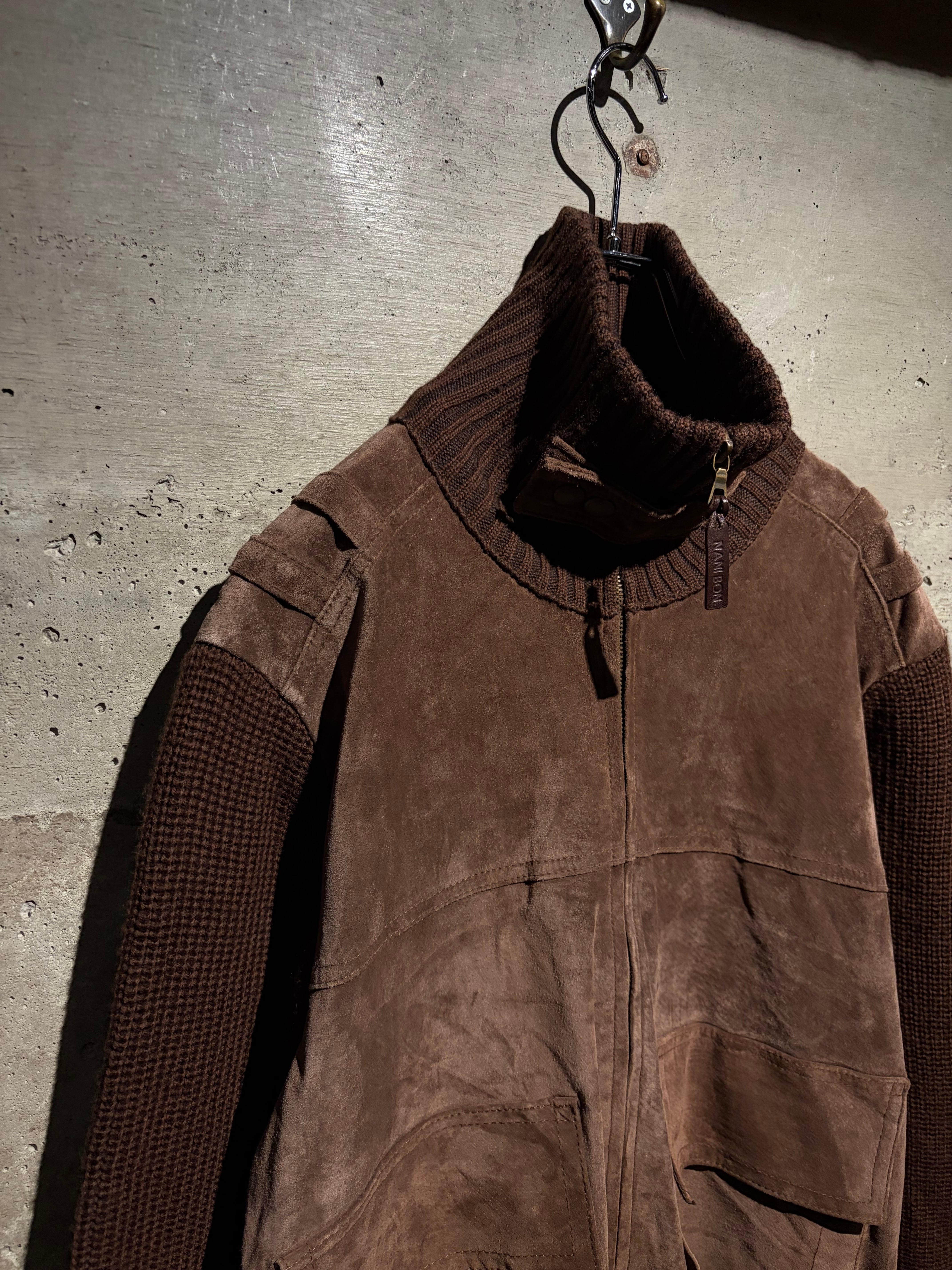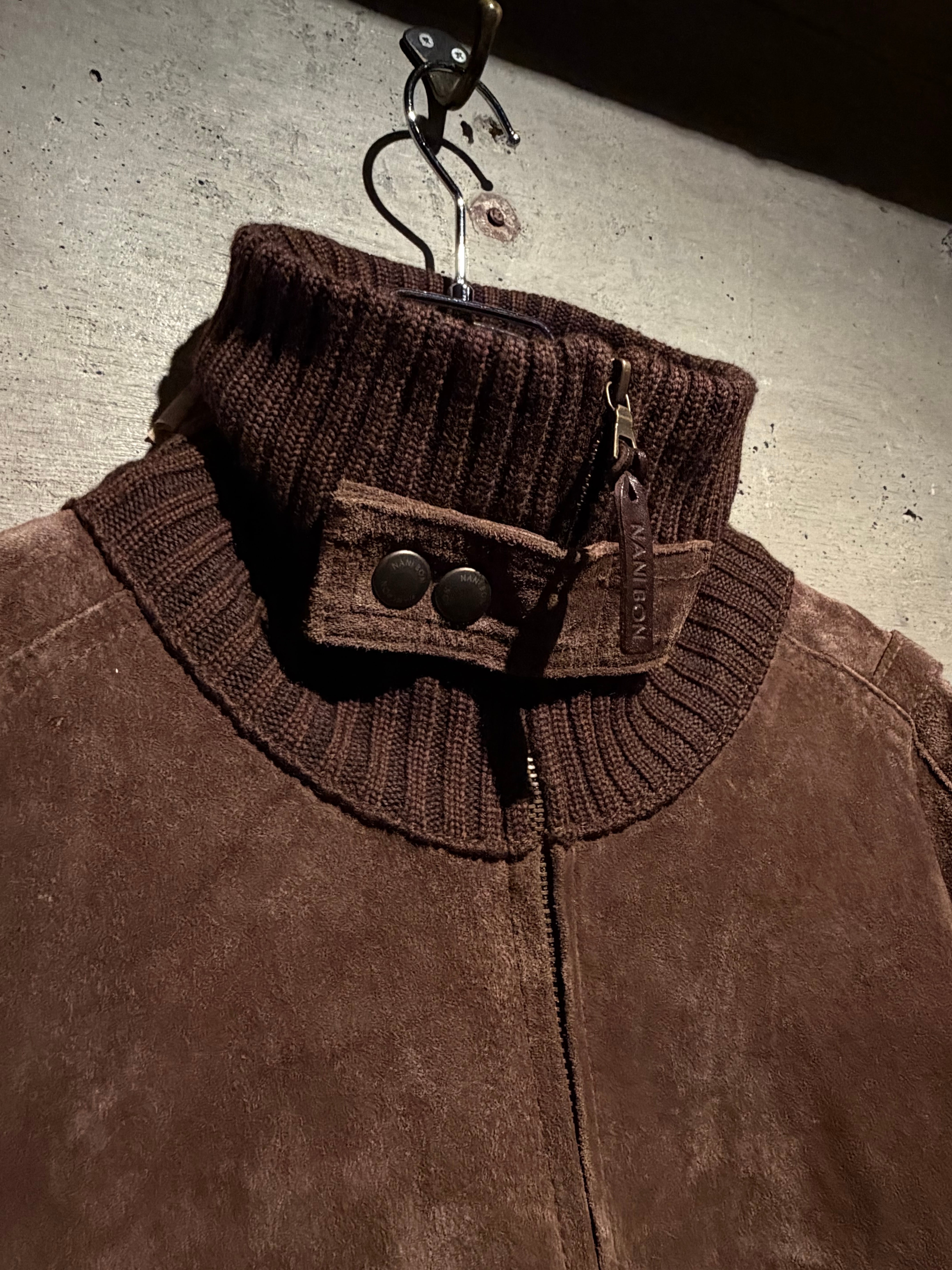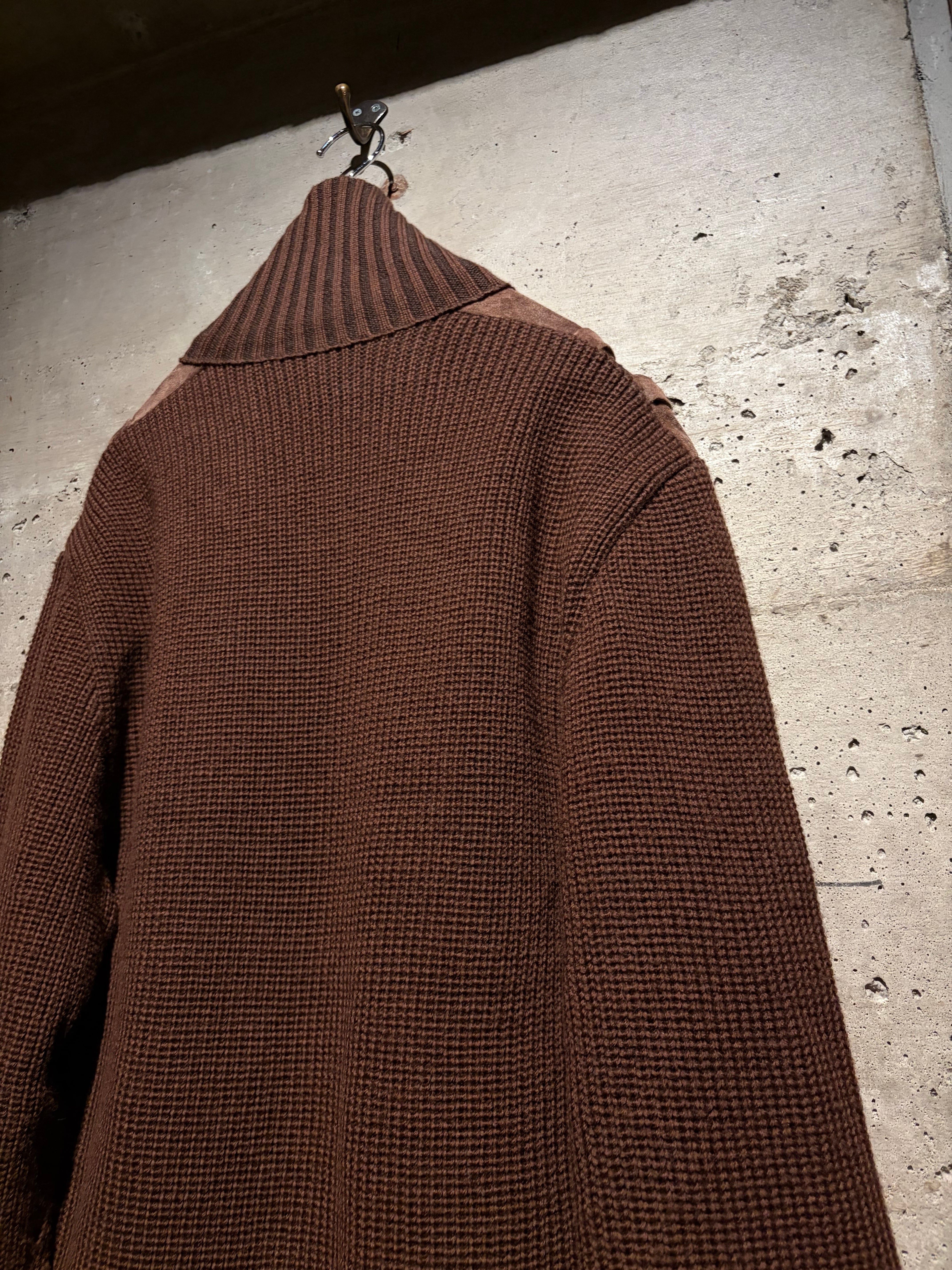 肉感のあるニットをボディのベースに、フロントをしっとりとした起毛感を持つスエードレザーで大胆に切り替えた1着。