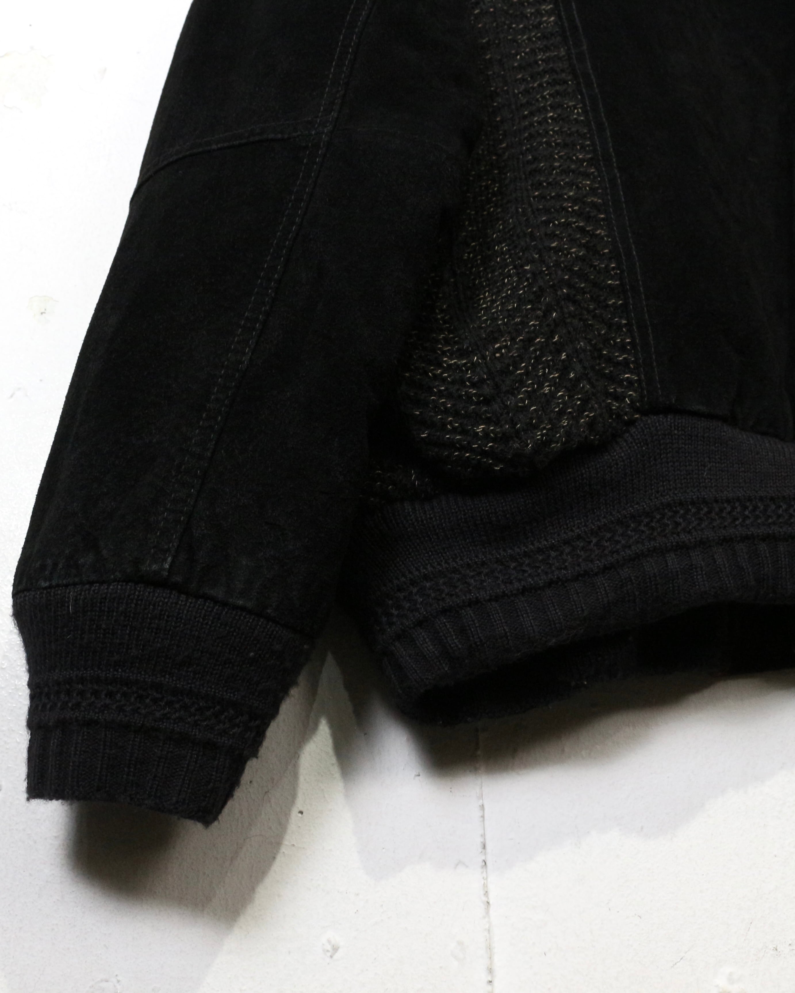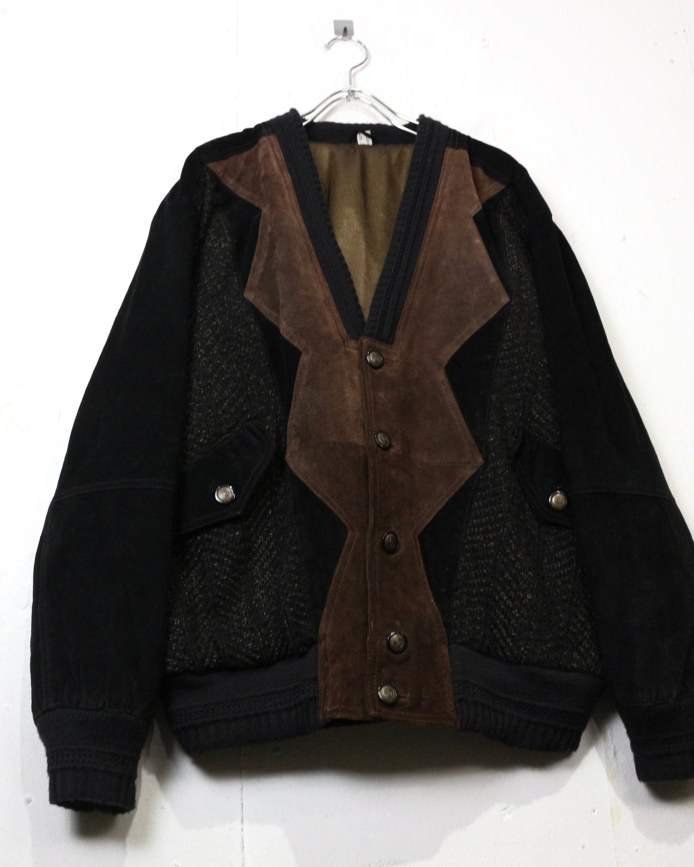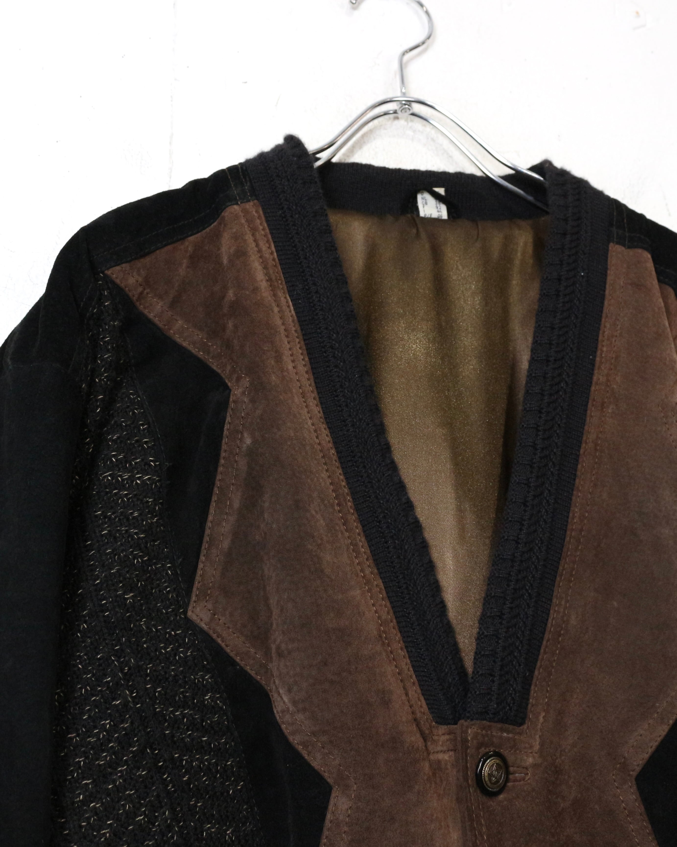 メランジニットをベースに、フロントへ大胆にブラウンのスエードをジグザグ状に切り替えたデザインが目を引く1着。