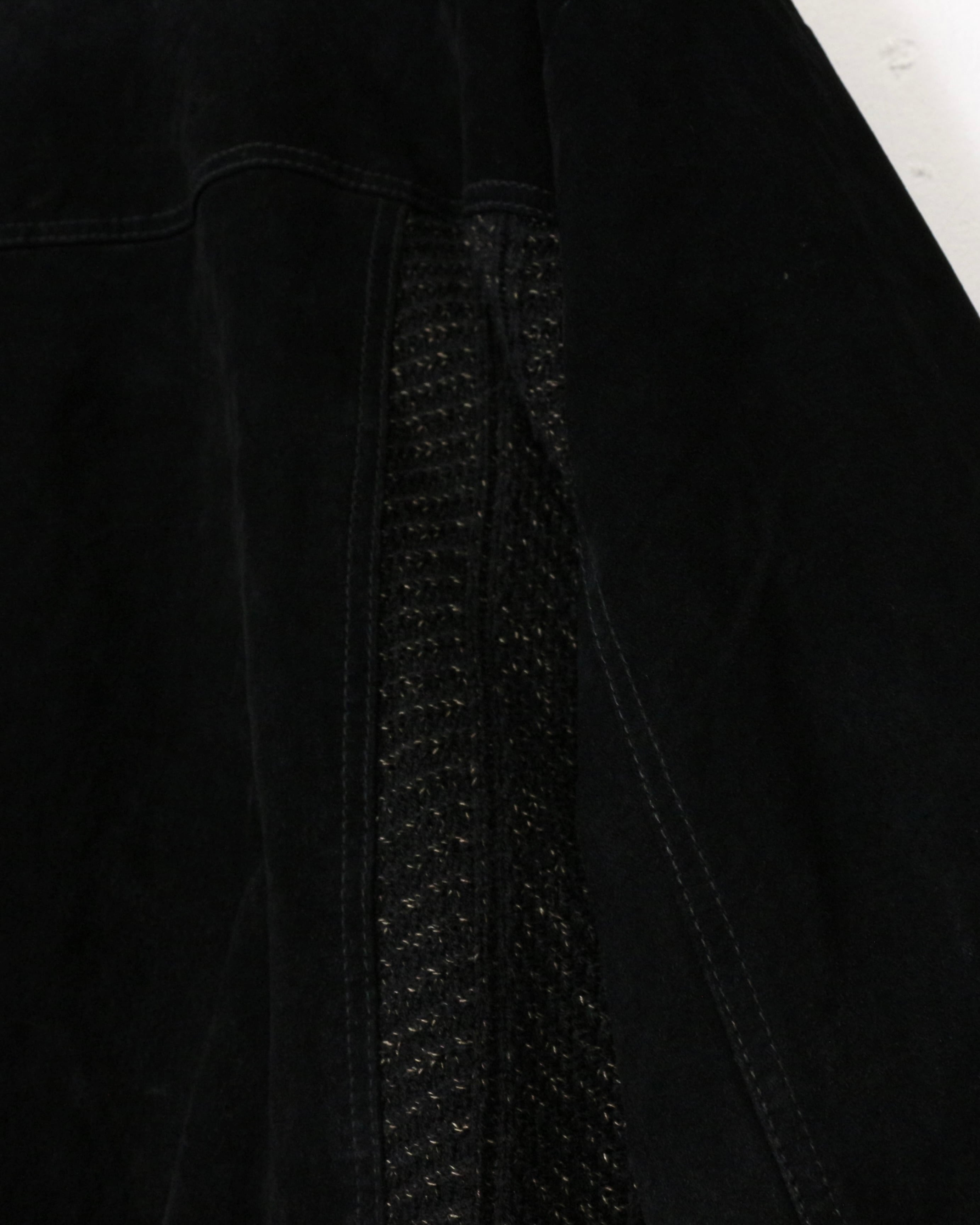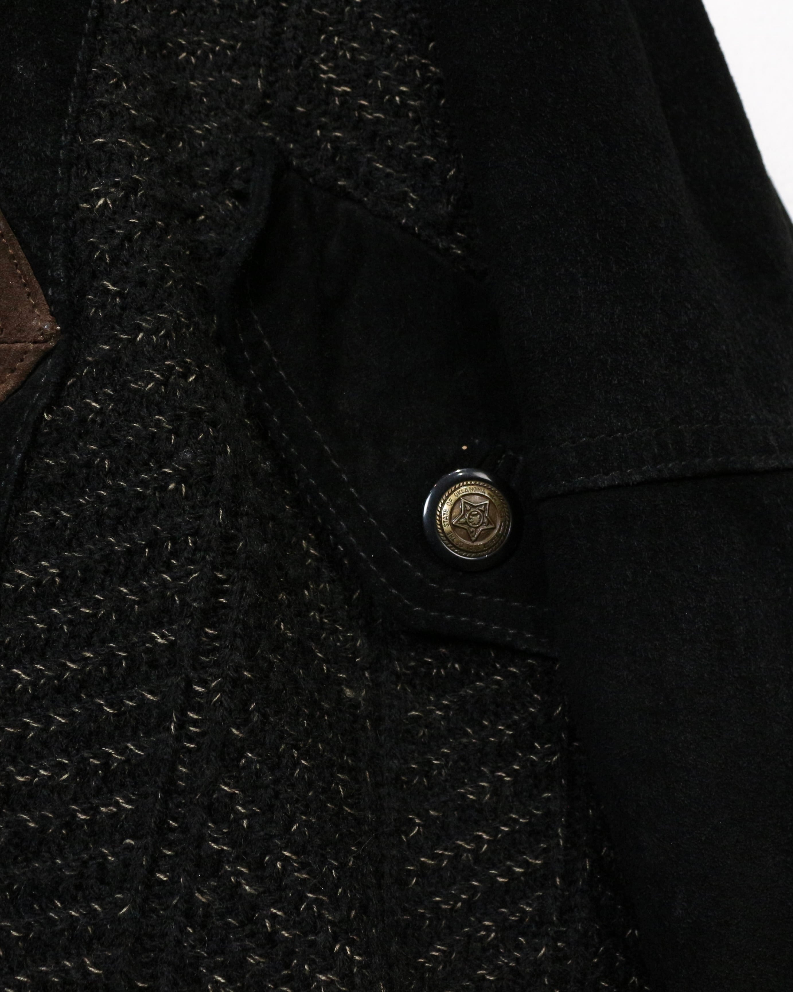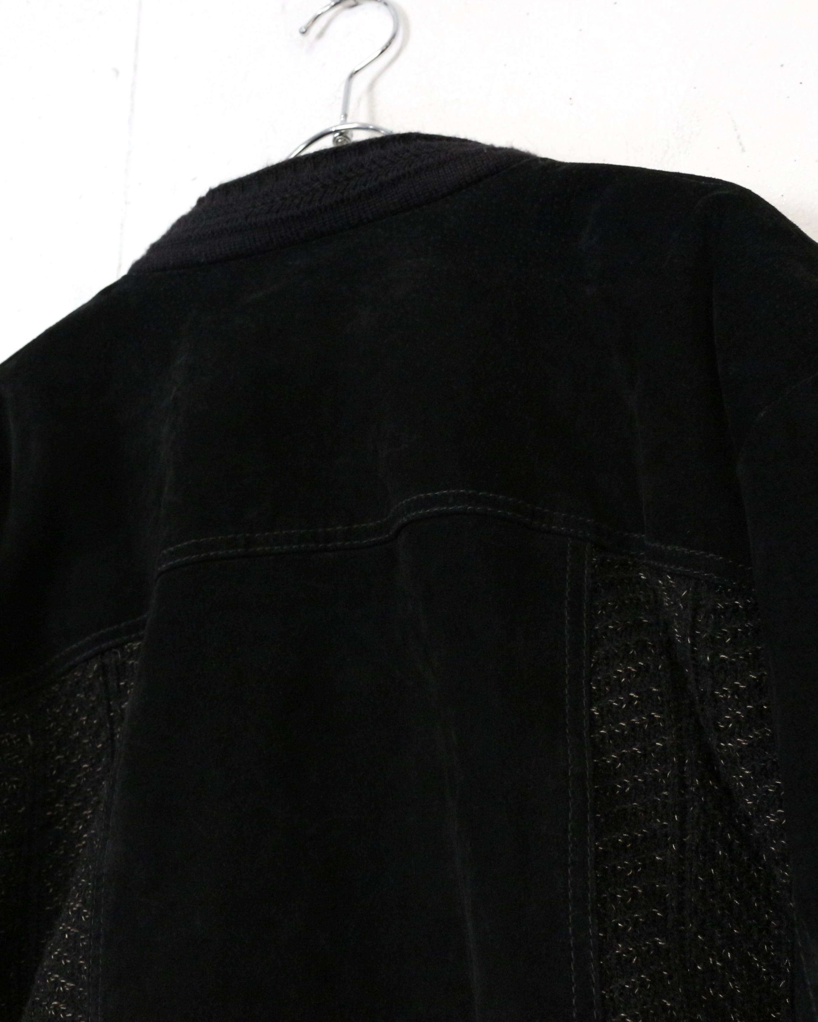 肩からアーム、背面中央にはブラックのスエードを切り替え、2色のレザー使いと非常に贅沢な仕上がり。デザインの効いたボタン使いも素晴らしく、細部まで作り込まれたディテールも魅力です。