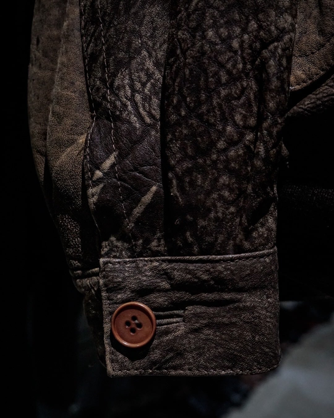 デニムやカーゴで無骨に振るも良し、スラックスでモードに落とし込むも良し。羽織るだけでスタイリングの主役へと昇華する圧倒的な存在感。素材、表情、シルエット、その全てが高次元で成立した、唯一無二のスペシャルピースです。