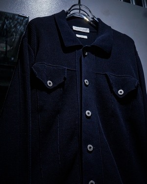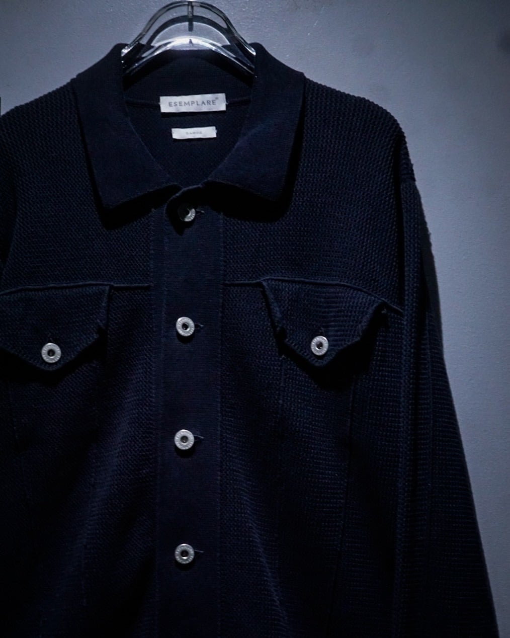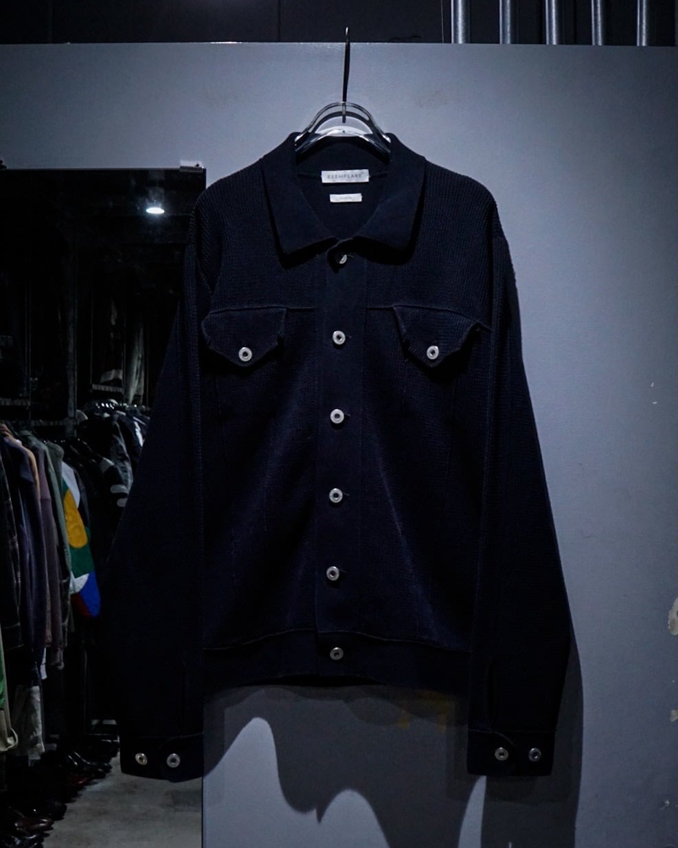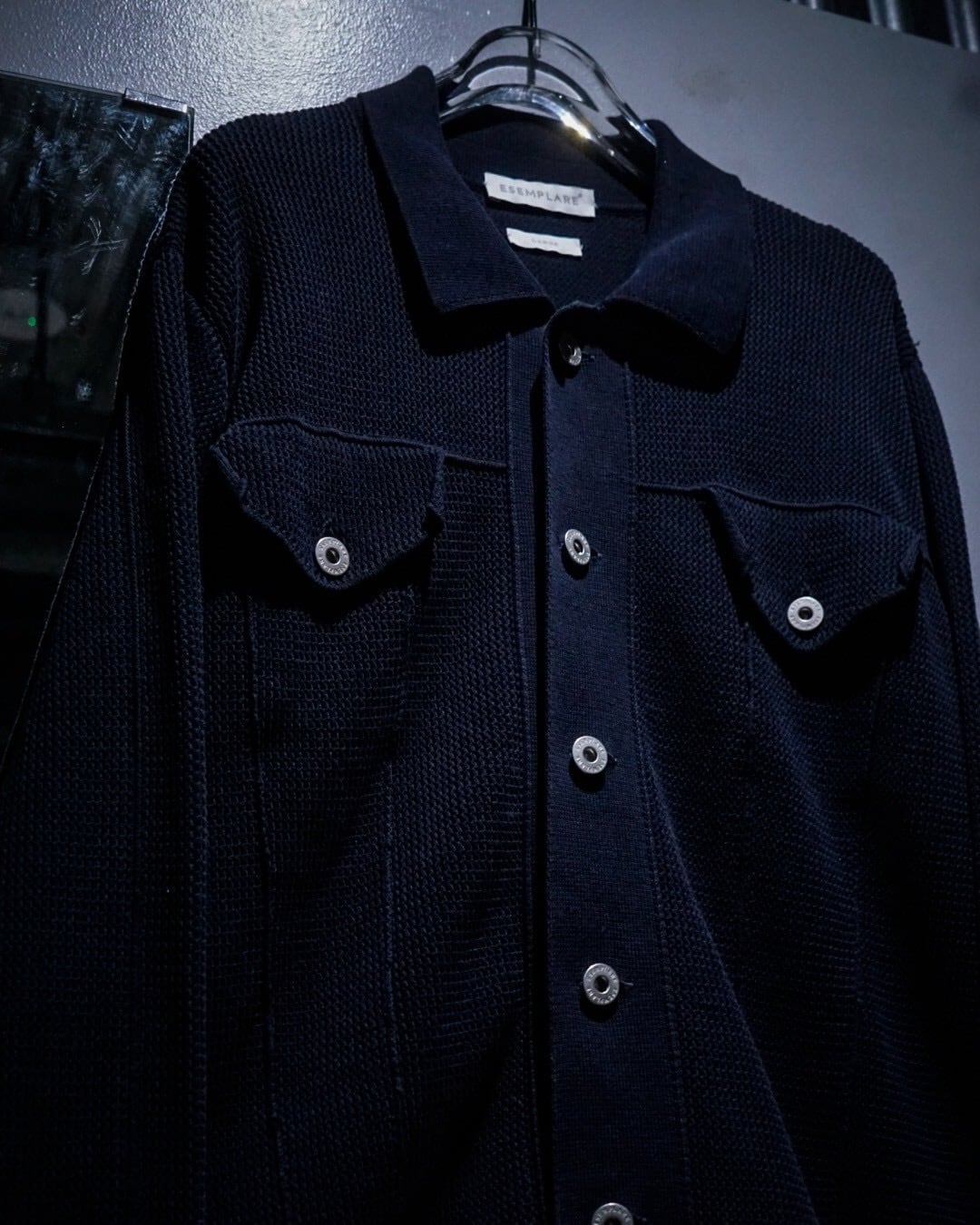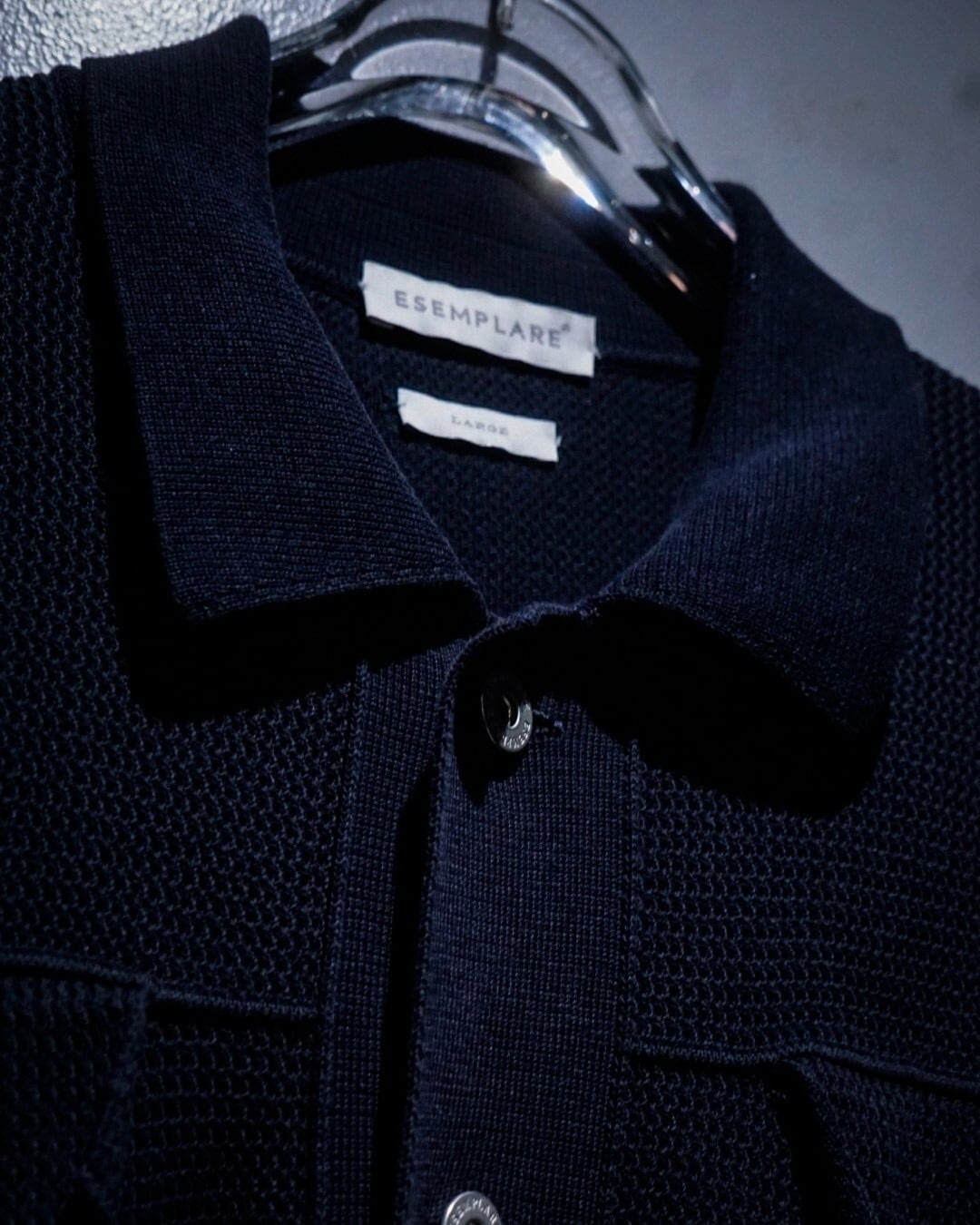 ベースはトラッカージャケットを踏襲しつつ、ファブリックには立体感のある編み地のニットを採用。ネイビーで統一されたミニマルな佇まいの中に、編みの陰影による奥行きが生まれ、シンプルでありながらも確かな存在感を放つ仕上がりに。