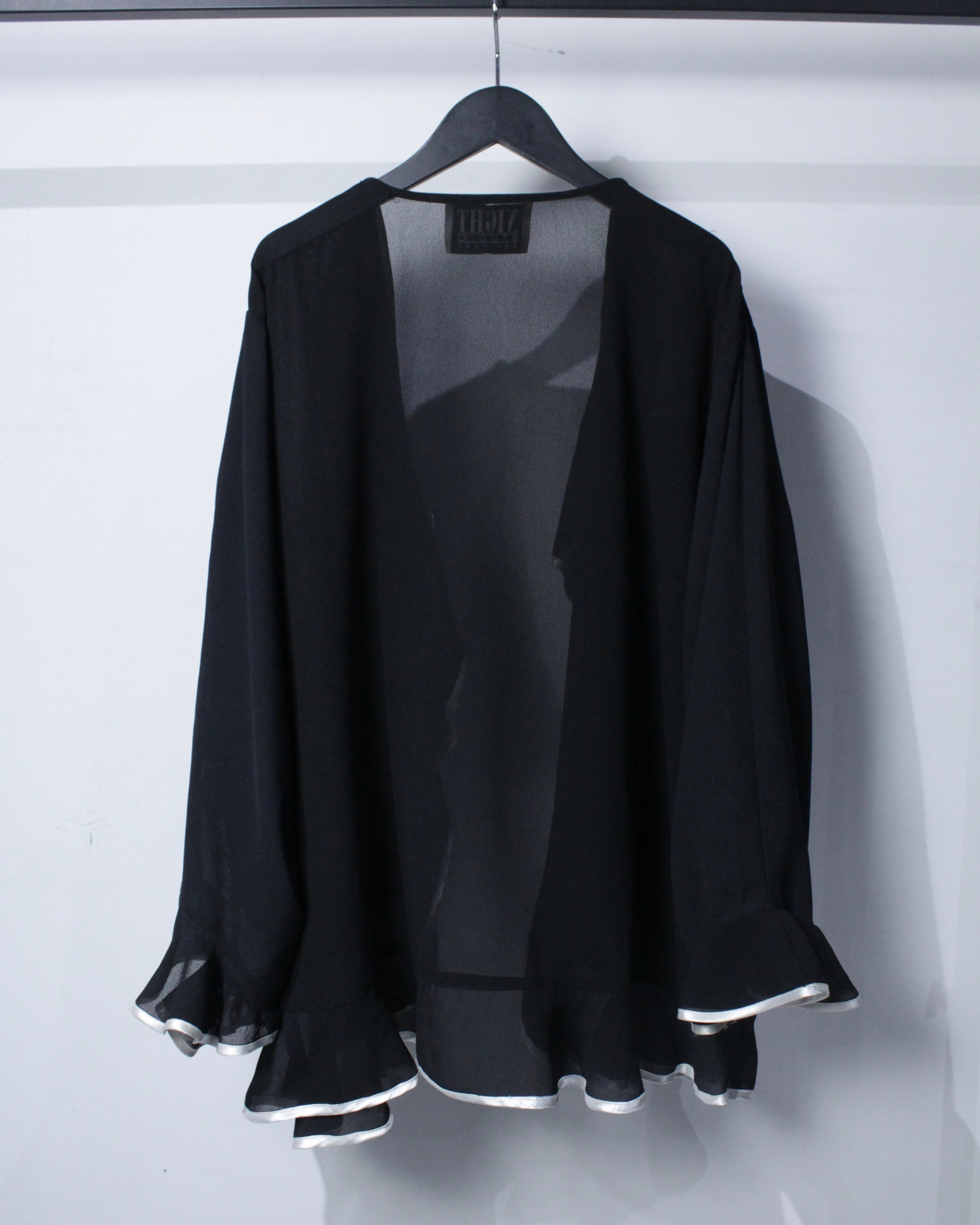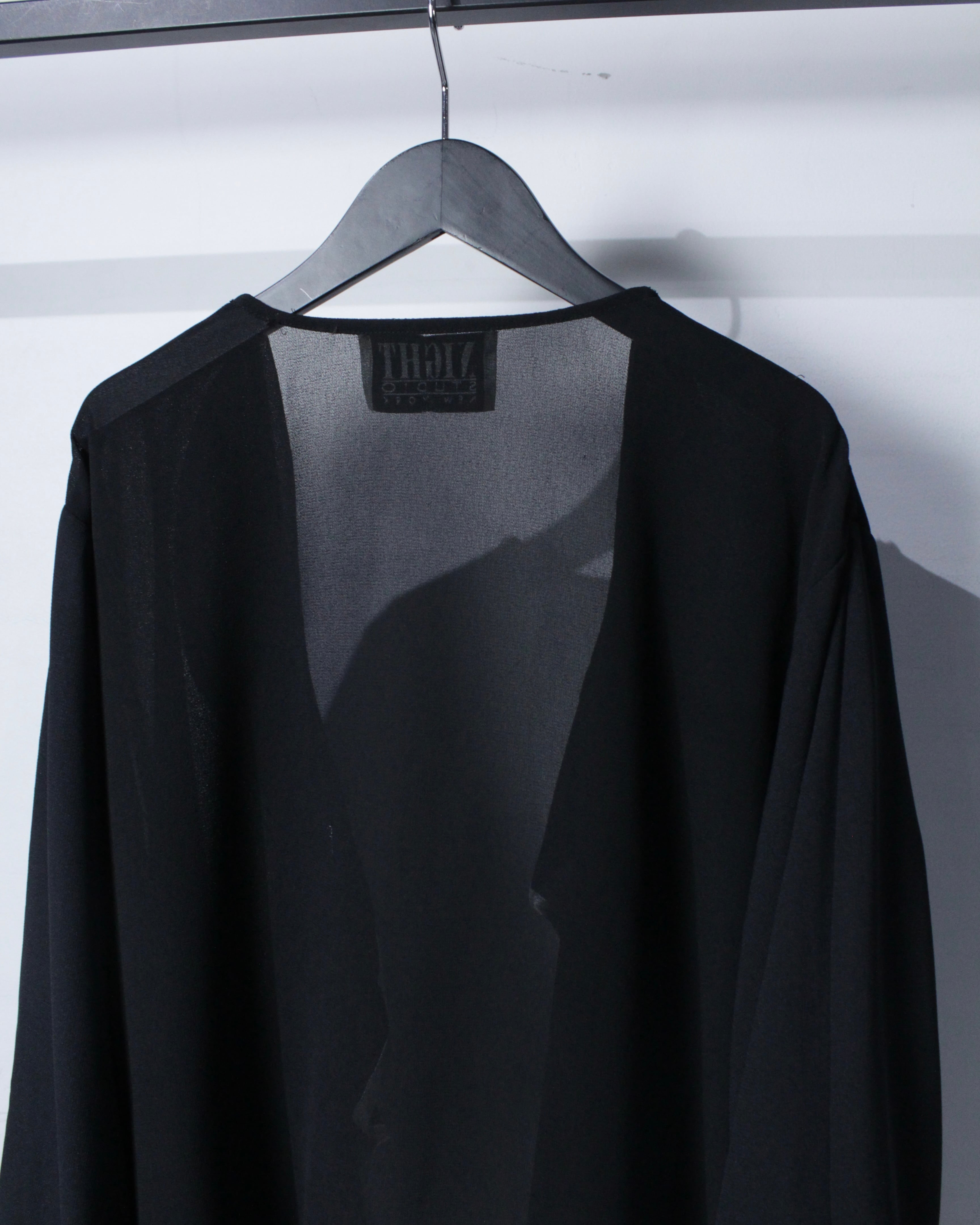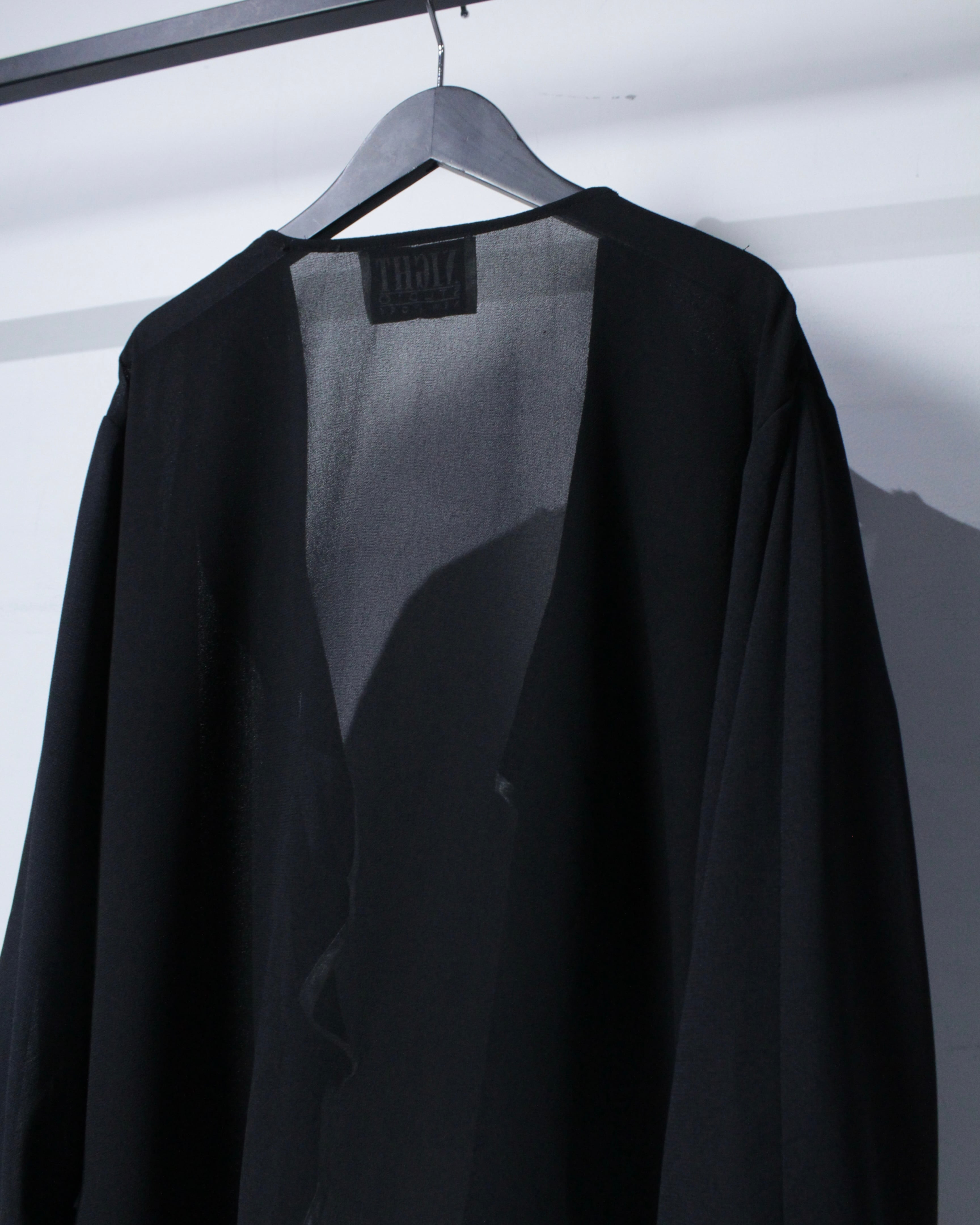 繊細な素材と計算されたドレープ、そしてデザイン性が合わさった、当店らしい雰囲気を纏ったシアージャケットの逸品です。