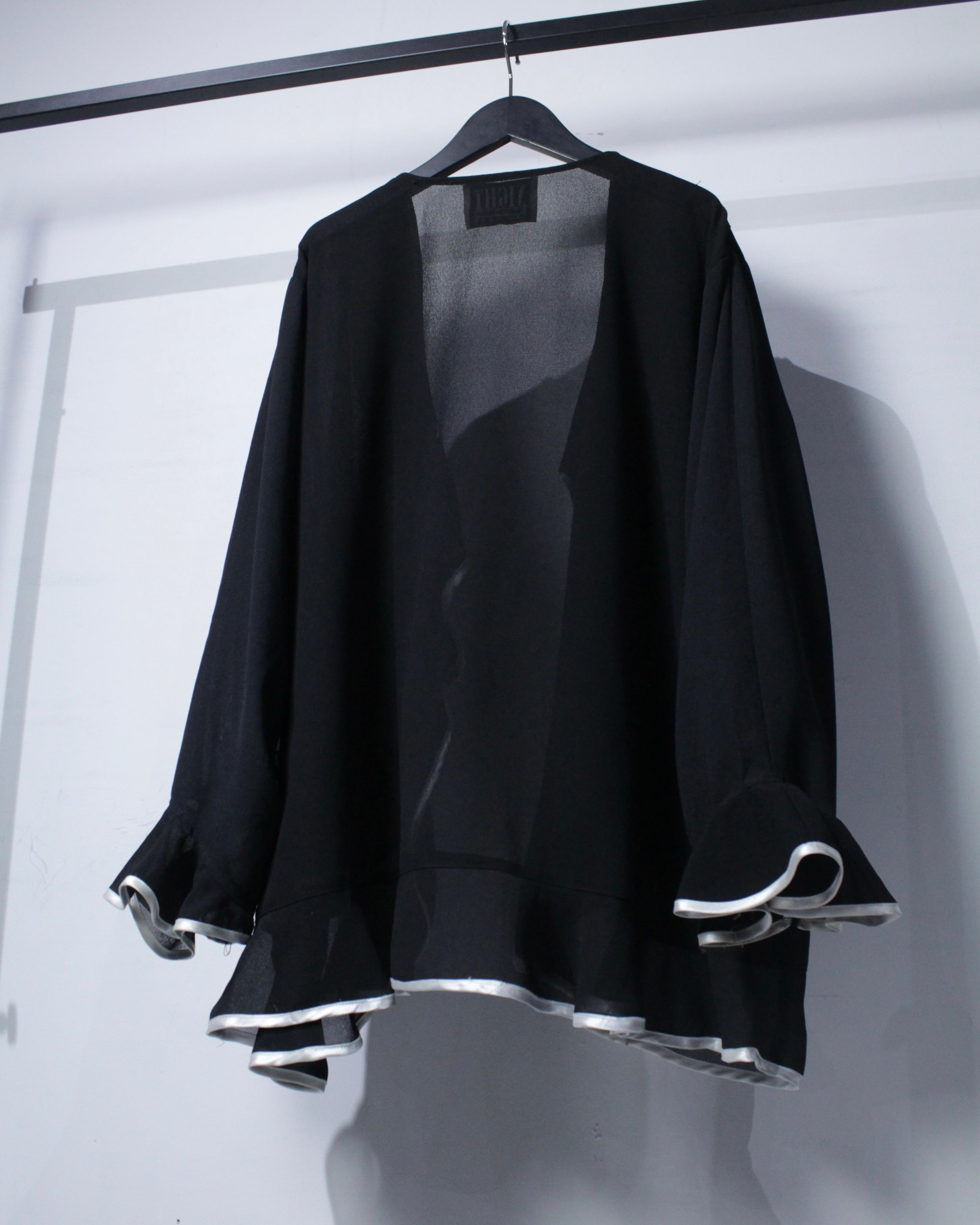 ボディには軽やかで透け感のあるシアーファブリックを採用。柔らかく流れるようなドレープが生まれ、動きに合わせて揺れることで独特の色気とニュアンスを演出します。