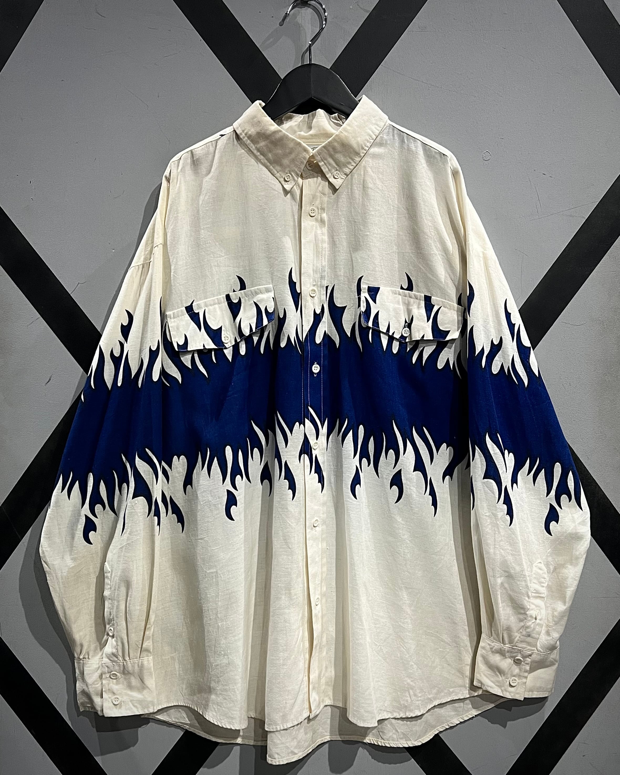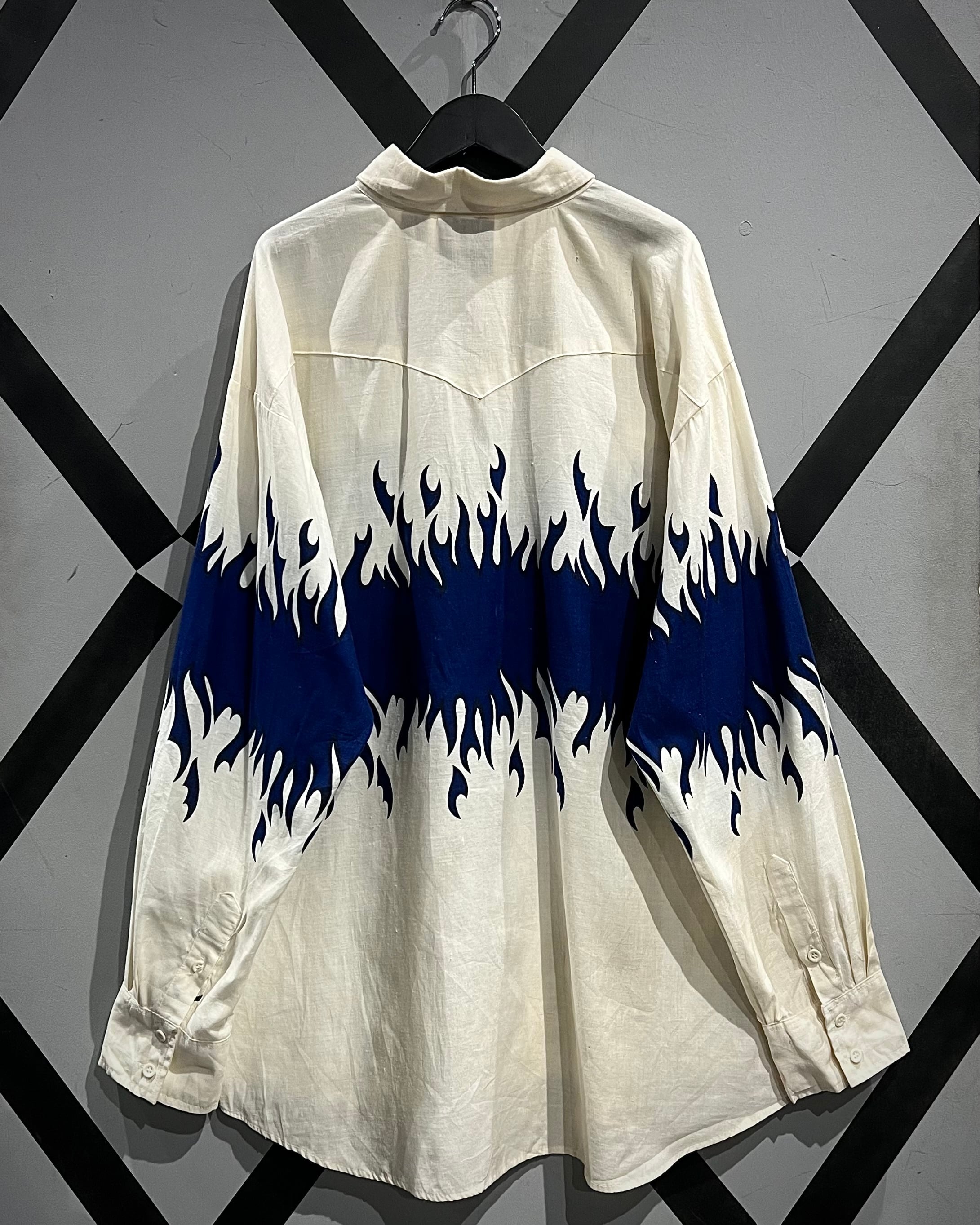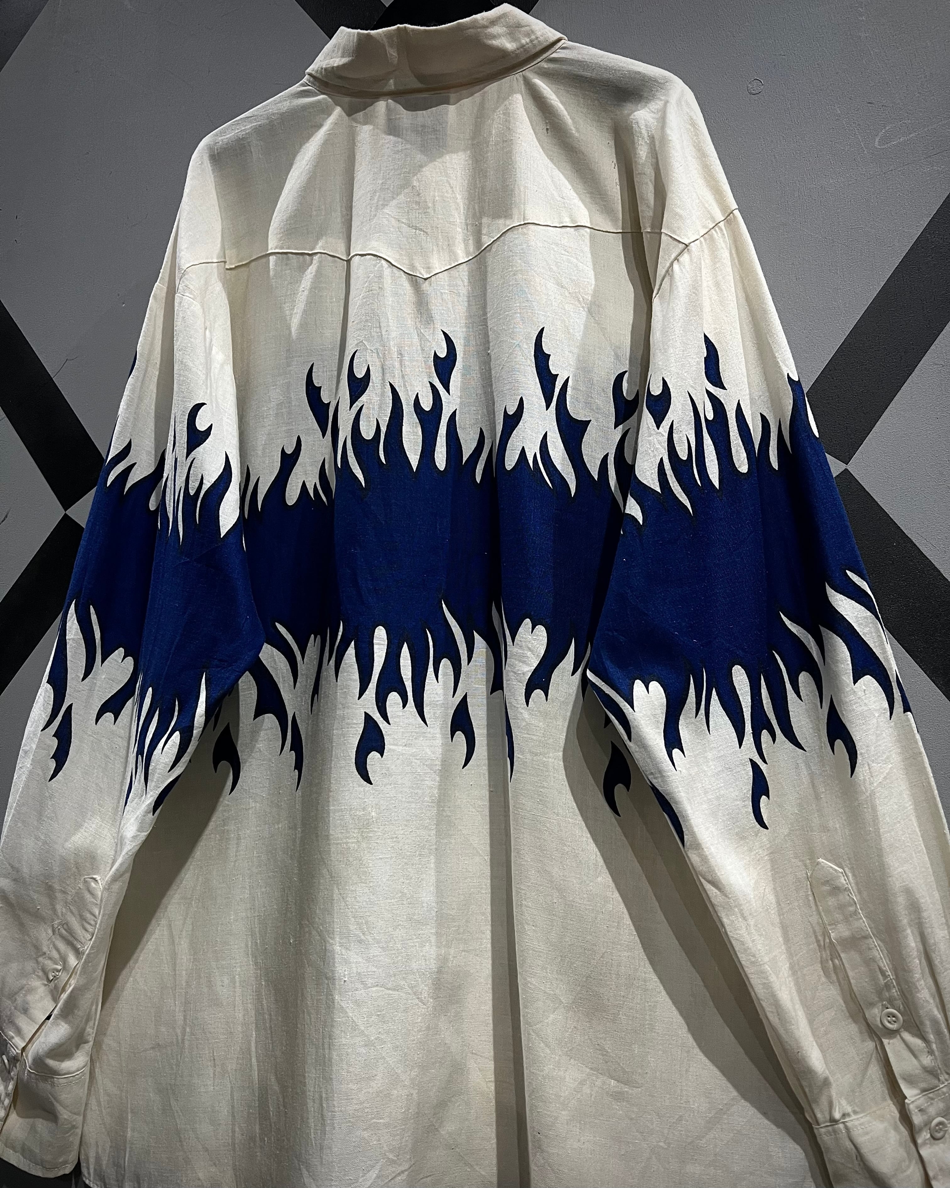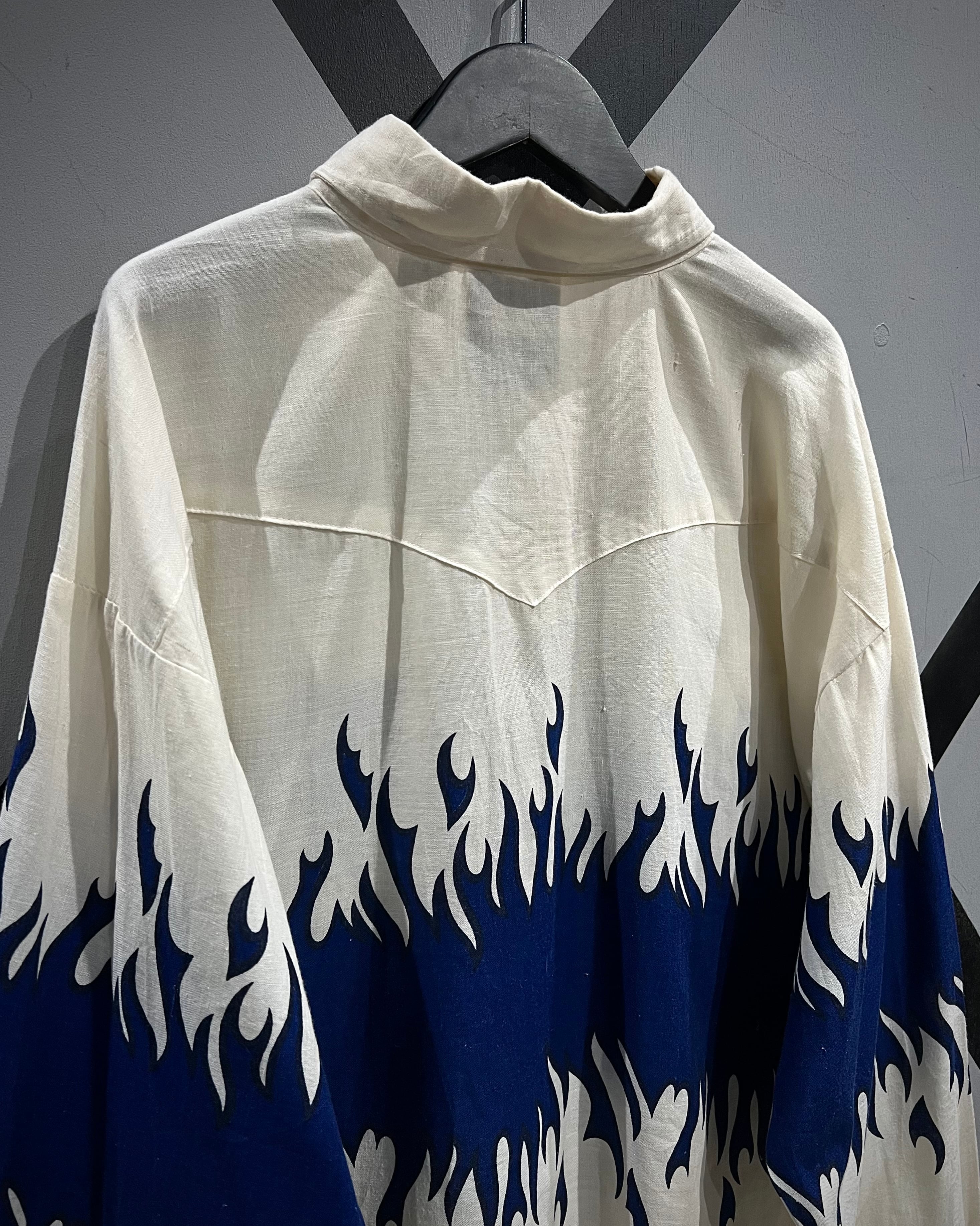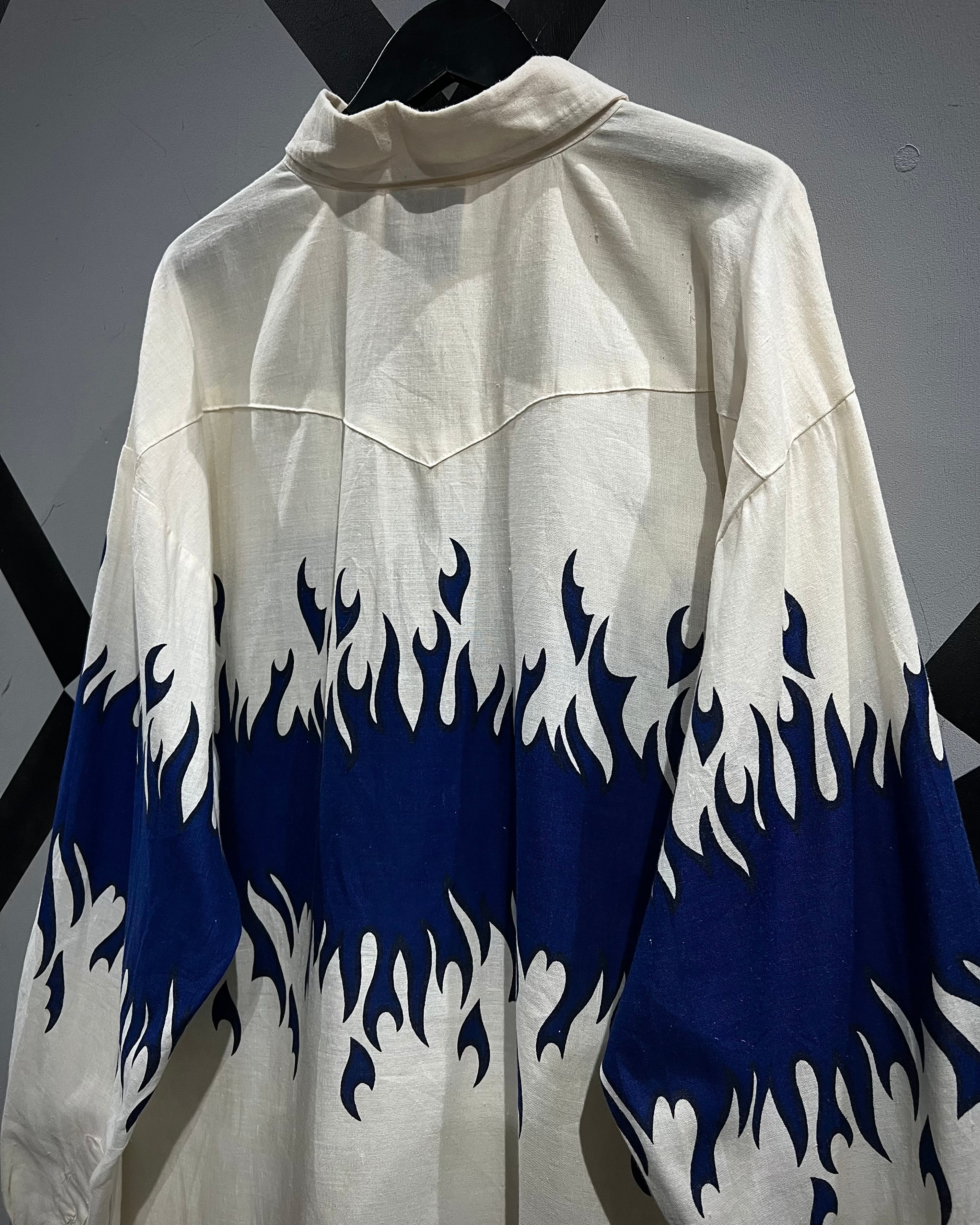 ボディからアームに一周鮮やかなフレイムがプリントされ、シンプルなシャツの枠を超えたストリートかつアイコニックな1着に仕上がっています。