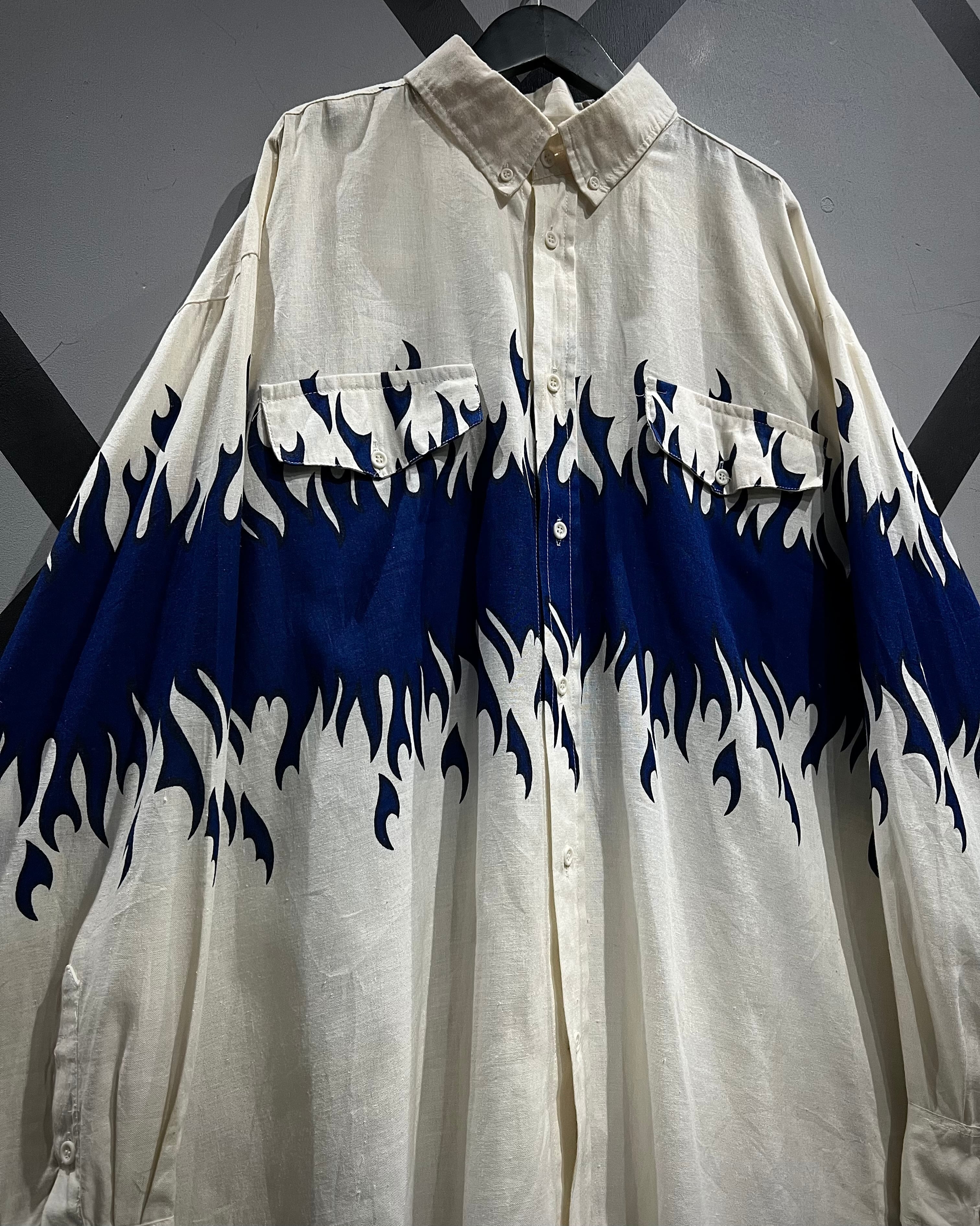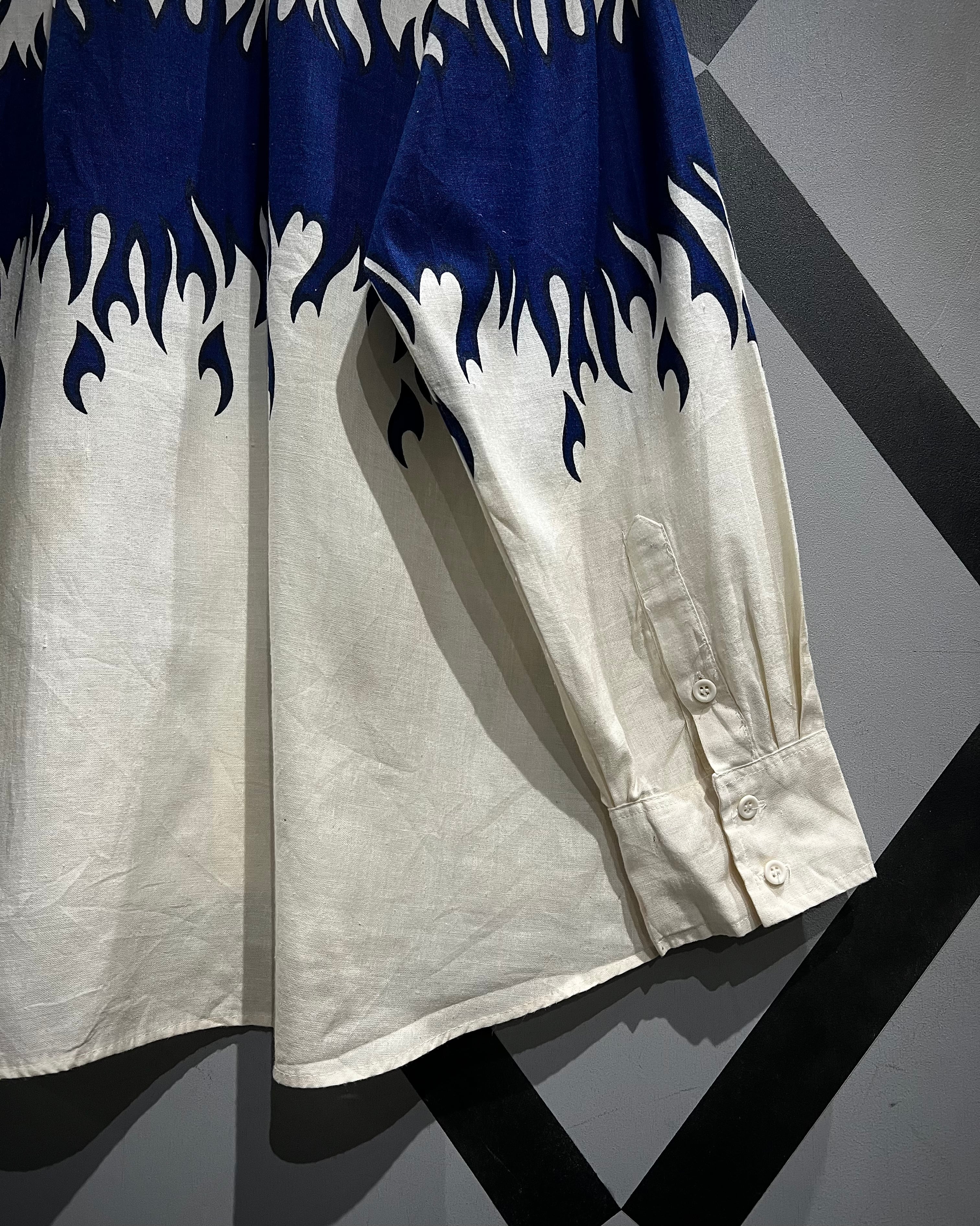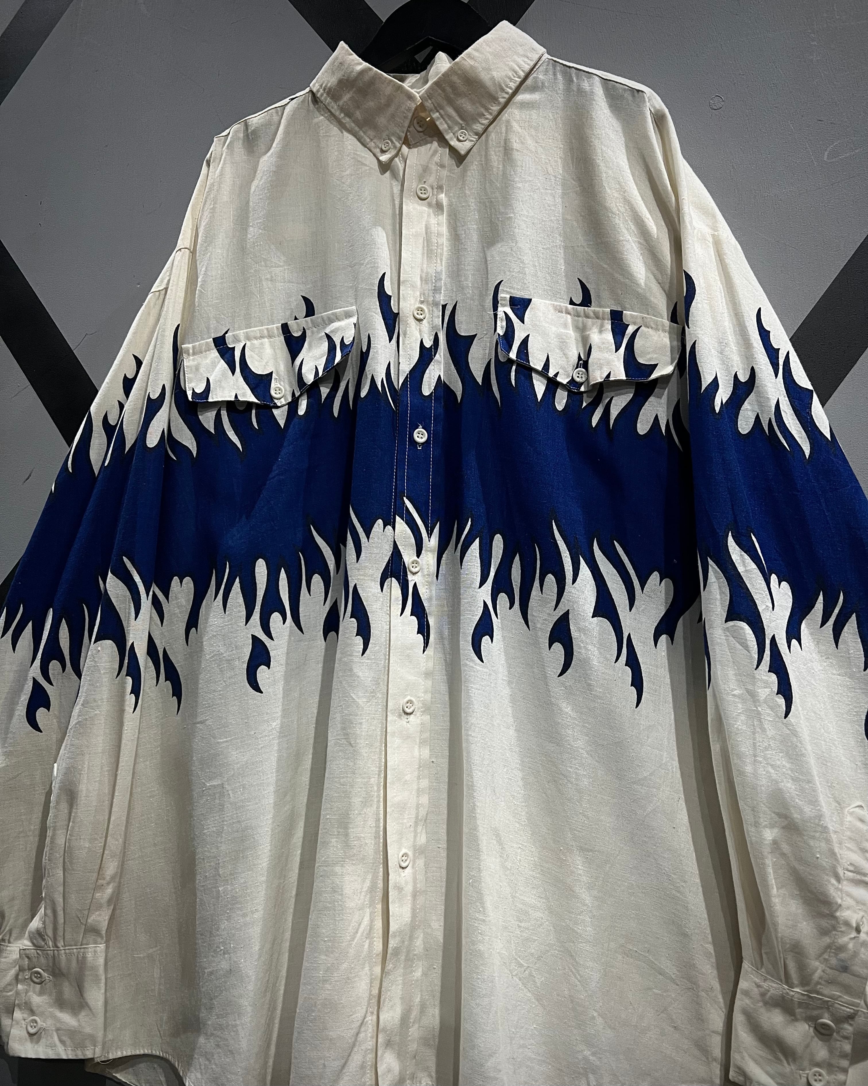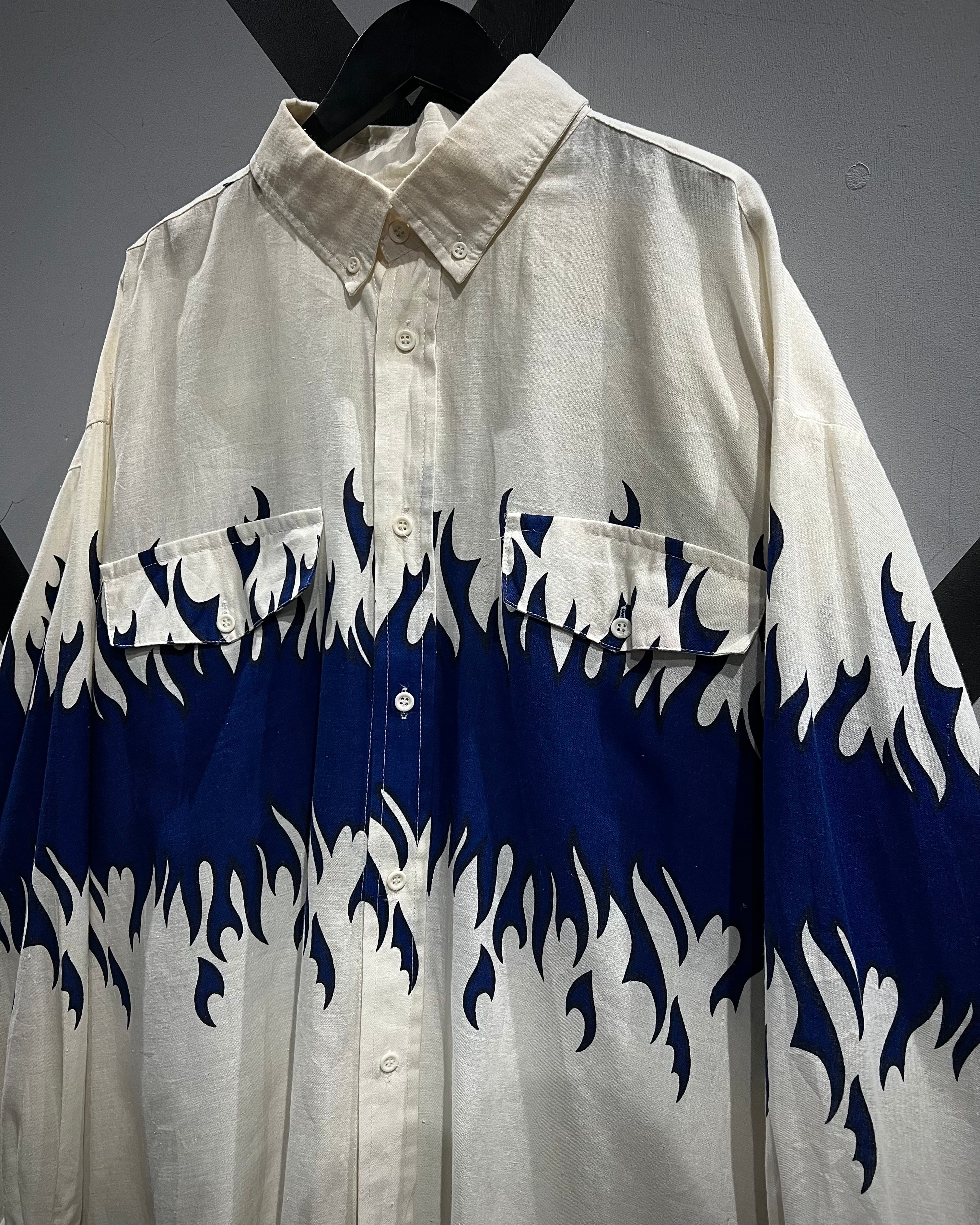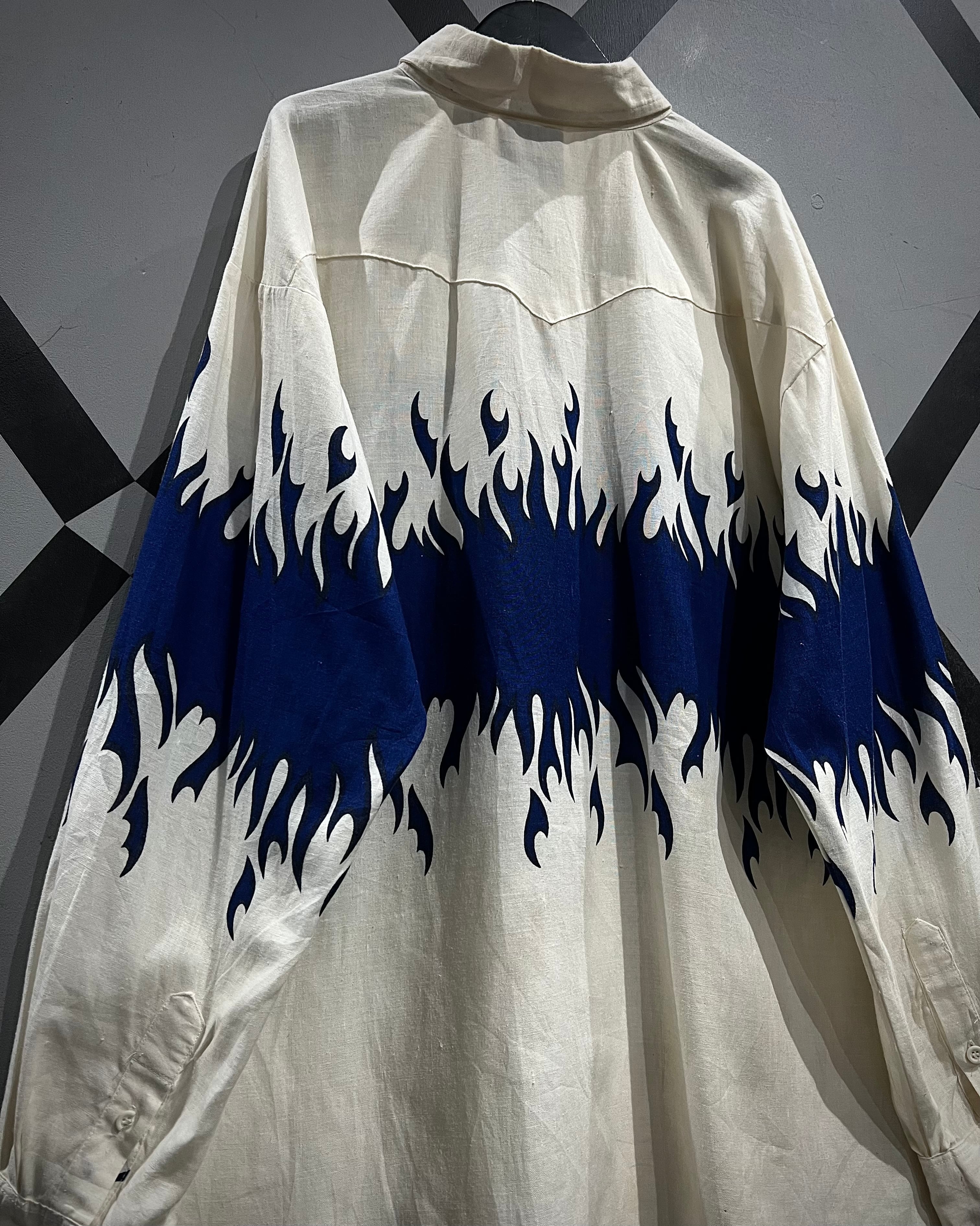 ボディからアームに一周鮮やかなフレイムがプリントされ、シンプルなシャツの枠を超えたストリートかつアイコニックな1着に仕上がっています。