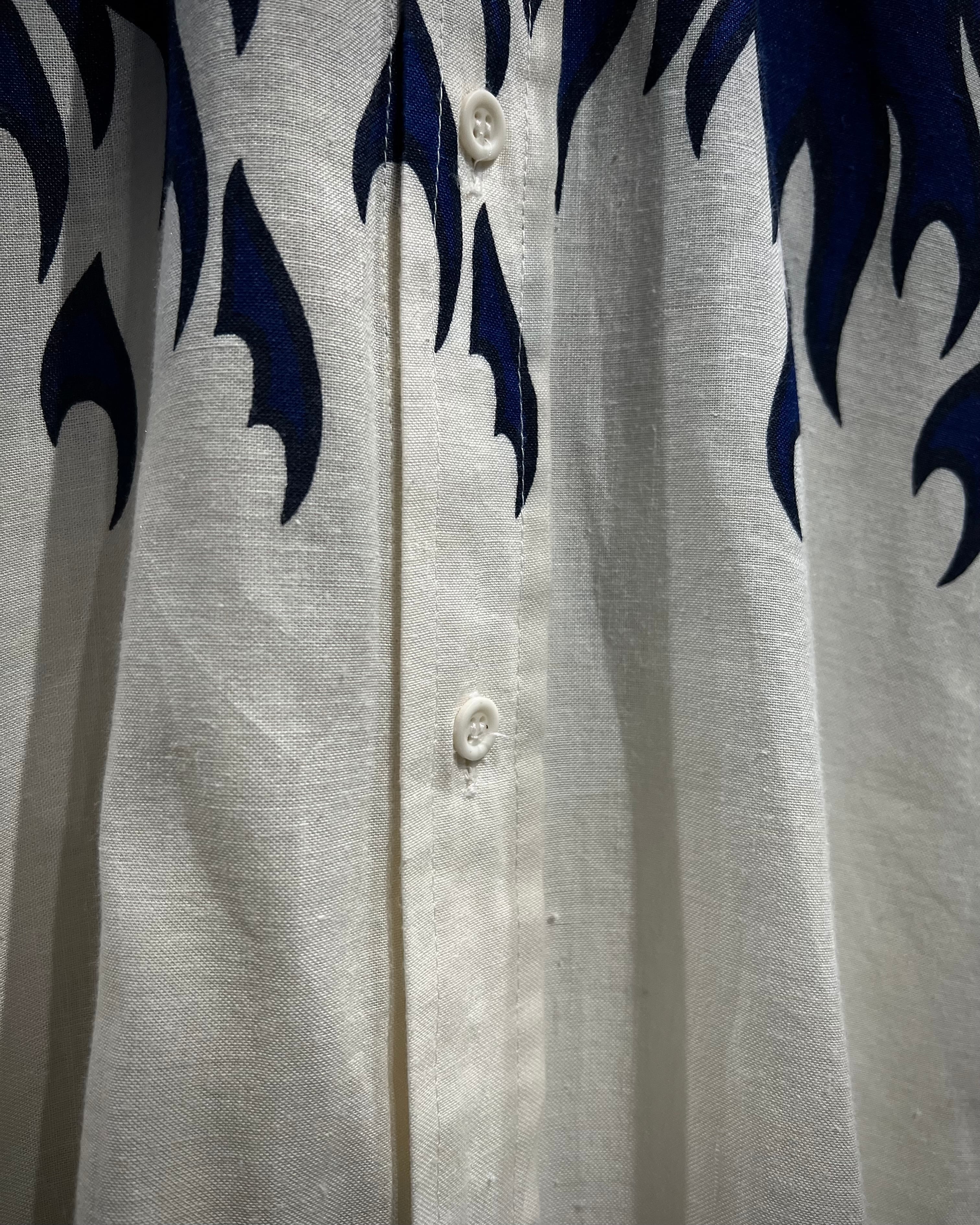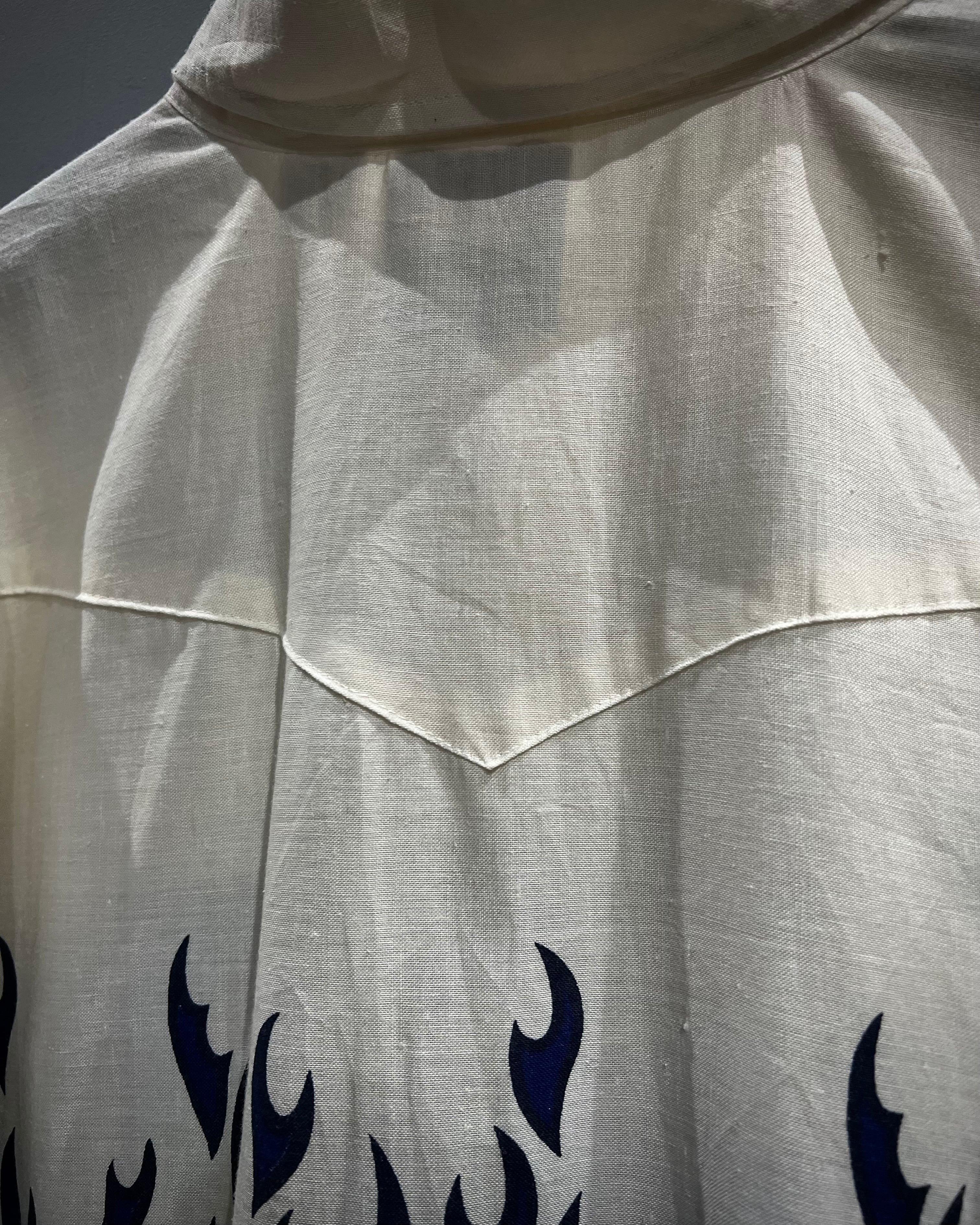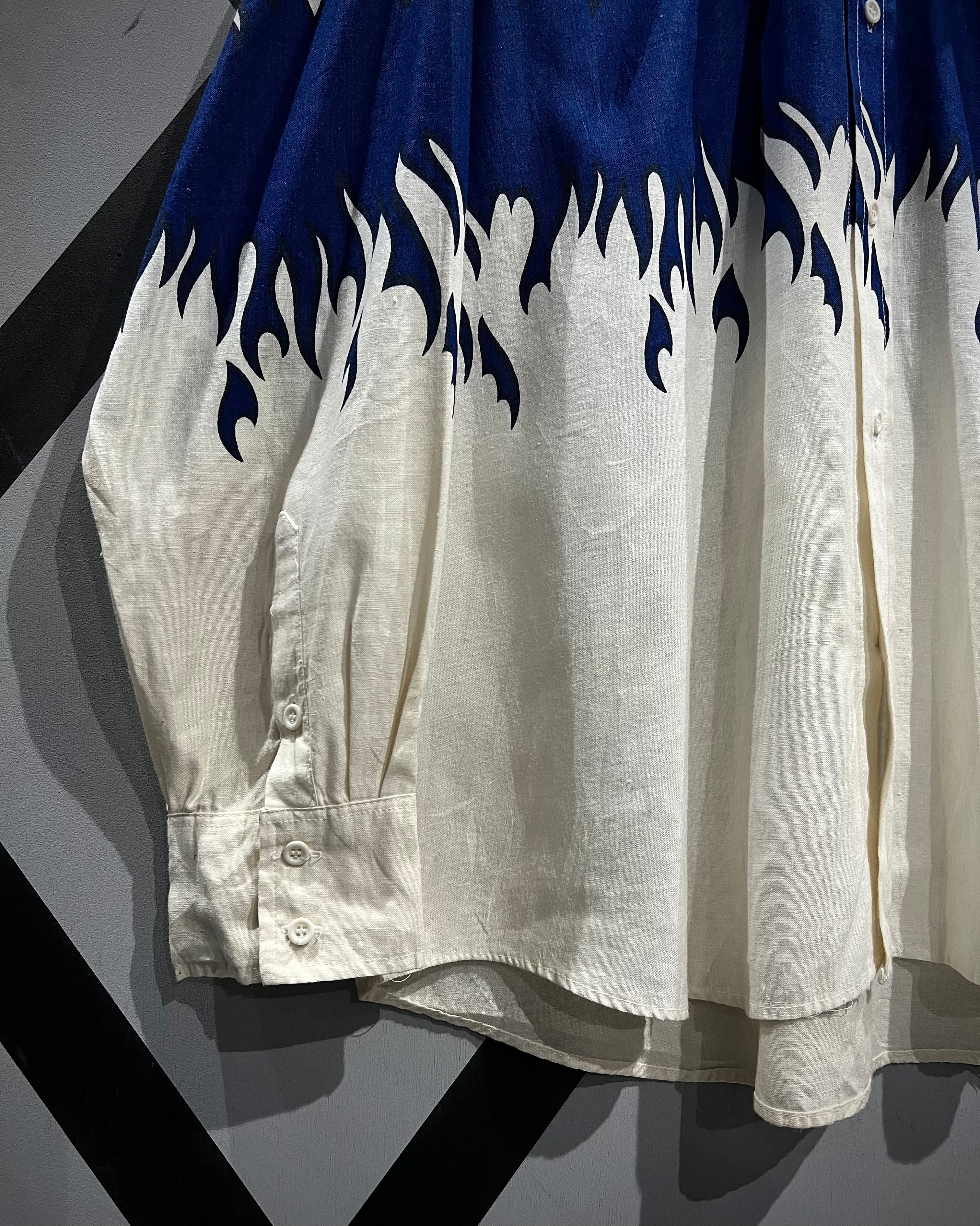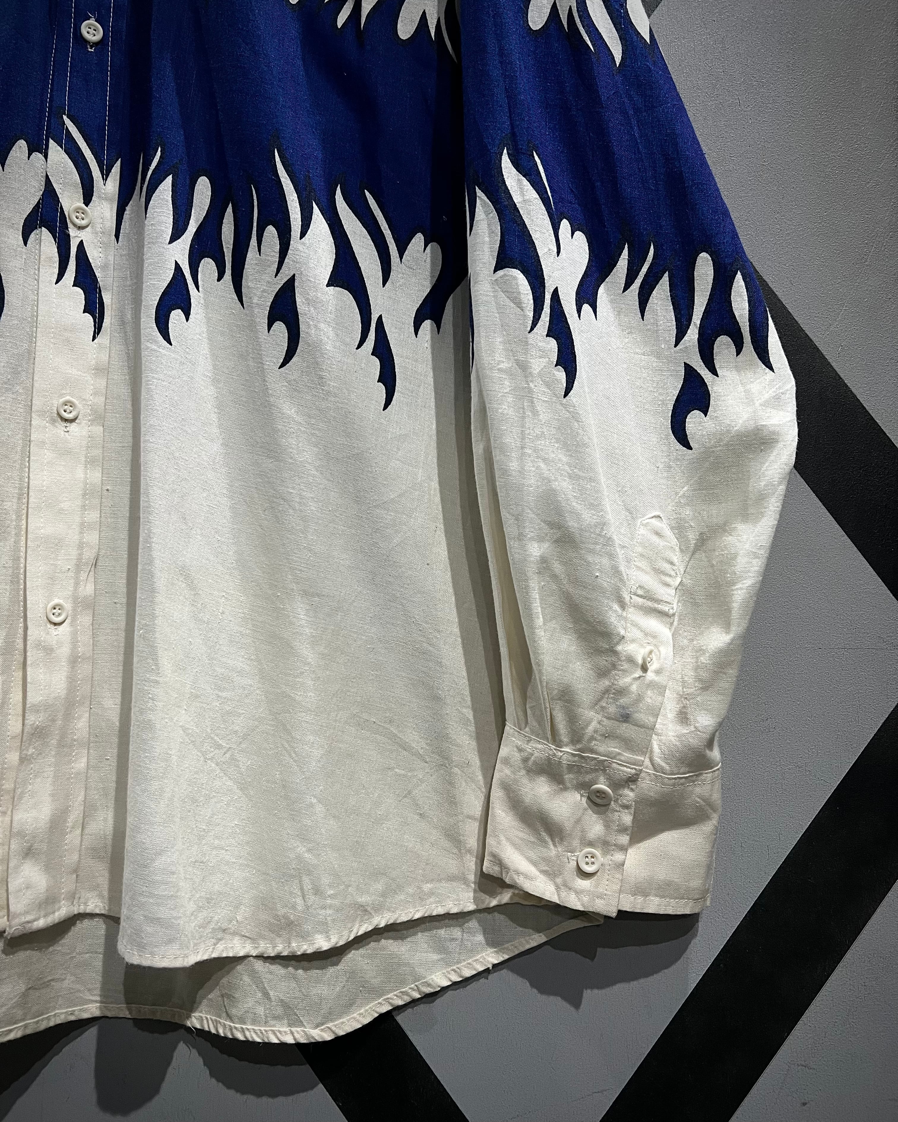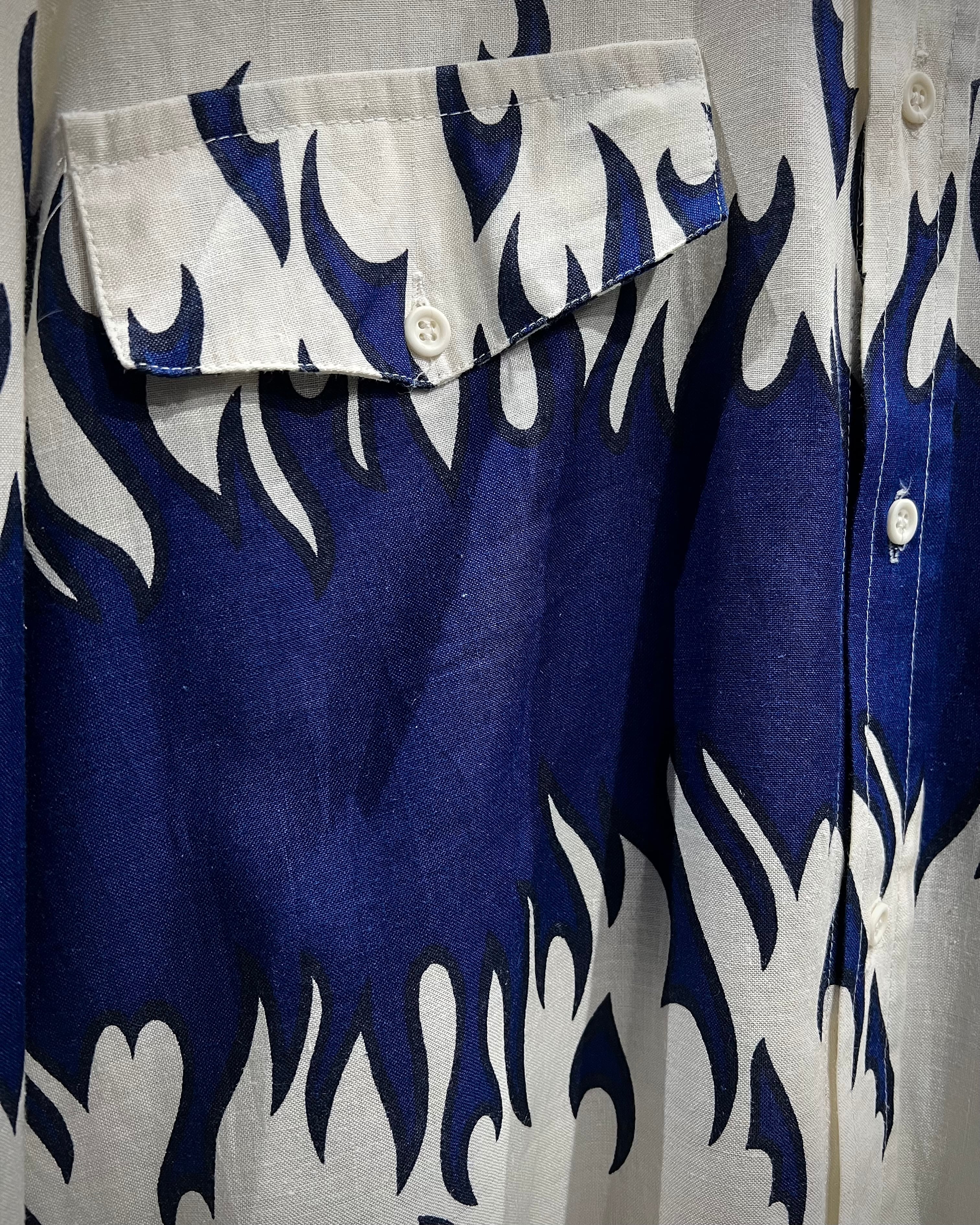 ボディからアームに一周鮮やかなフレイムがプリントされ、シンプルなシャツの枠を超えたストリートかつアイコニックな1着に仕上がっています。