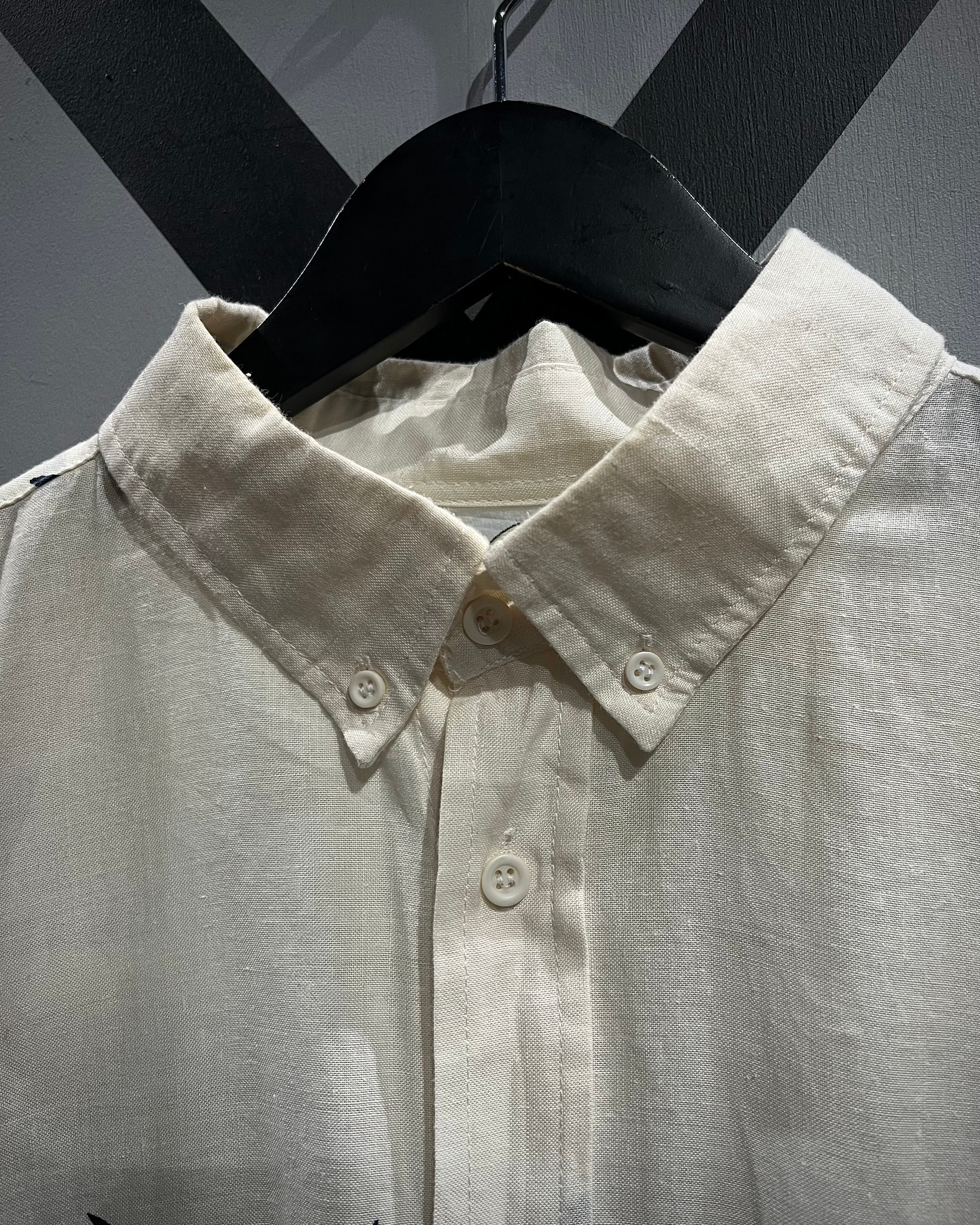 リネン×コットン混紡の軽やかなファブリックを採用し、シワ感とドライな質感が魅力。ナチュラルなボディに対して、ストリートなフレイムを落とし込んだバランス感も◎