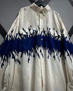 ベーシックなシャツに大胆なグラフィックを掛け合わせた、ファッションとしての完成度が高い長袖シャツの1着です。