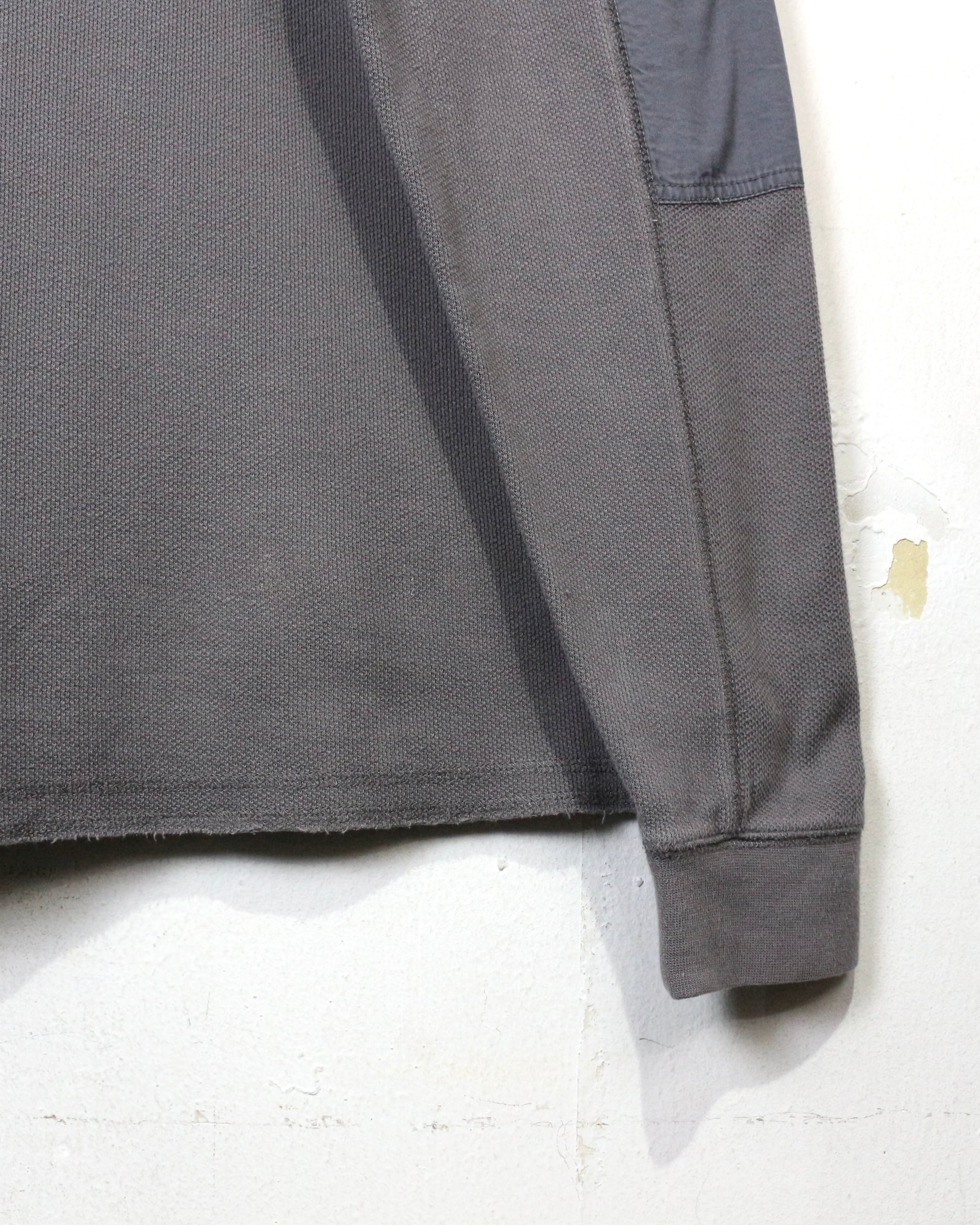 ボディには凹凸のある編み地を採用し、程よい肉感と柔らかな着心地を両立。フェードがかったグレーカラーが醸し出す雰囲気も◎